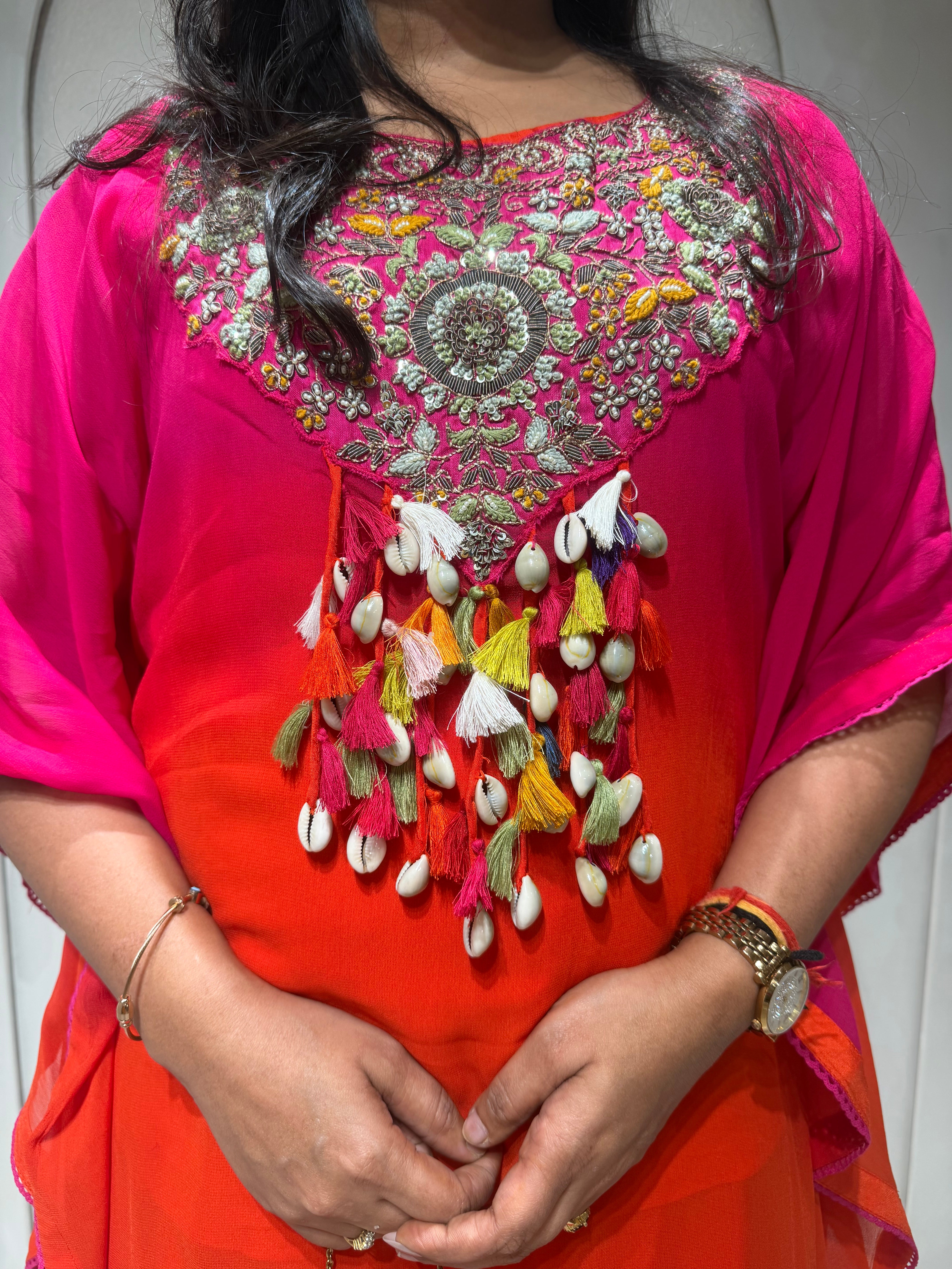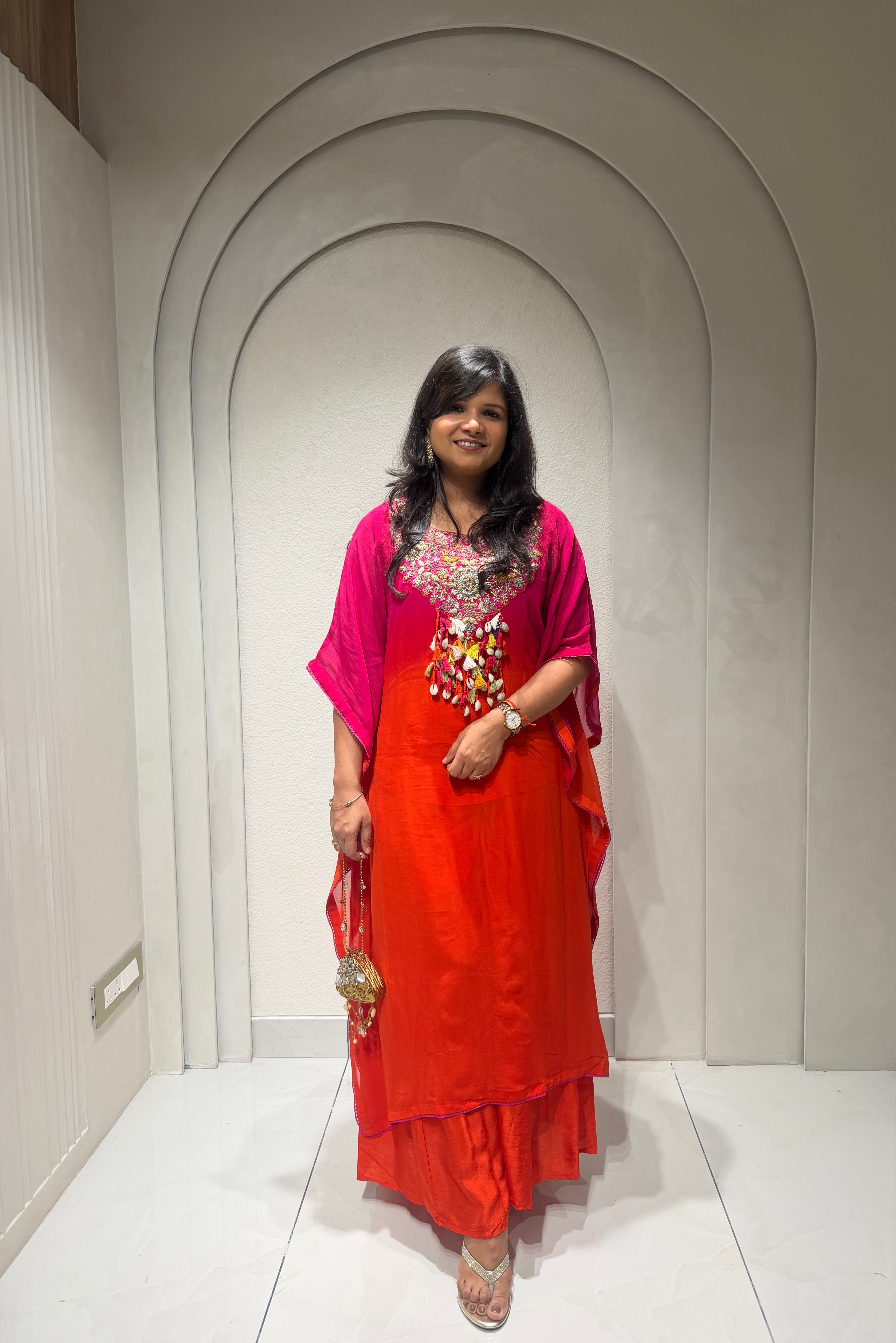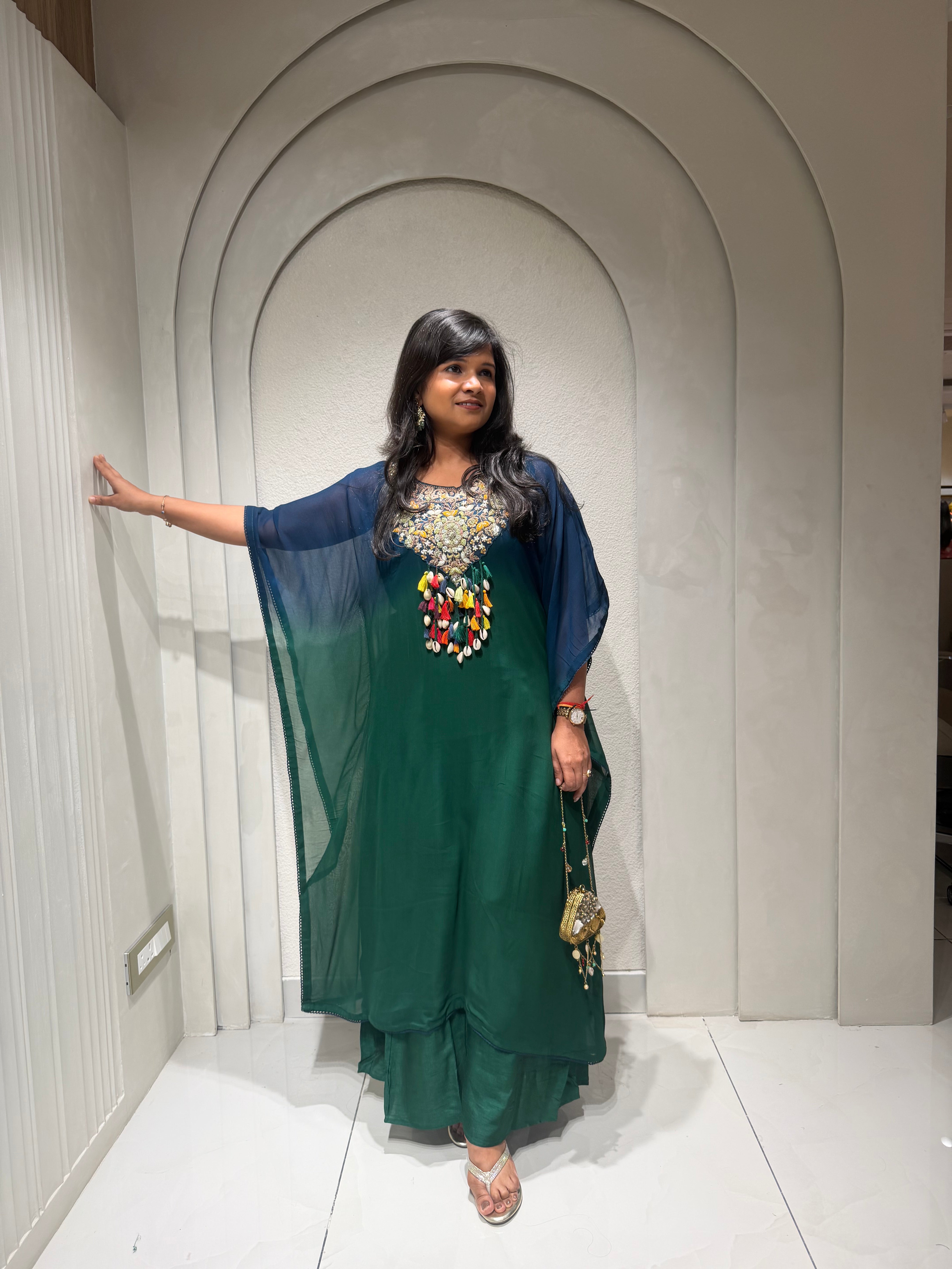 ✅ Premium Georgette Ombre Kaftan Coord Set With Exclusive Handwork In The Yoke