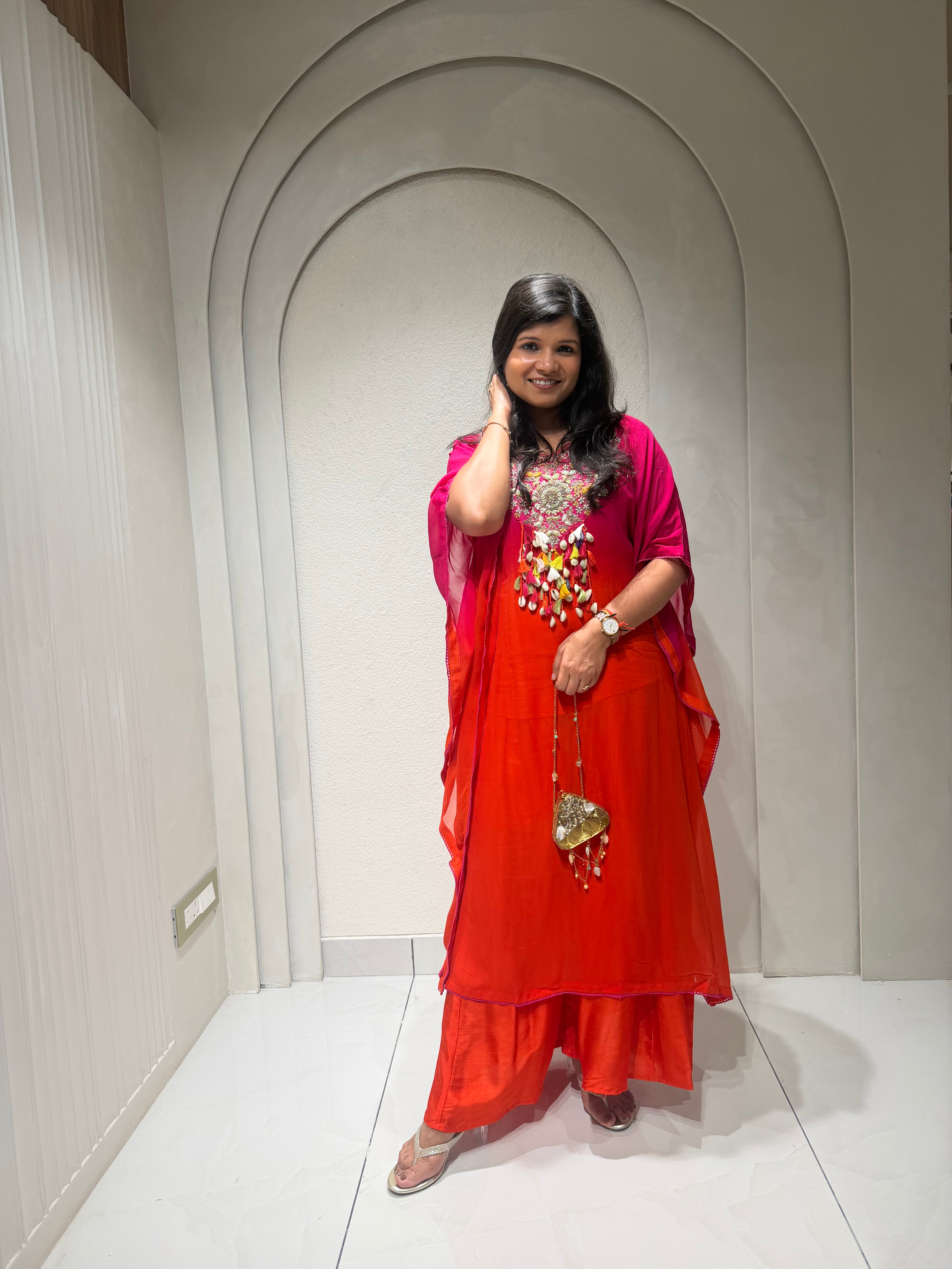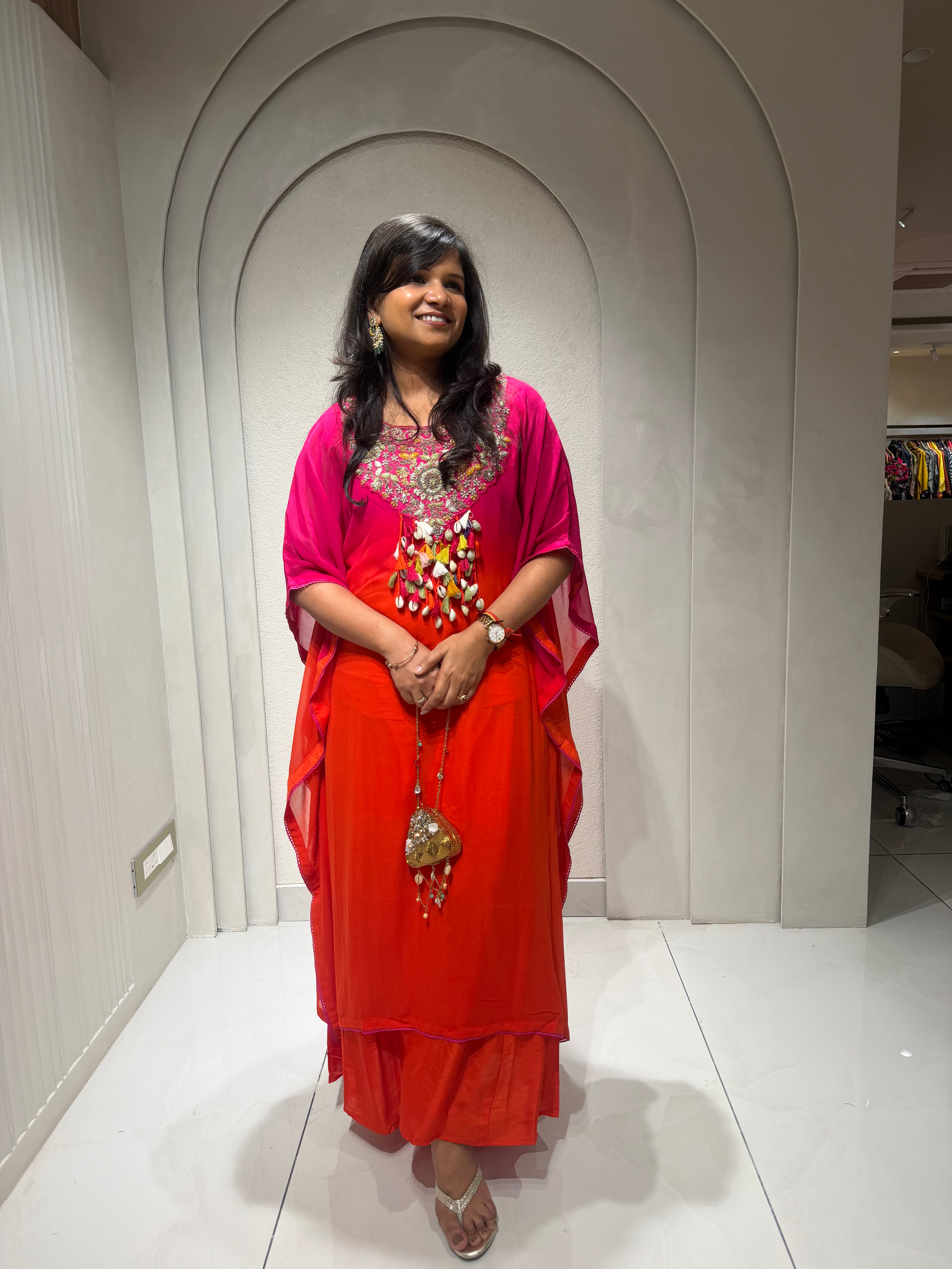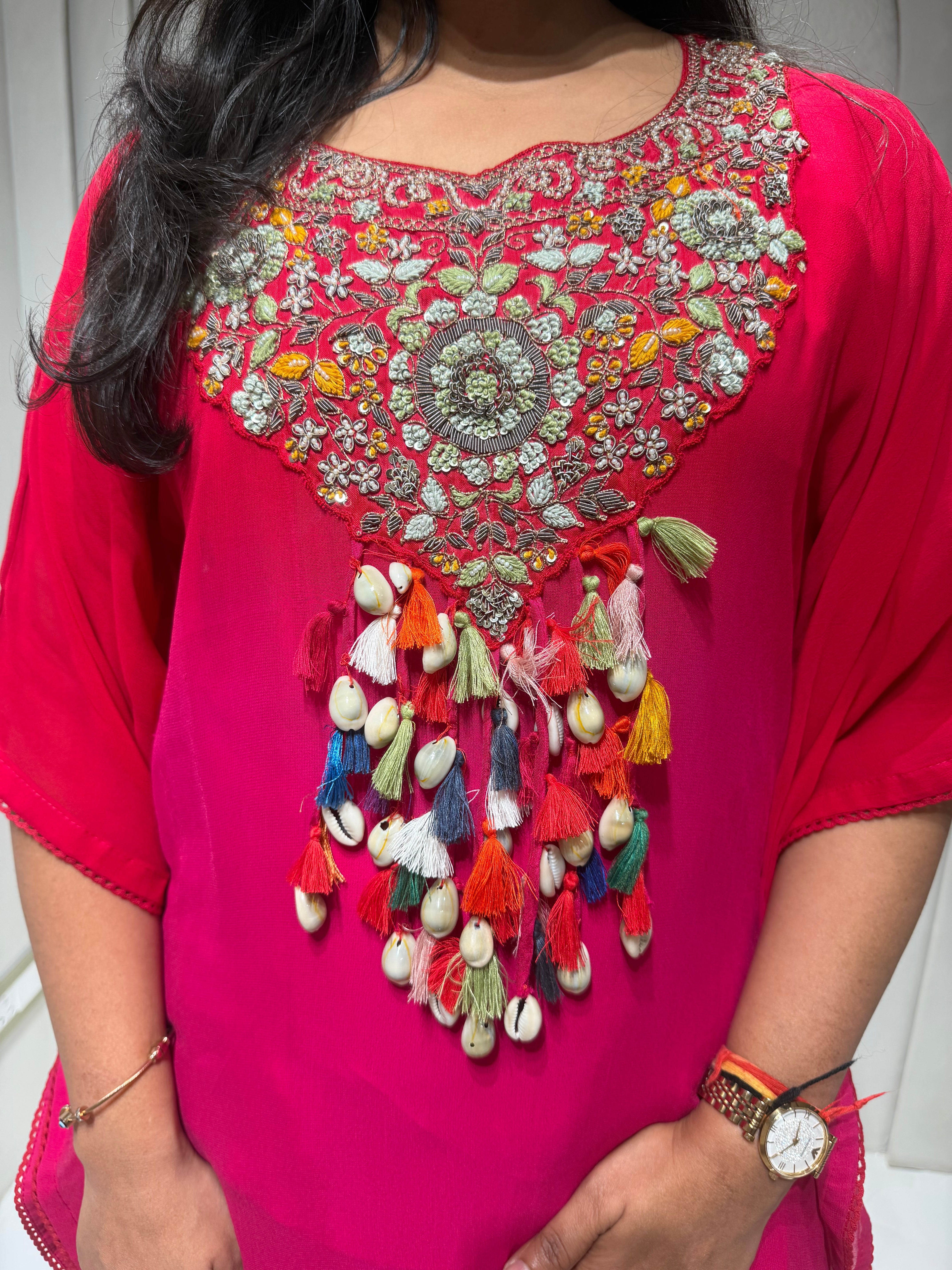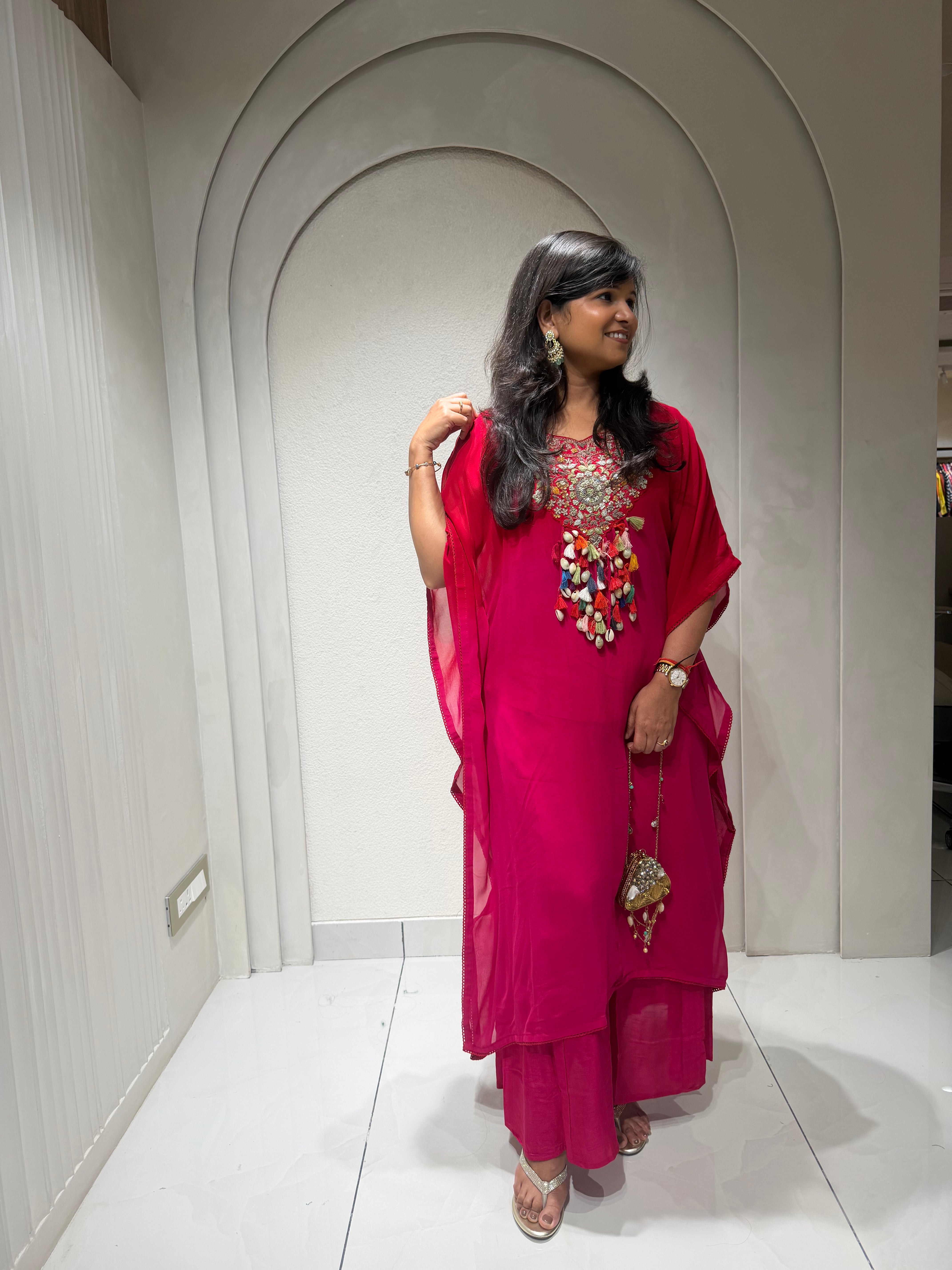 ✅ Premium Georgette Ombre Kaftan Coord Set With Exclusive Handwork In The Yoke