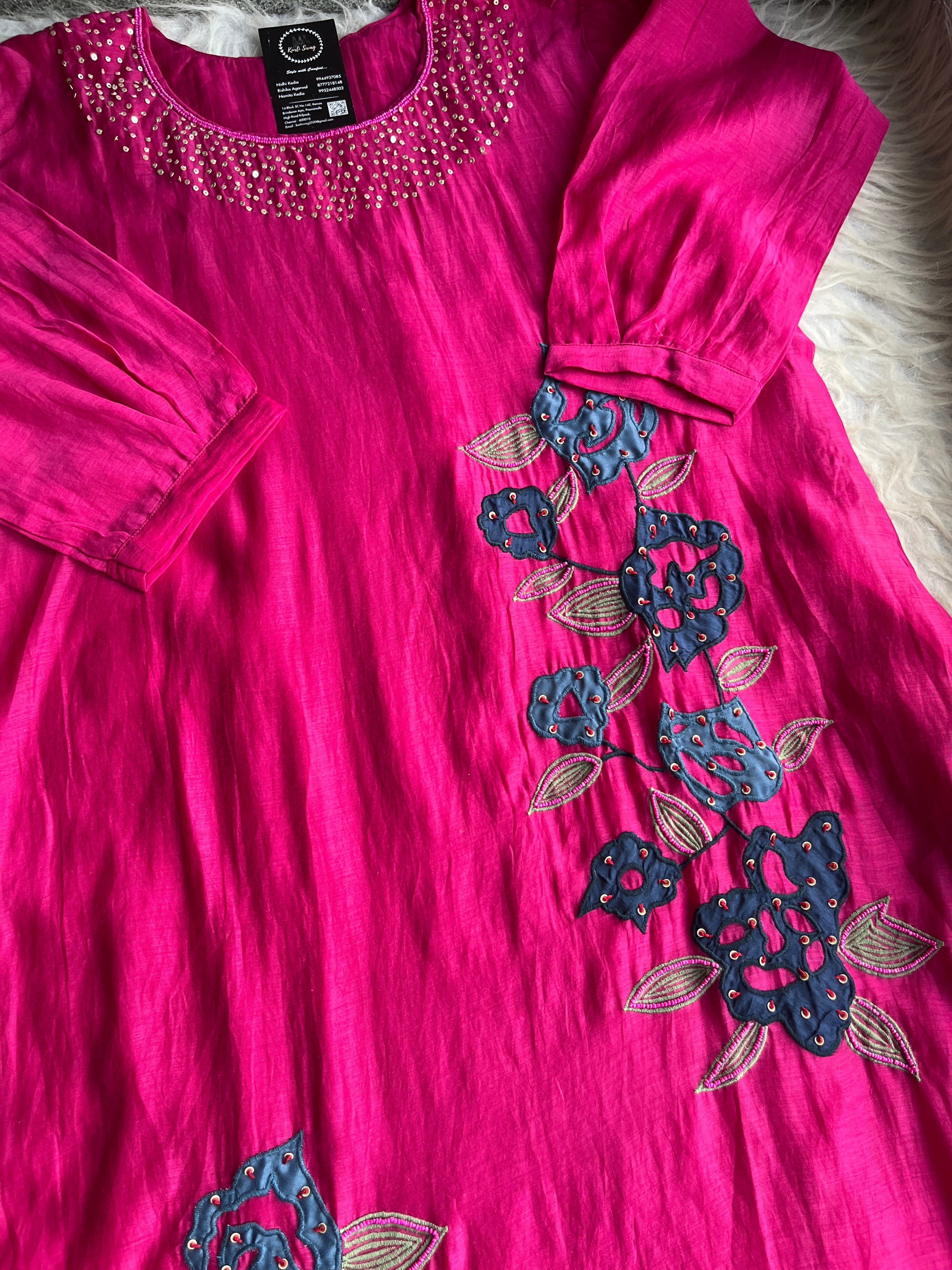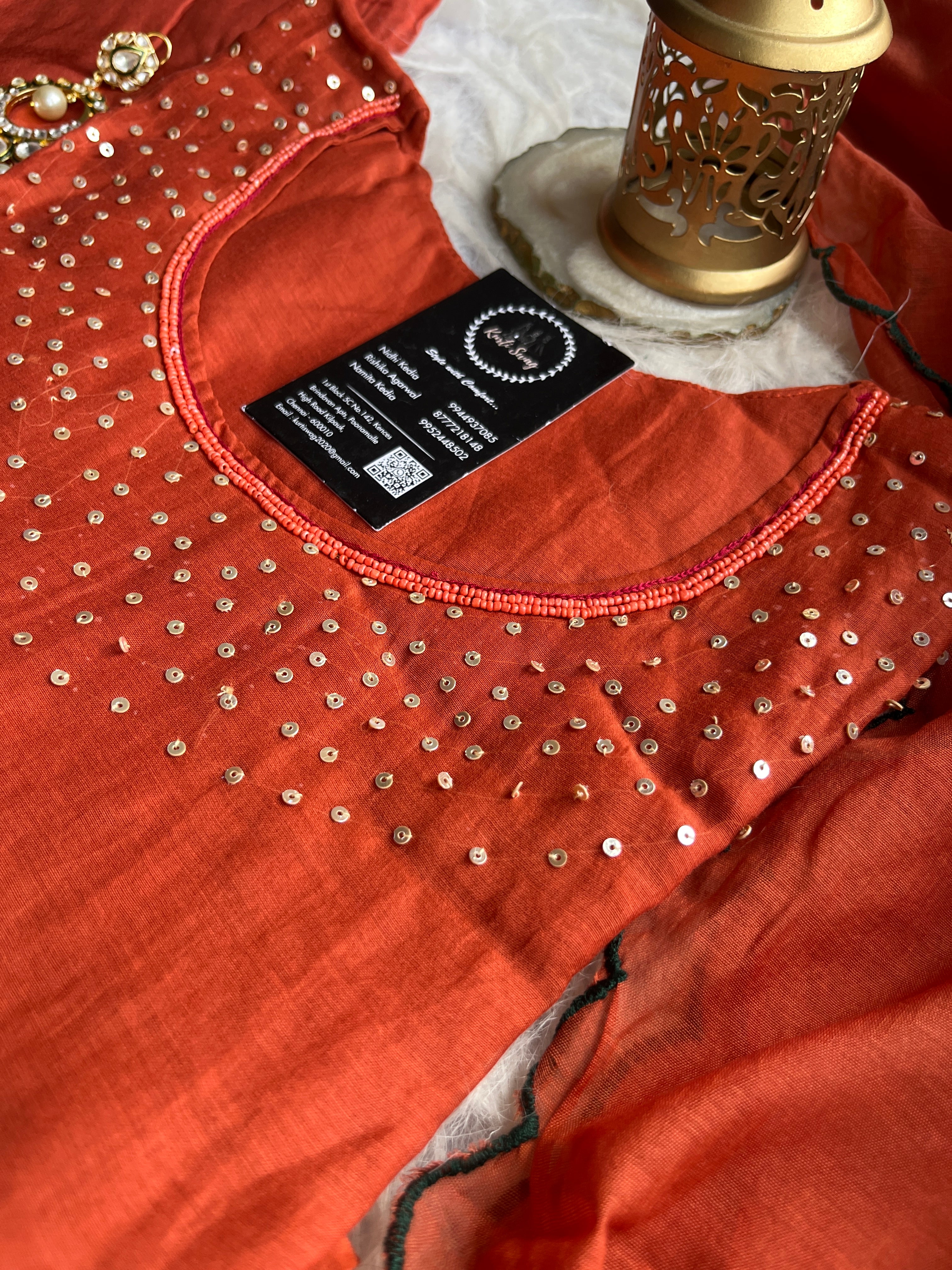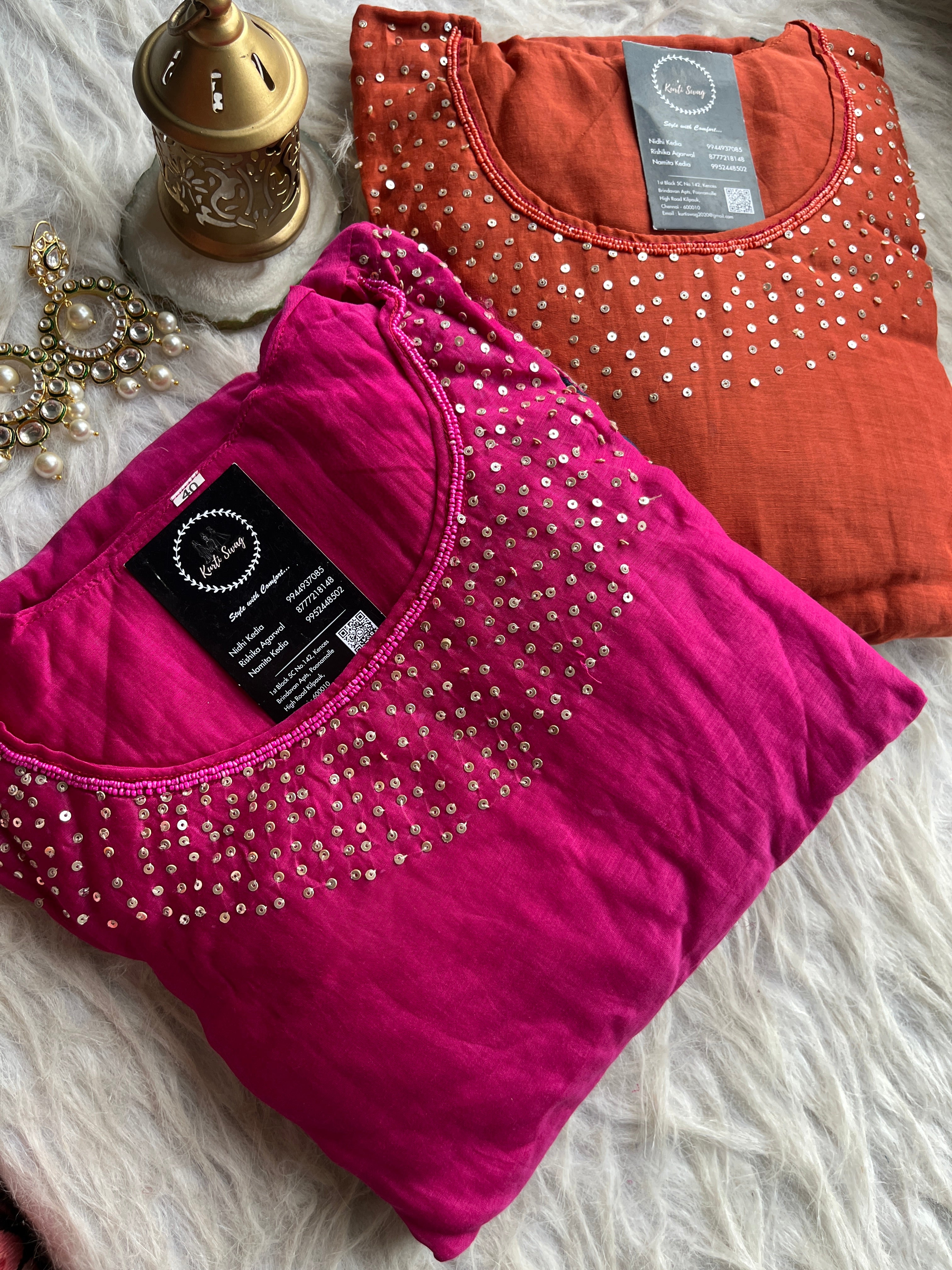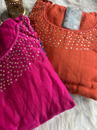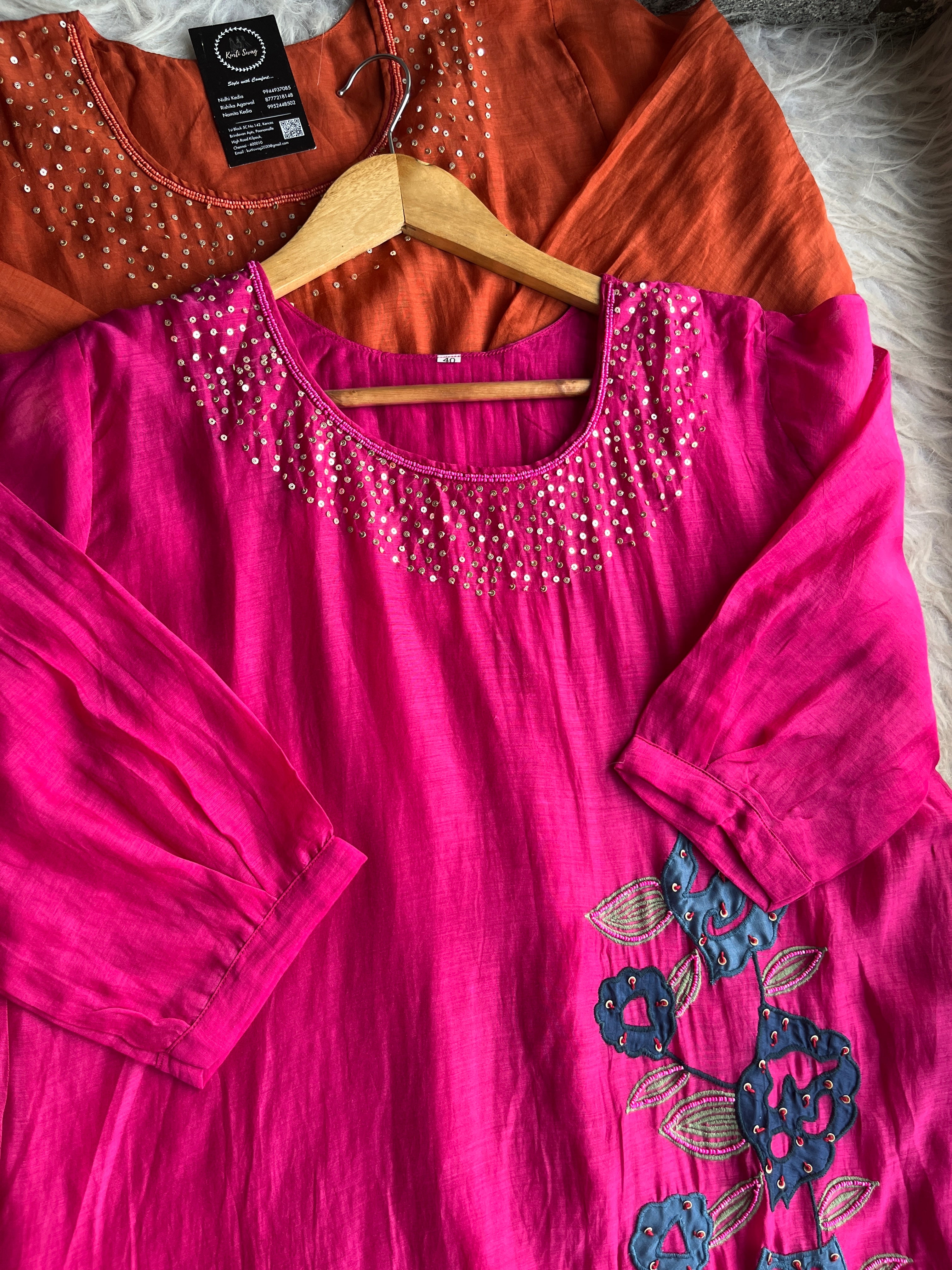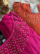 ✅ Premium Mul Chanderi Kurti With Sequin Work On The Neckline Of The Kurti