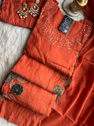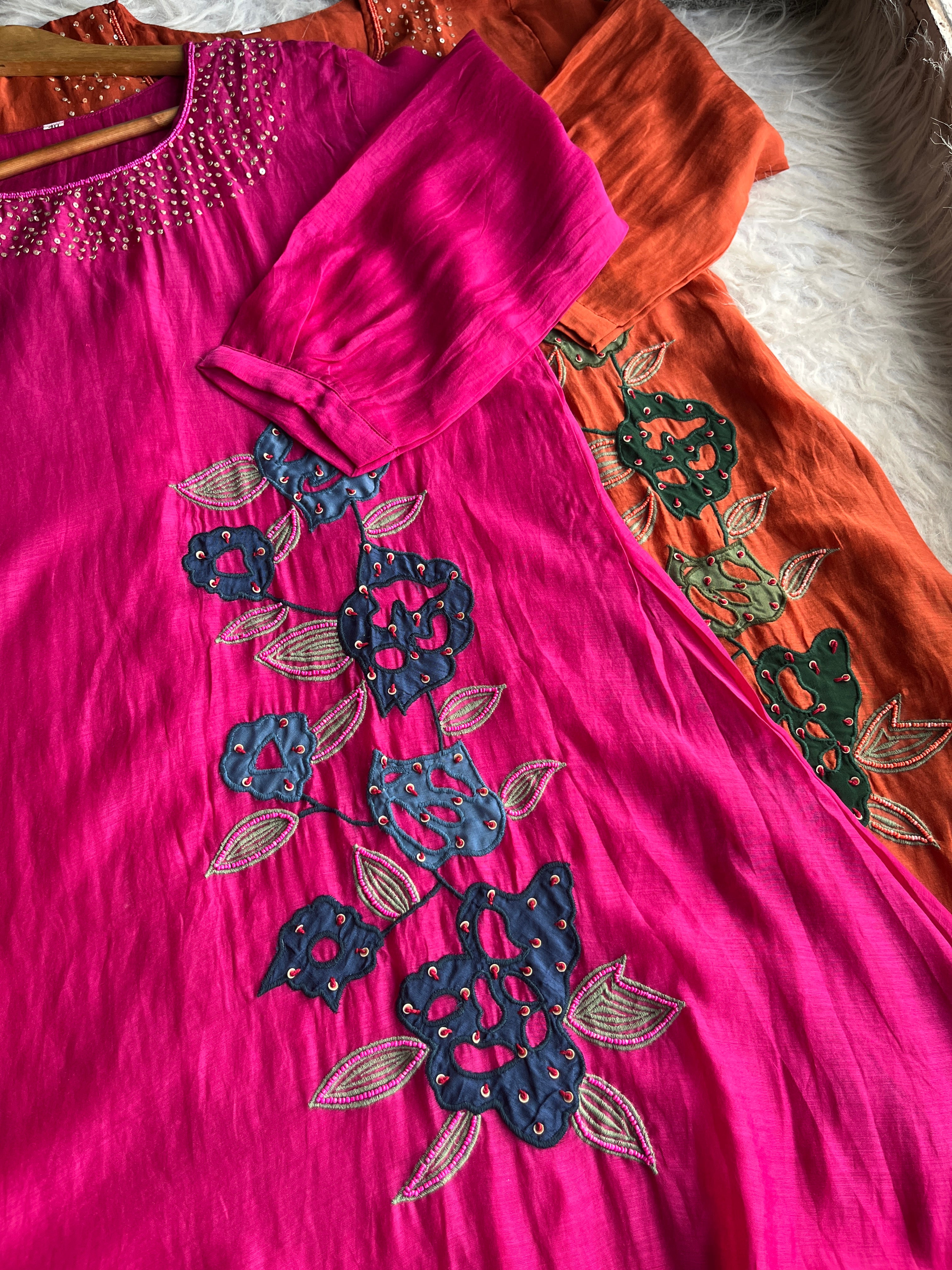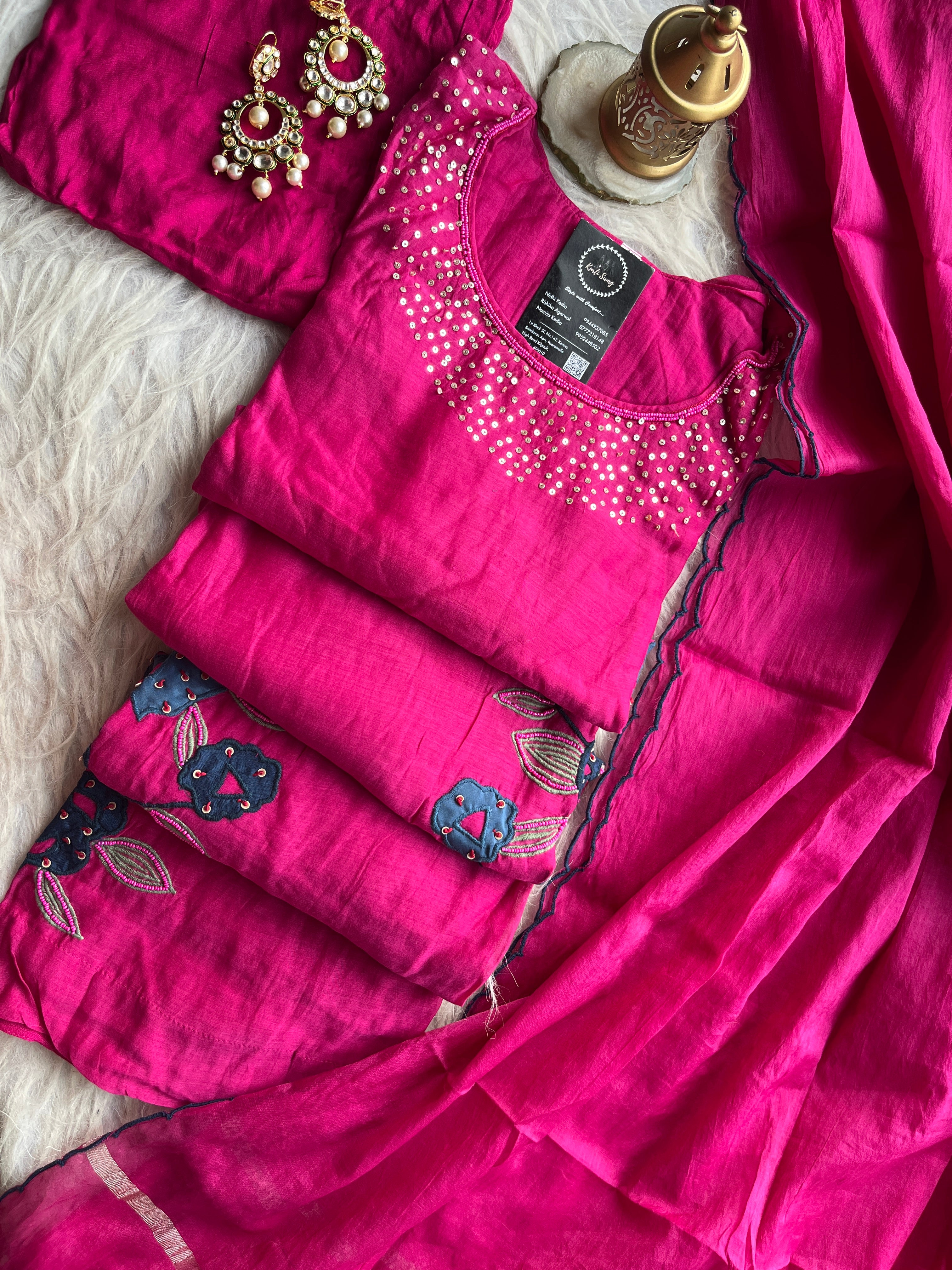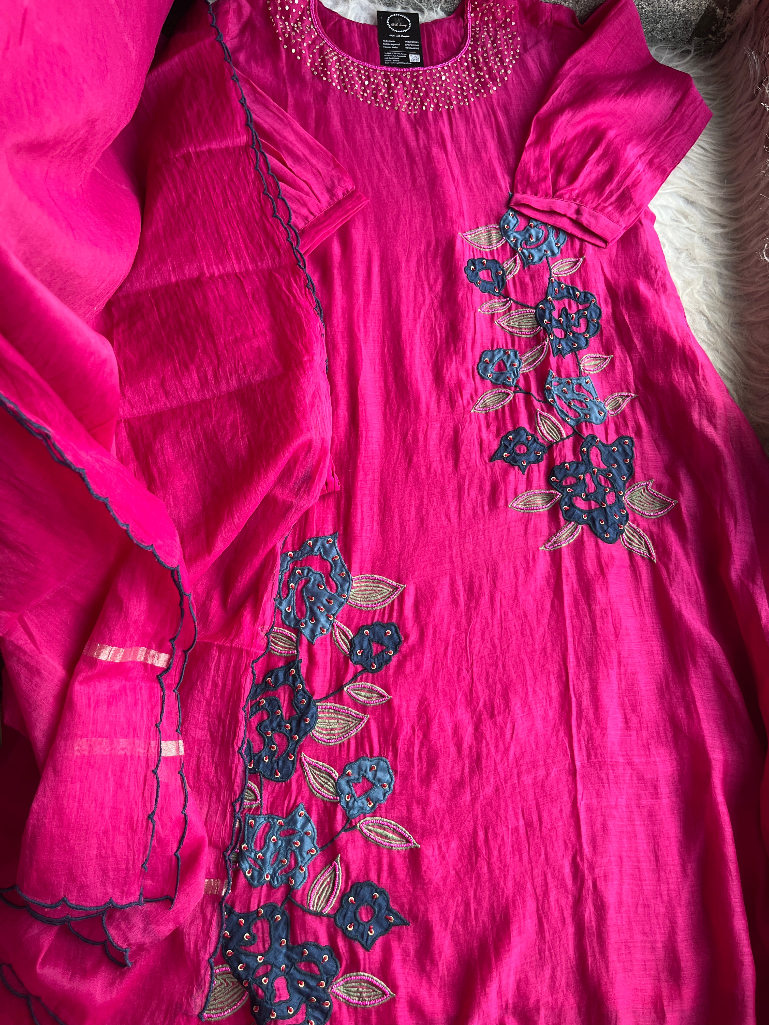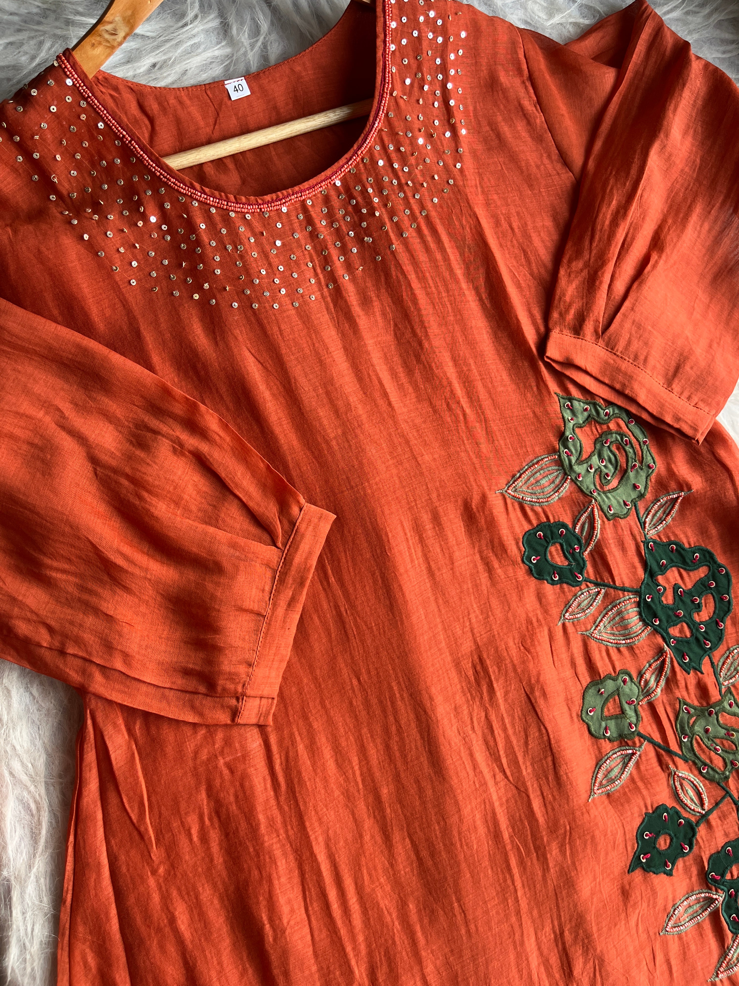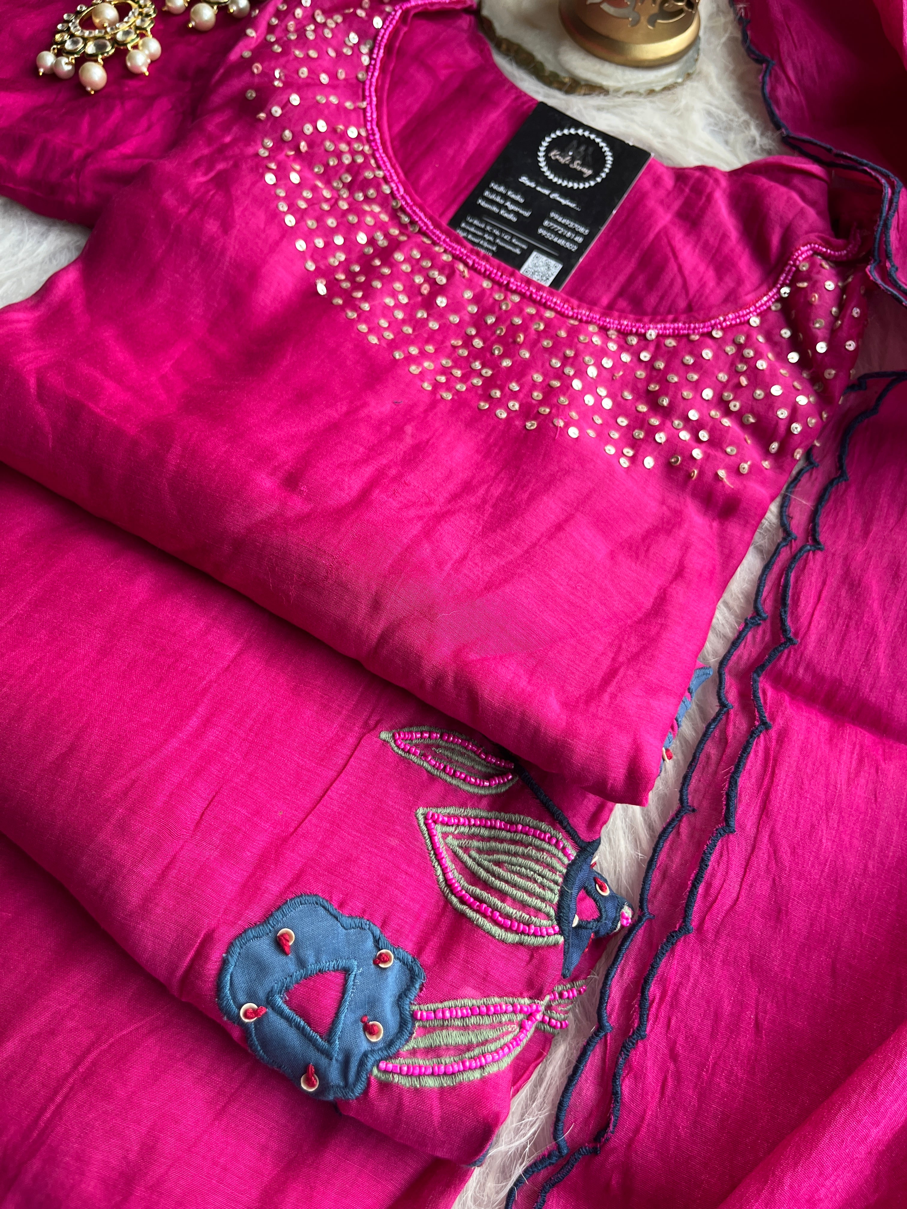 ✅ Premium Mul Chanderi Kurti With Sequin Work On The Neckline Of The Kurti