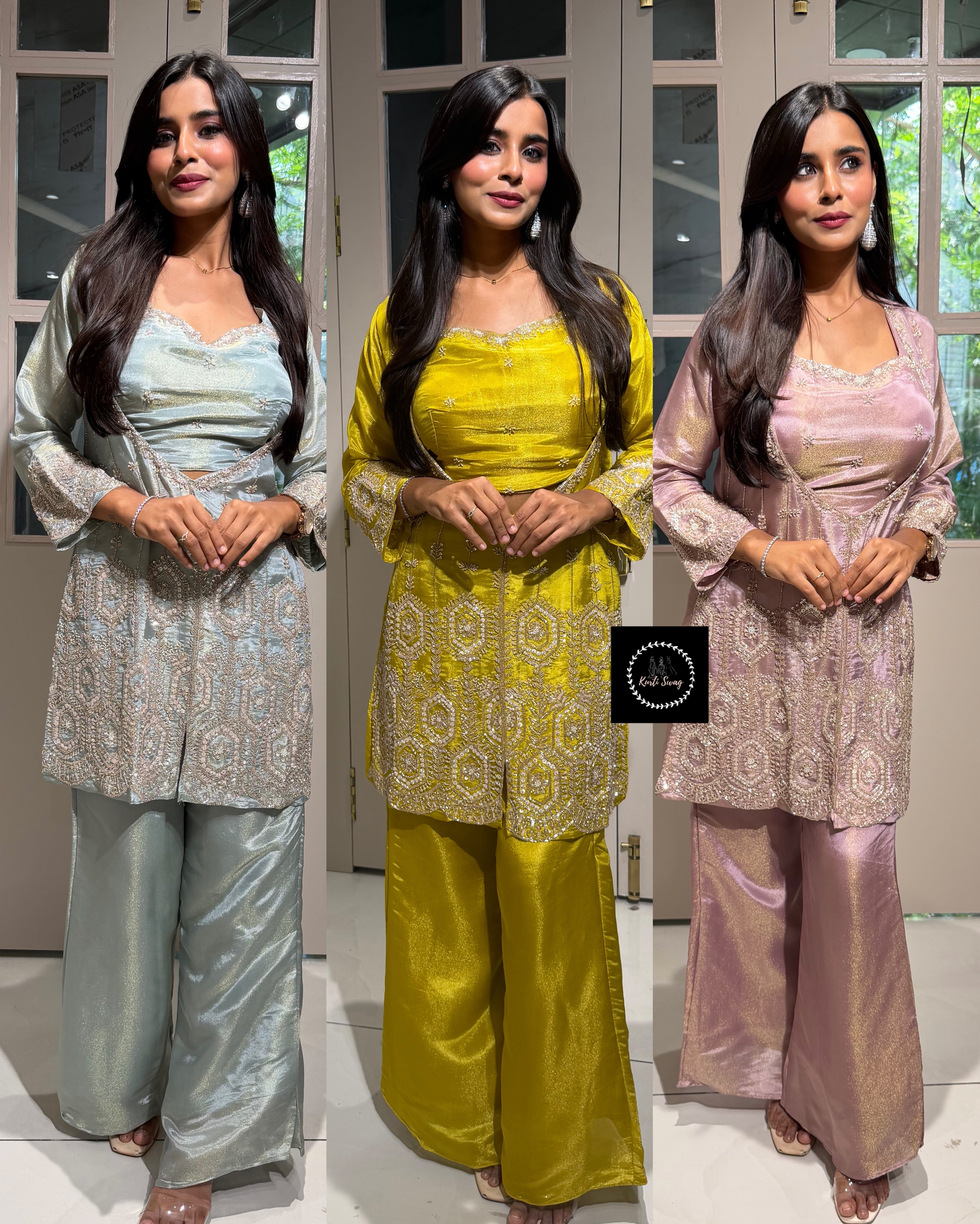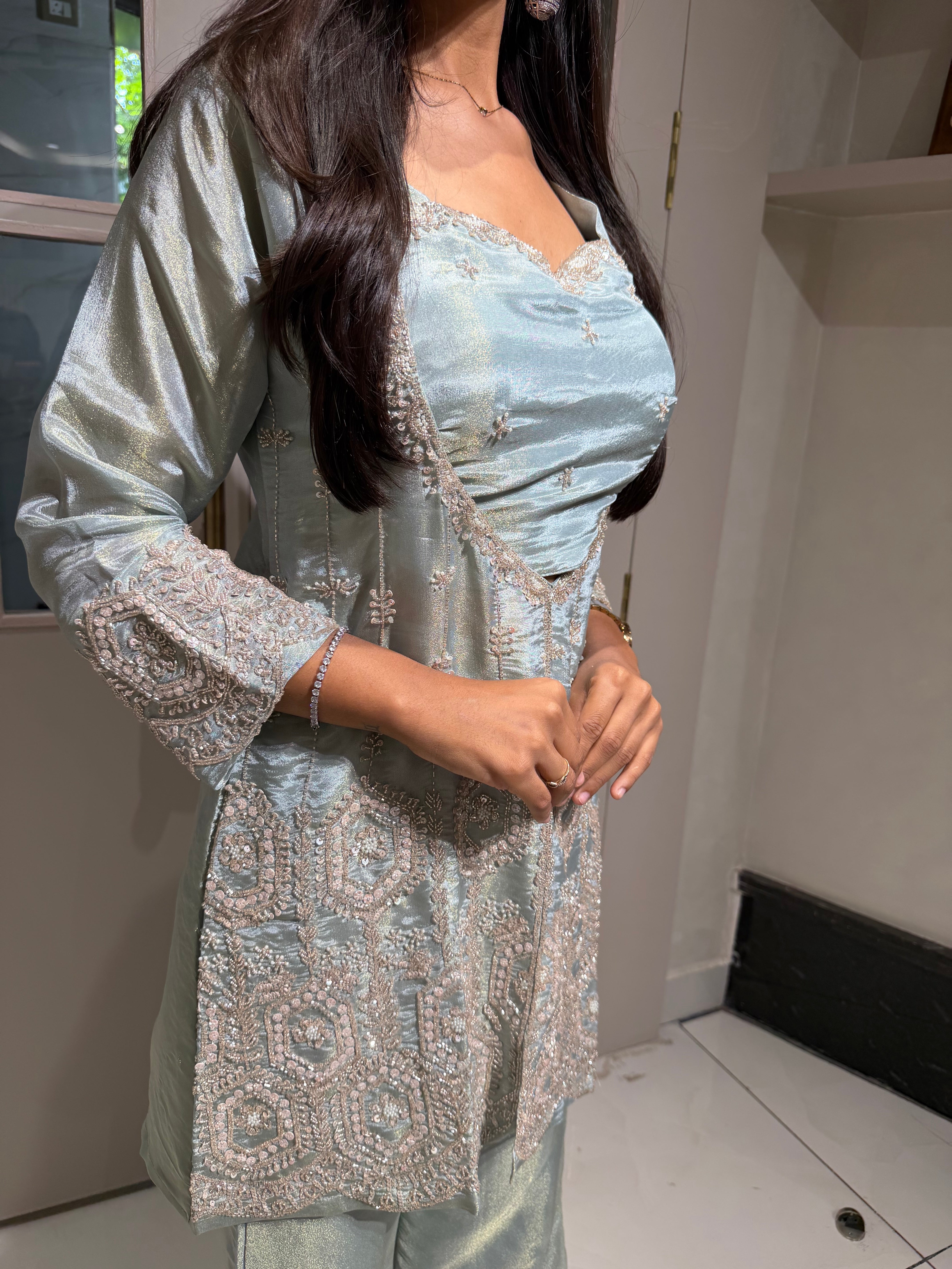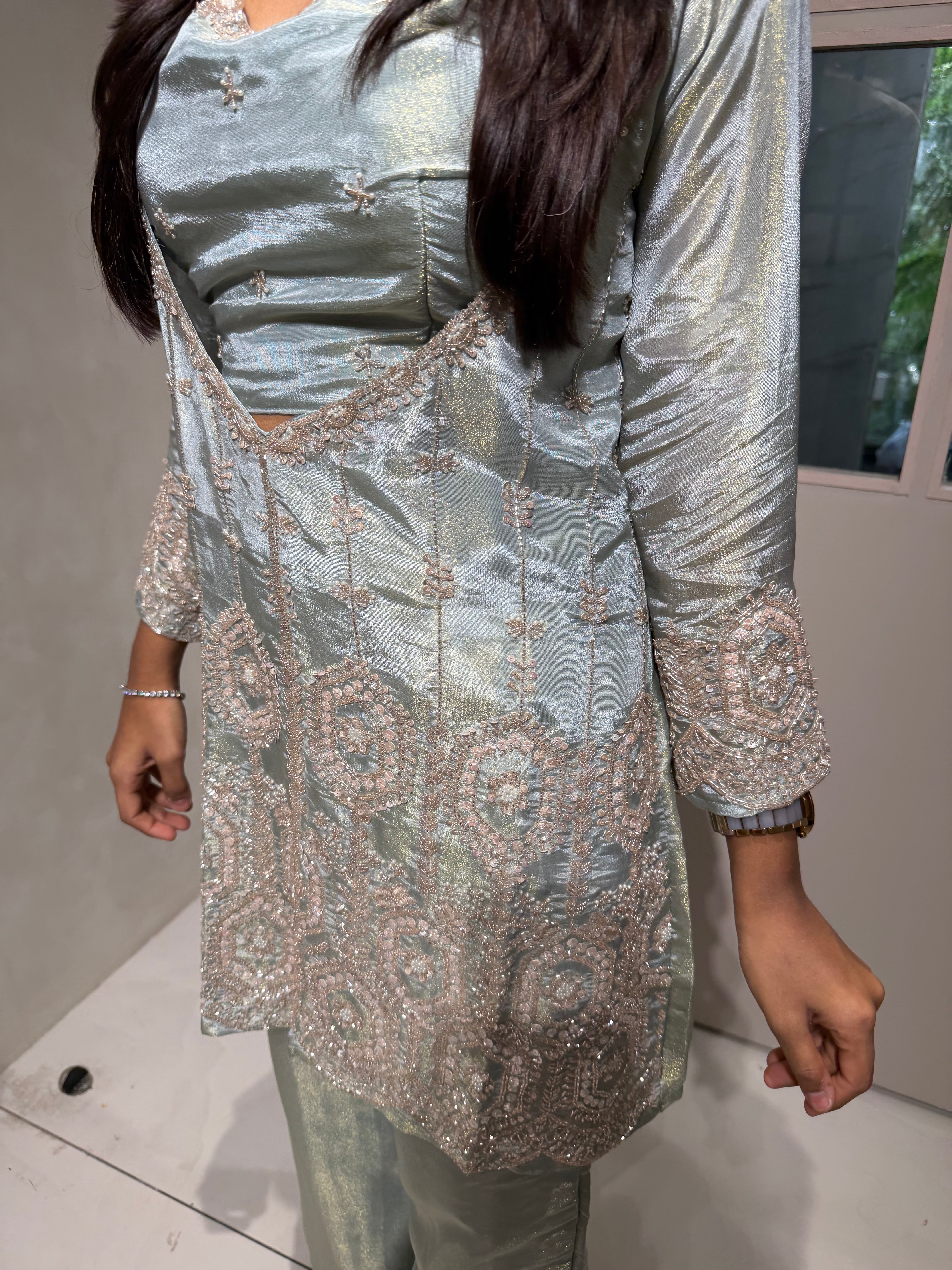 ✅ Premium Tissue Silk Kurti With Sequin And Cutdaana Handwork On The Kurti