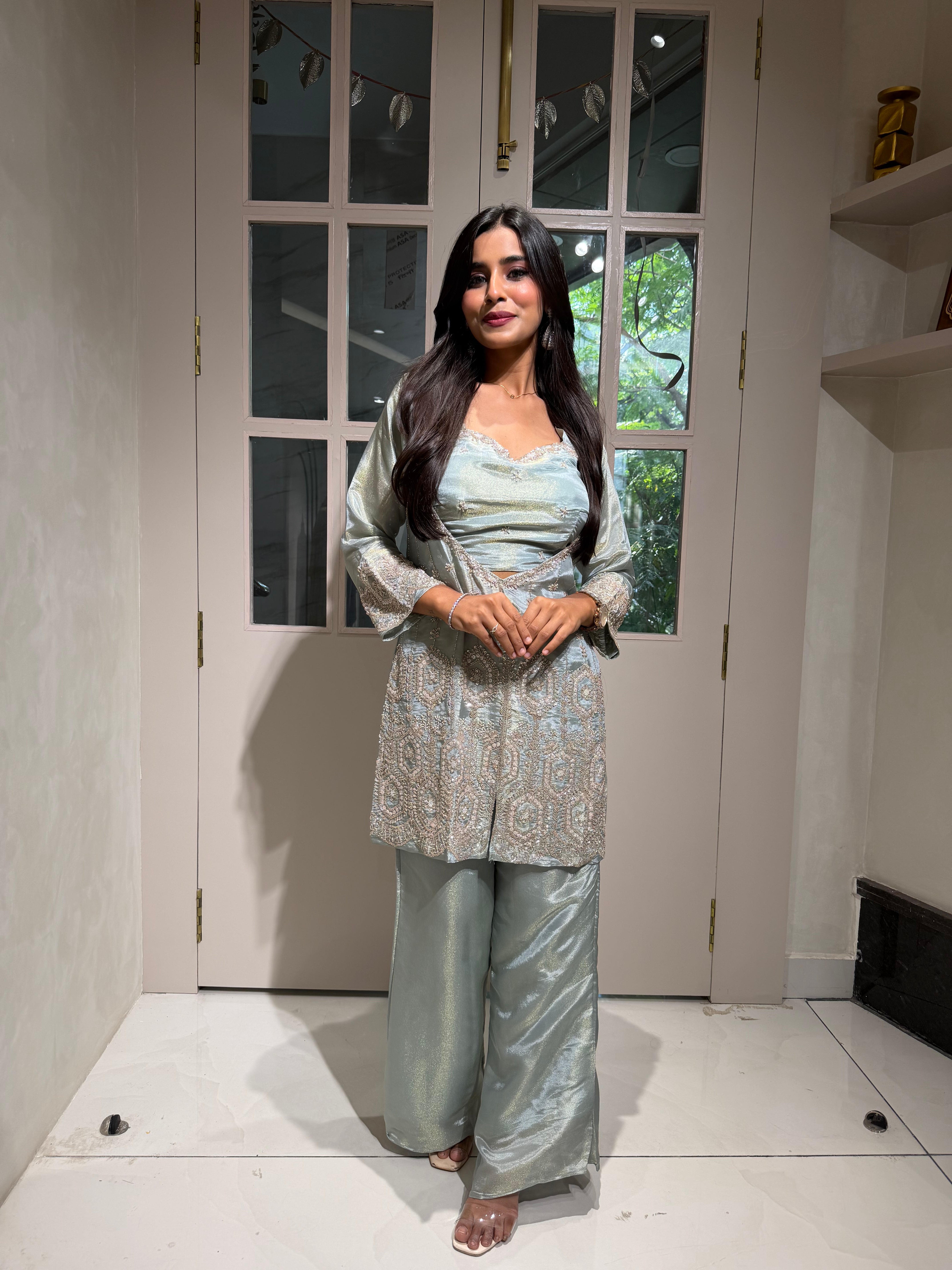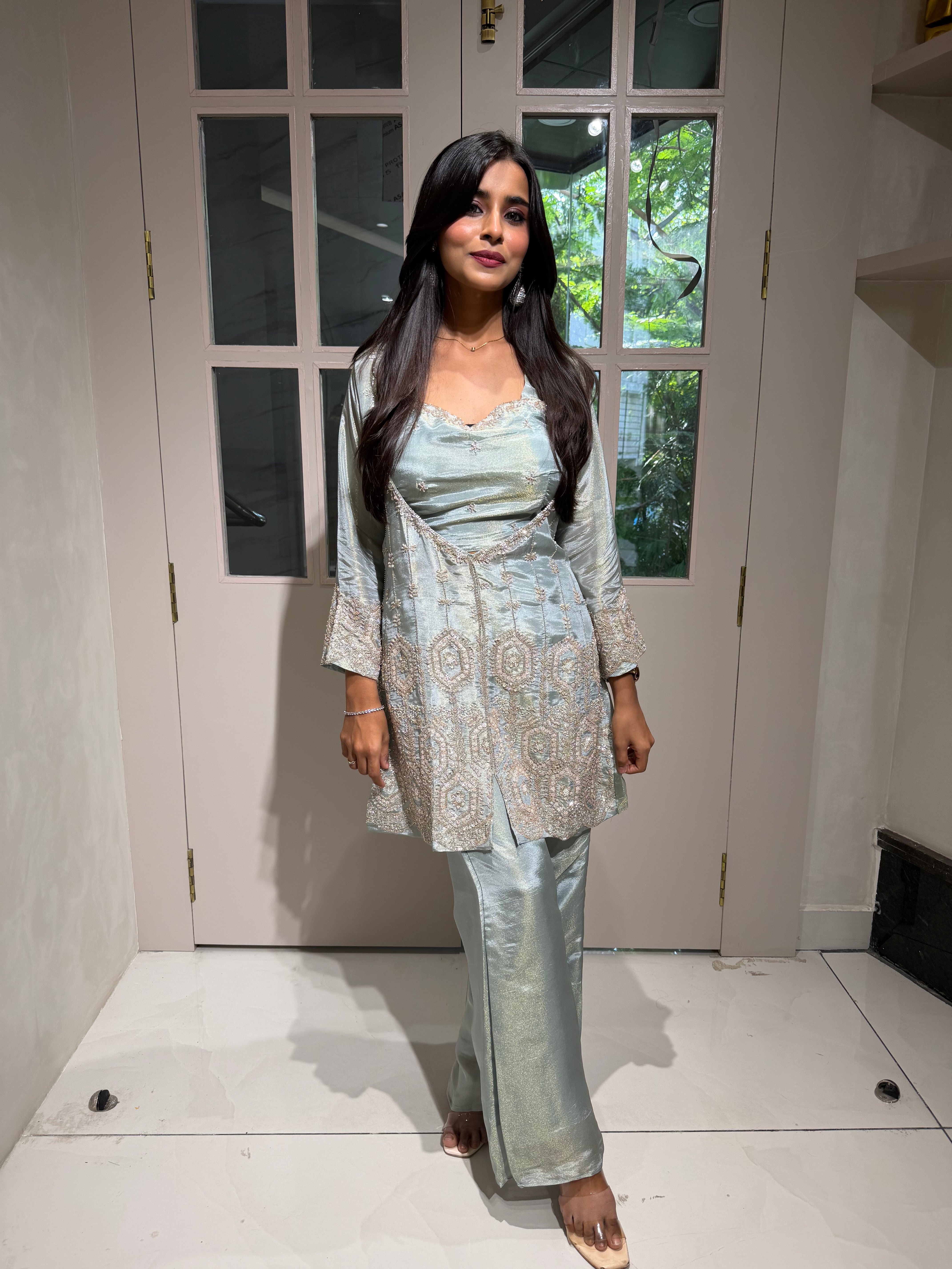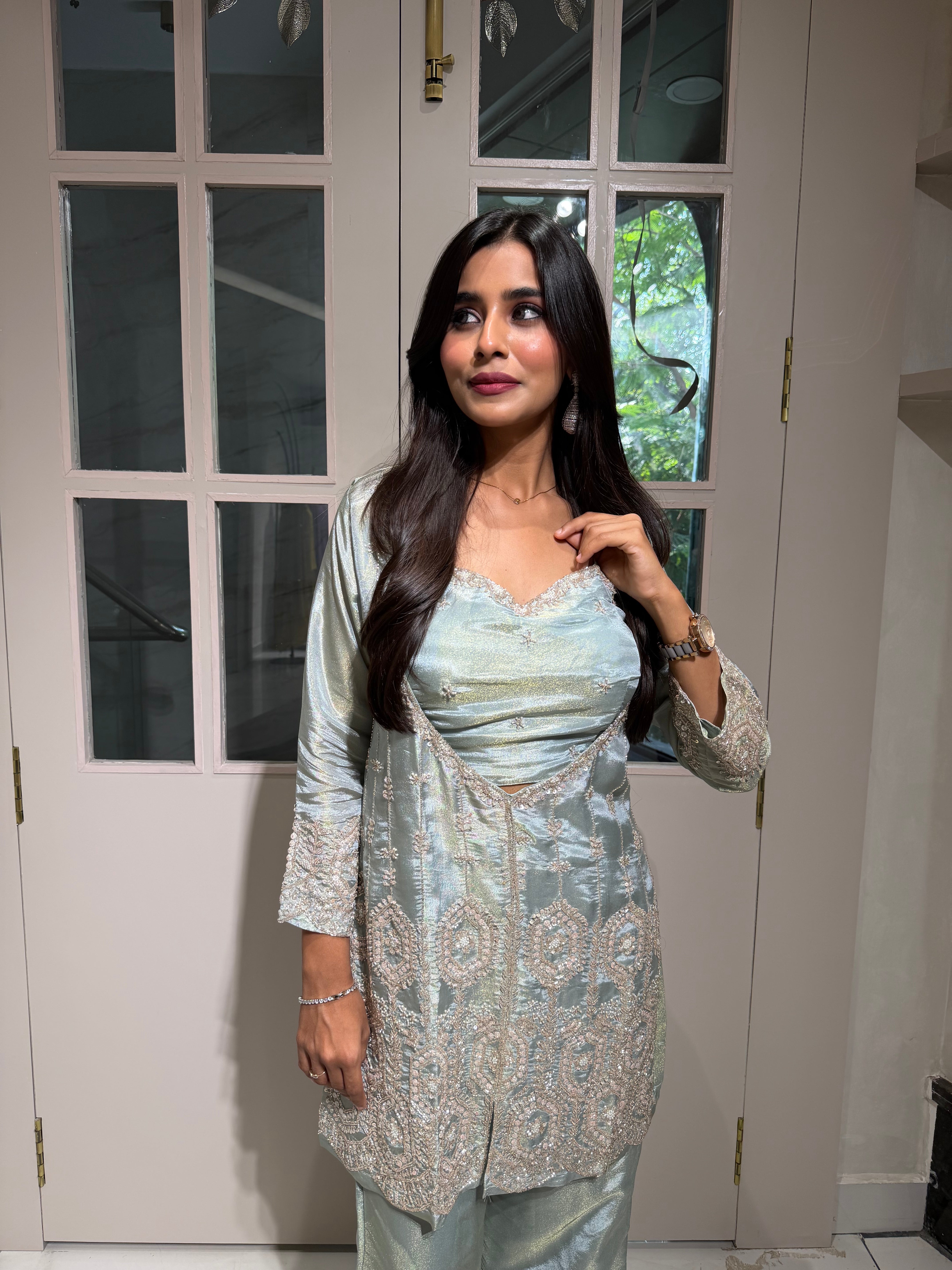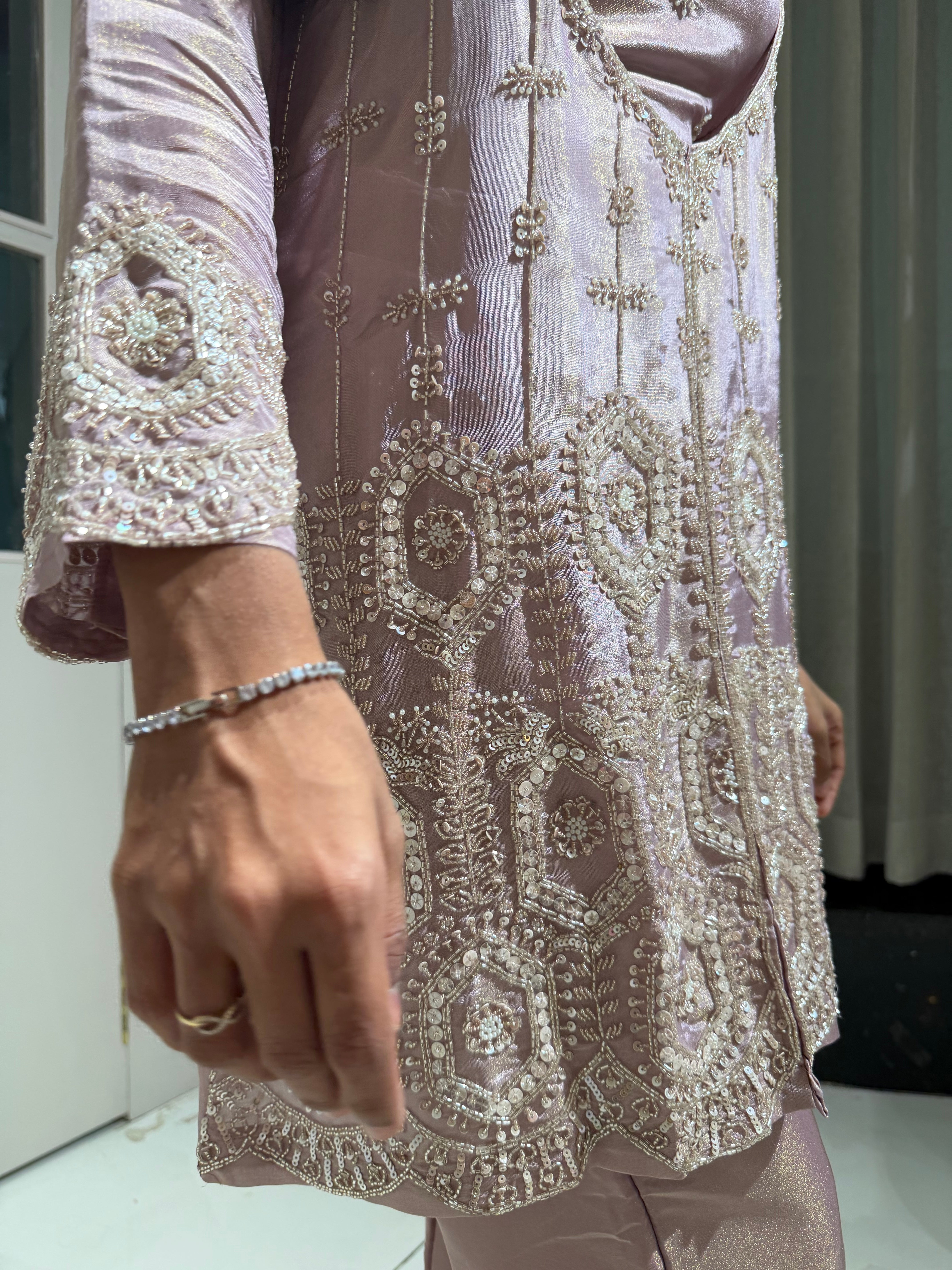 ✅ Premium Tissue Silk Kurti With Sequin And Cutdaana Handwork On The Kurti