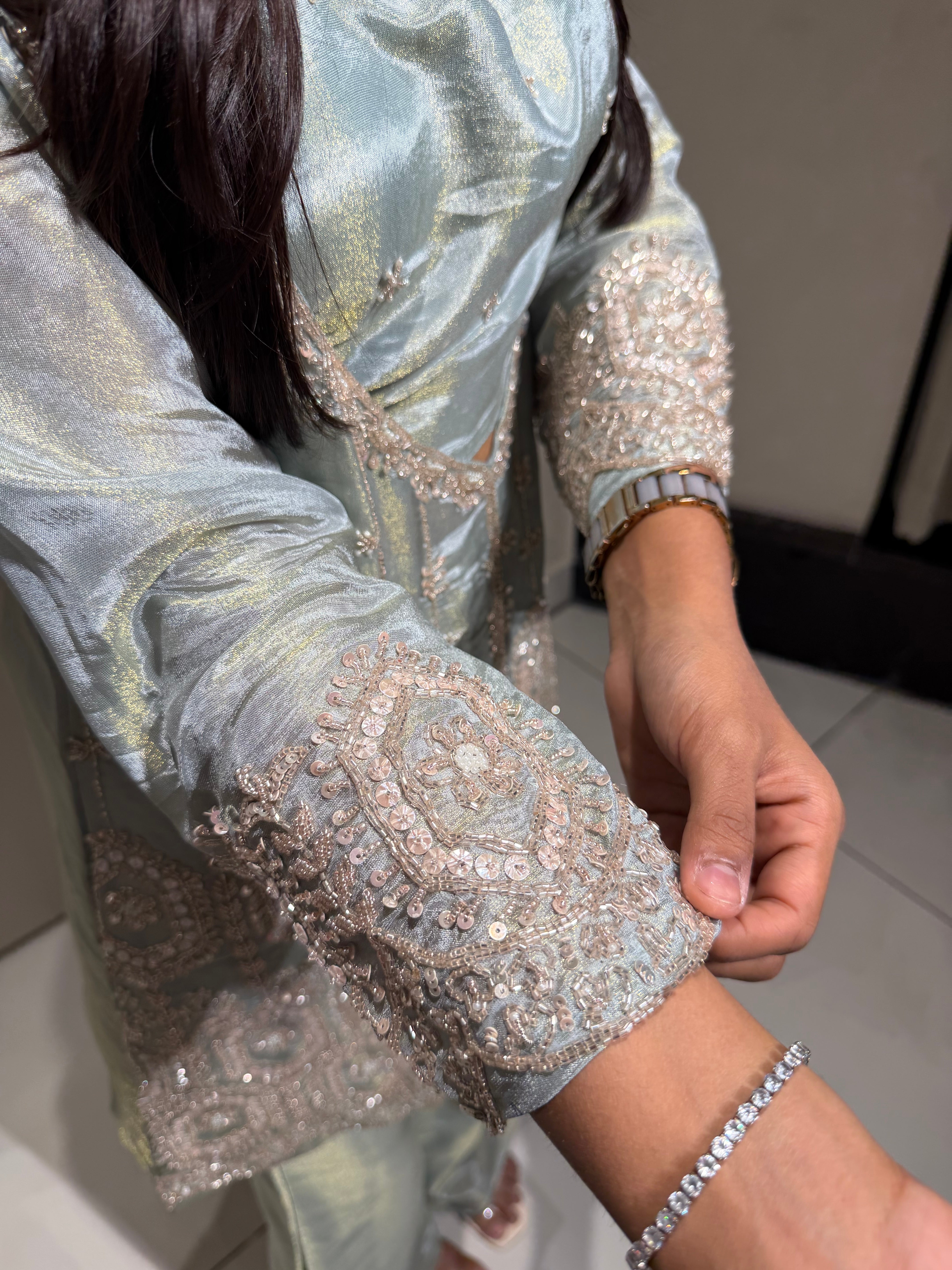 ✅ 3/4 Sleeves With Cutdana & Sequin Handwork
