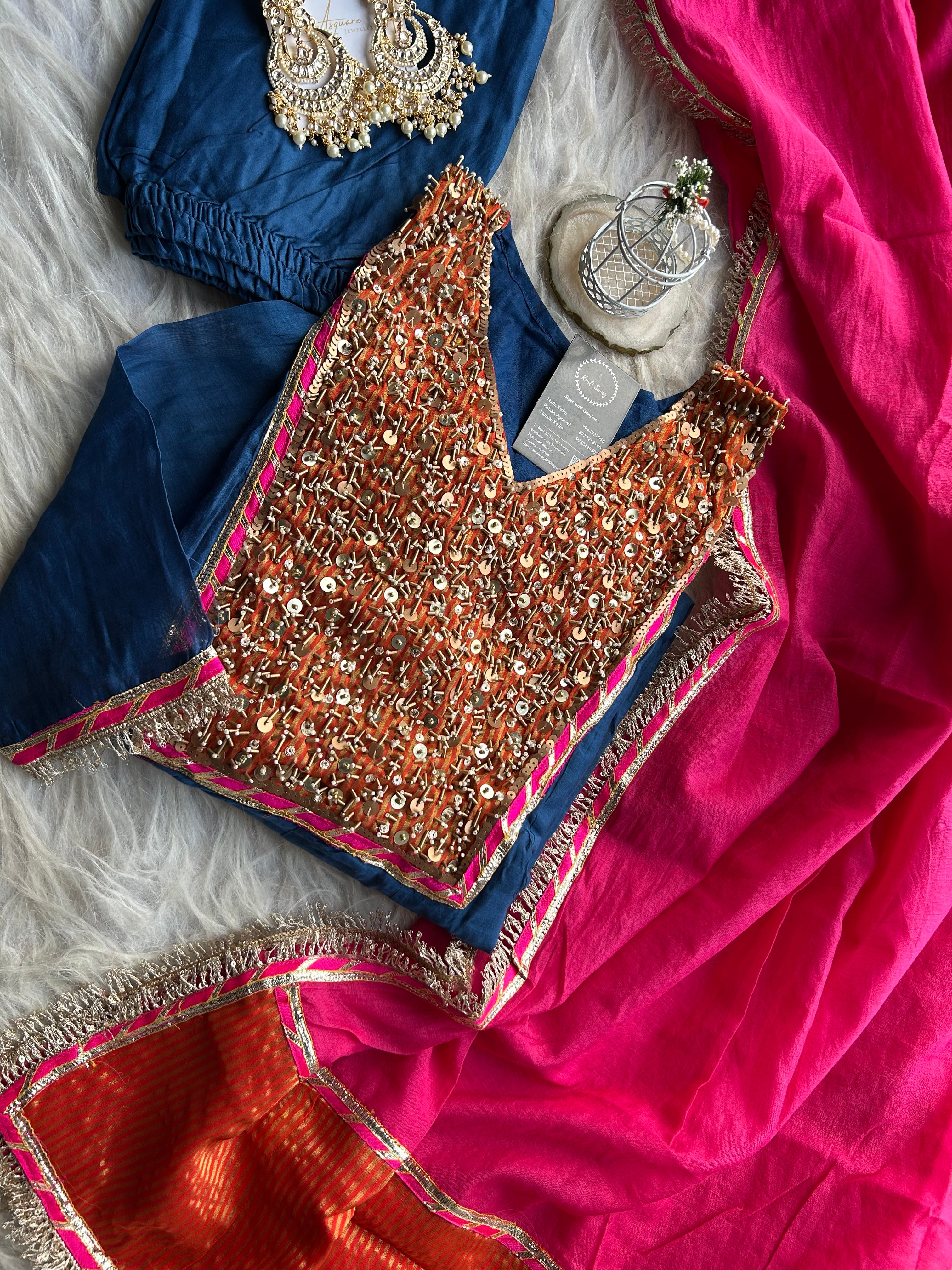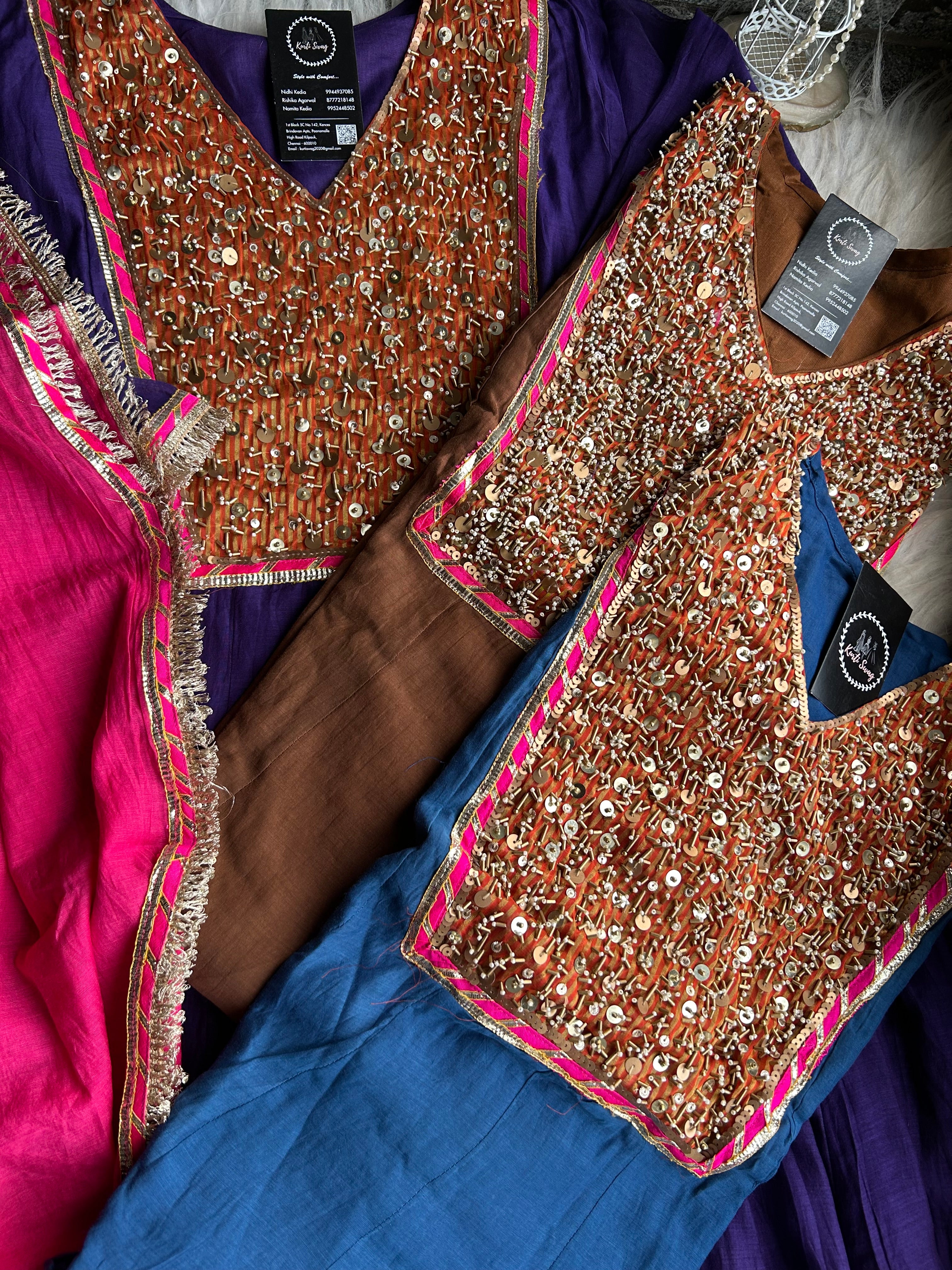 ✅ Premium Mul Chanderi Kurti With Heavy Matt Sequin Work On The Yoke Of The Kurti