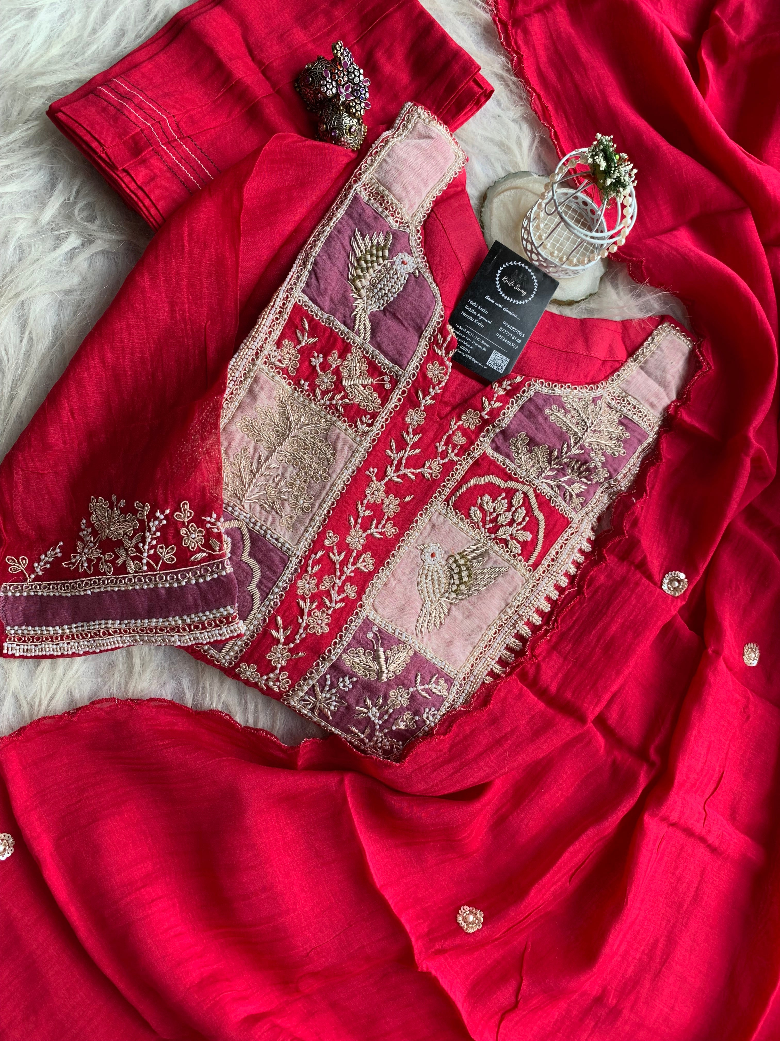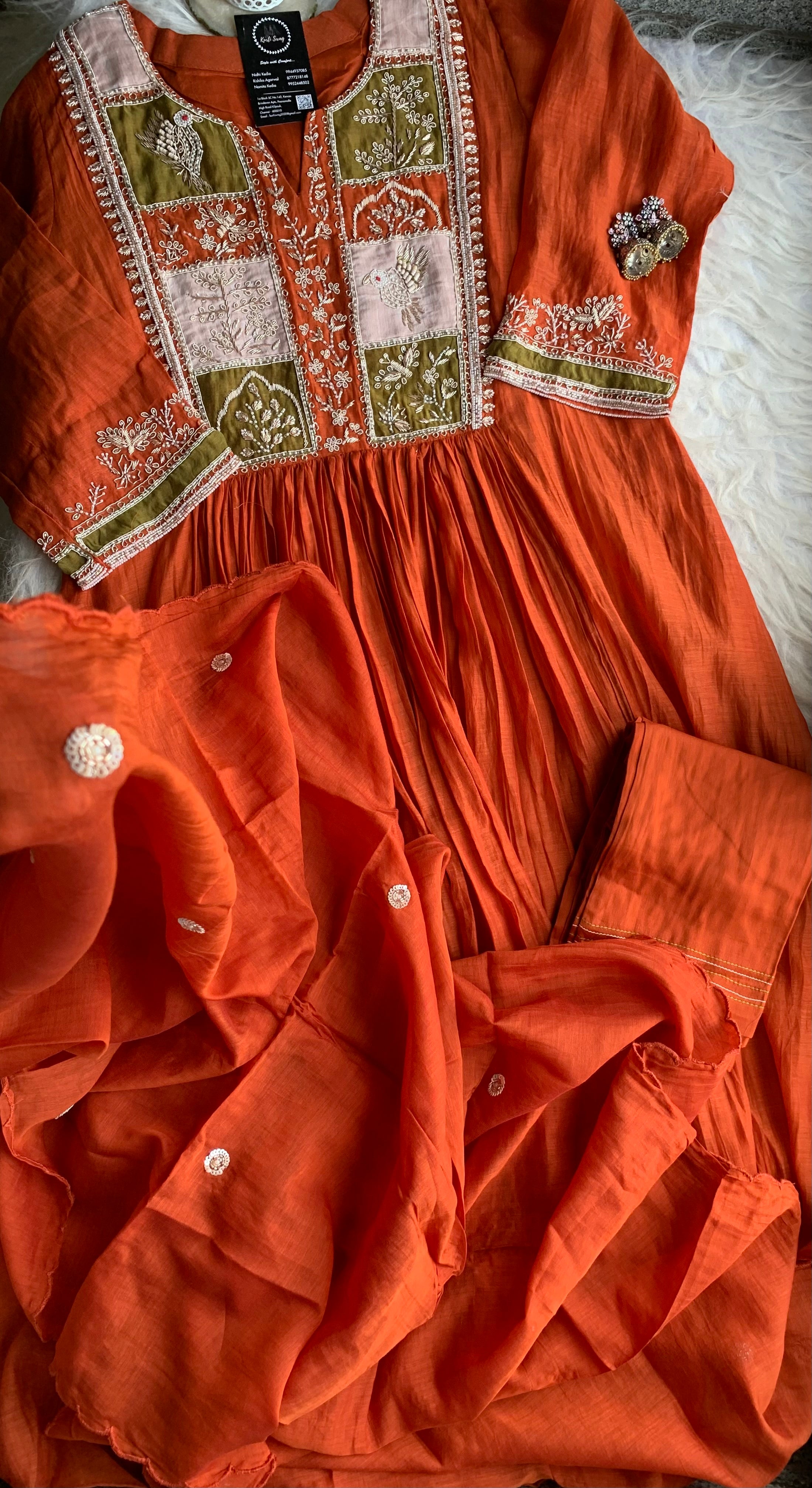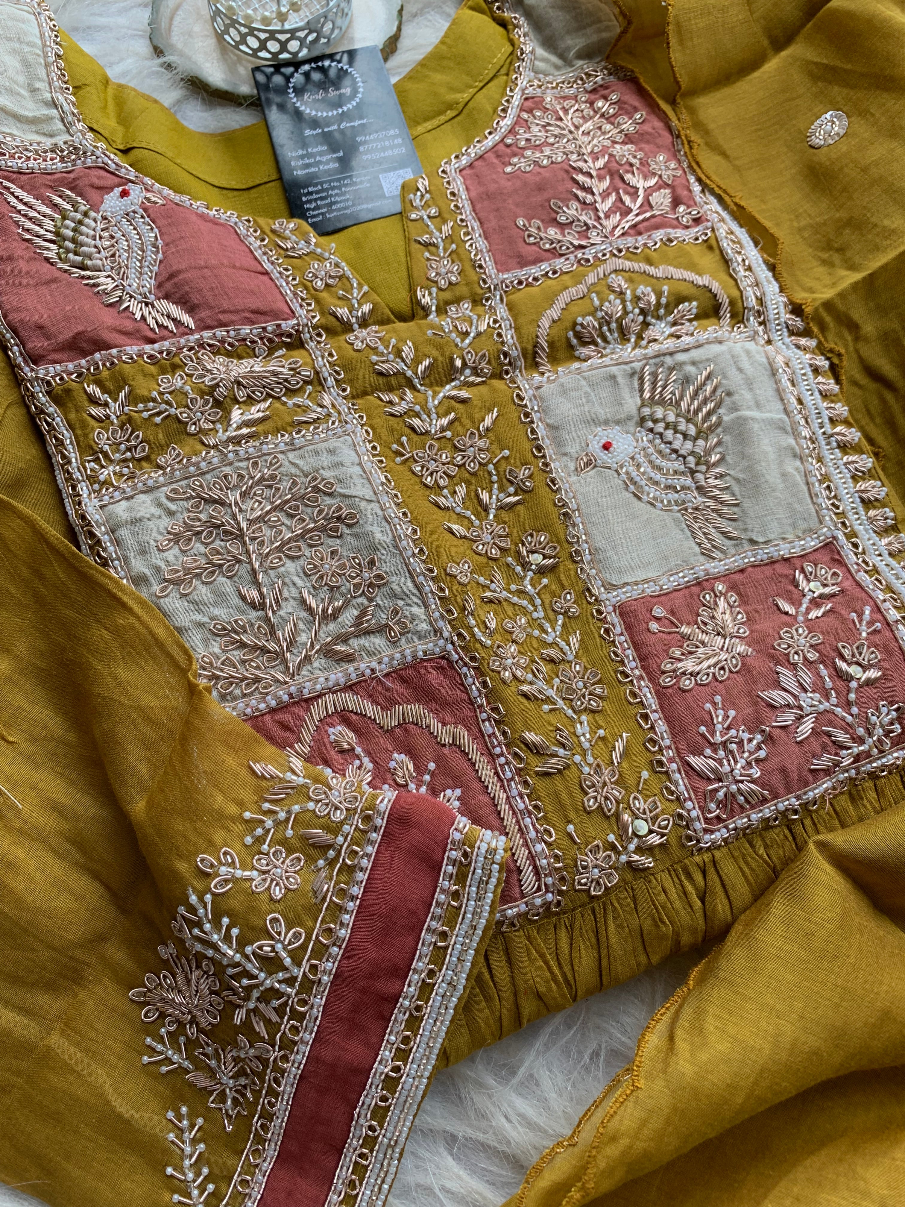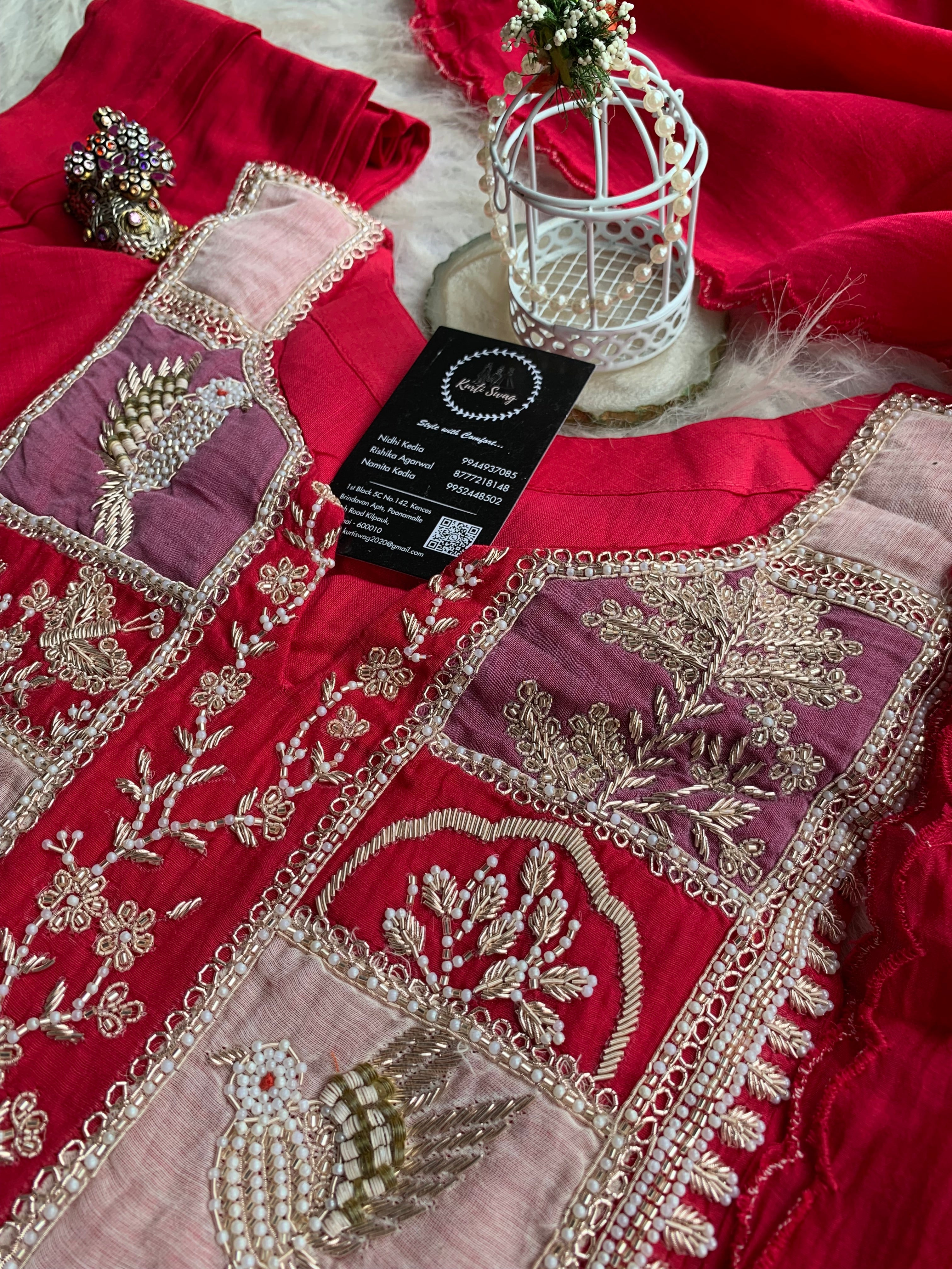 “ESHWARI” Premium Mul Chanderi Zardosi Handwork A Line Suit Set ✨💕♥️