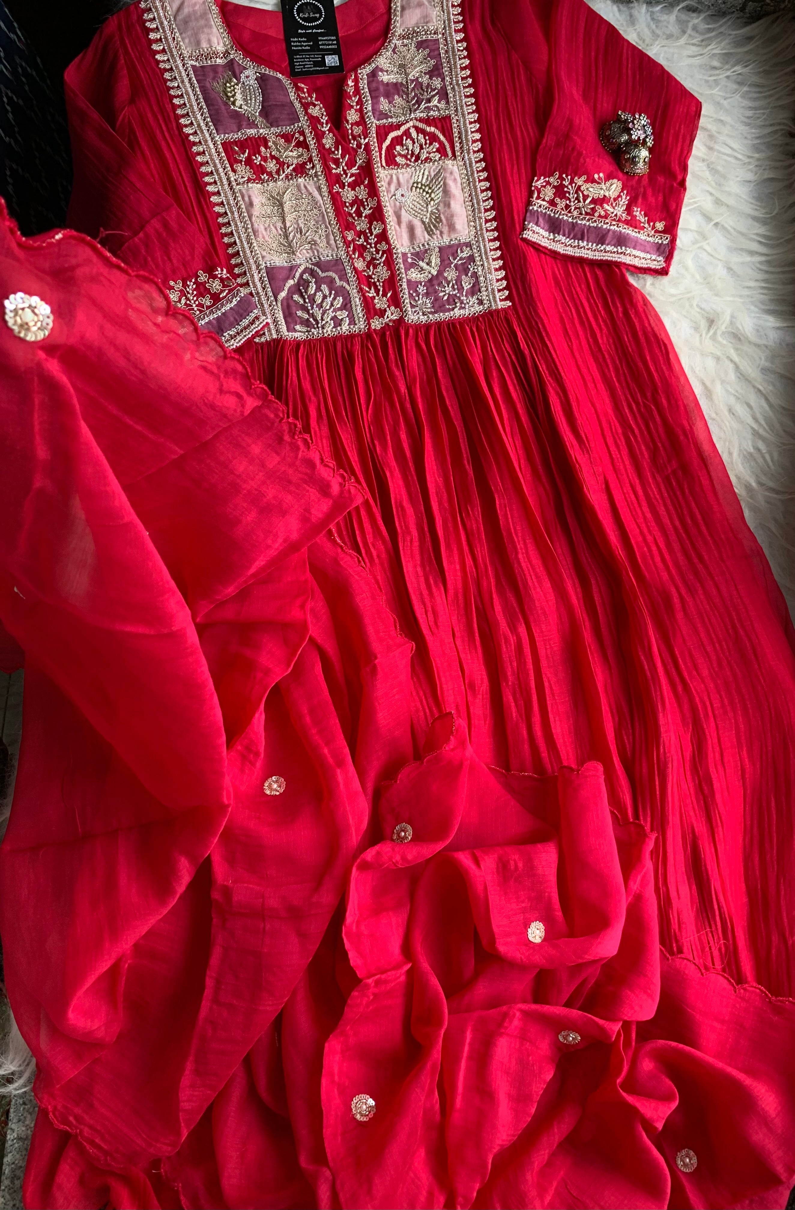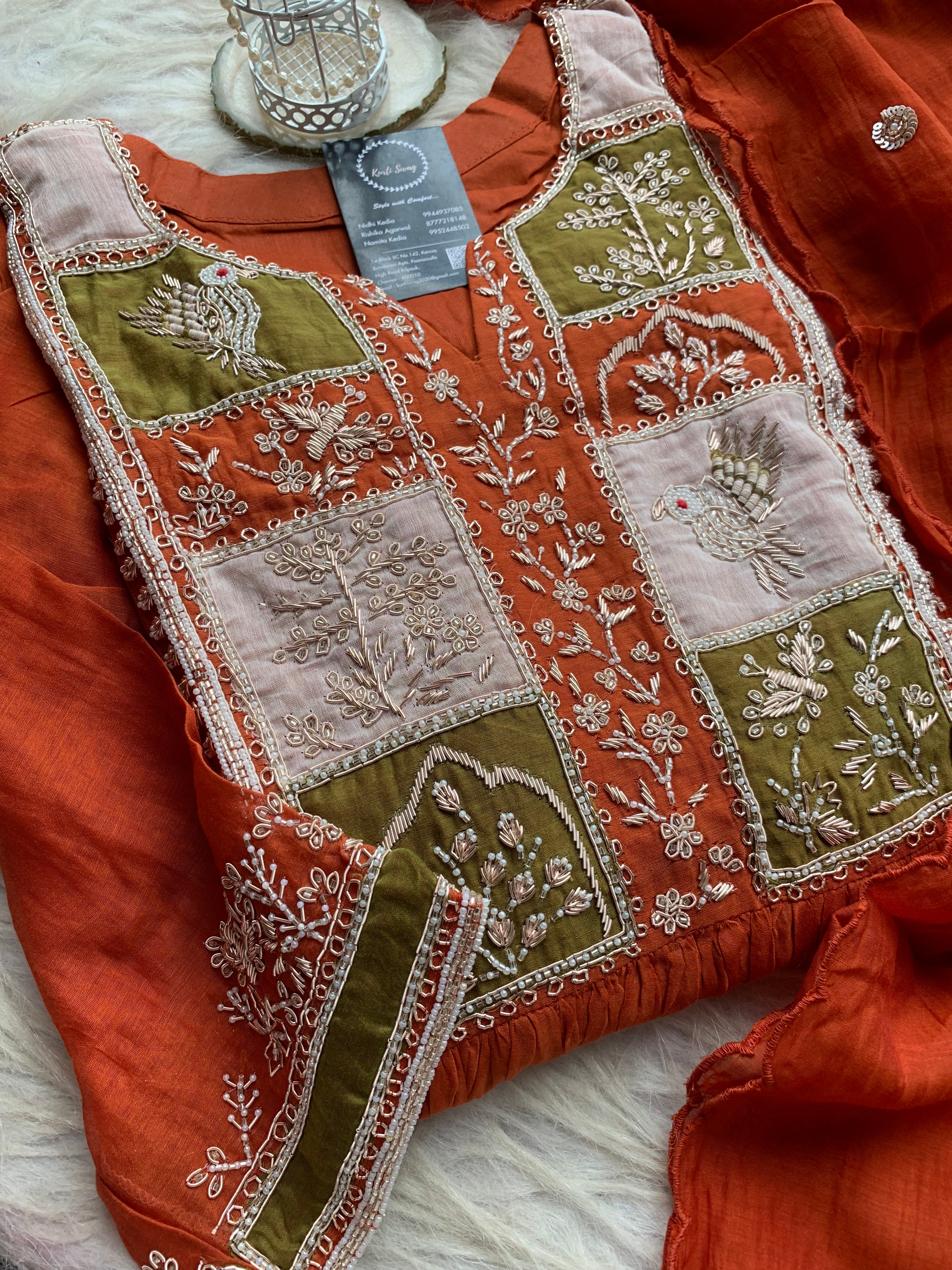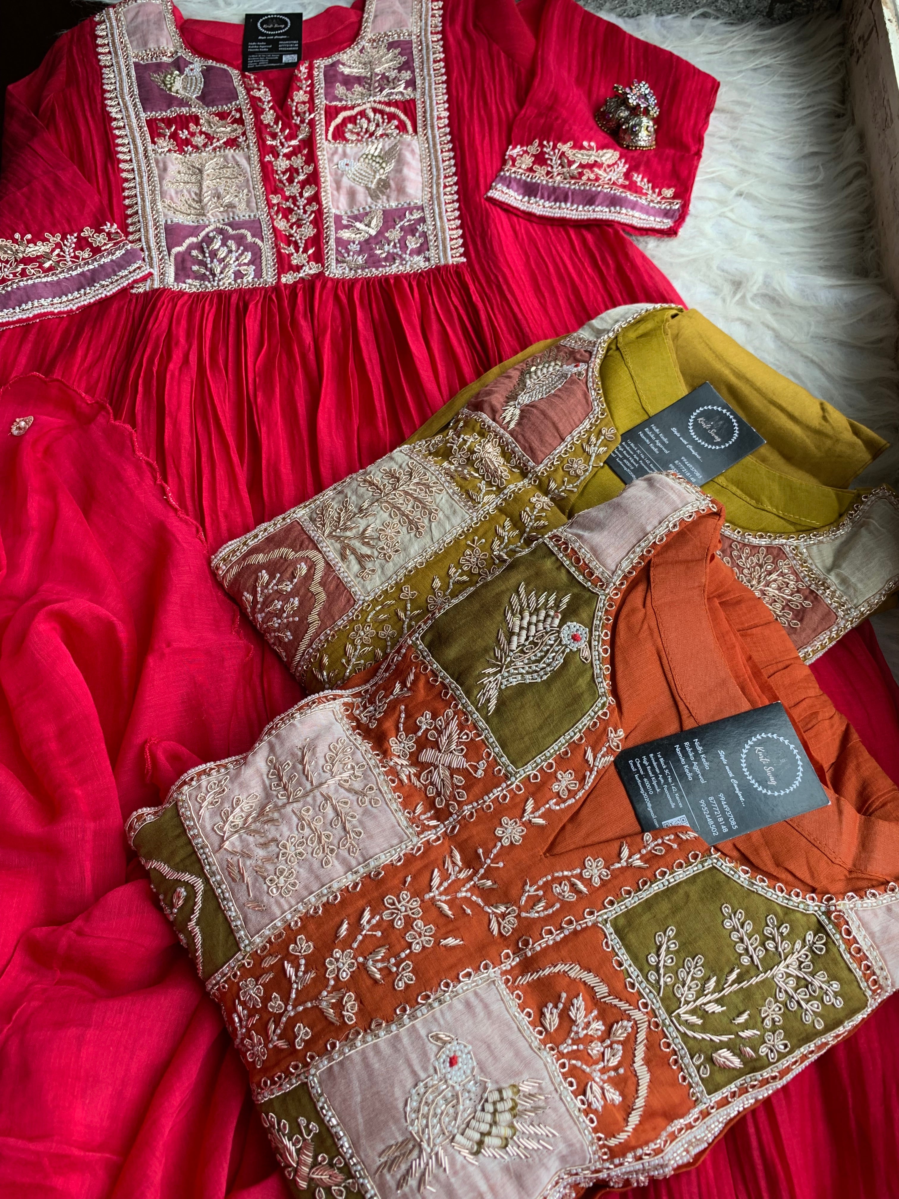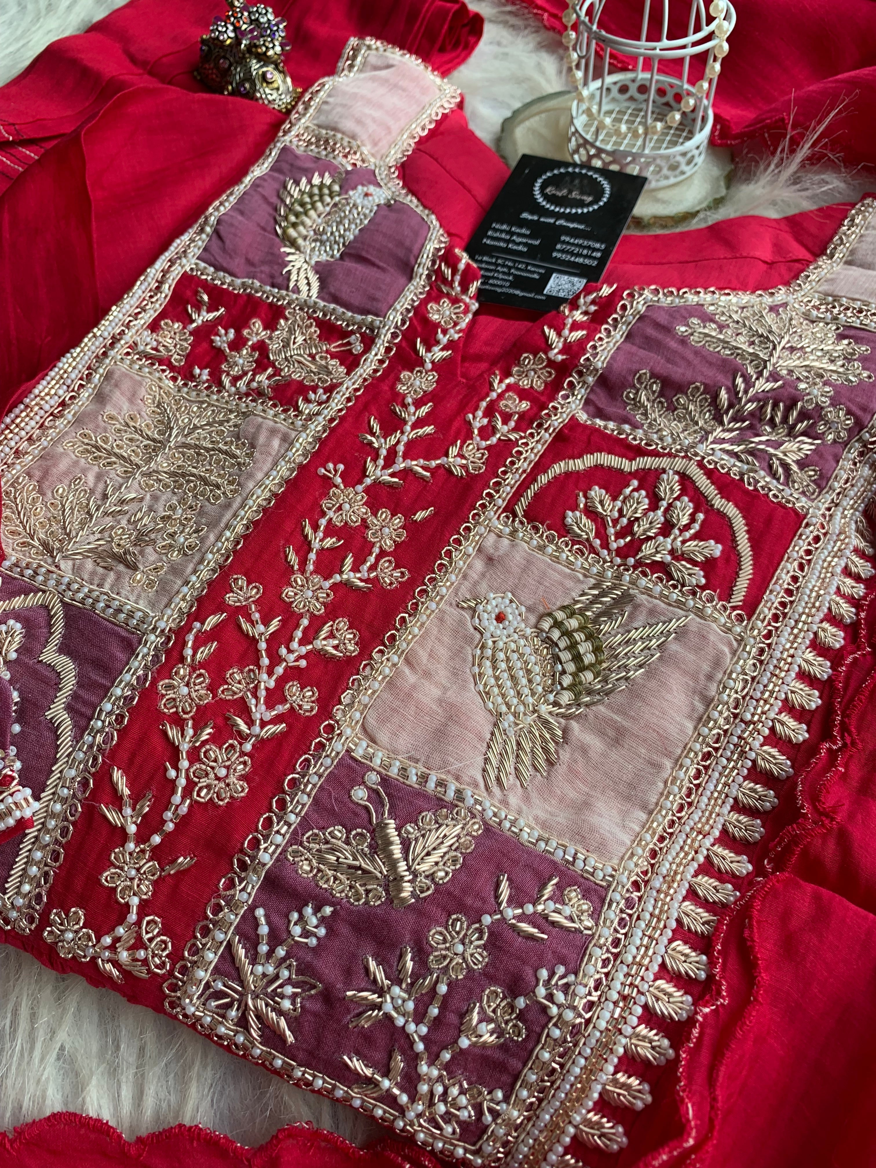 “ESHWARI” Premium Mul Chanderi Zardosi Handwork A Line Suit Set ✨💕♥️