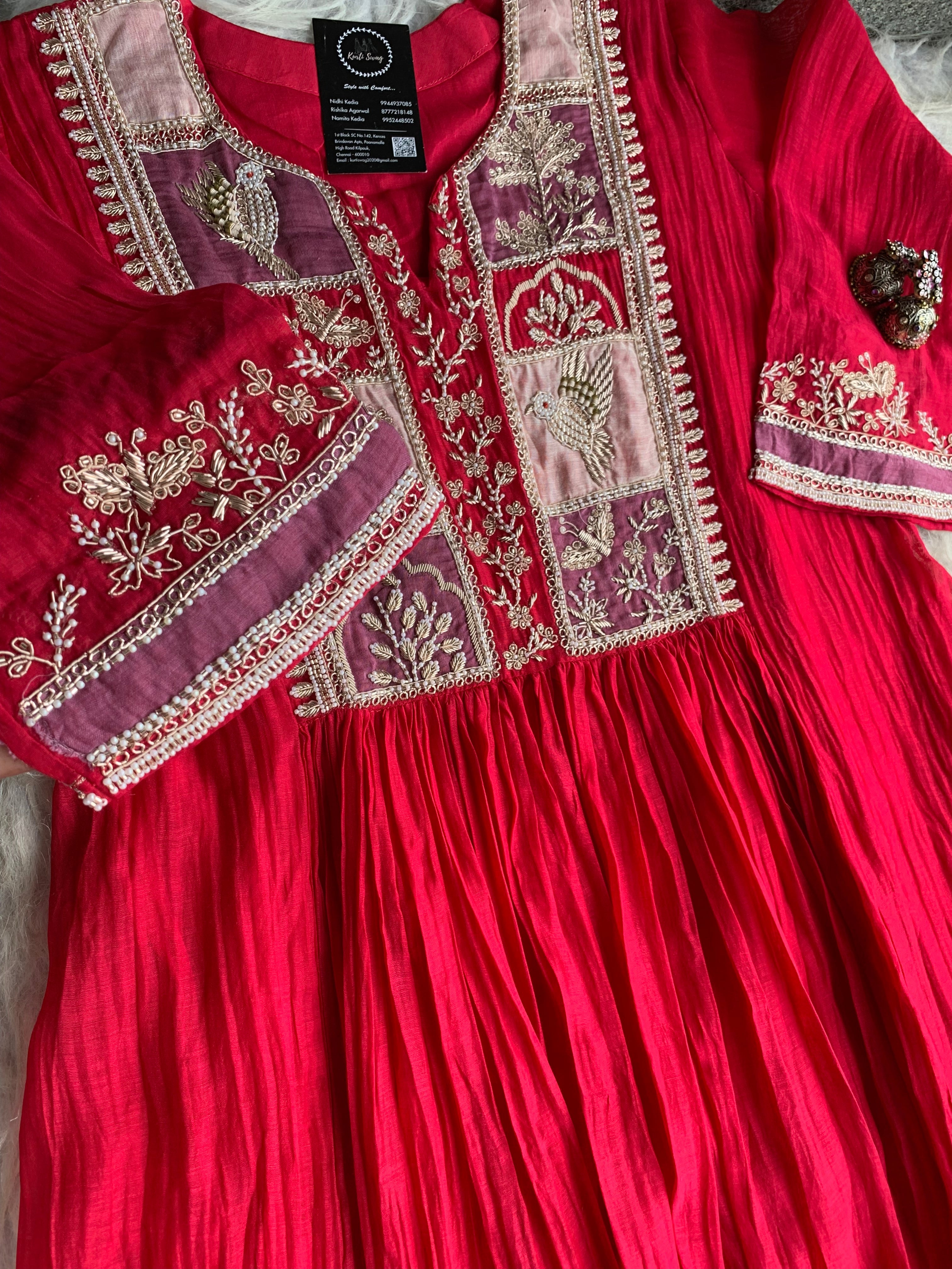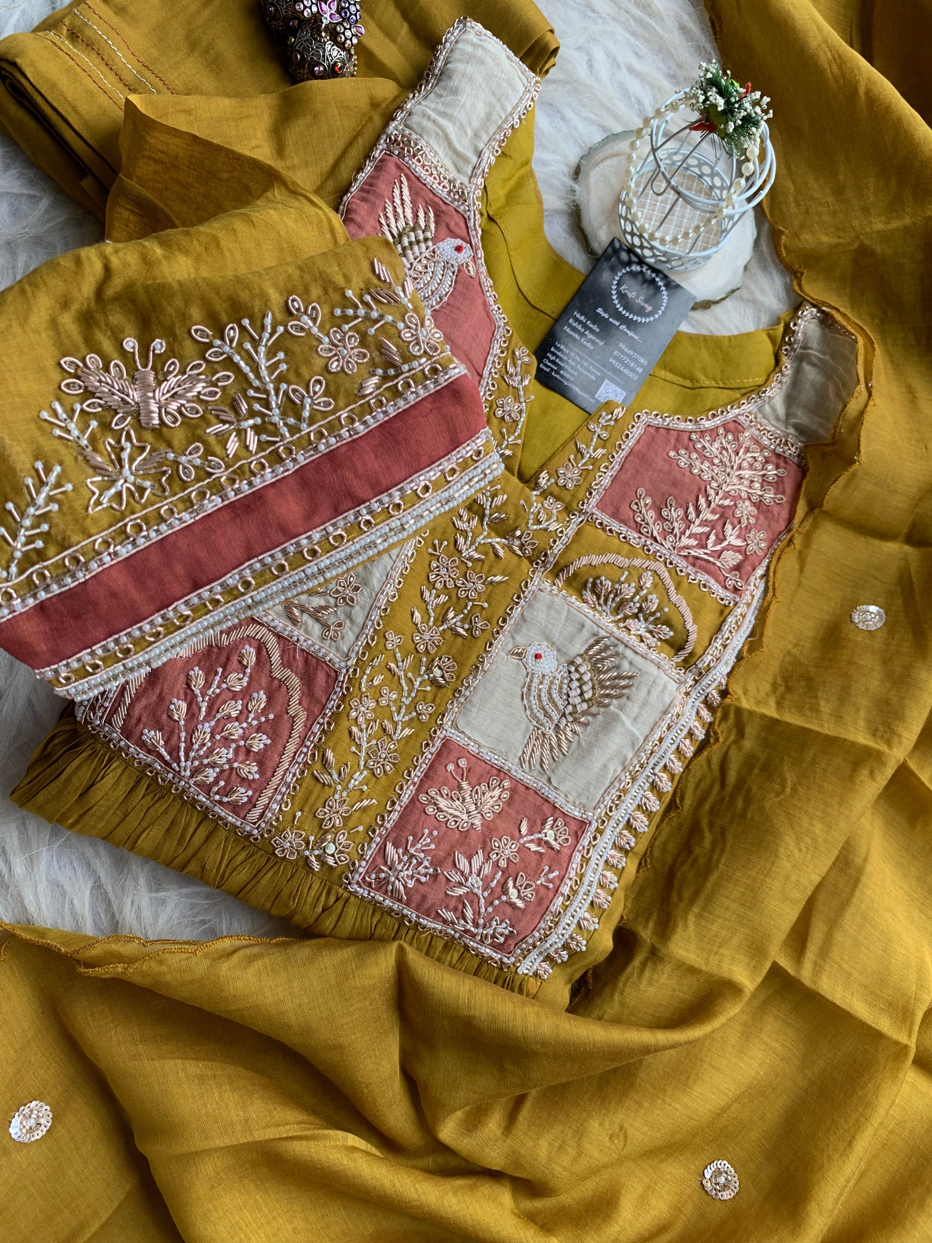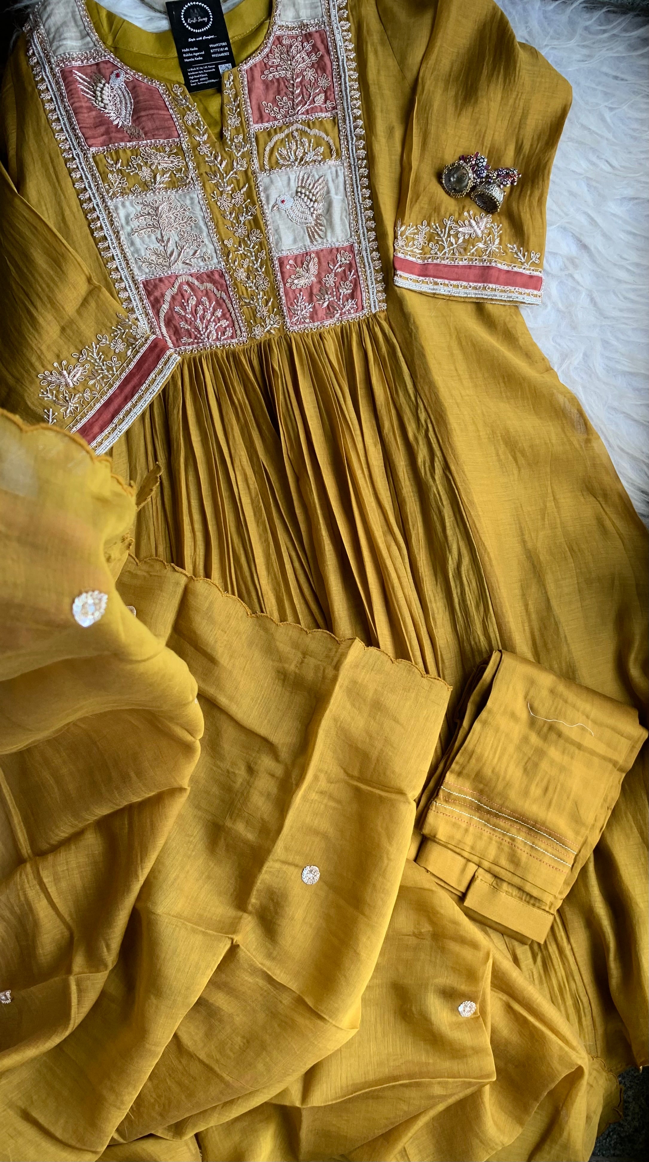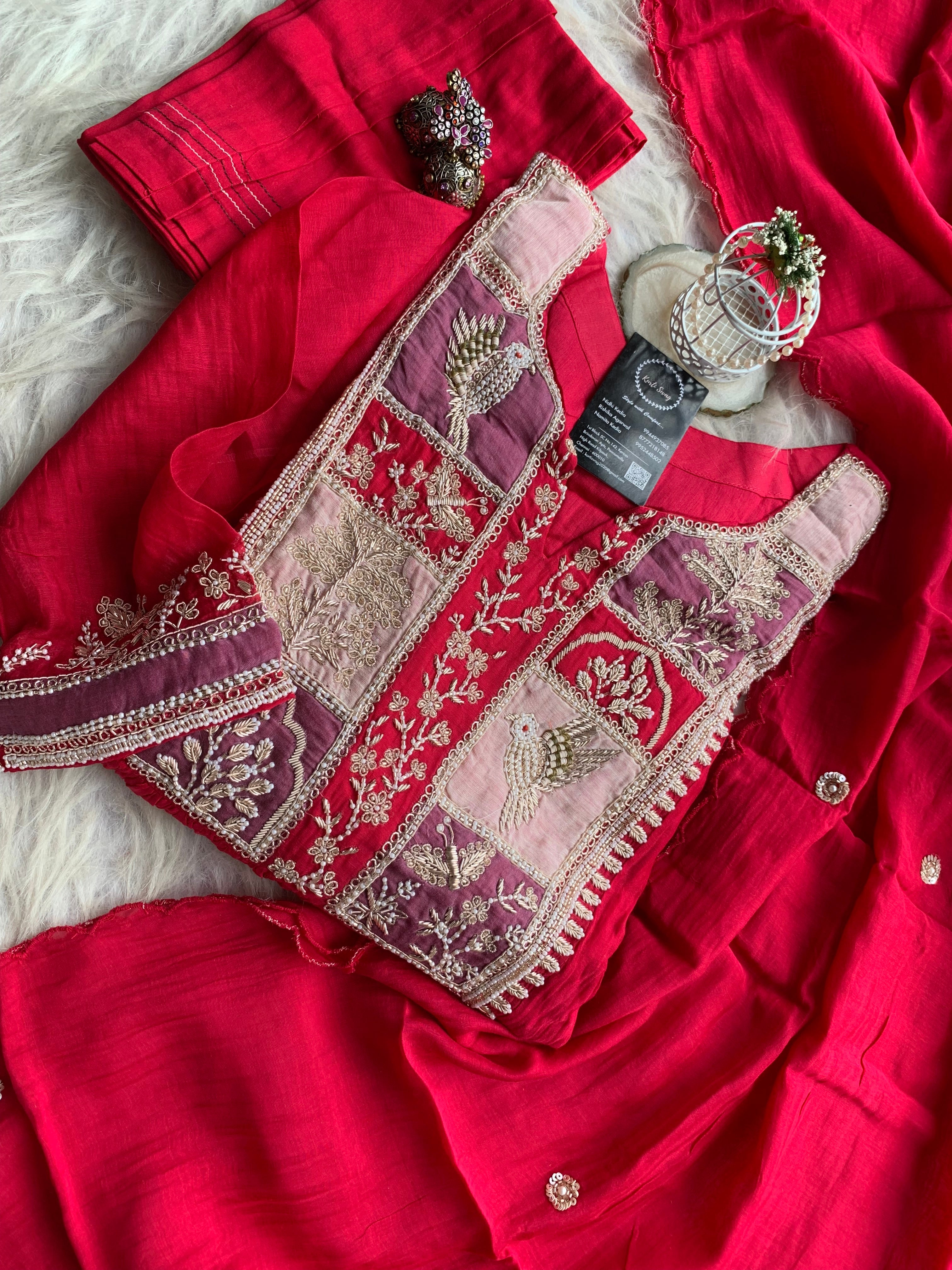 “ESHWARI” Premium Mul Chanderi Zardosi Handwork A Line Suit Set ✨💕♥️