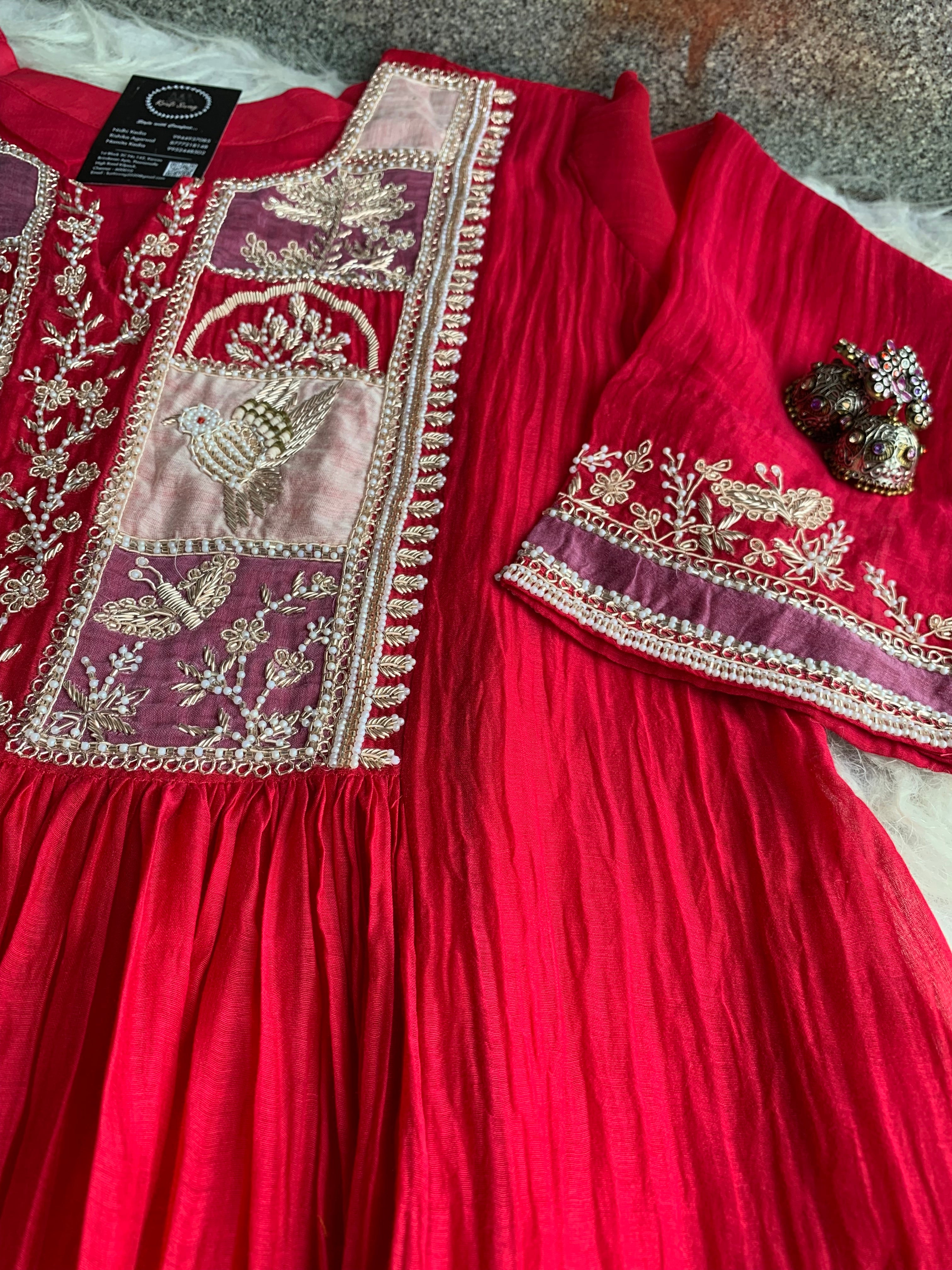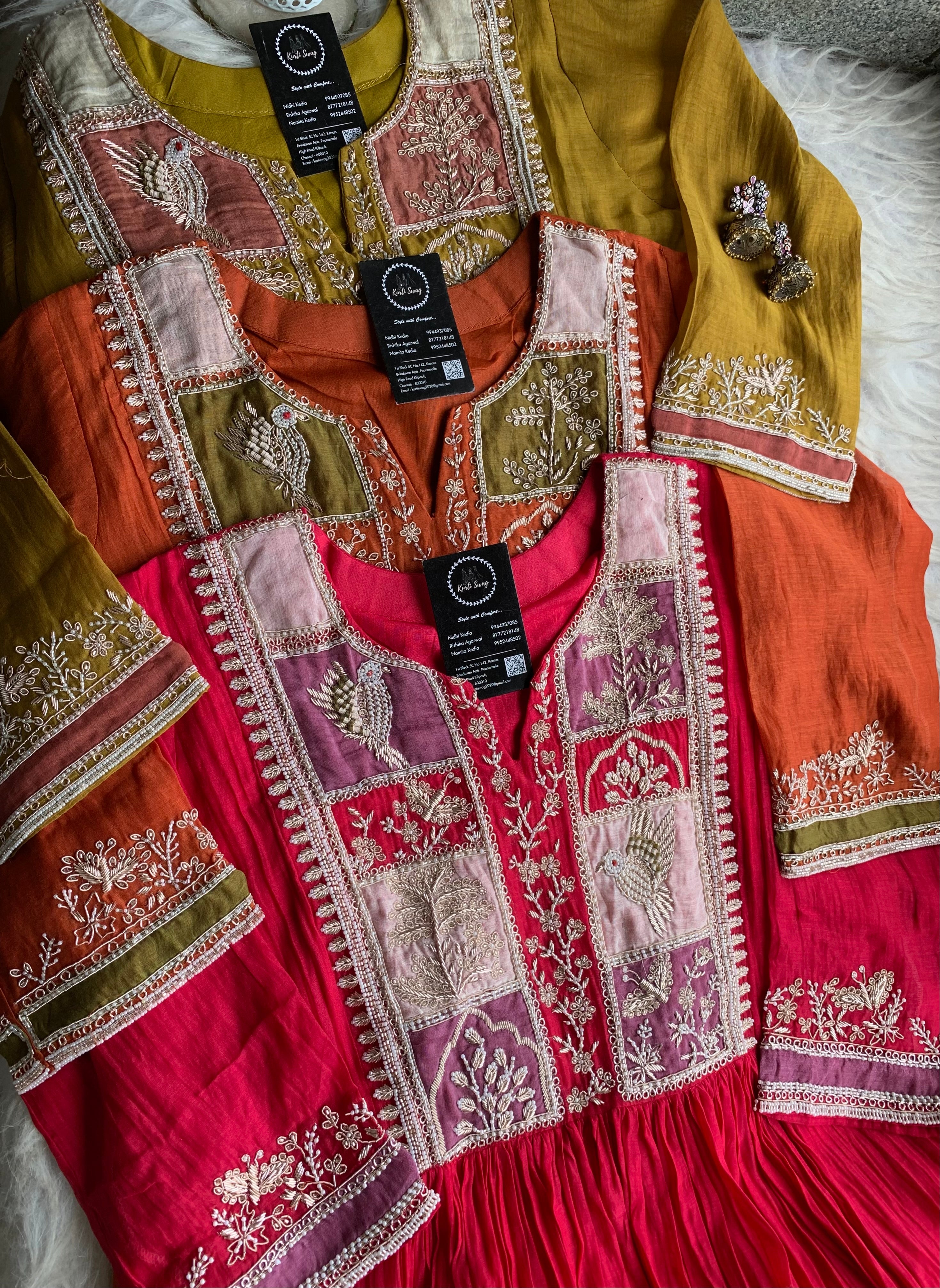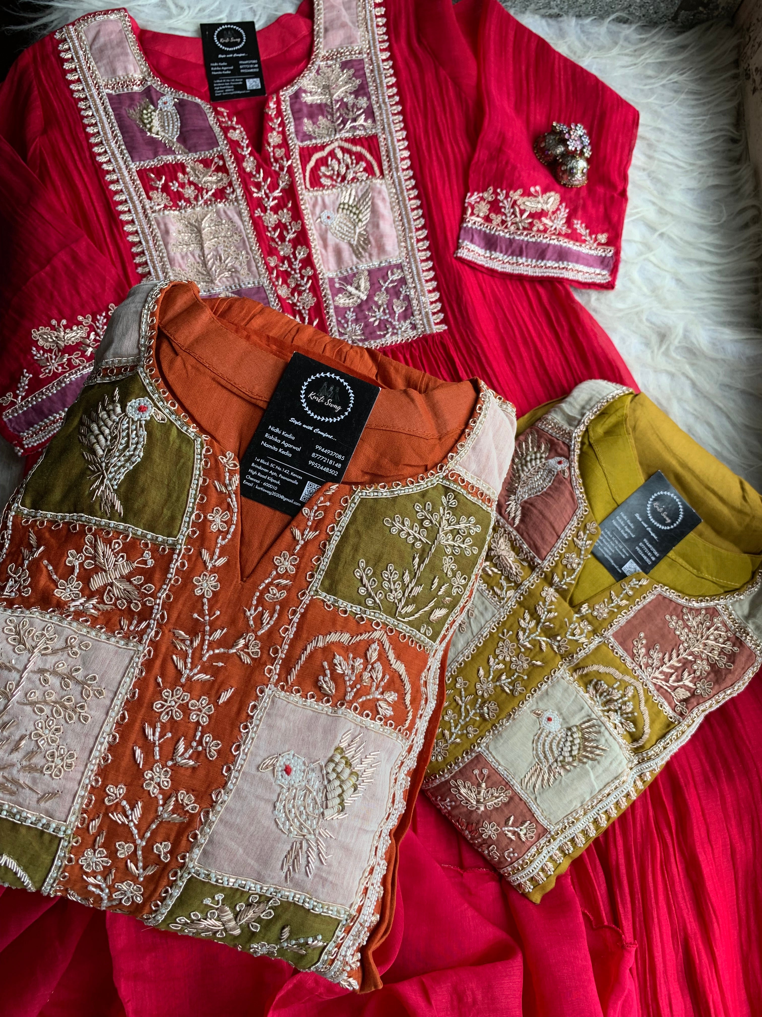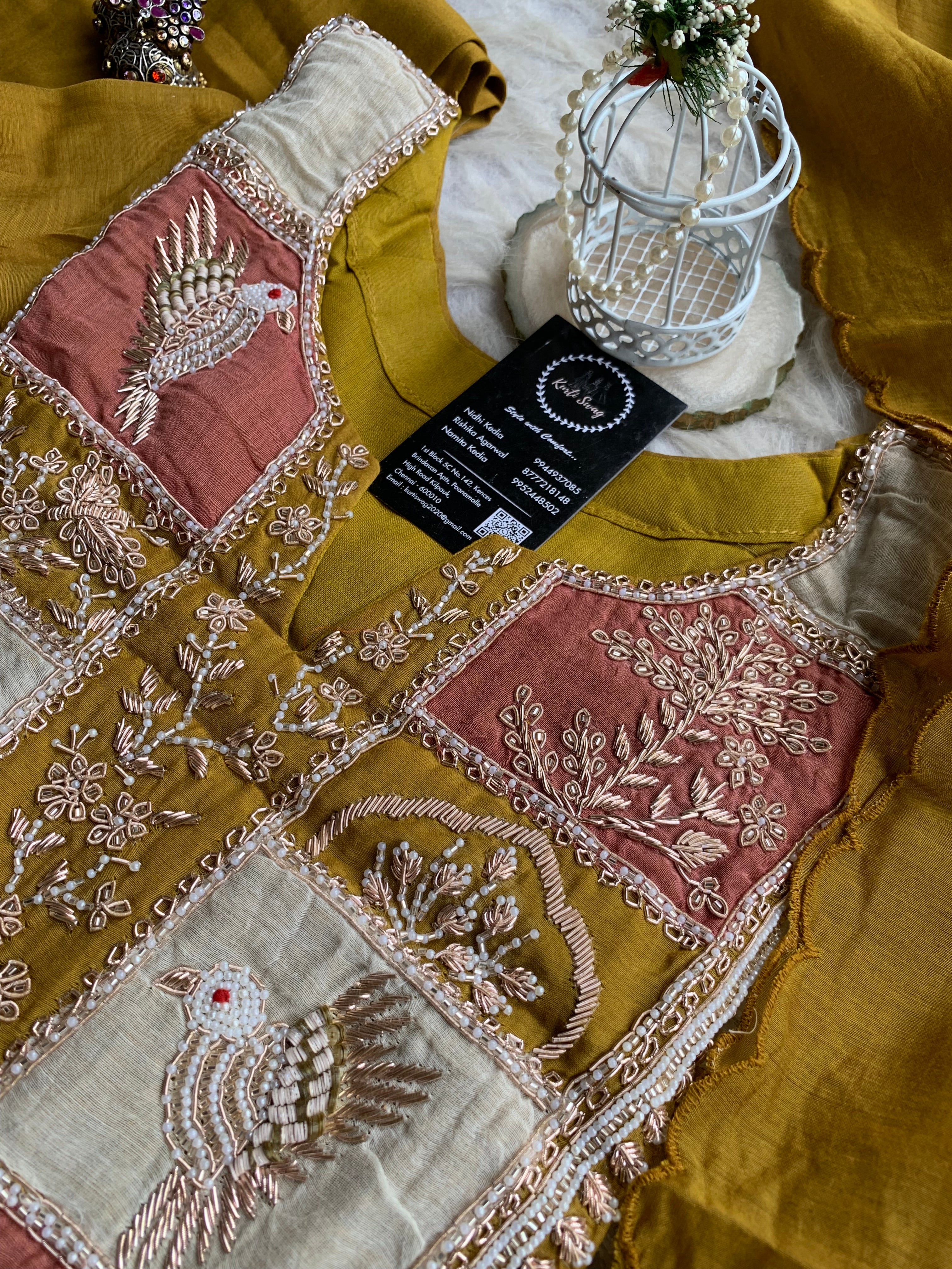 ✅ Premium Mul Chanderi Kurti With Zardosi And Threadwork On The Yoke Of The Kurti