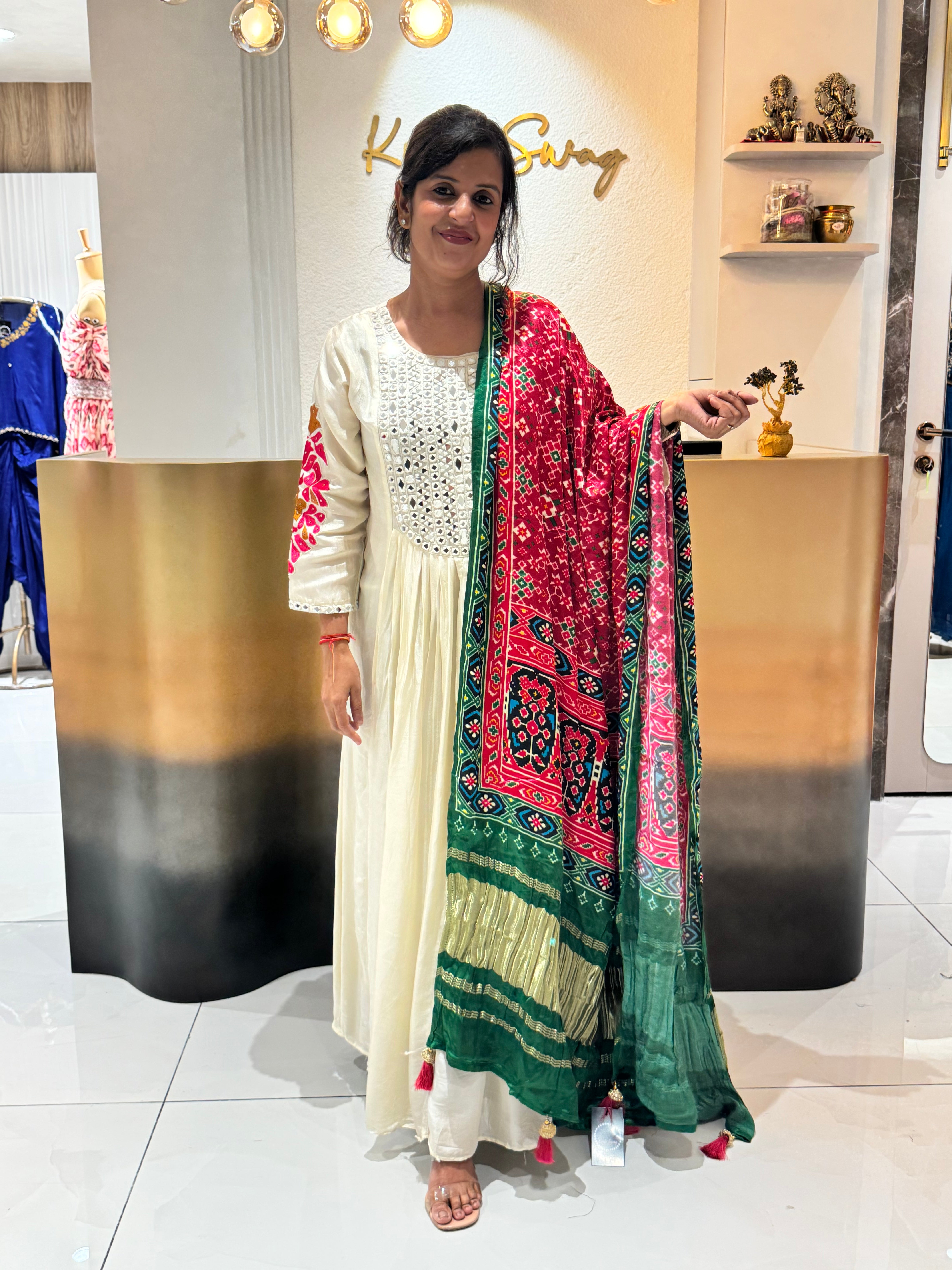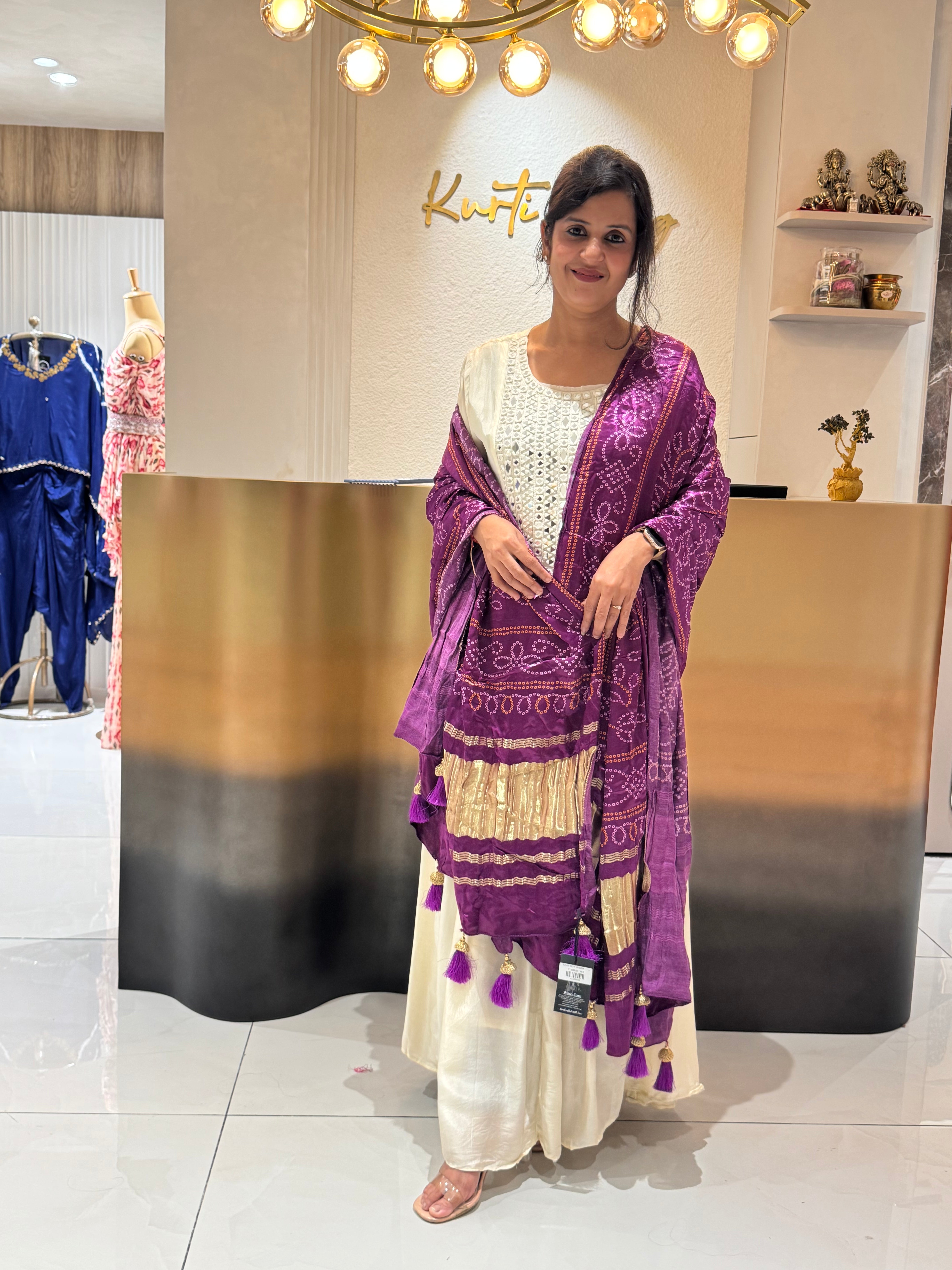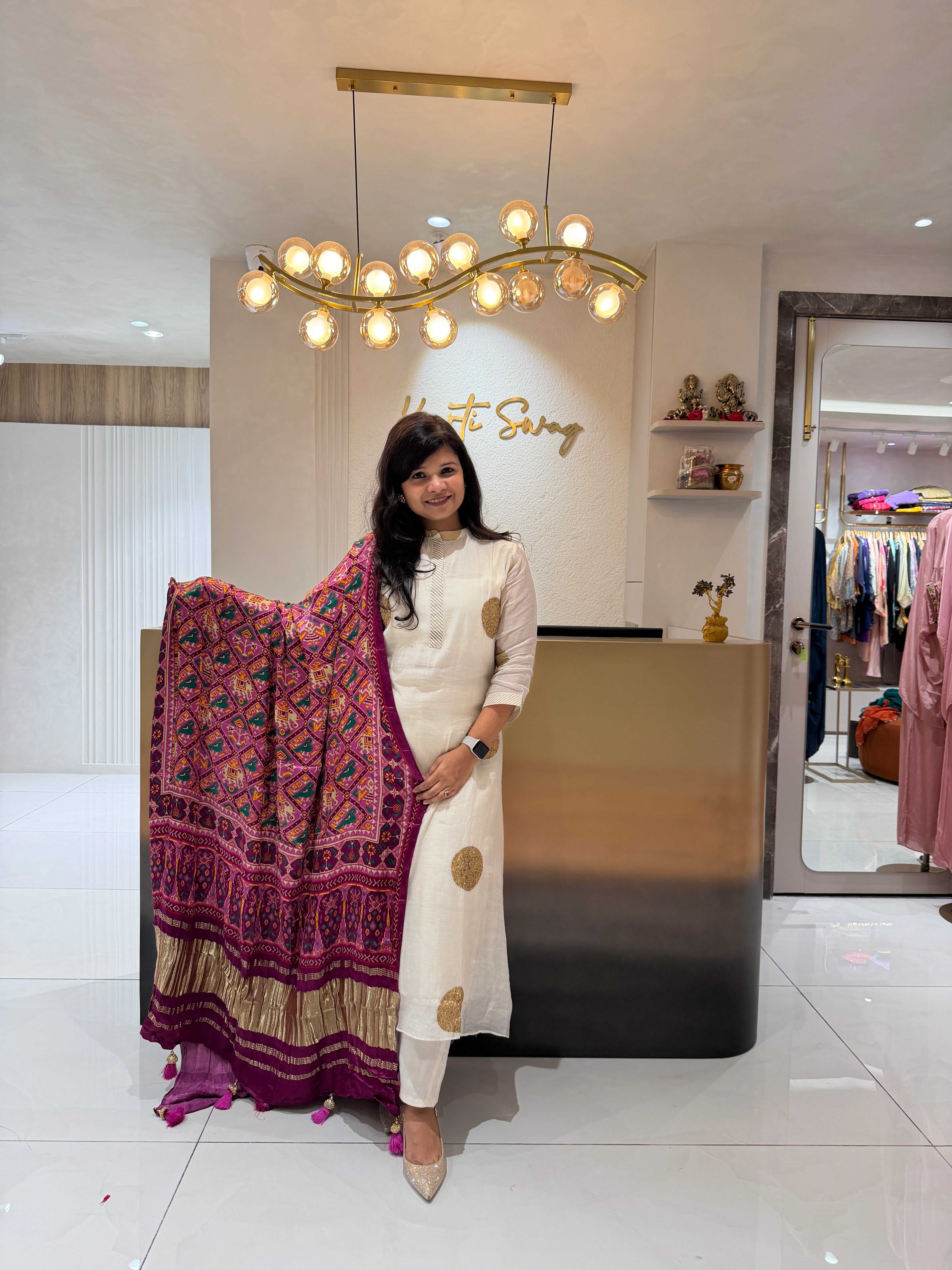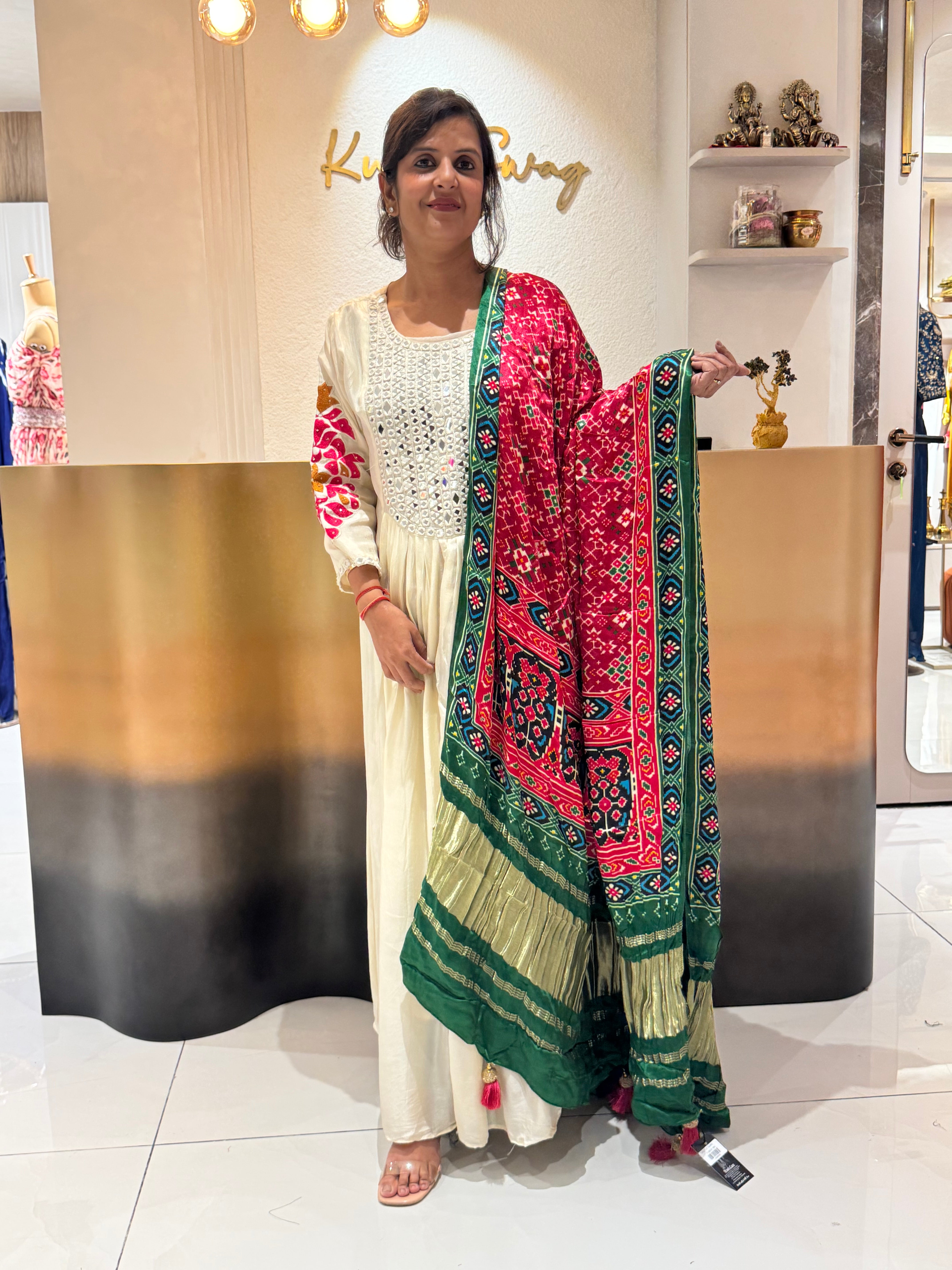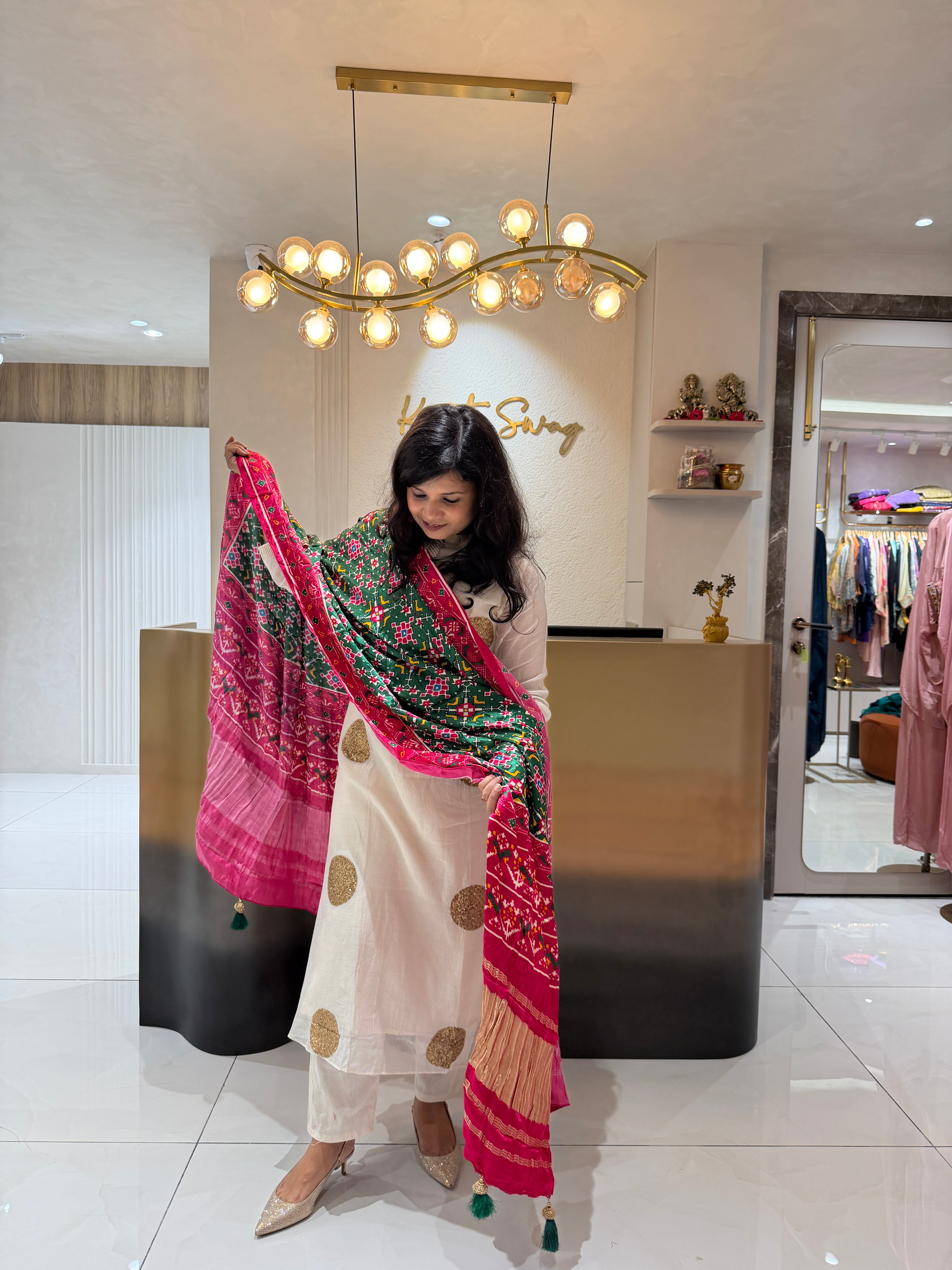 Drape yourself in timeless elegance with our pure Gajji silk dupatta, crafted with a luxurious sheen and buttery soft texture. The fabric flows effortlessly, adding a regal charm to any outfit.