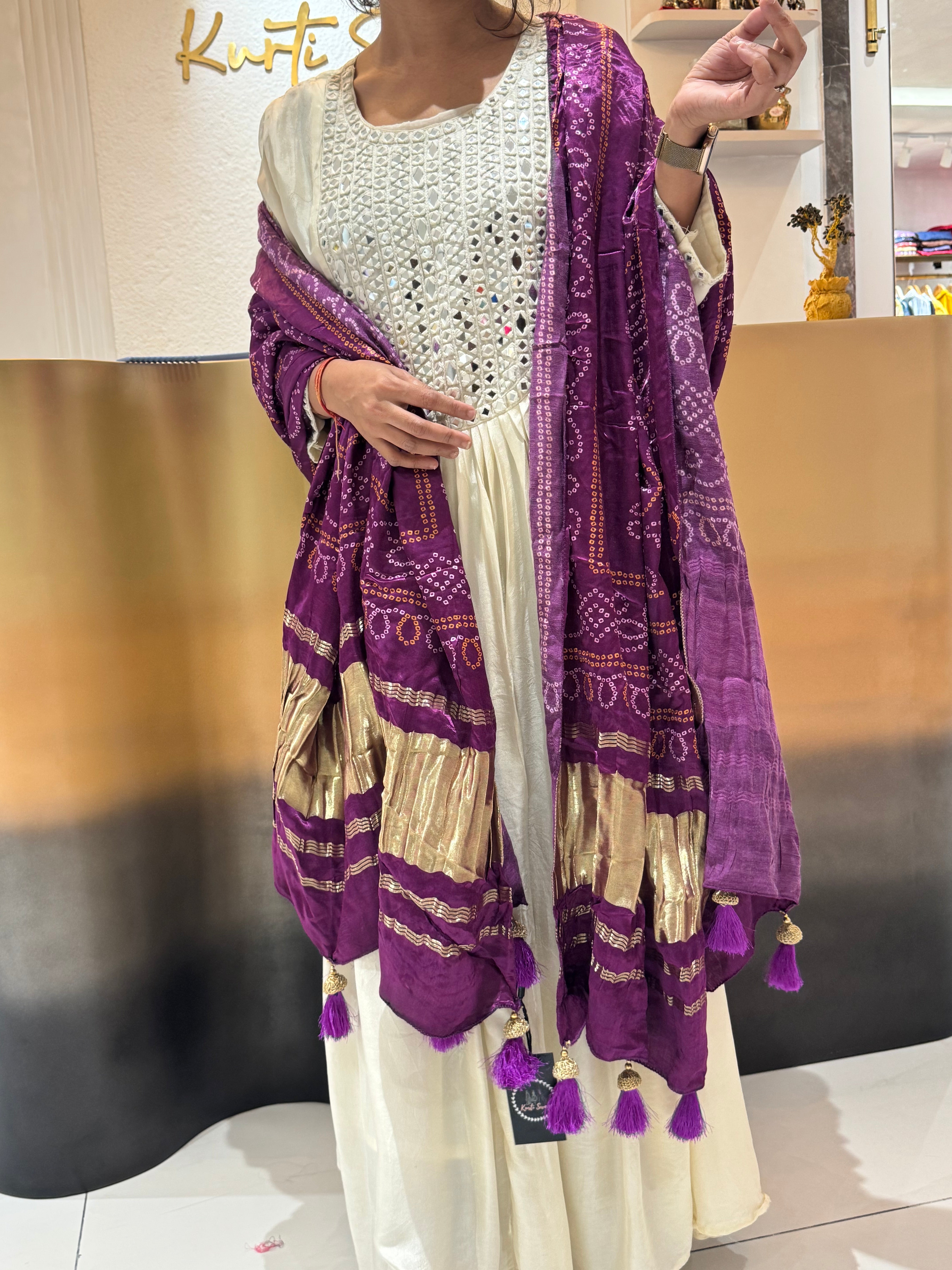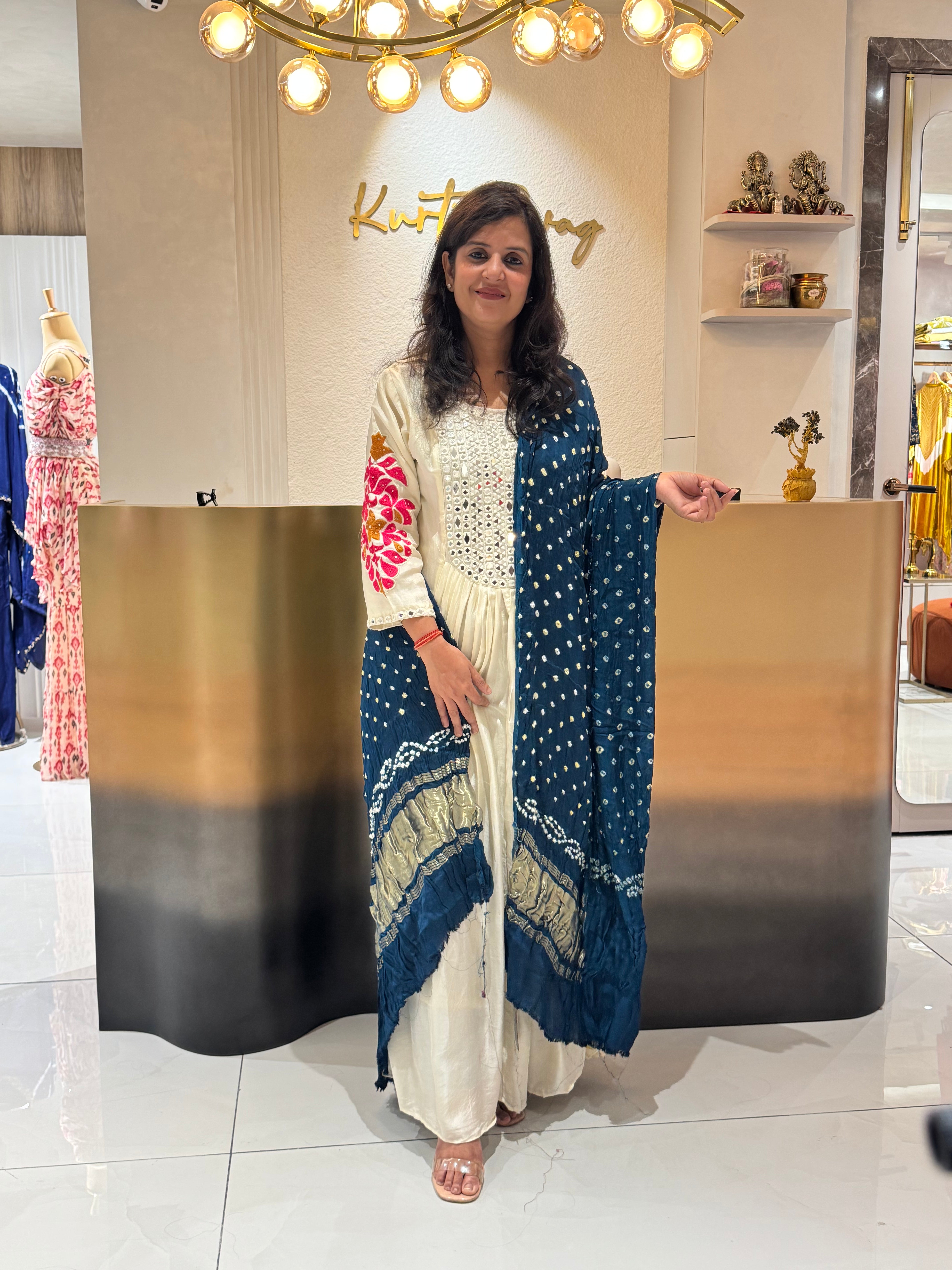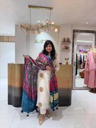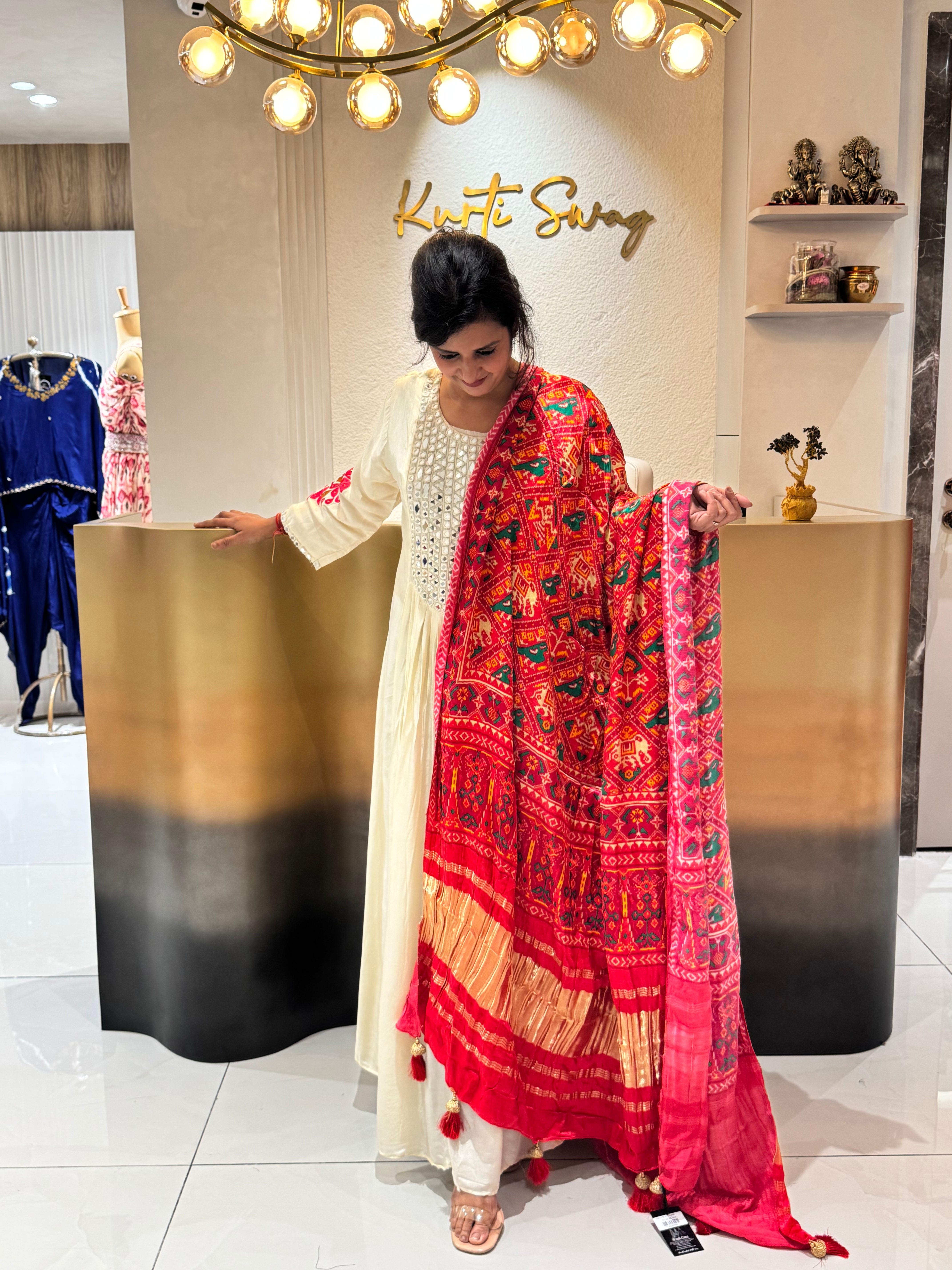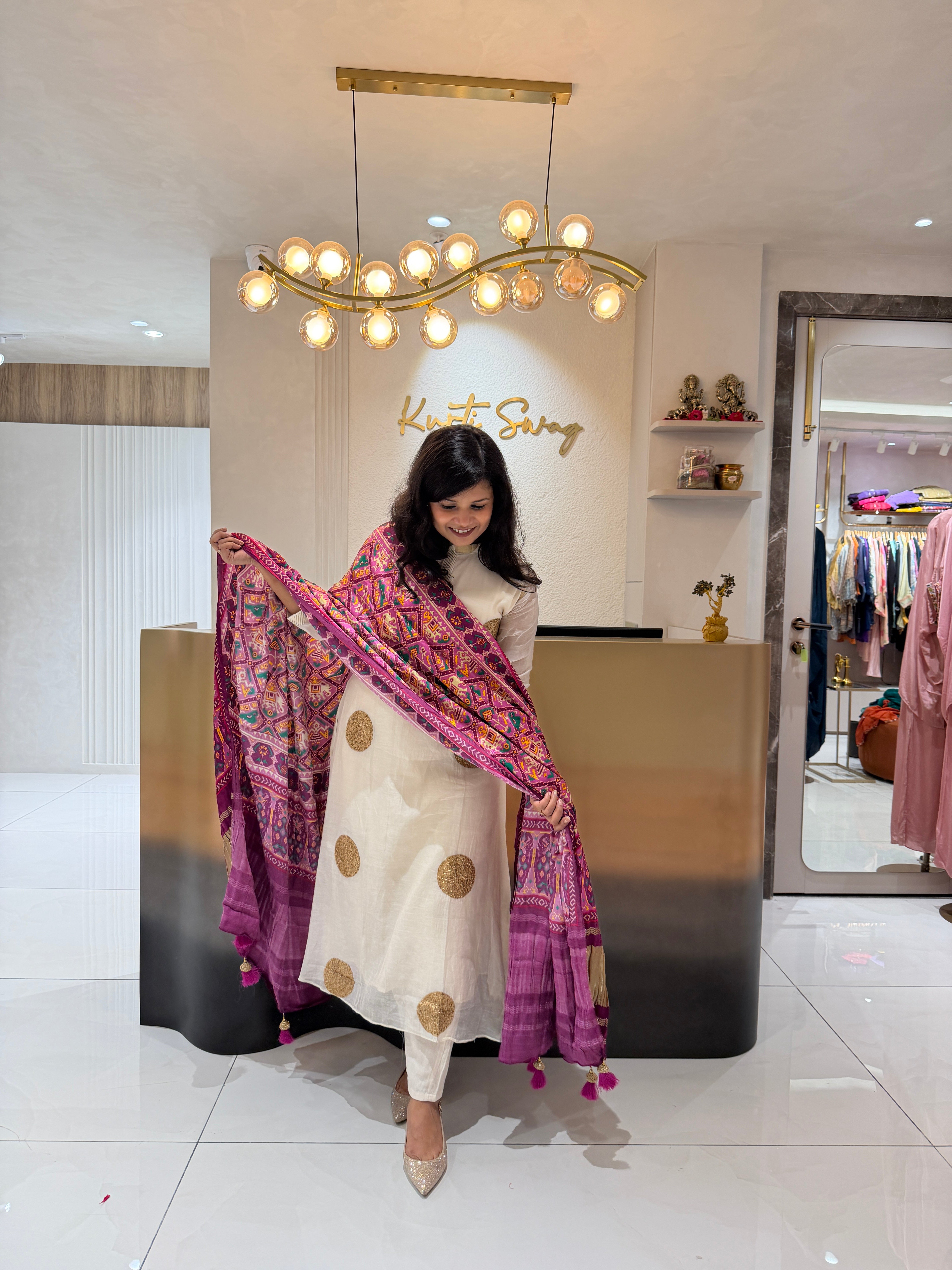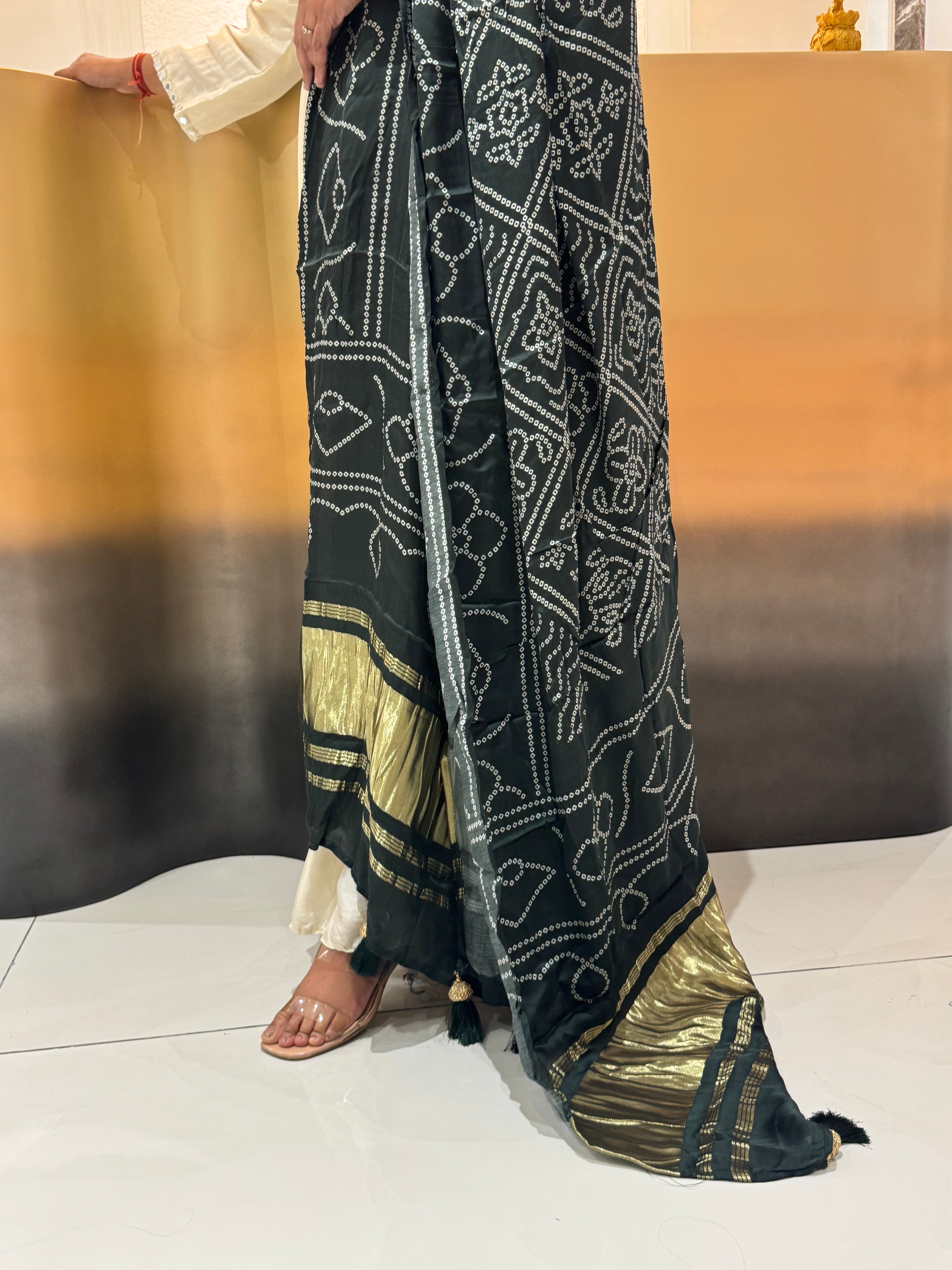 Drape yourself in timeless elegance with our pure Gajji silk dupatta, crafted with a luxurious sheen and buttery soft texture. The fabric flows effortlessly, adding a regal charm to any outfit.