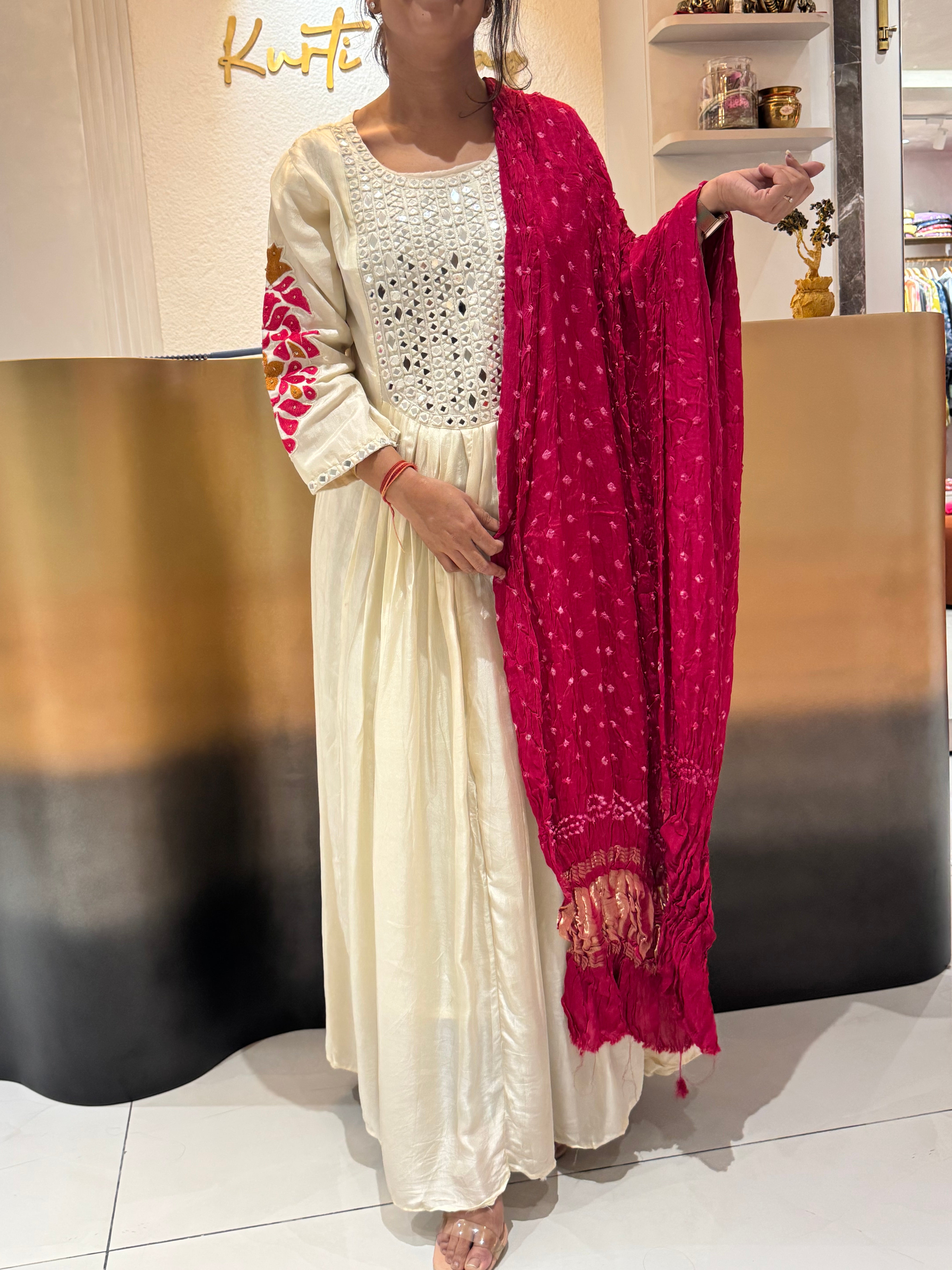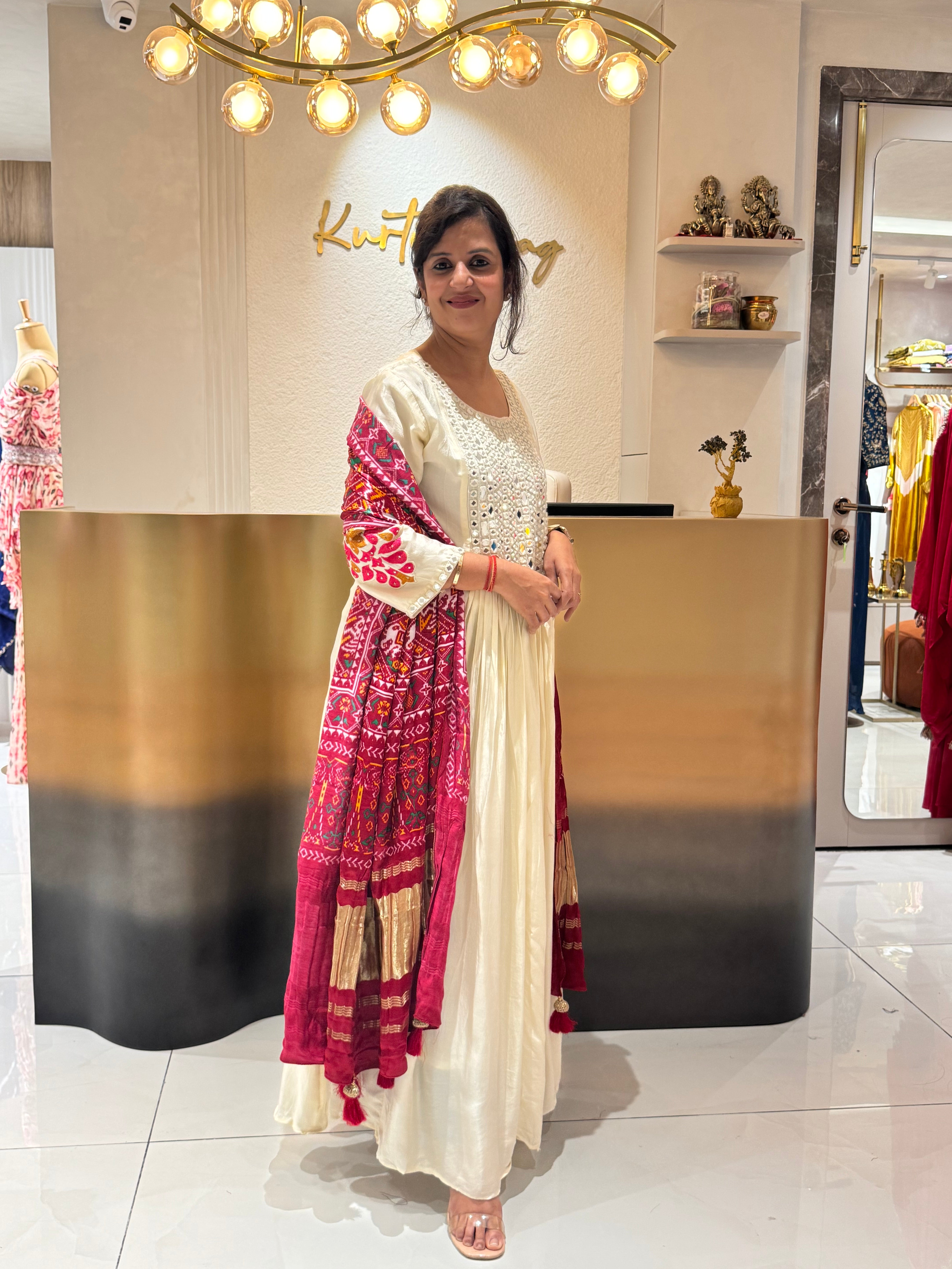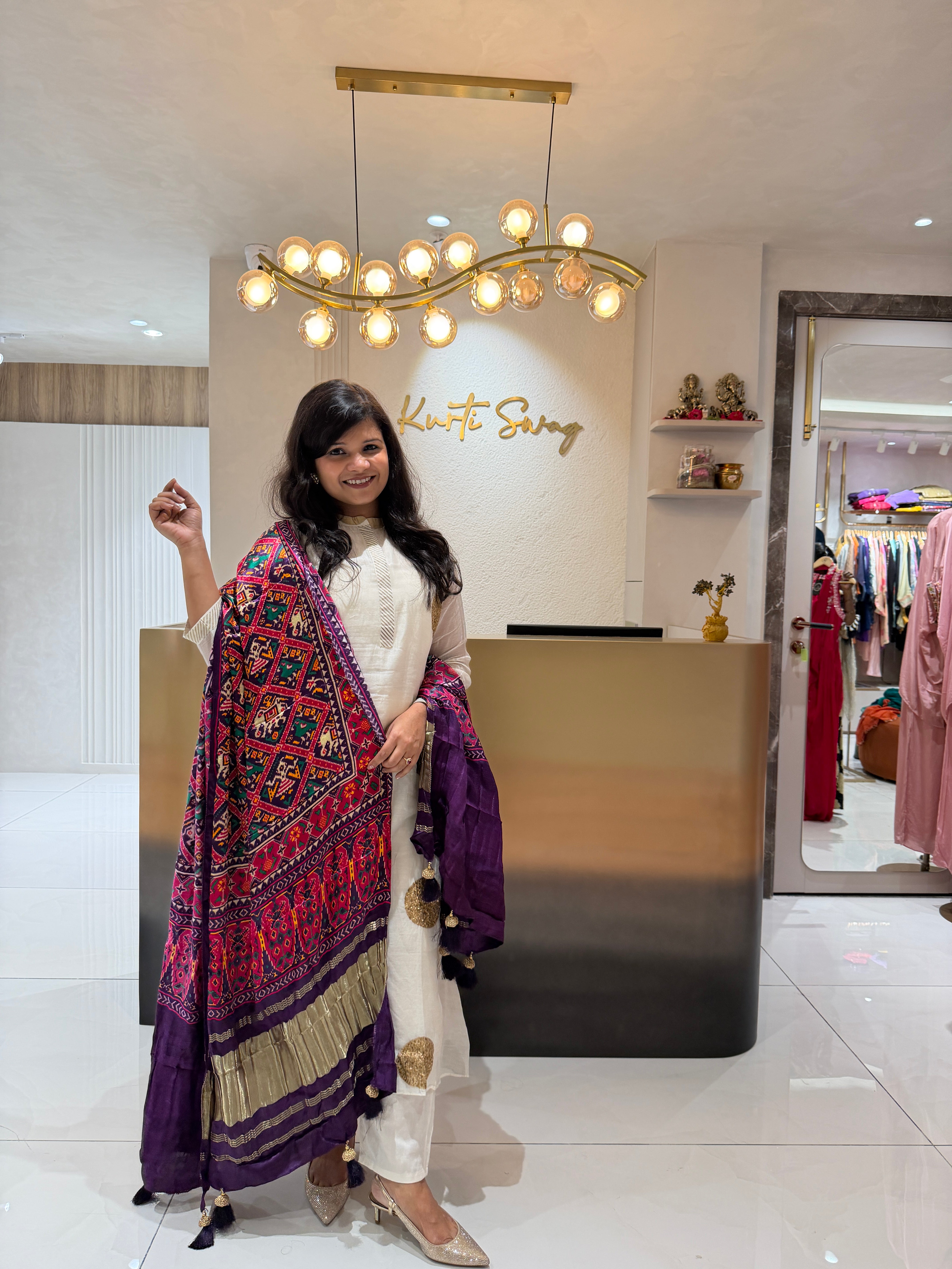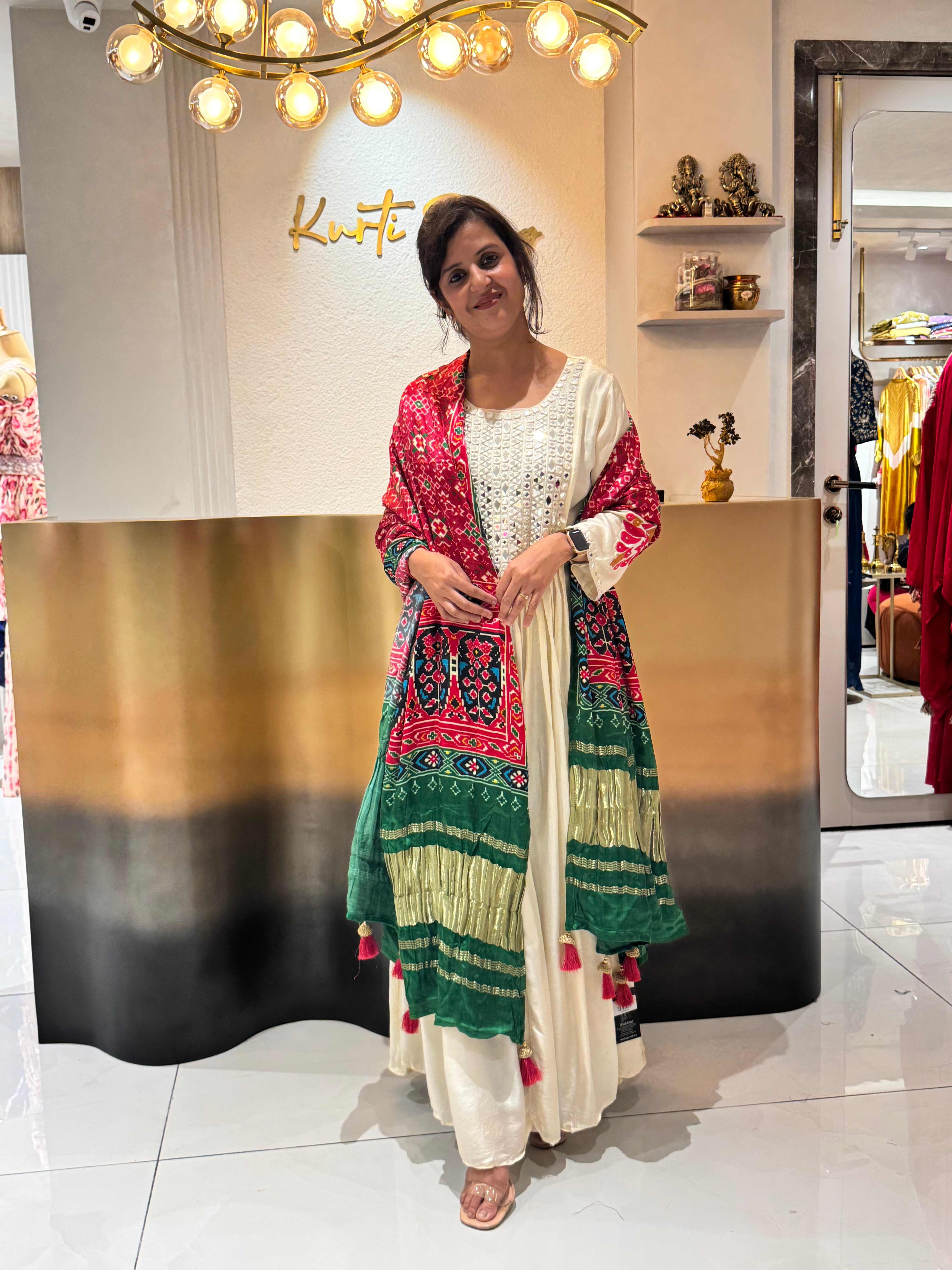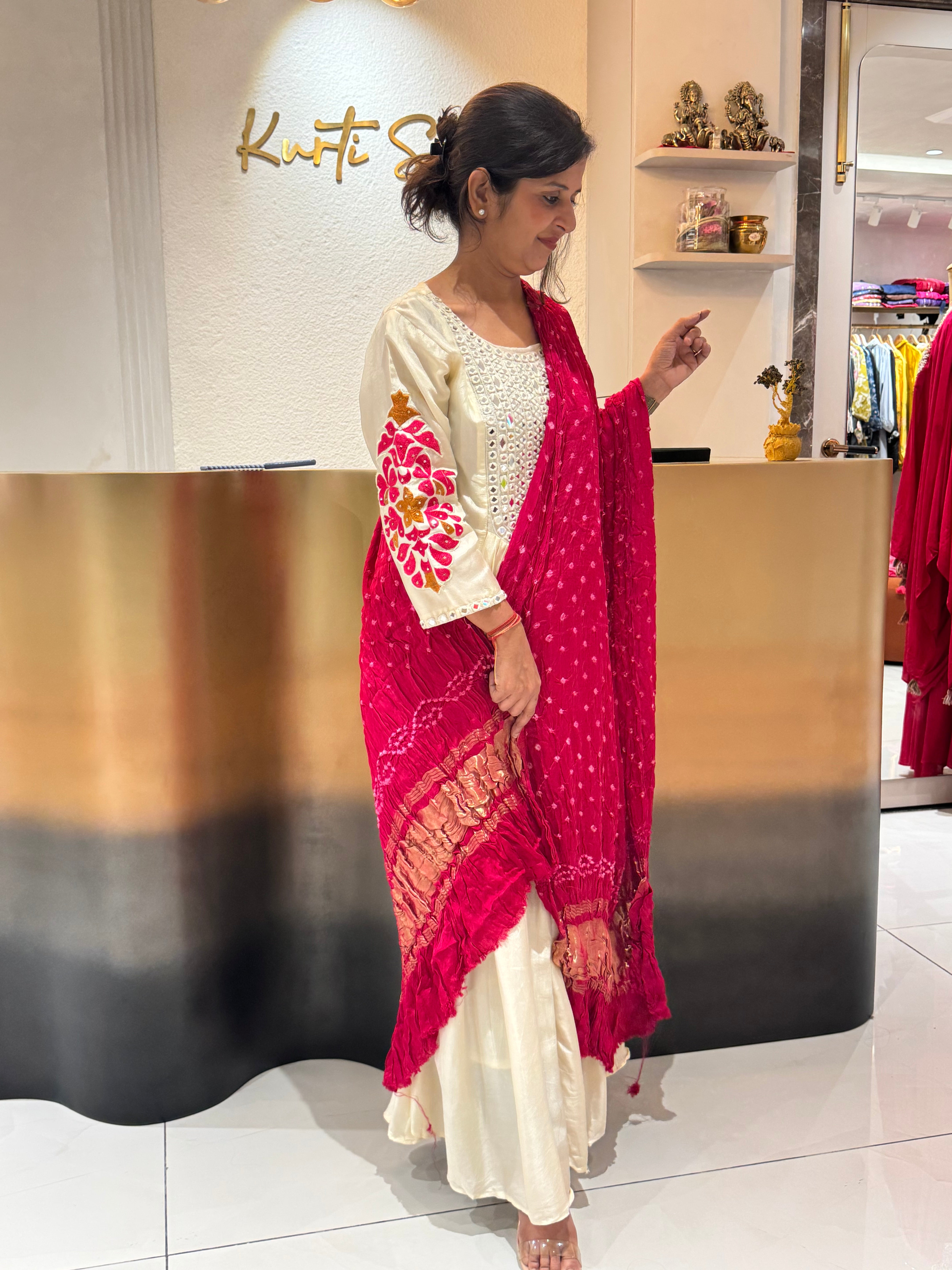 Drape yourself in timeless elegance with our pure Gajji silk dupatta, crafted with a luxurious sheen and buttery soft texture. The fabric flows effortlessly, adding a regal charm to any outfit.
