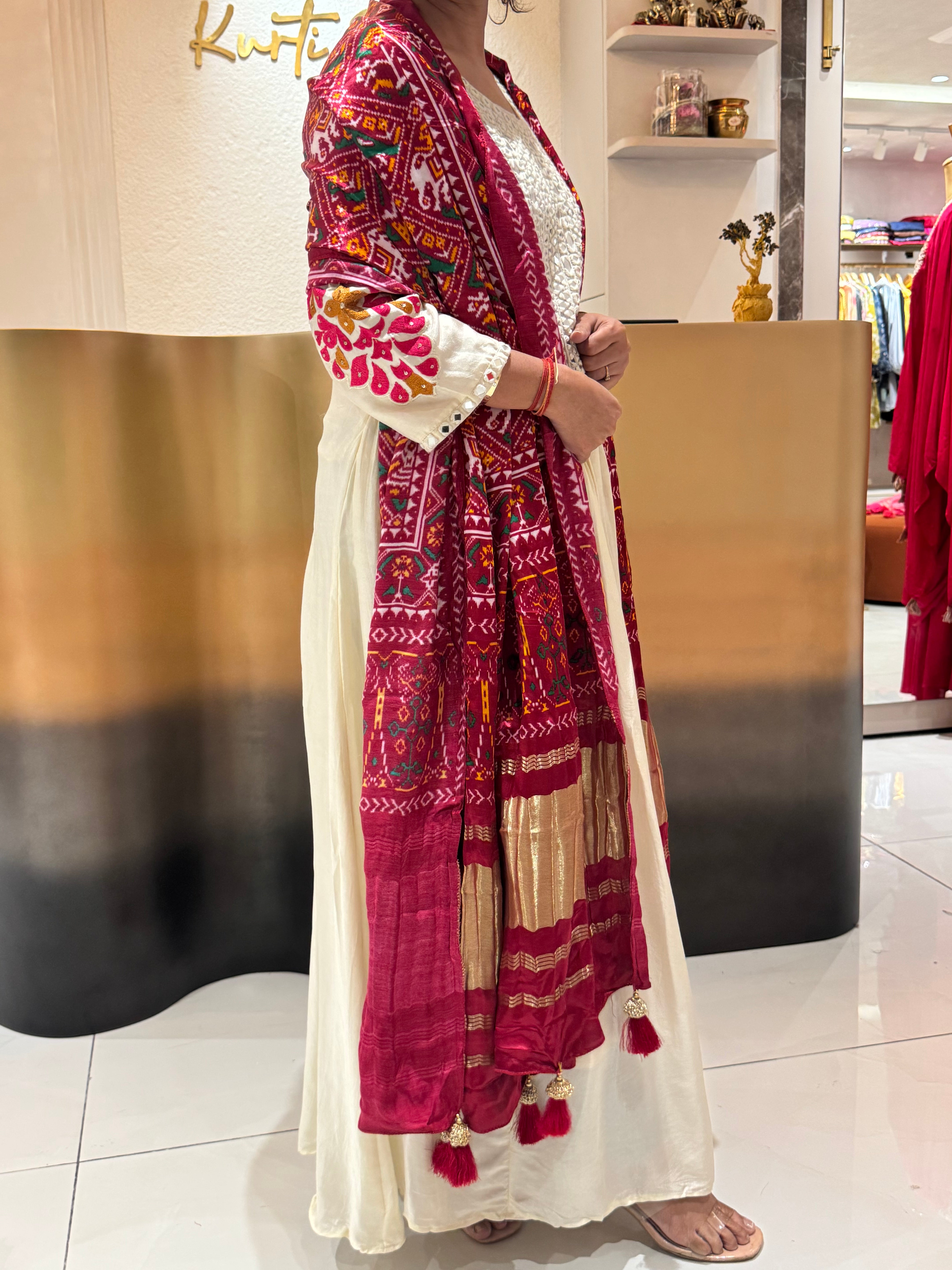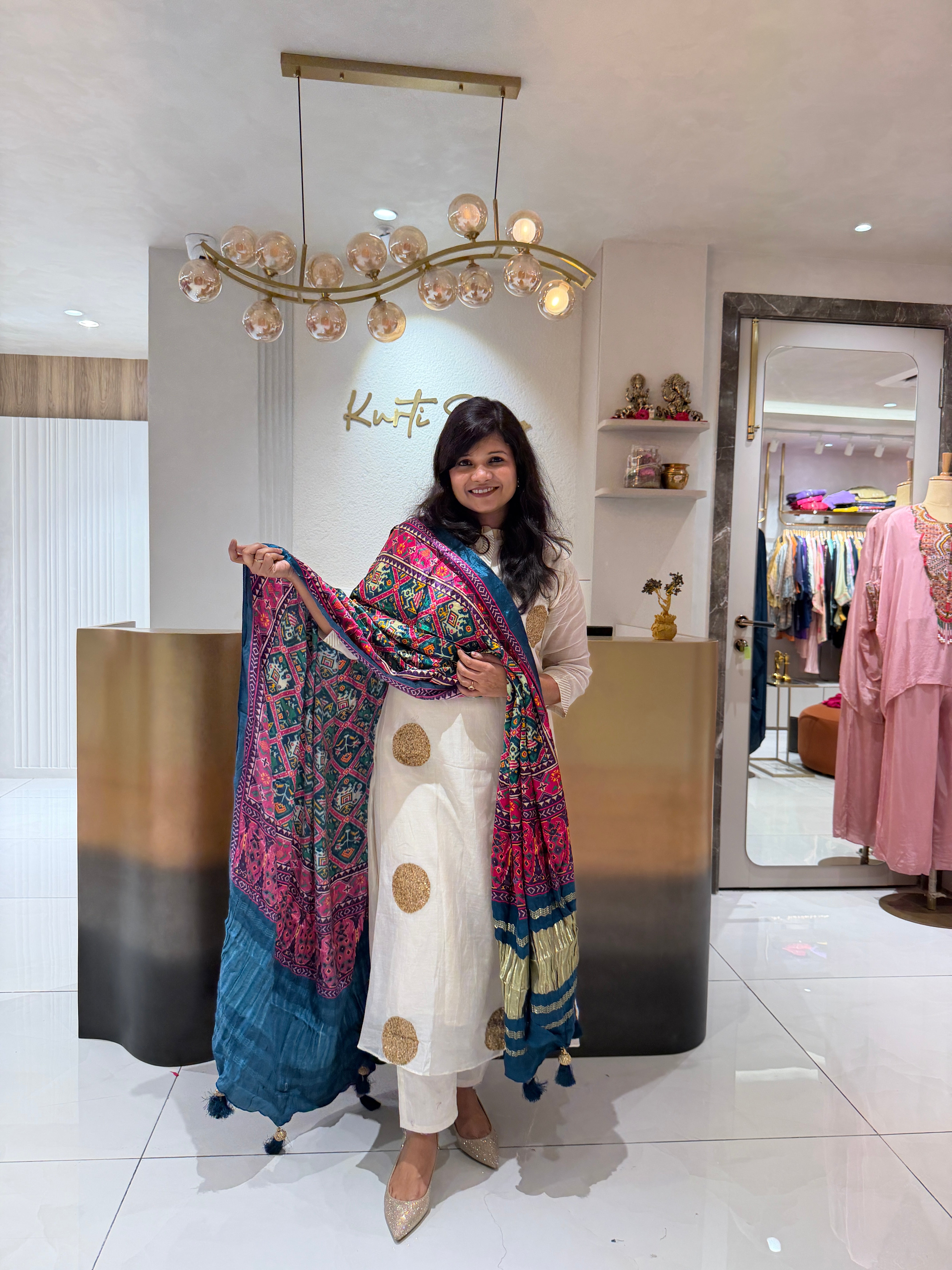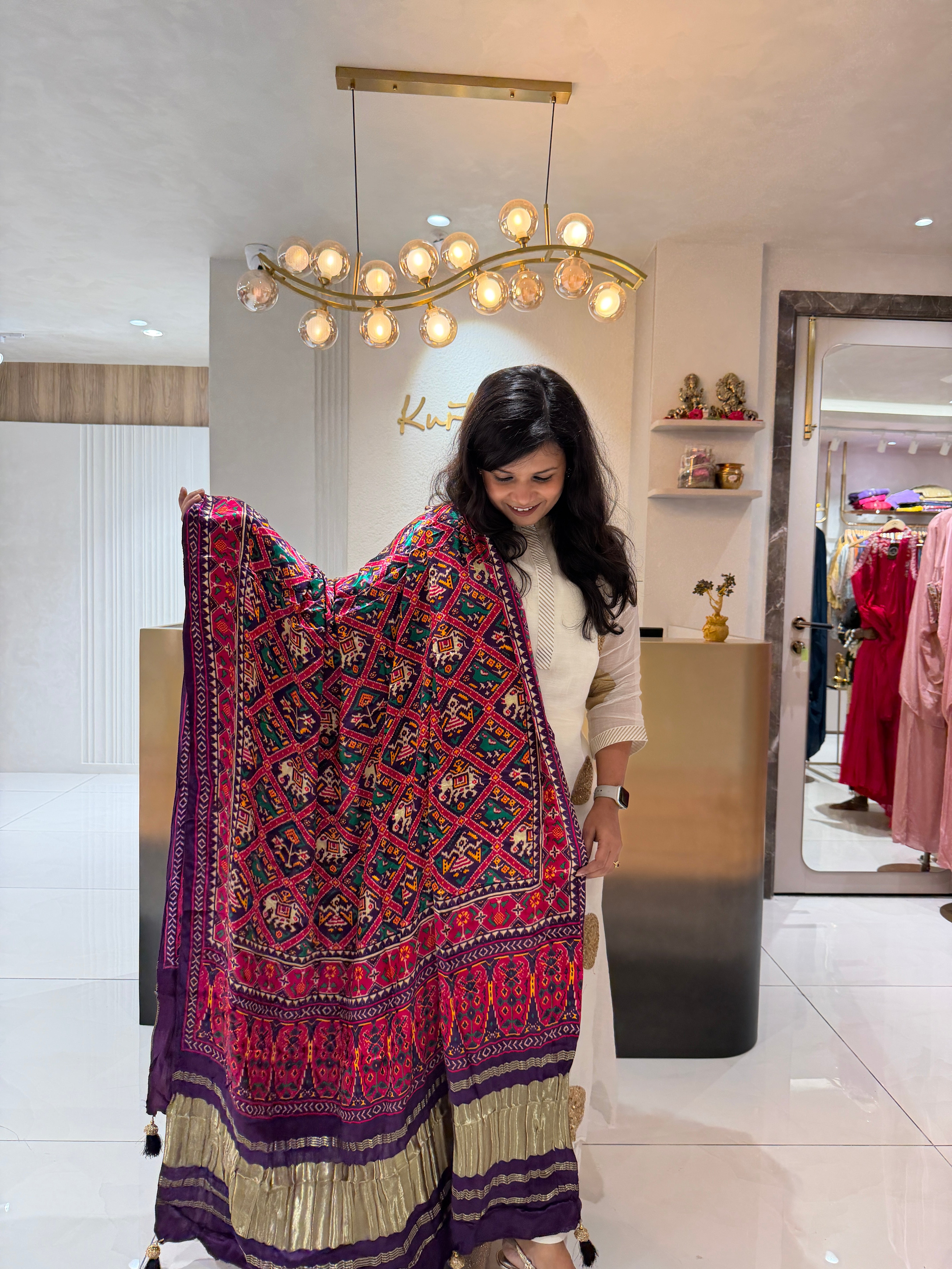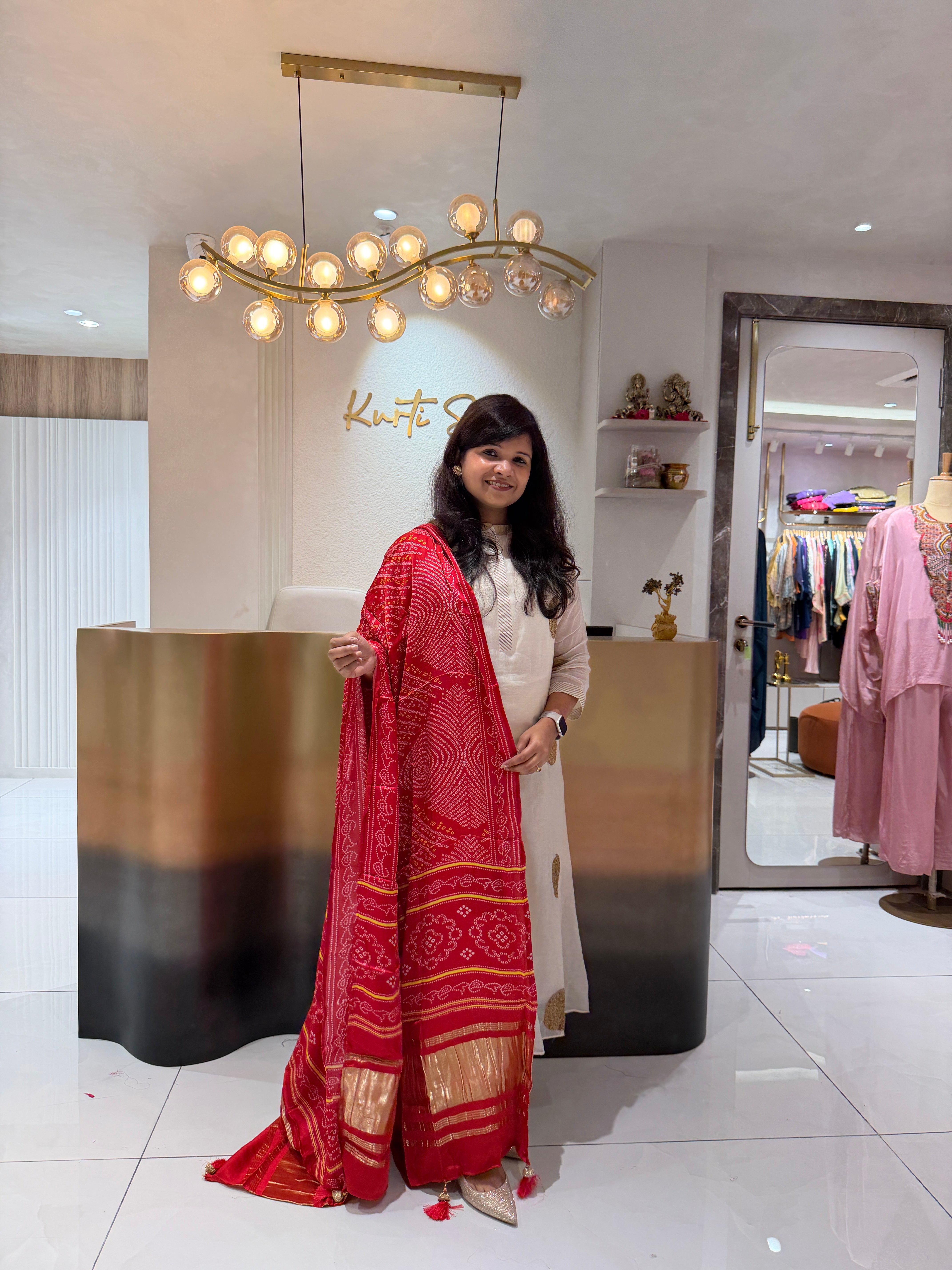 Adorned with traditional Lakdipatta detailing and intricate gold zari border, this dupatta beautifully blends artisanal craftsmanship with a rich contemporary touch. Perfect for festive occasions, weddings, or when you just want to elevate your everyday ethnic look.