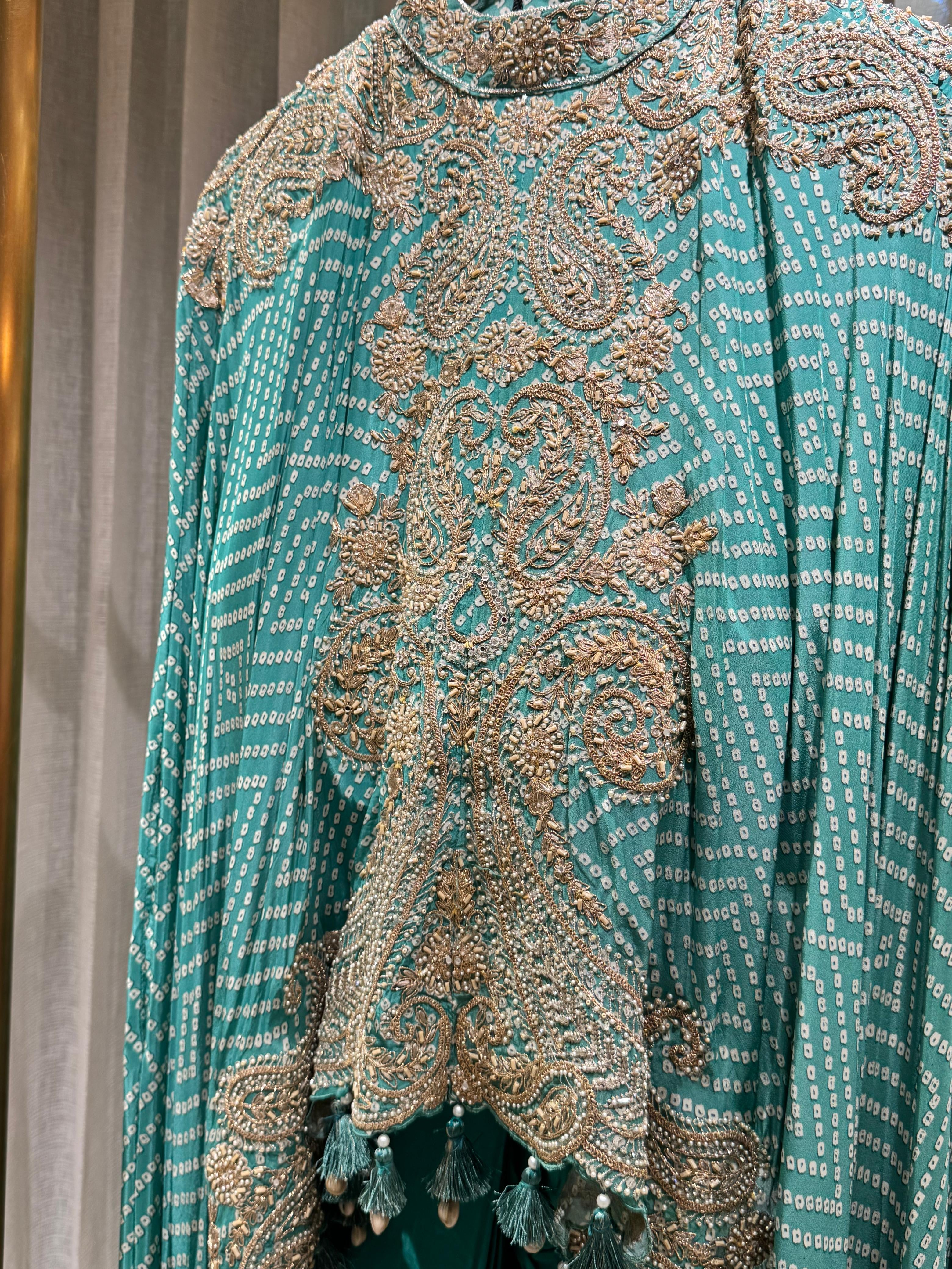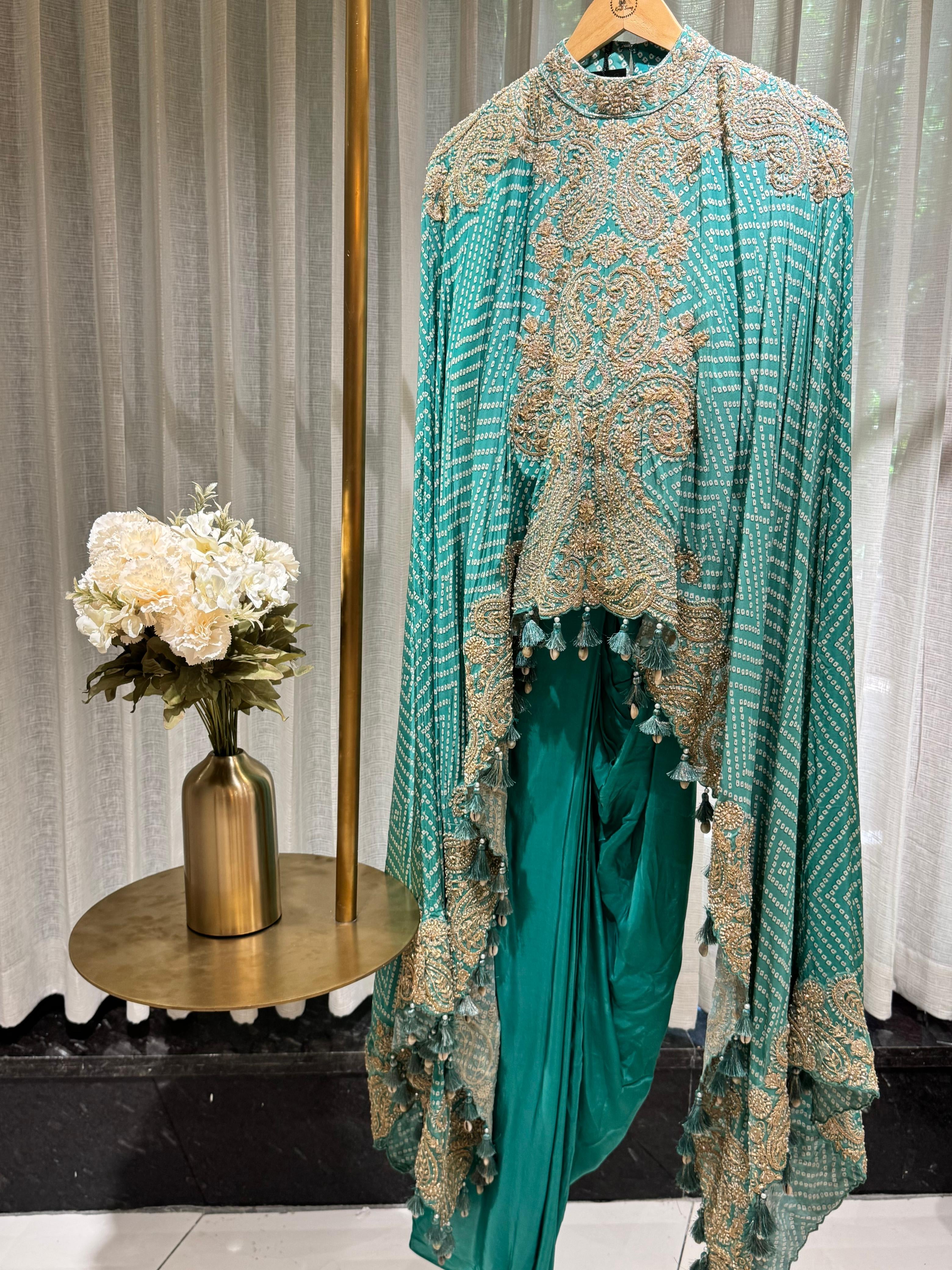“ILLEANA” Indowestern Bandhni Cape With Drape Skirt ✨💕
