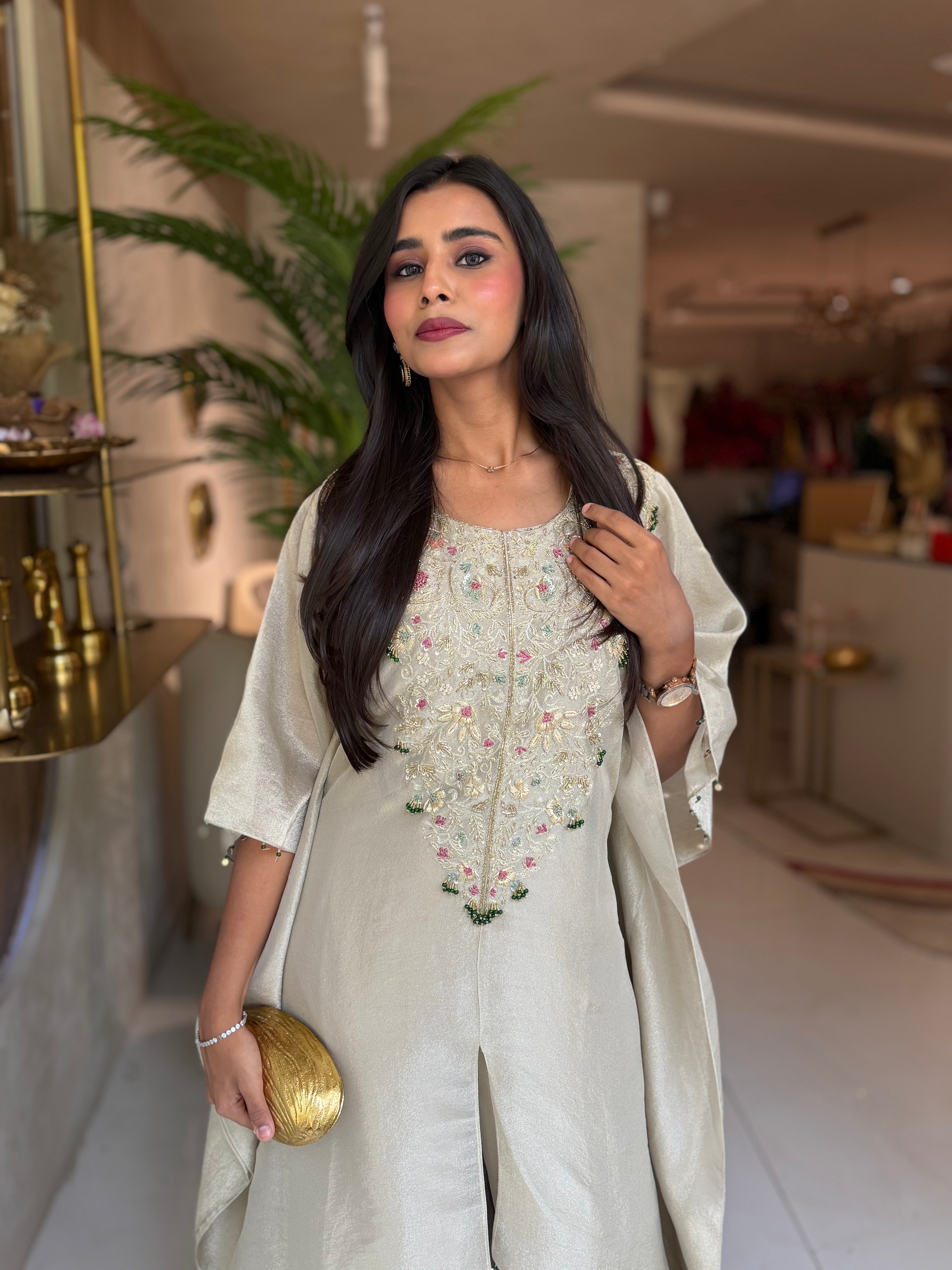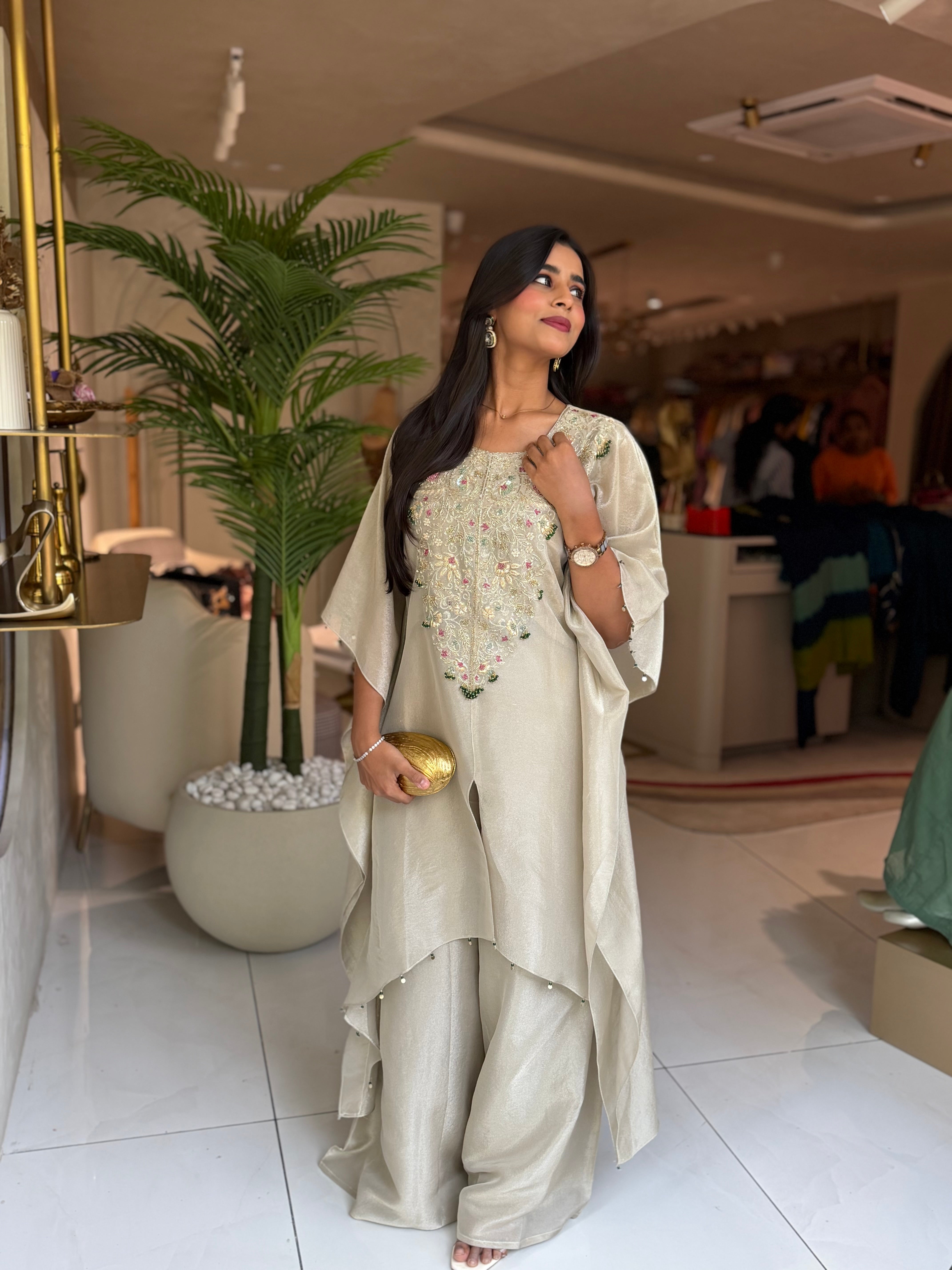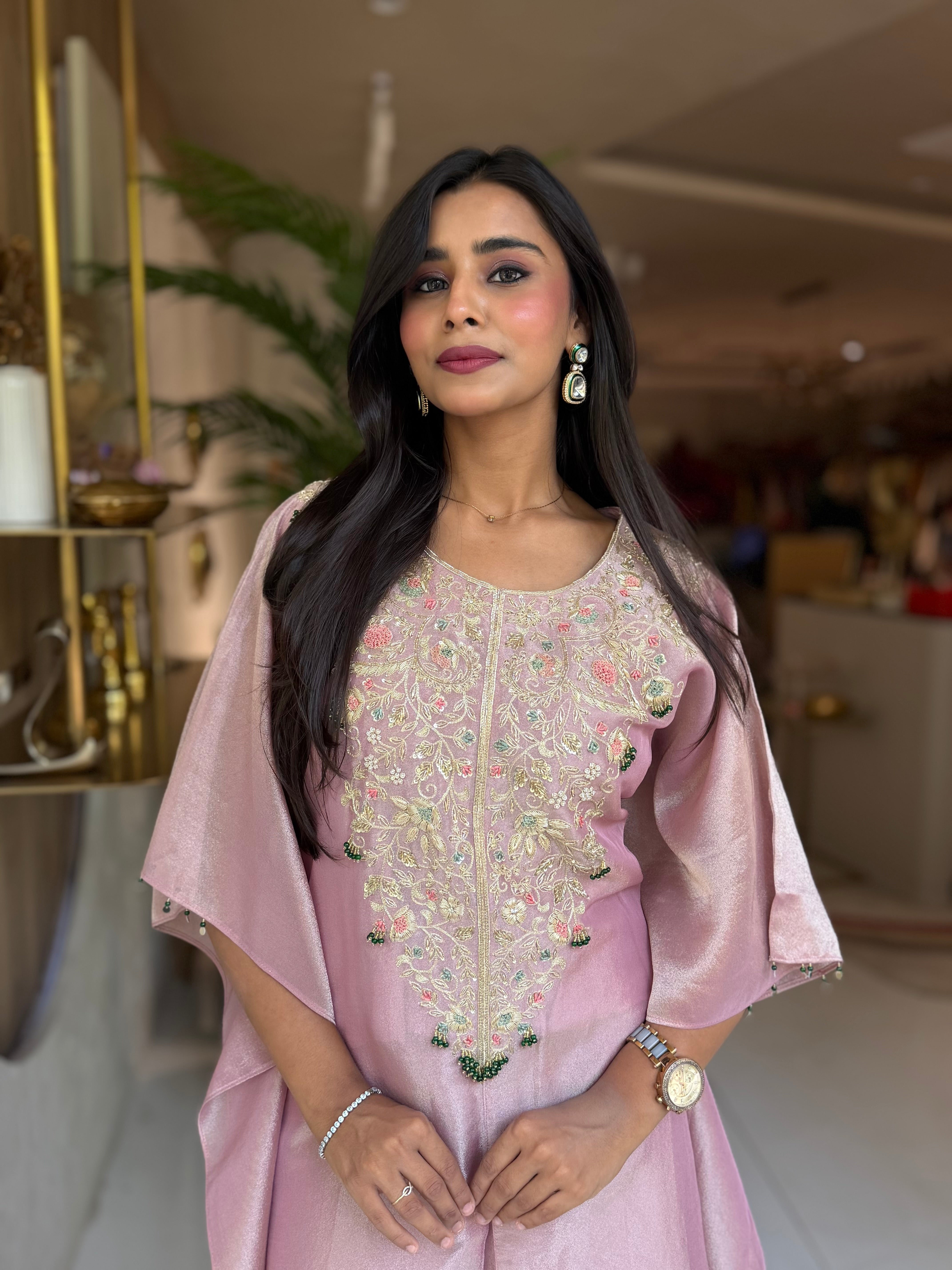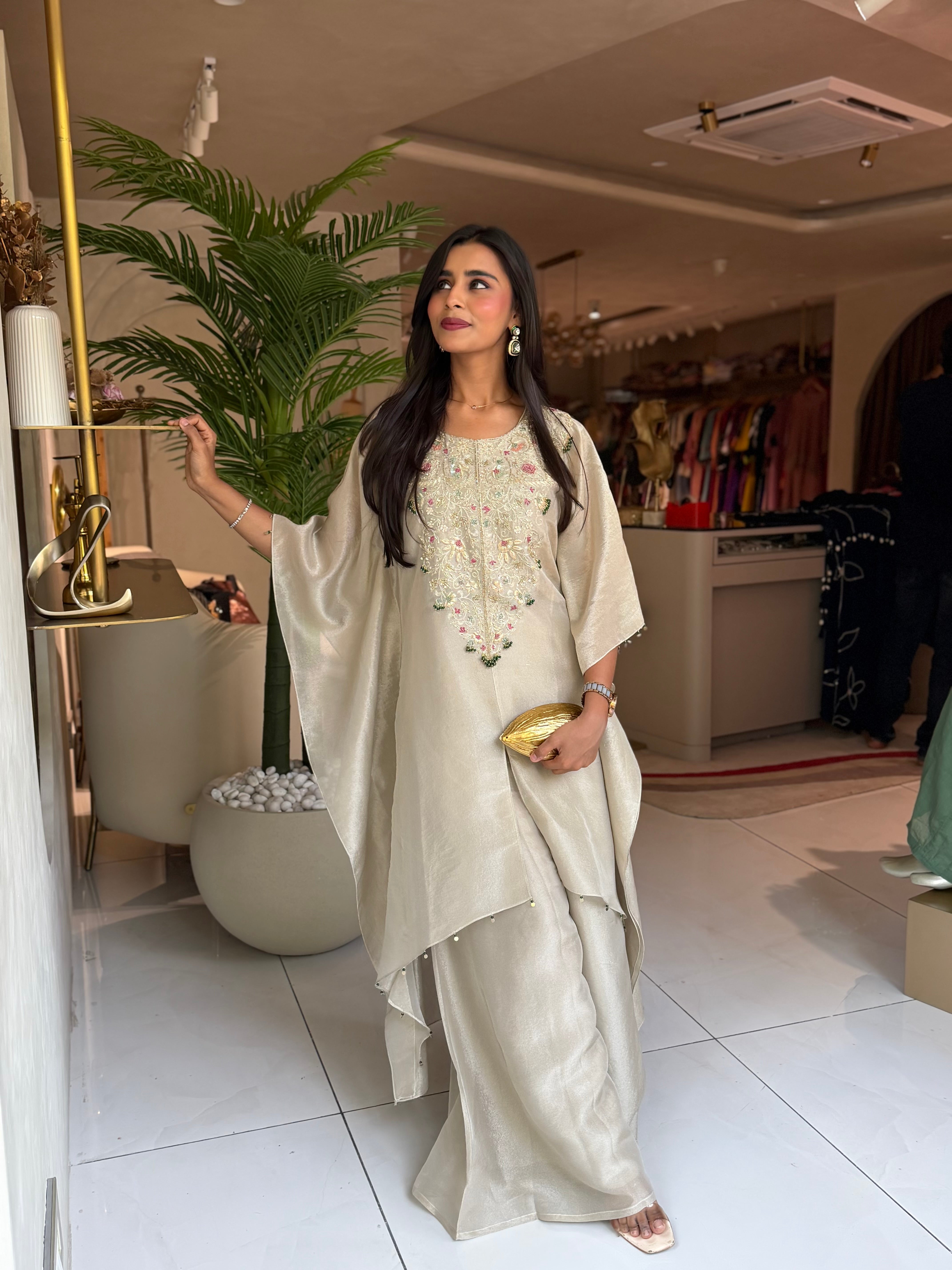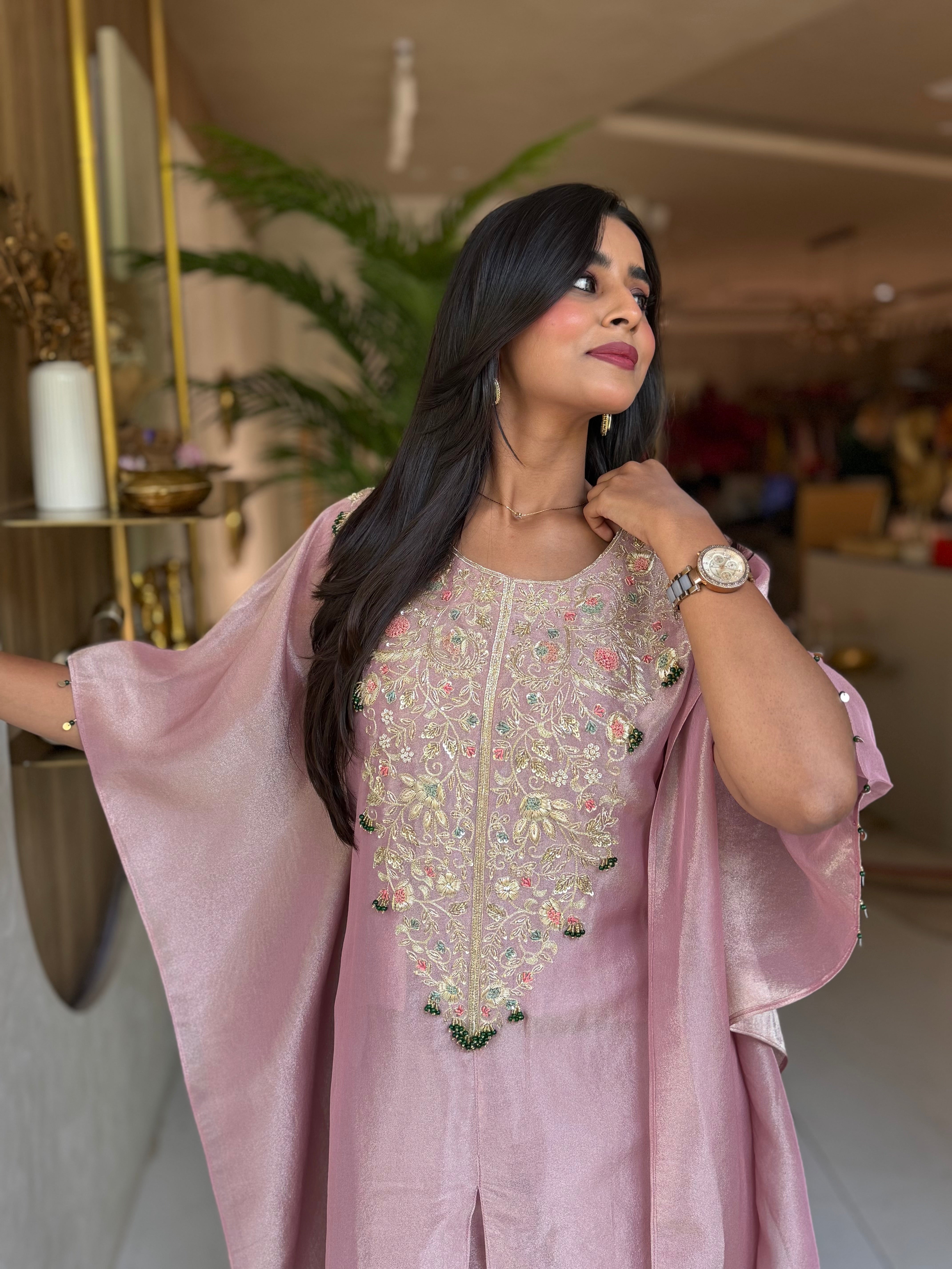 ✅ Premium Tissue Kaftan Top With Zardosi Handwork On The Yoke