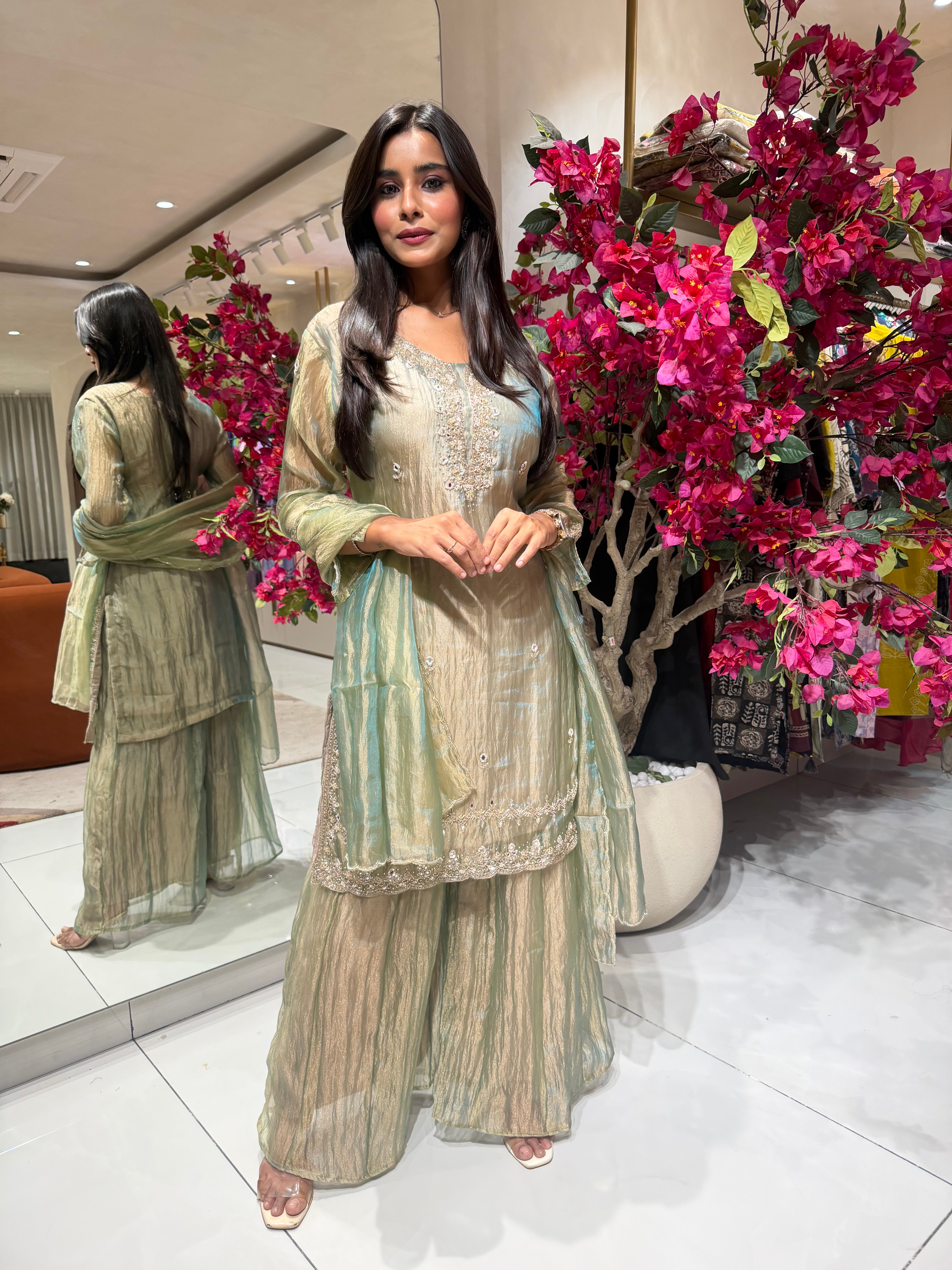 “ISHANI” Premium Tissue Sharara Set ✨