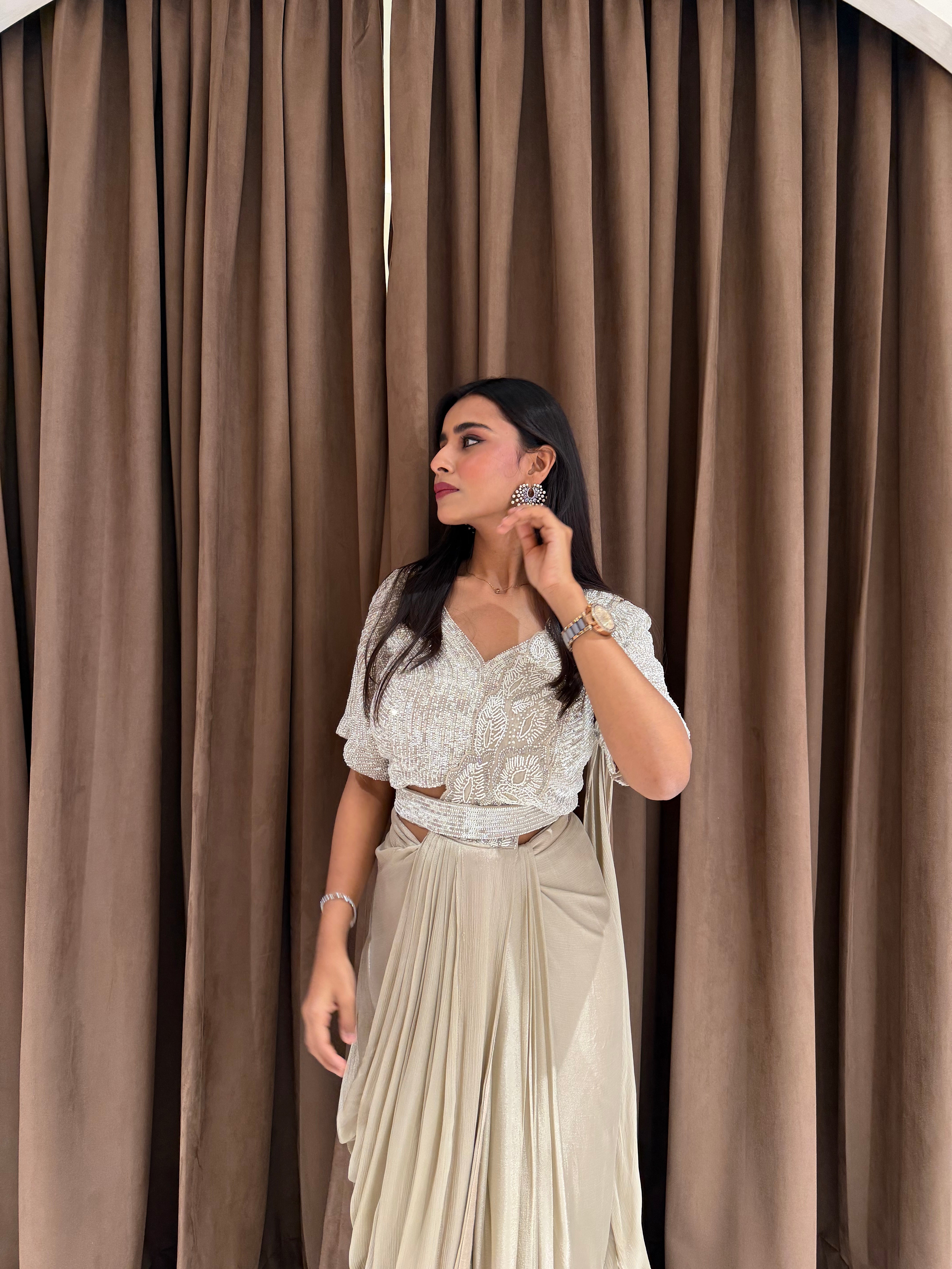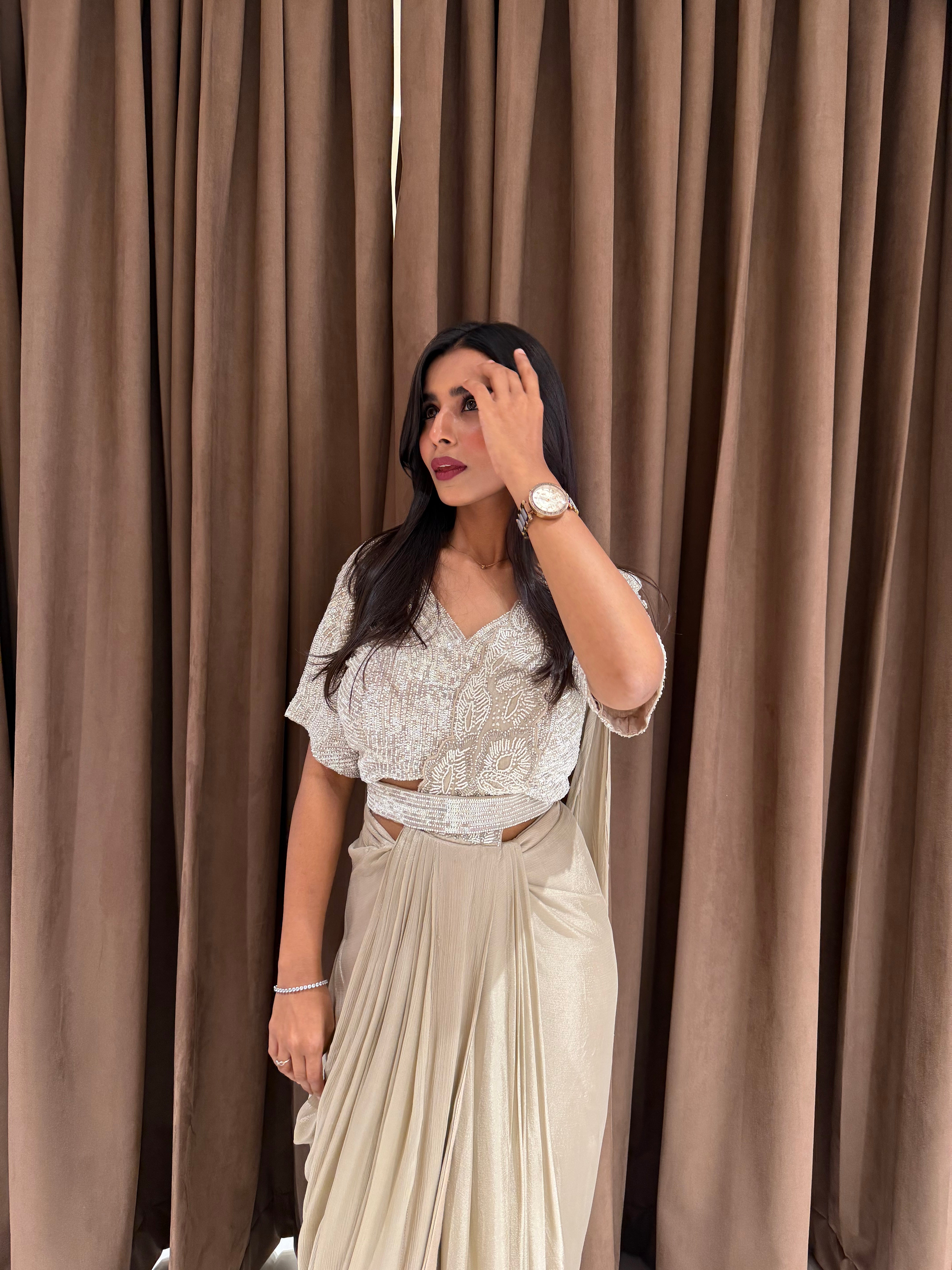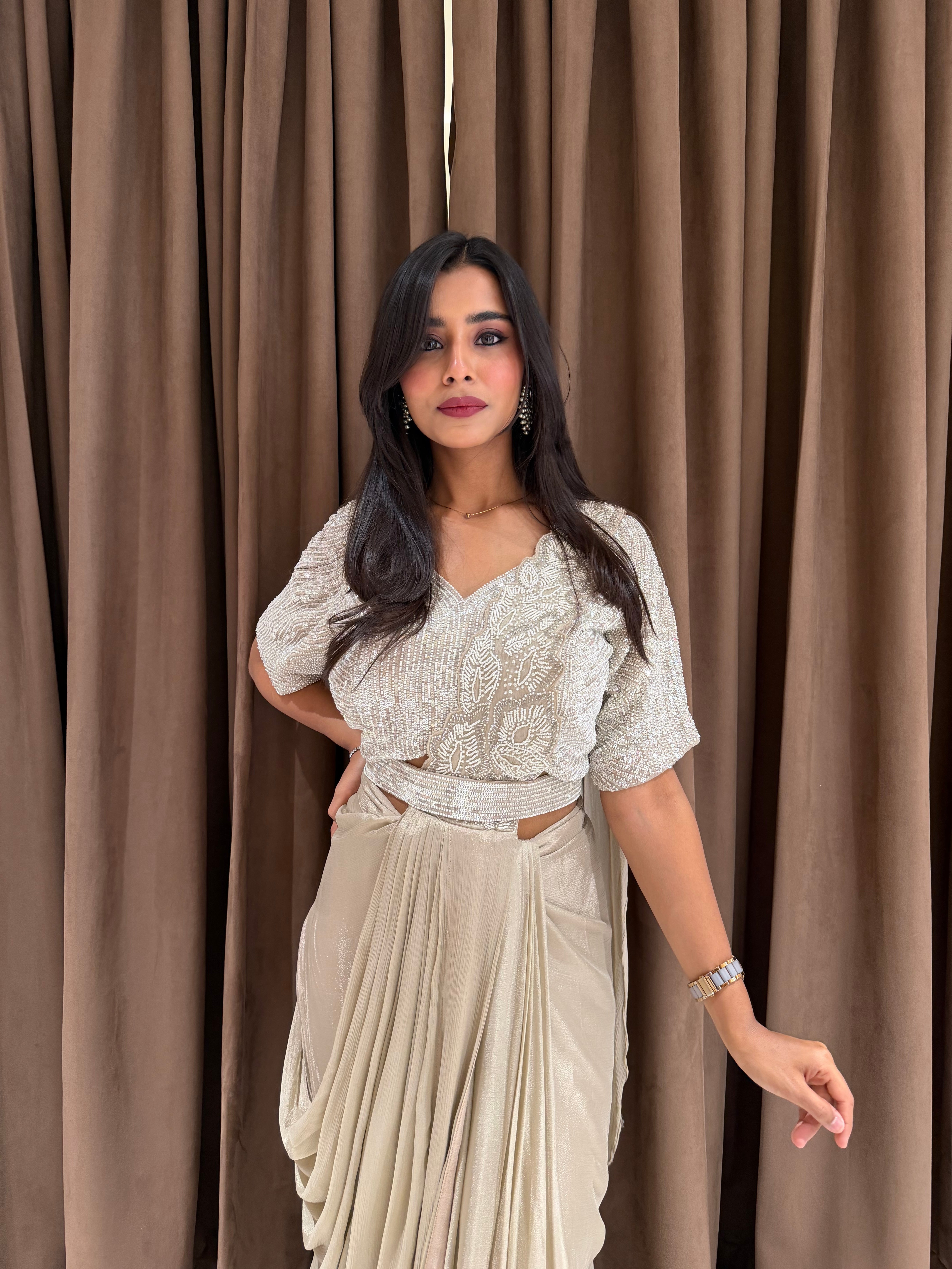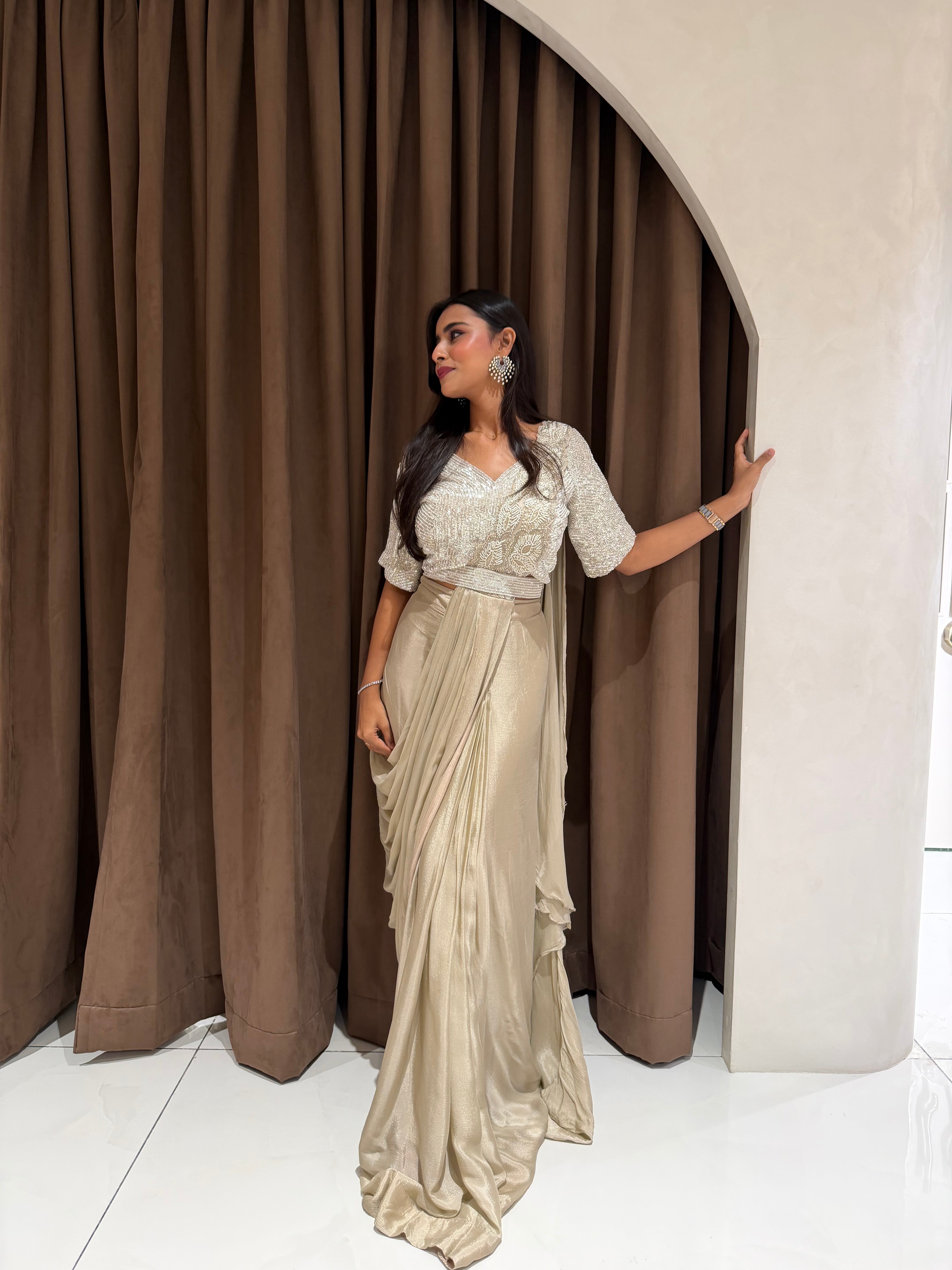 “IVORY GLITTER” Party Drape Saree ✨
