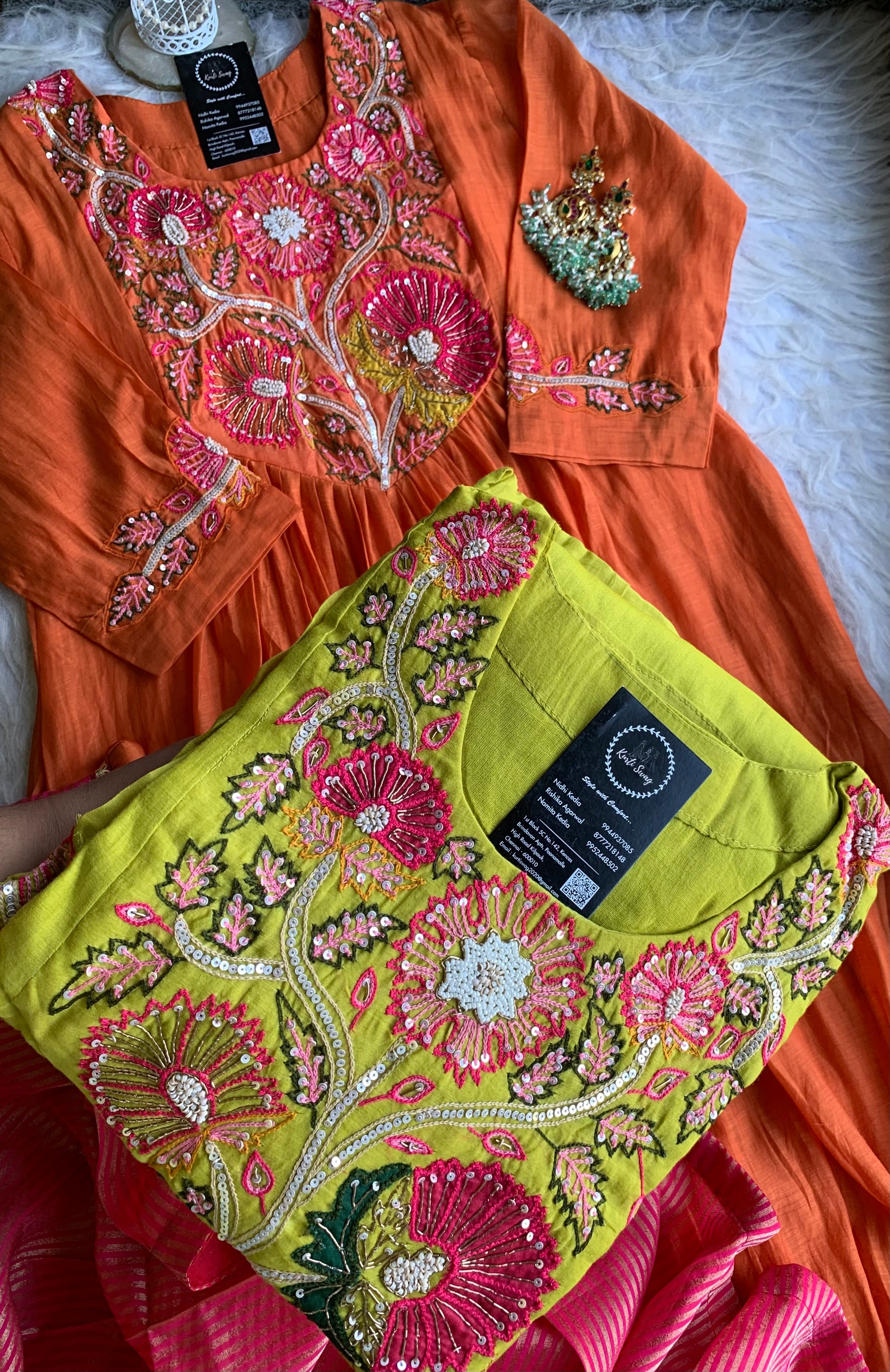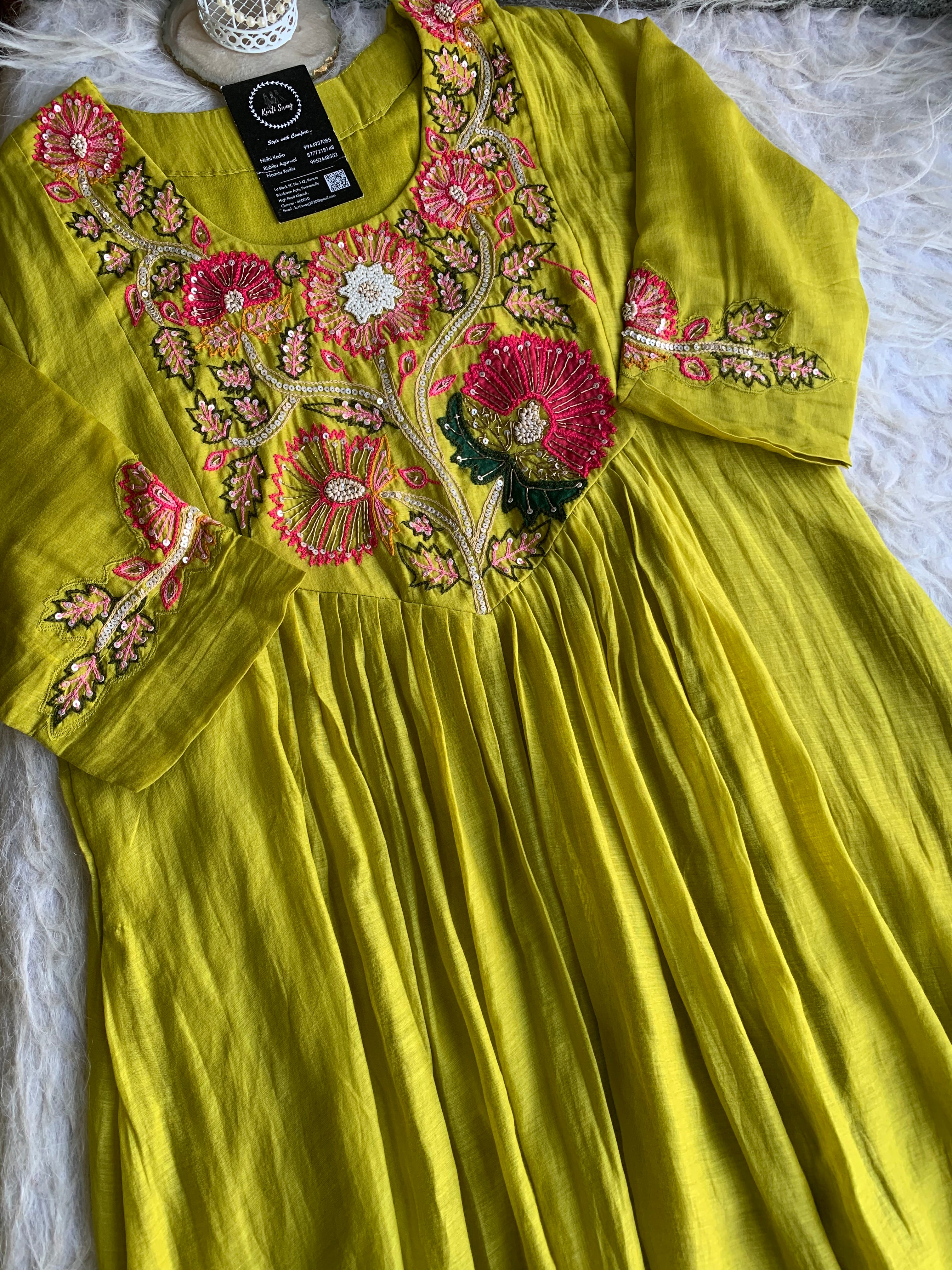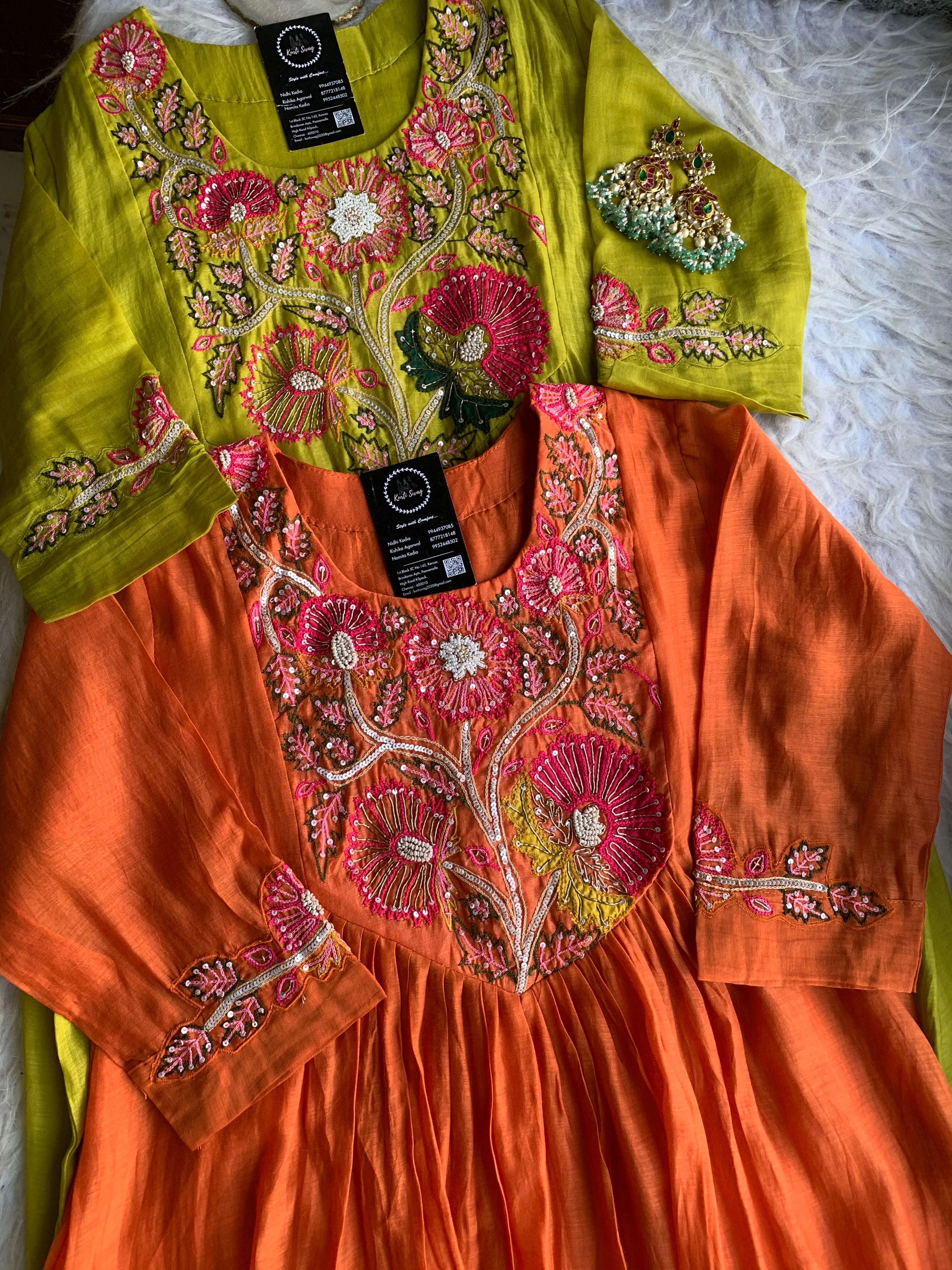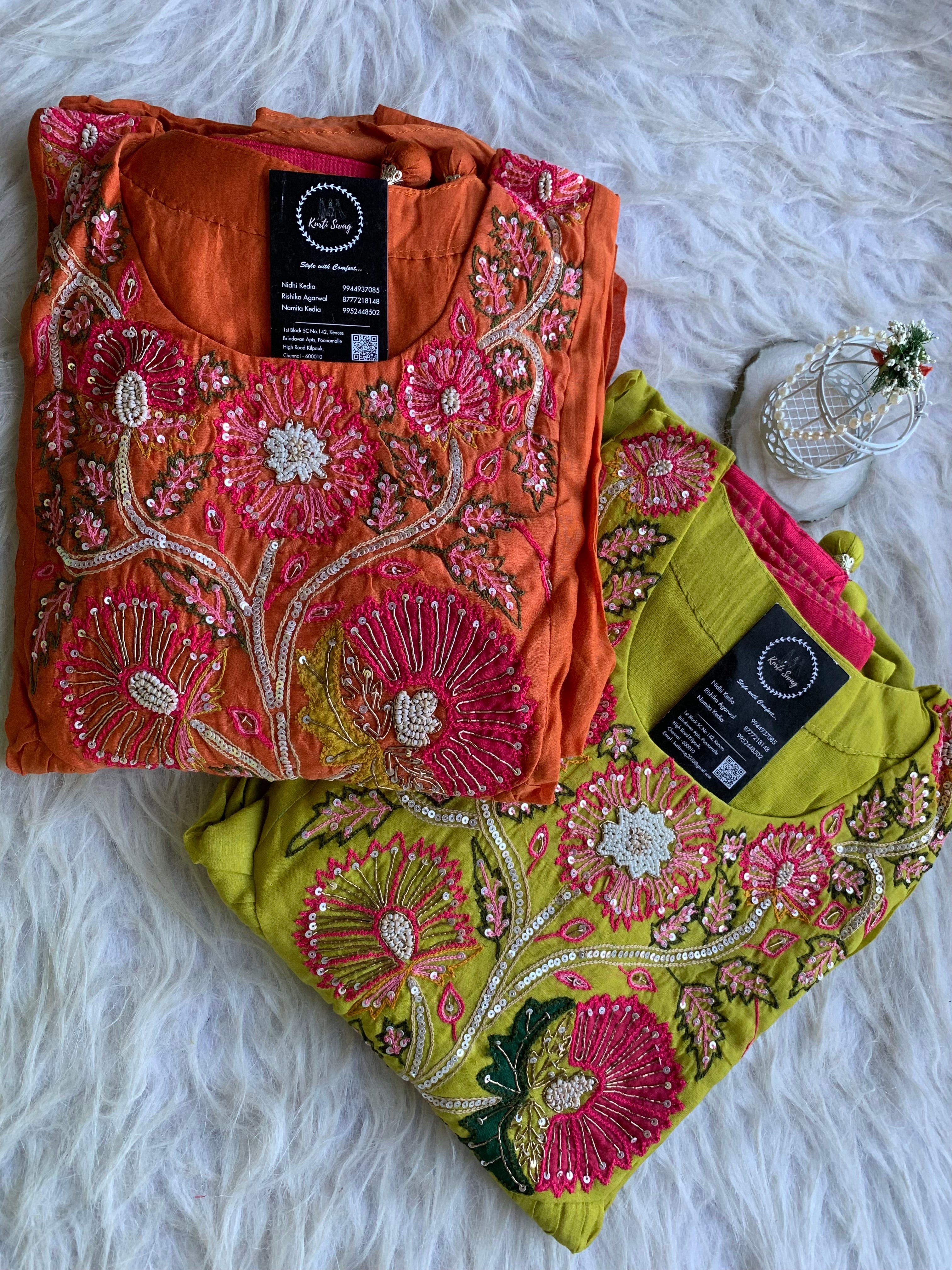 ✅ Premium Mul Chanderi Kurti With Zardosi Thread, Pearl And SequinWork On The Yoke Of The Kurti