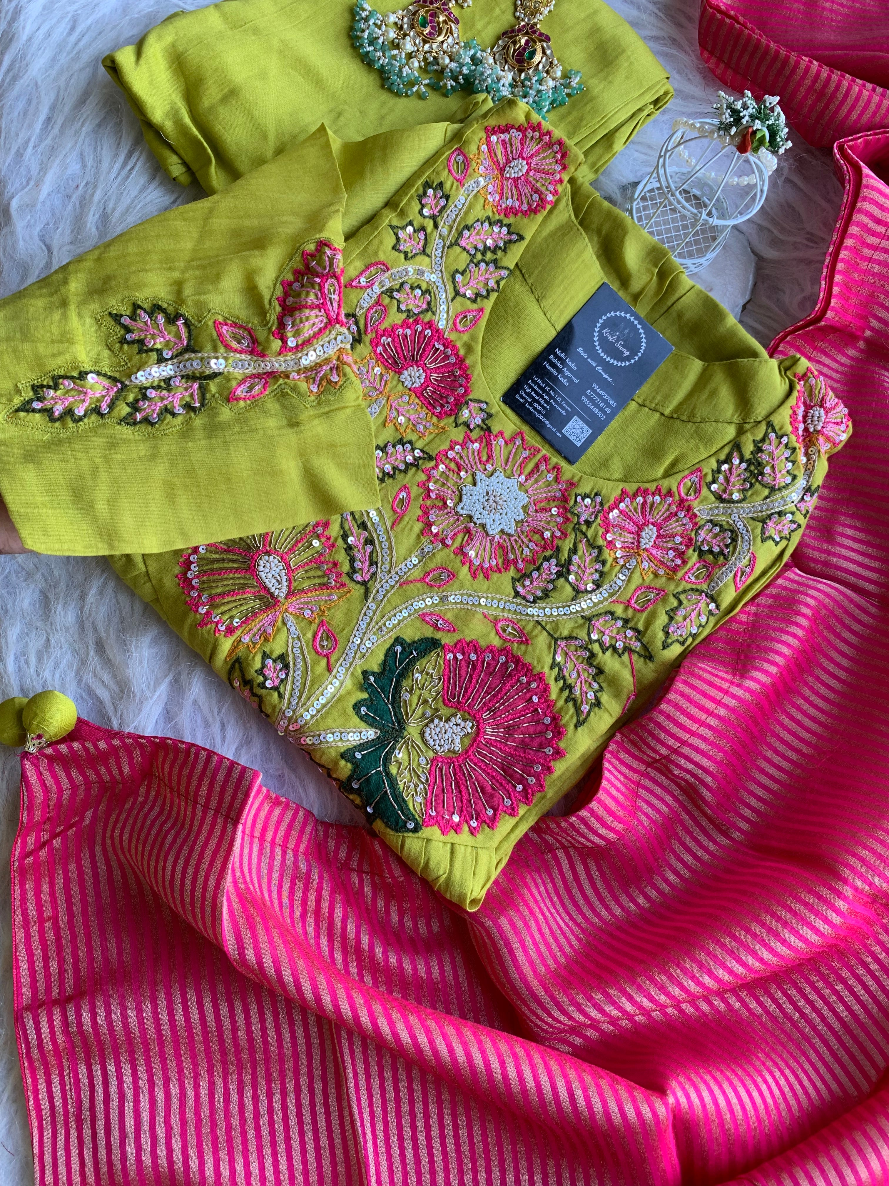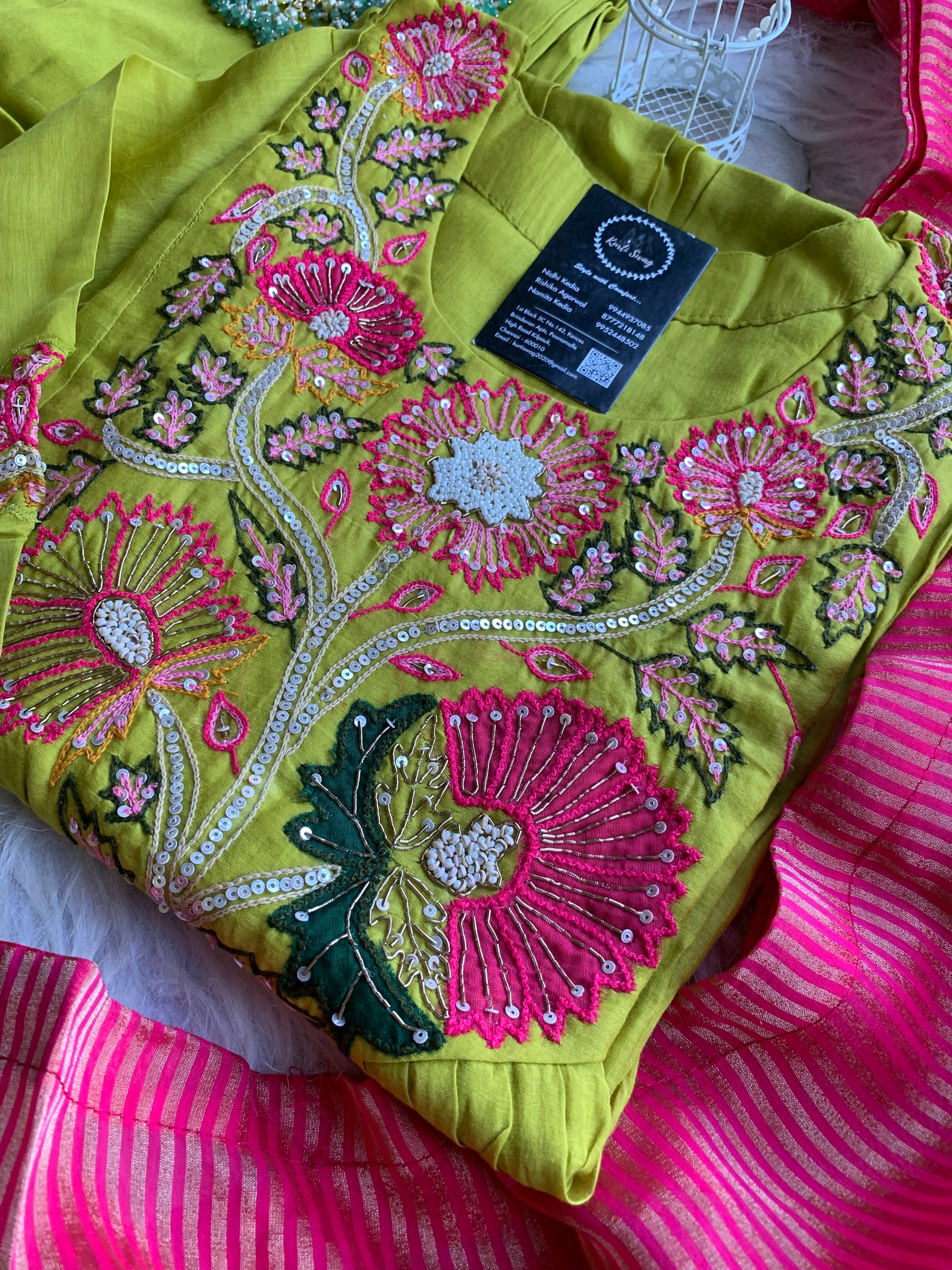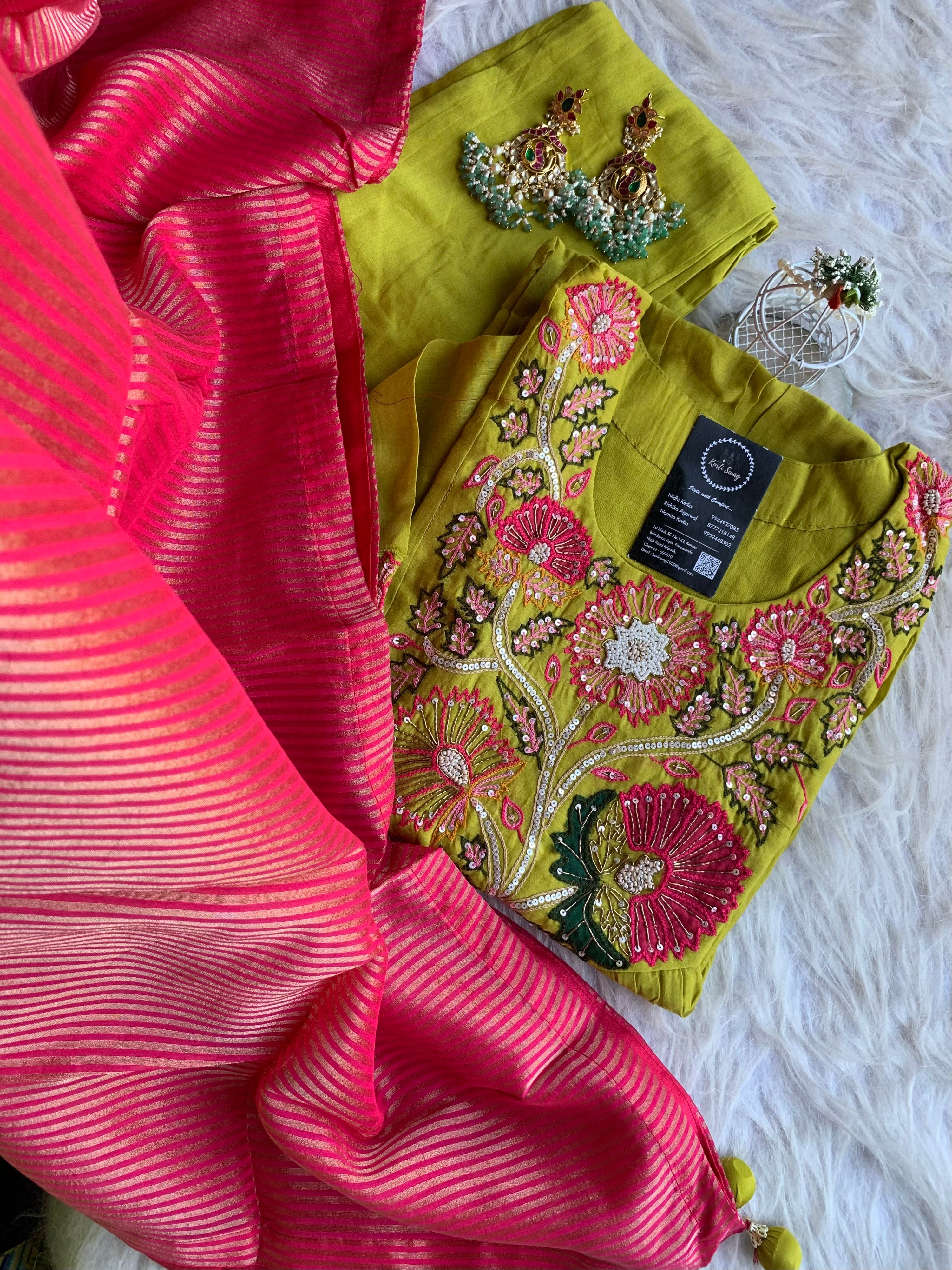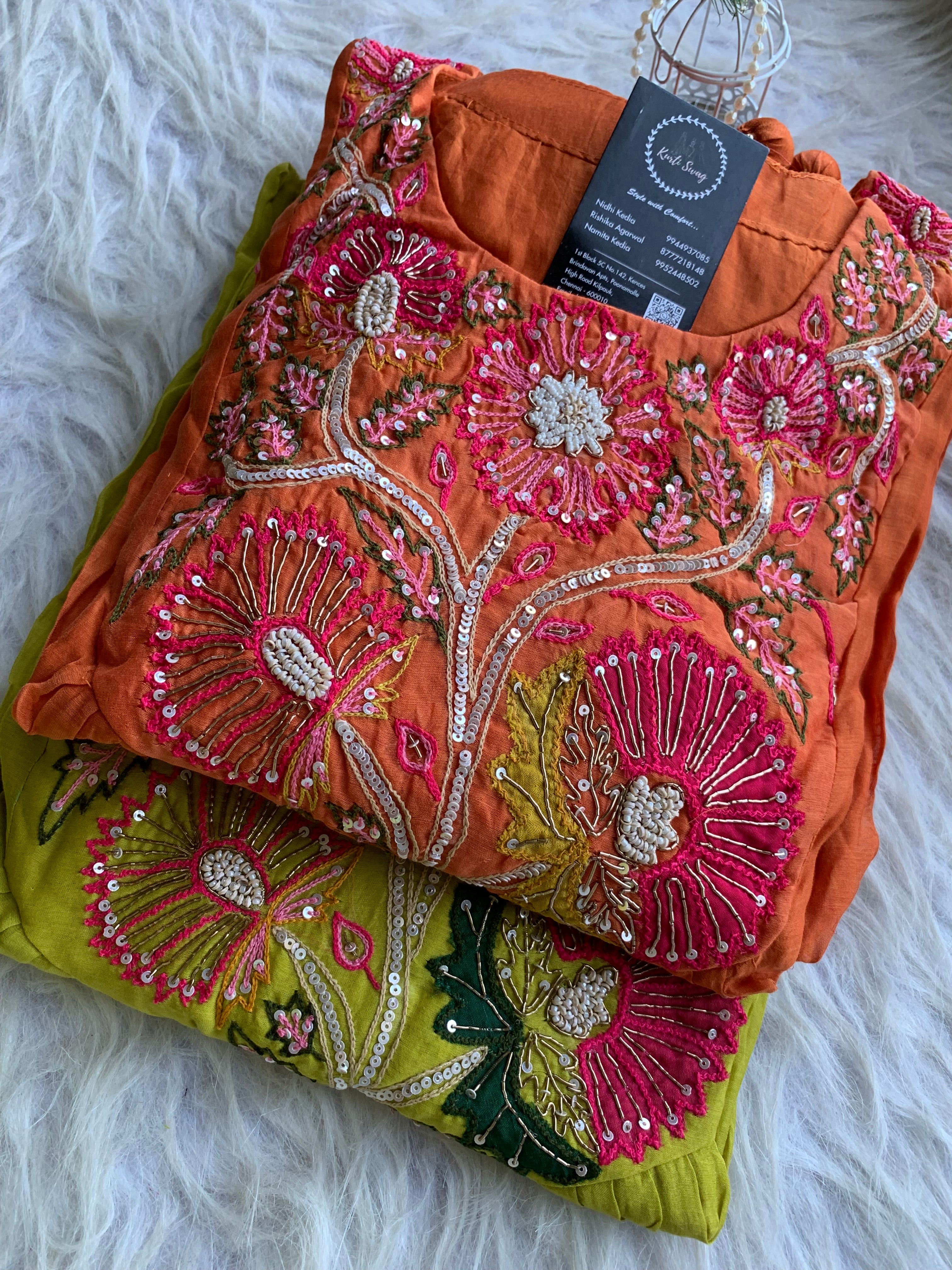 ✅ Premium Mul Chanderi Kurti With Zardosi Thread, Pearl And SequinWork On The Yoke Of The Kurti