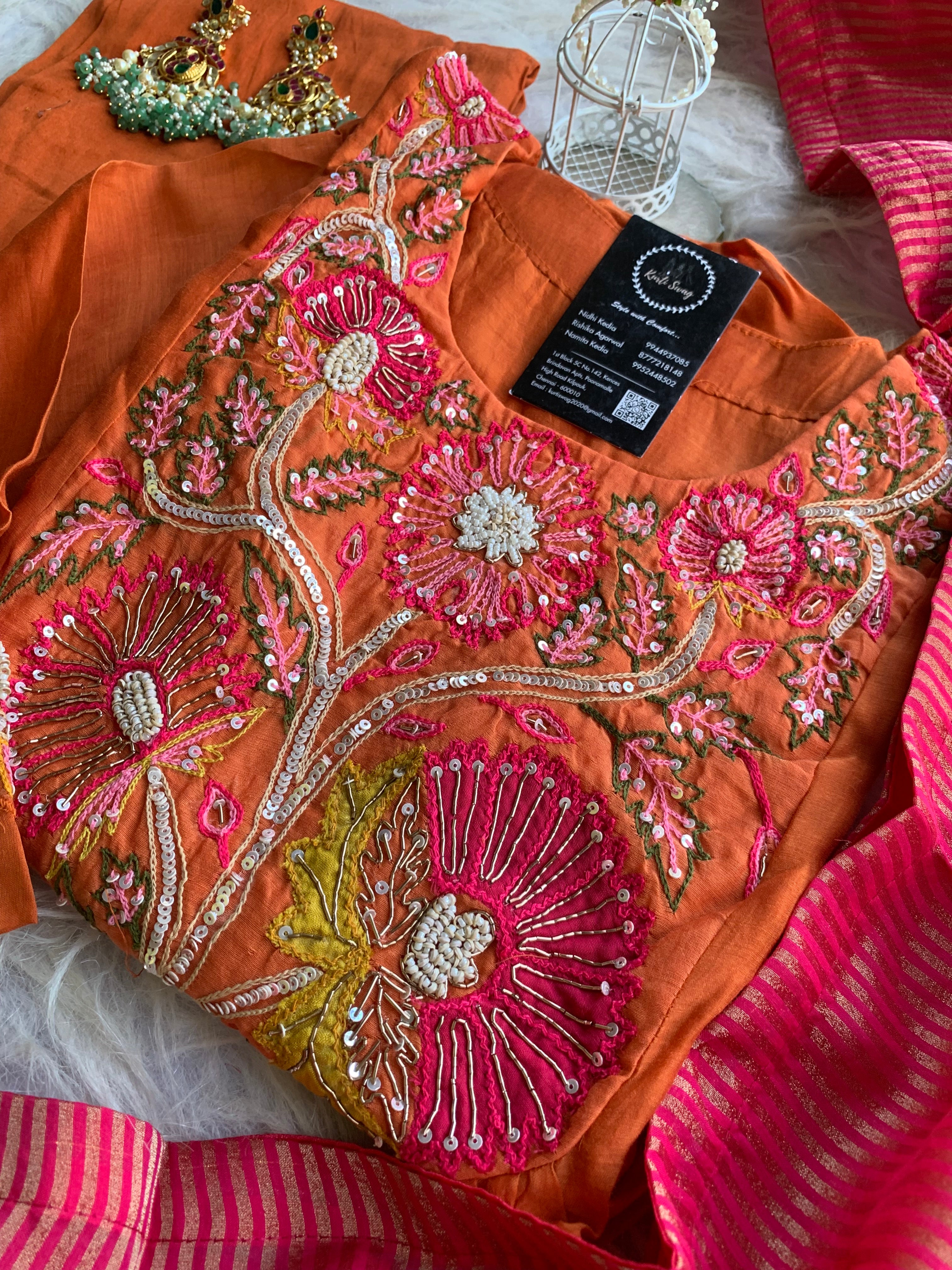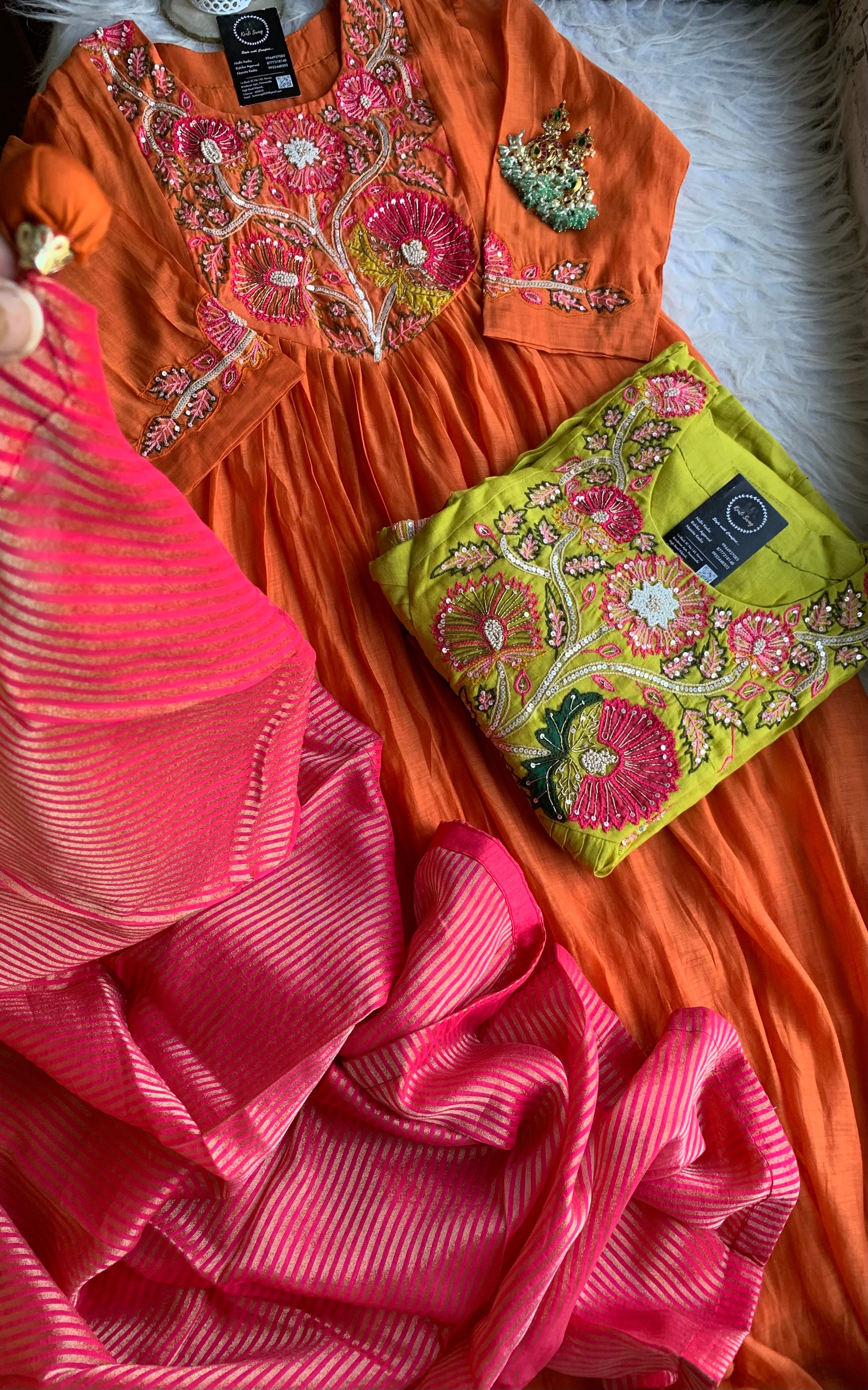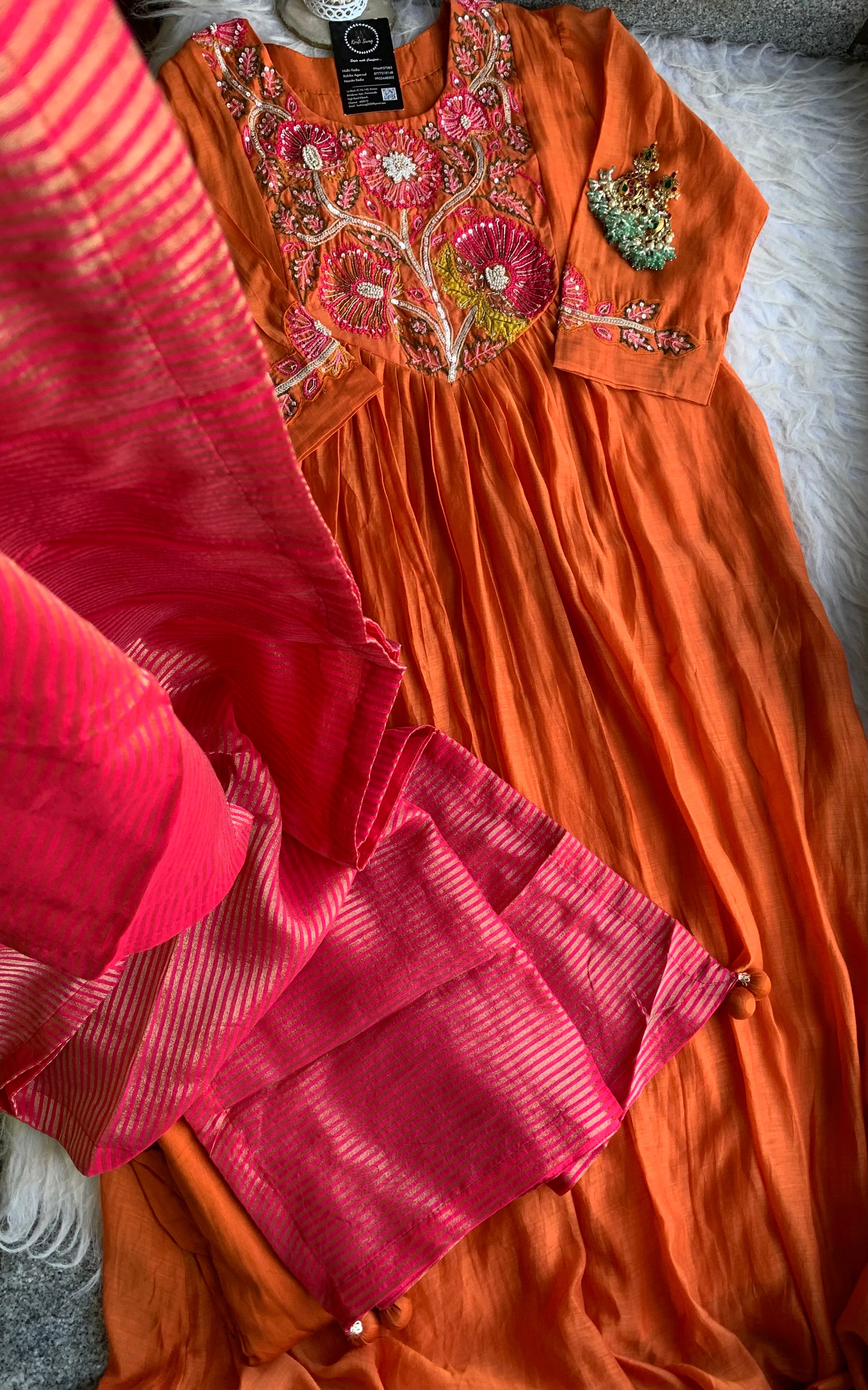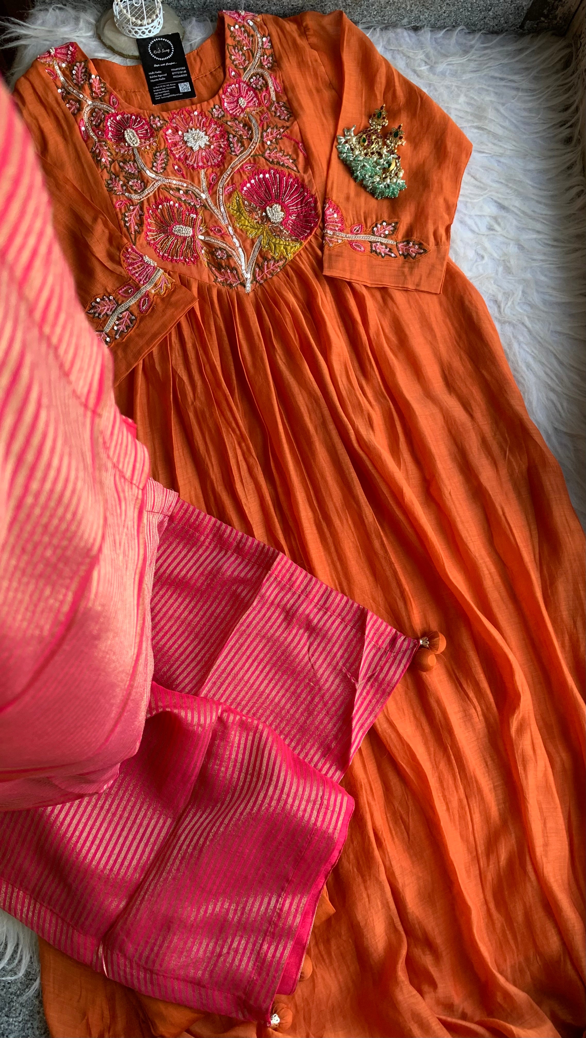 “JOSHITA” Premium Mul Chanderi Handwork A Line Suit Set ✨💕