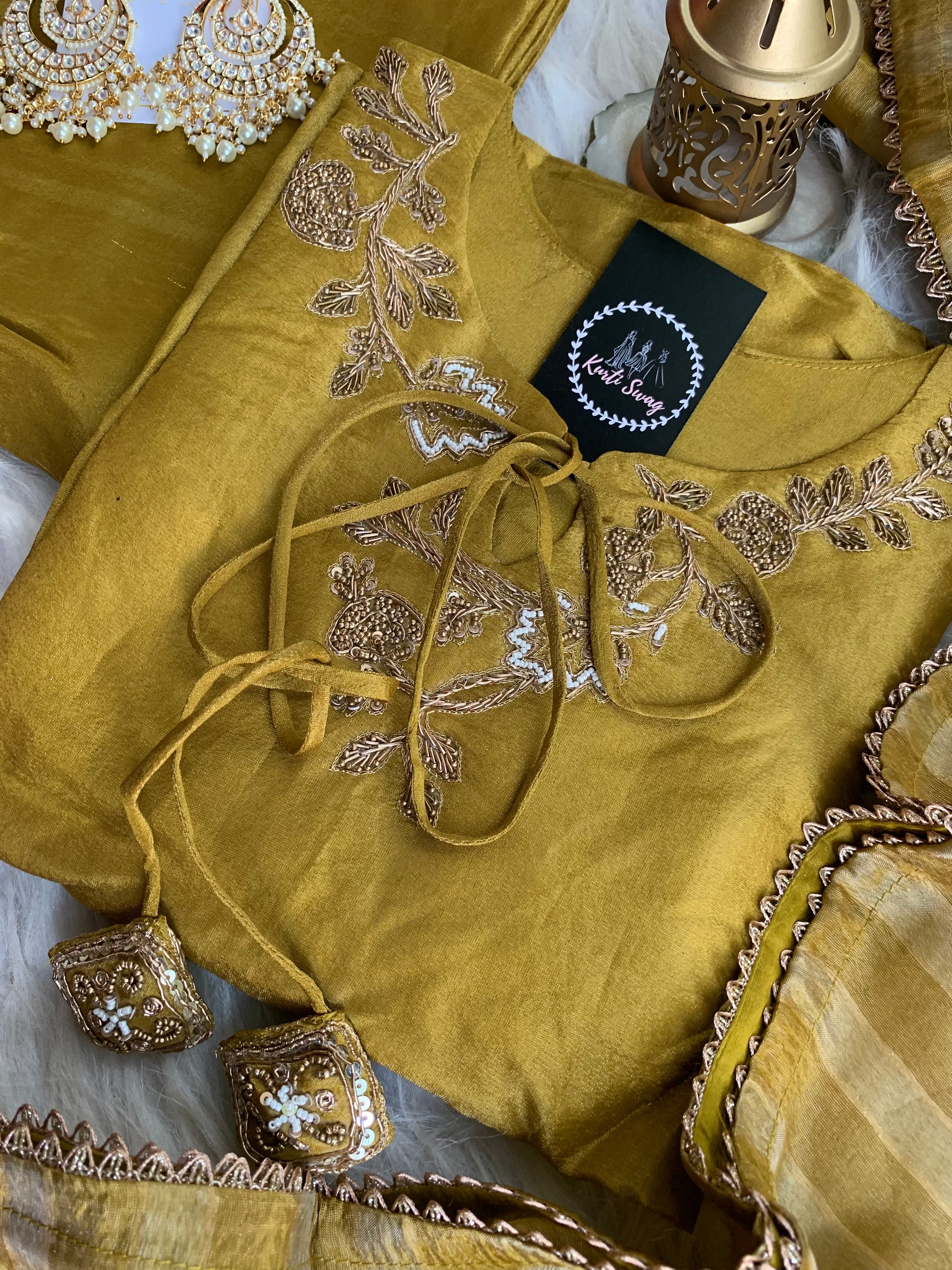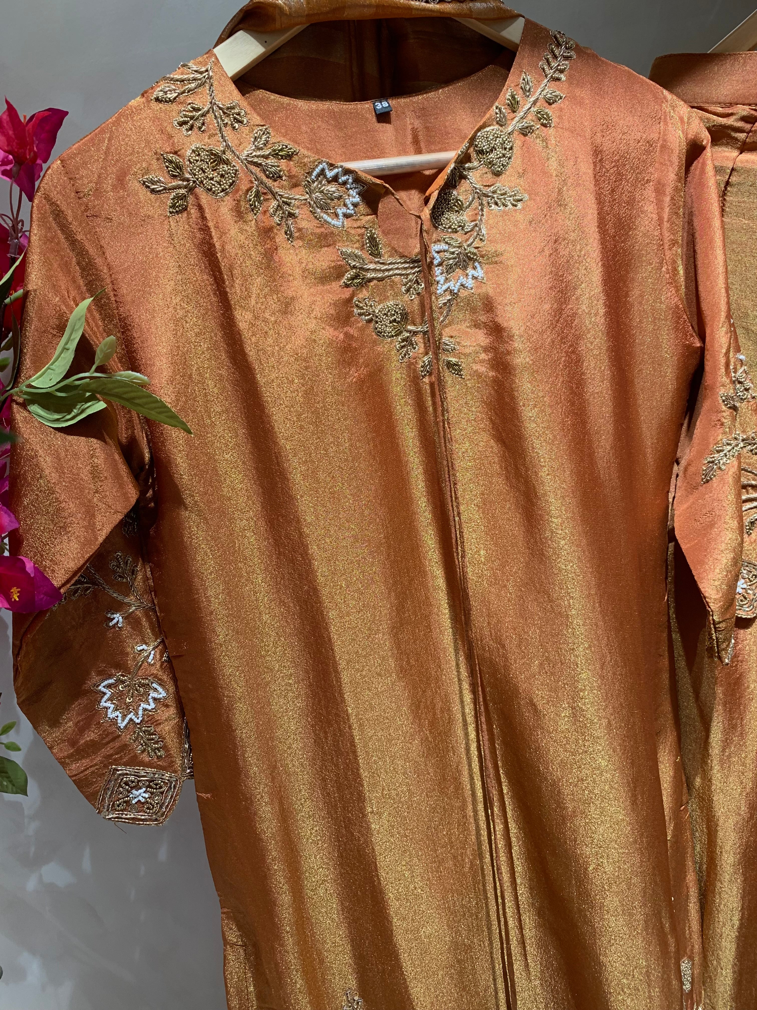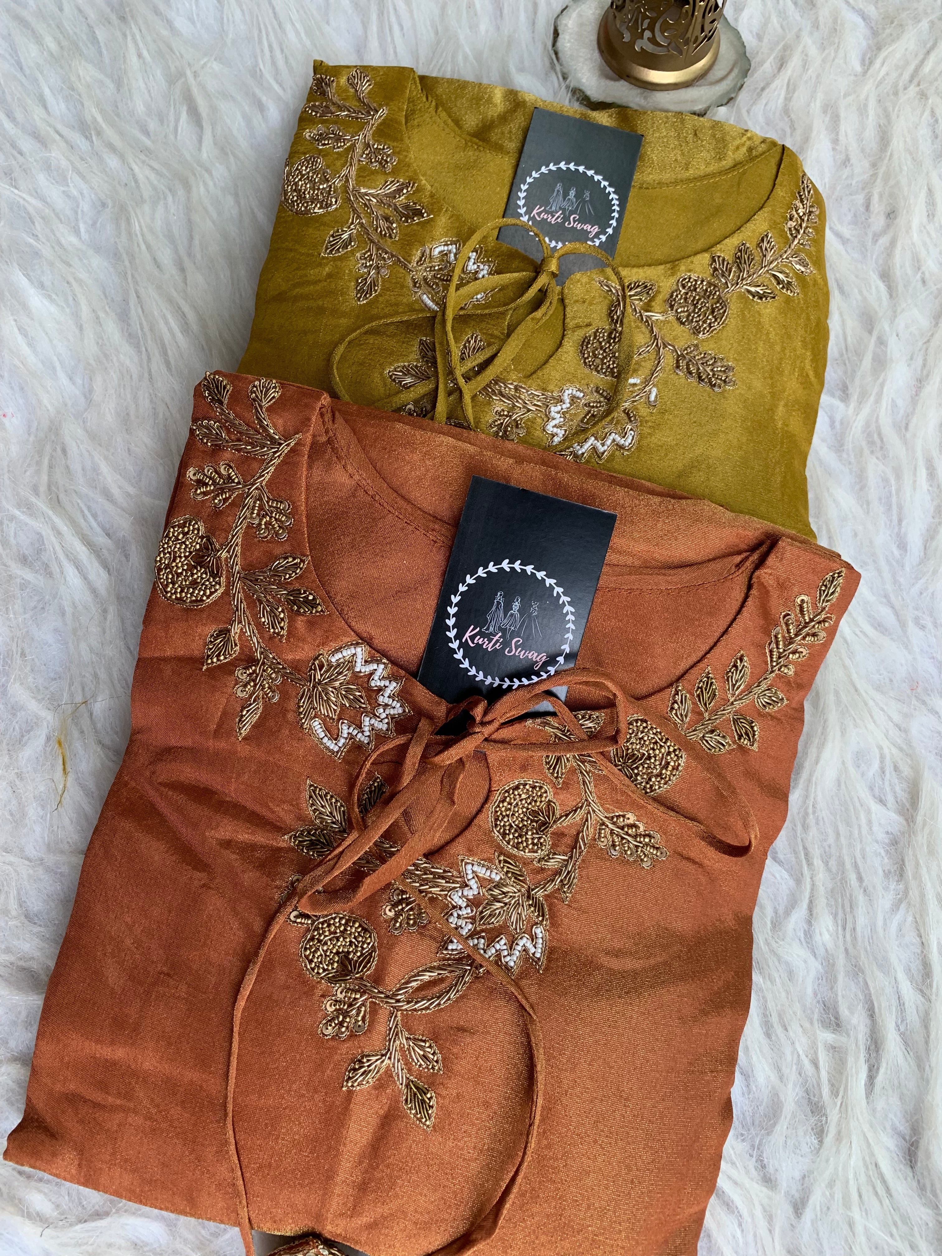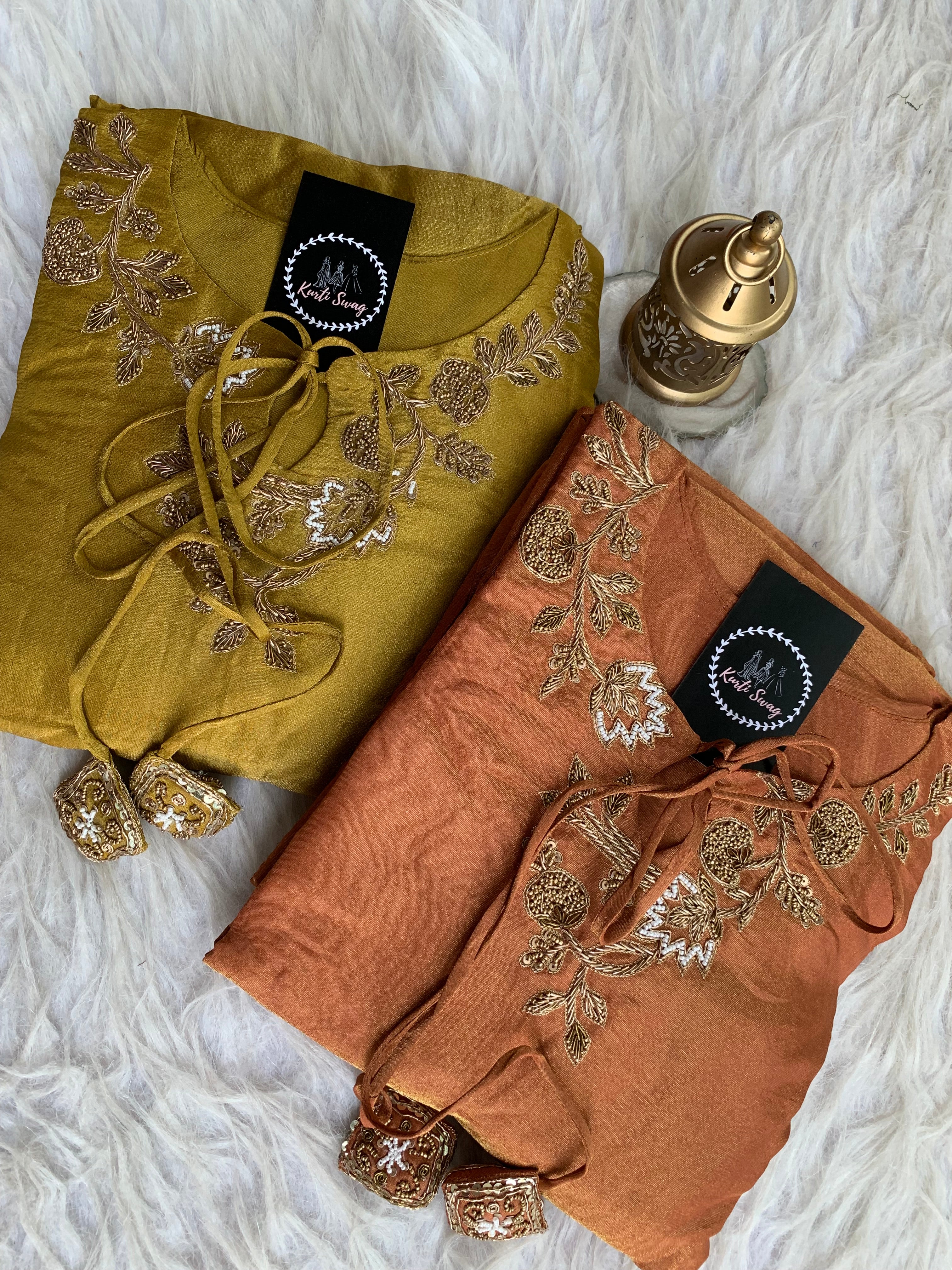 ✅Premium Tissue Silk Kurta with Zari , Zardosi And Beads Handwork On The Yoke, Daaman Of The Kurta