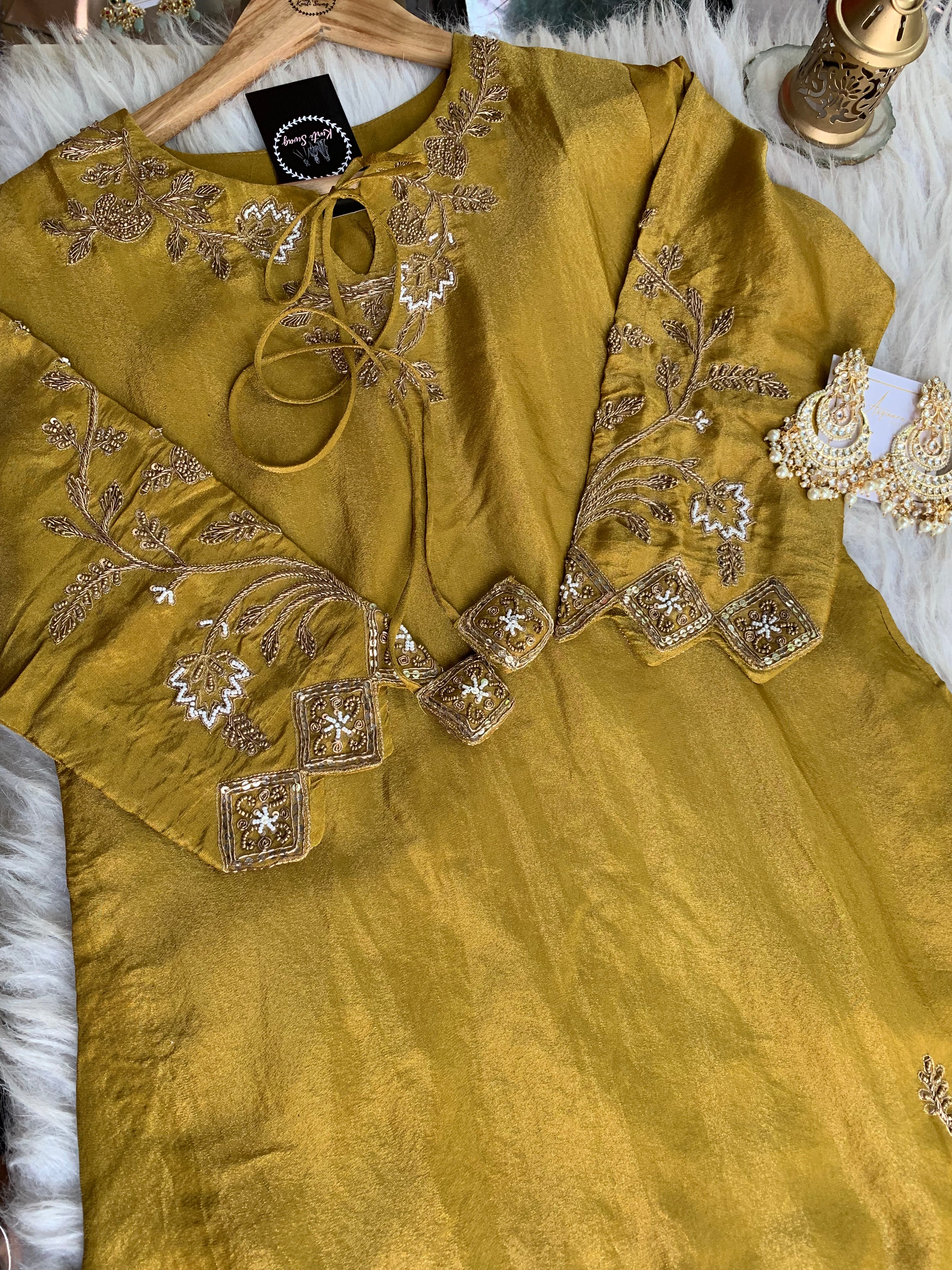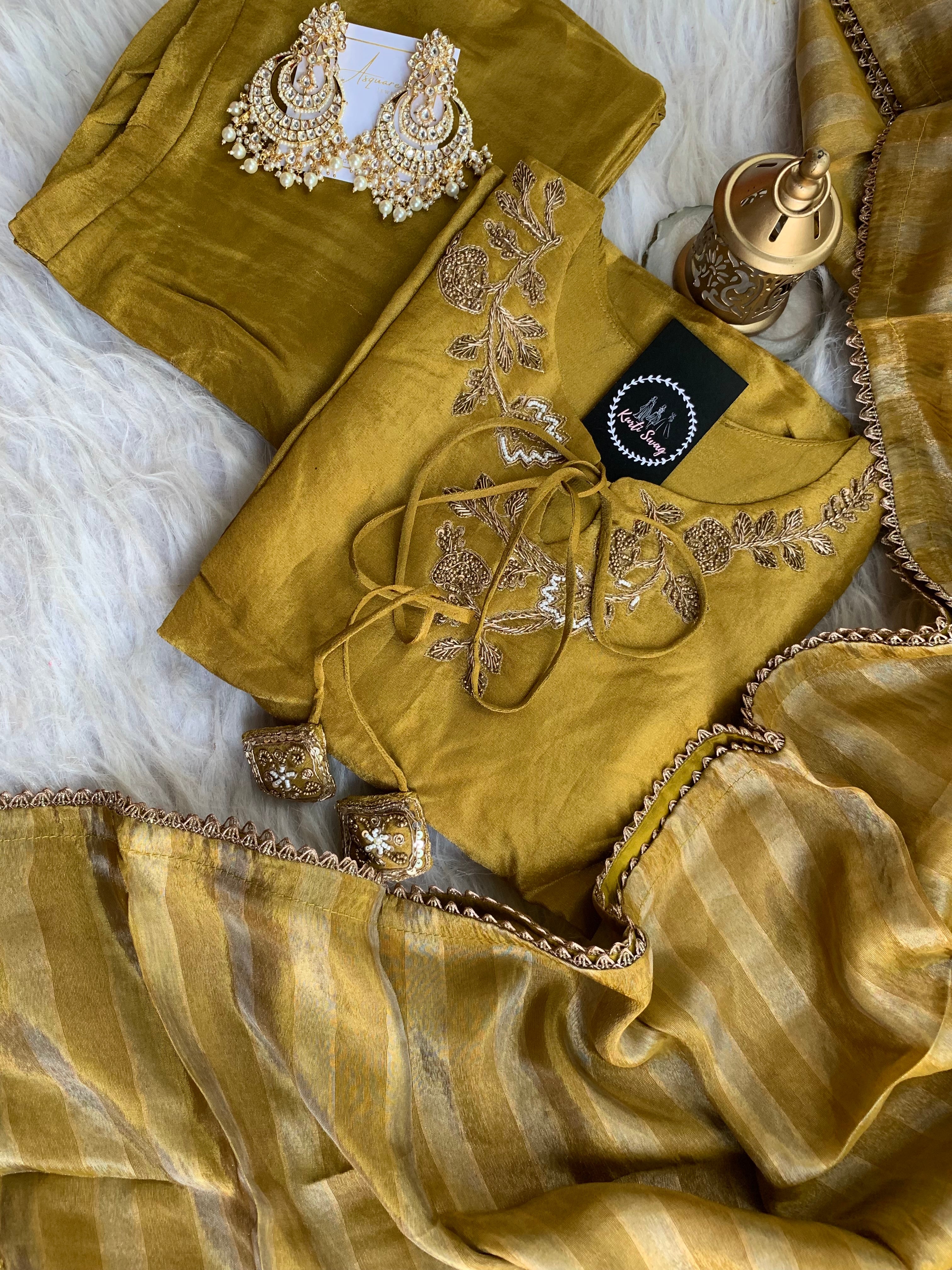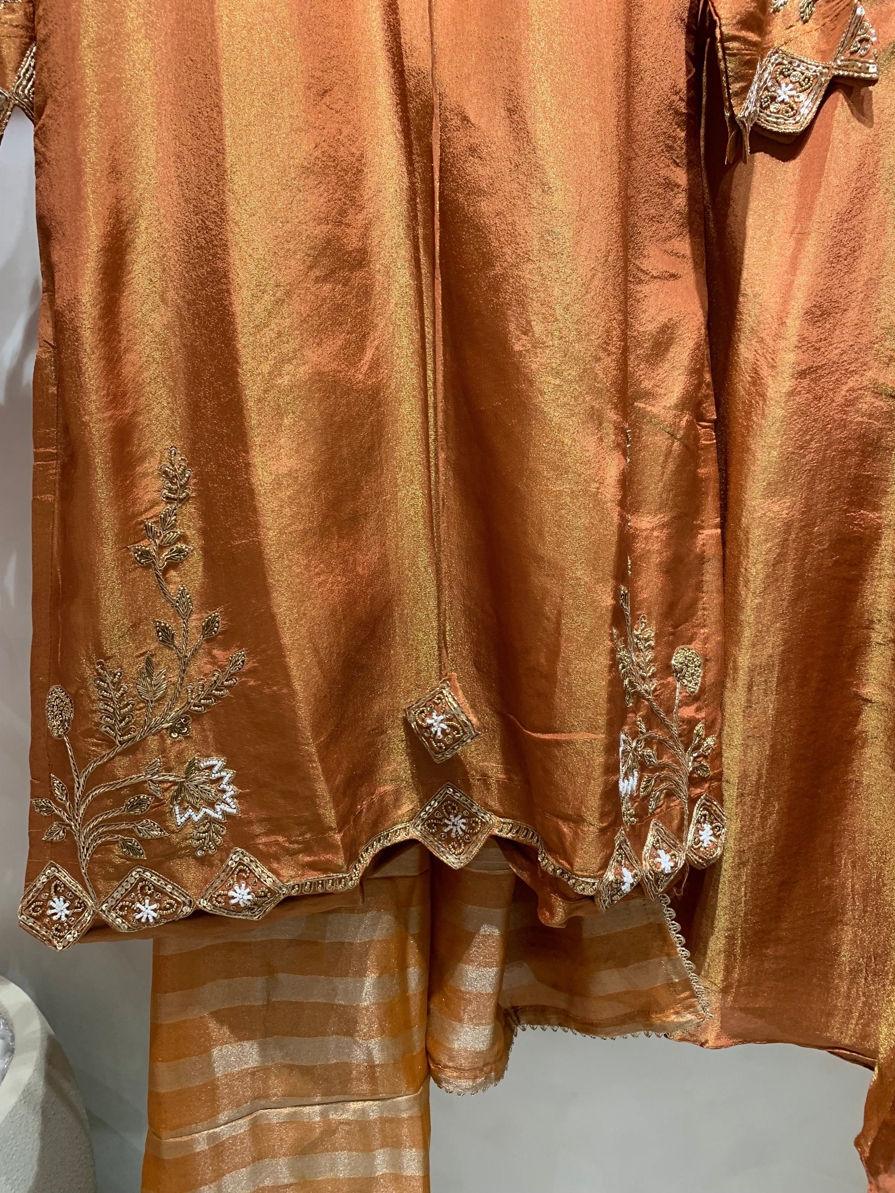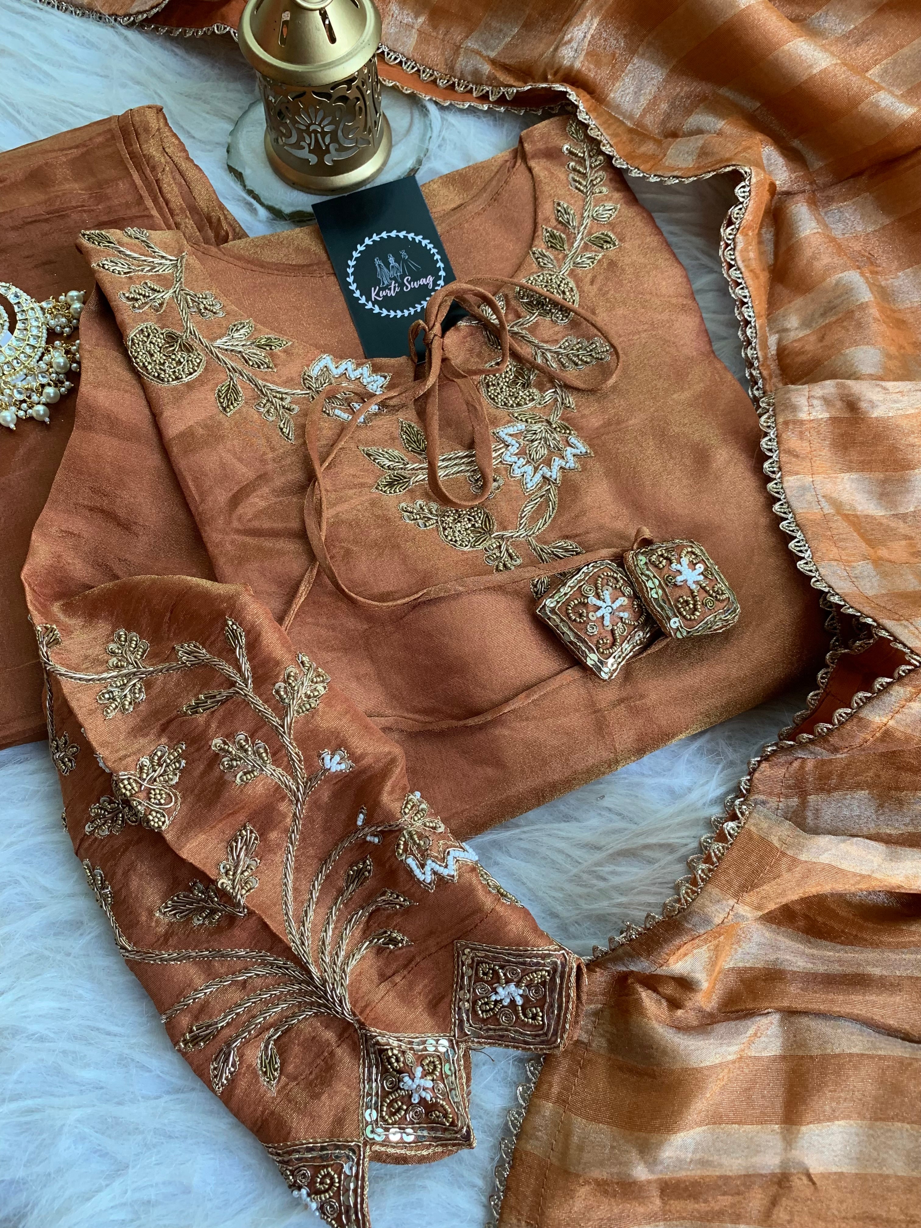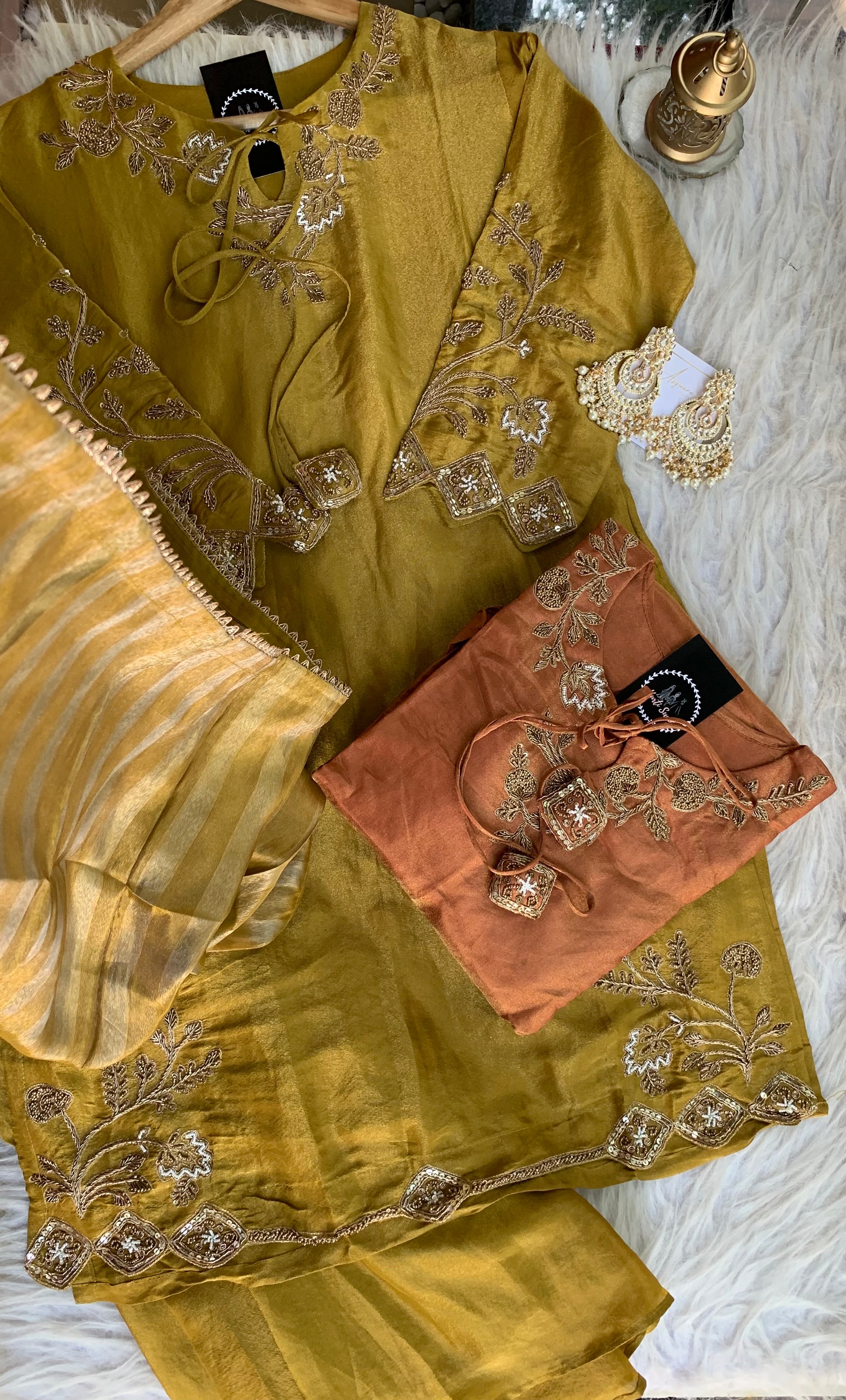 ✅Premium Tissue Silk Kurta with Zari , Zardosi And Beads Handwork On The Yoke, Daaman Of The Kurta