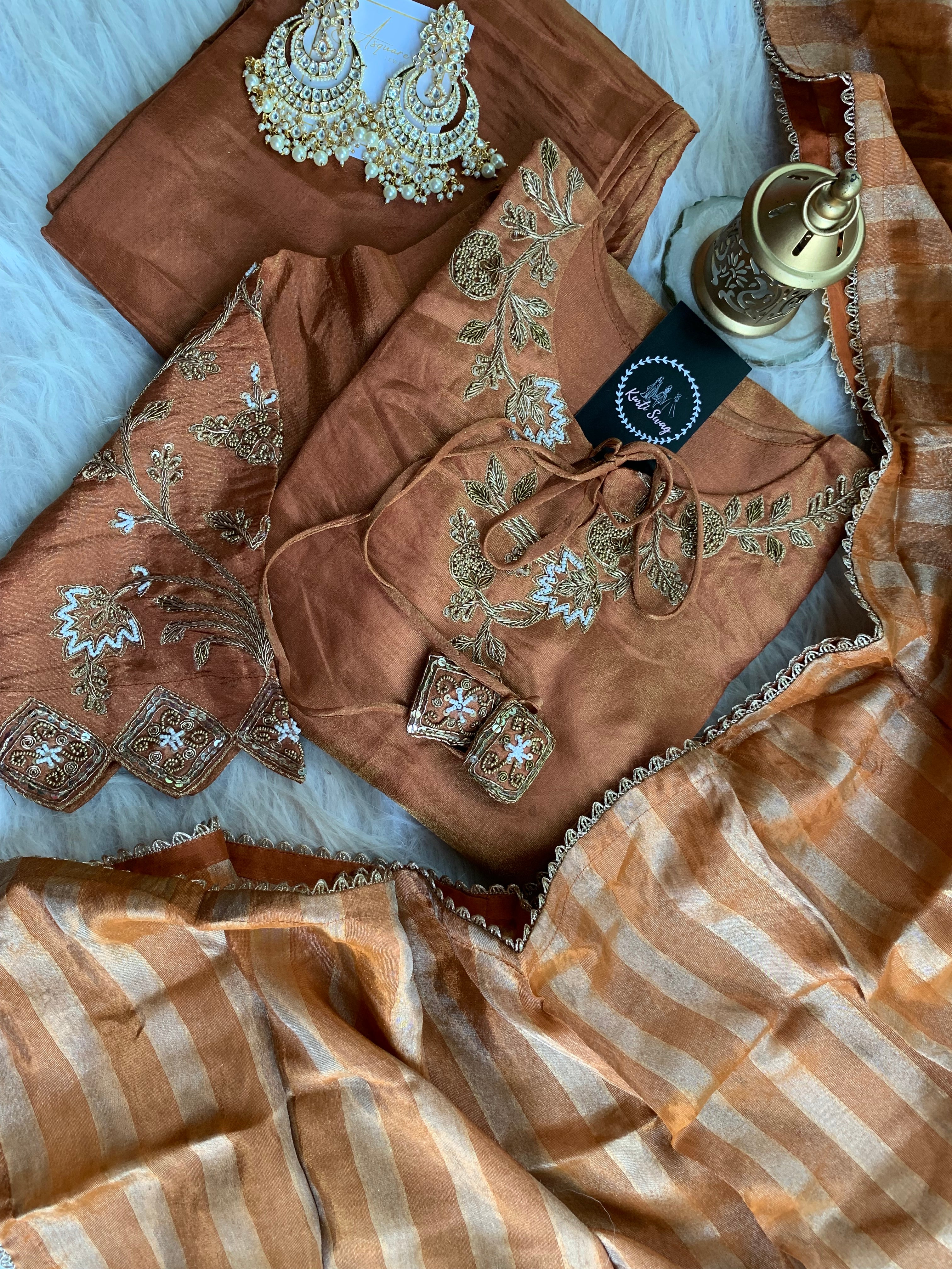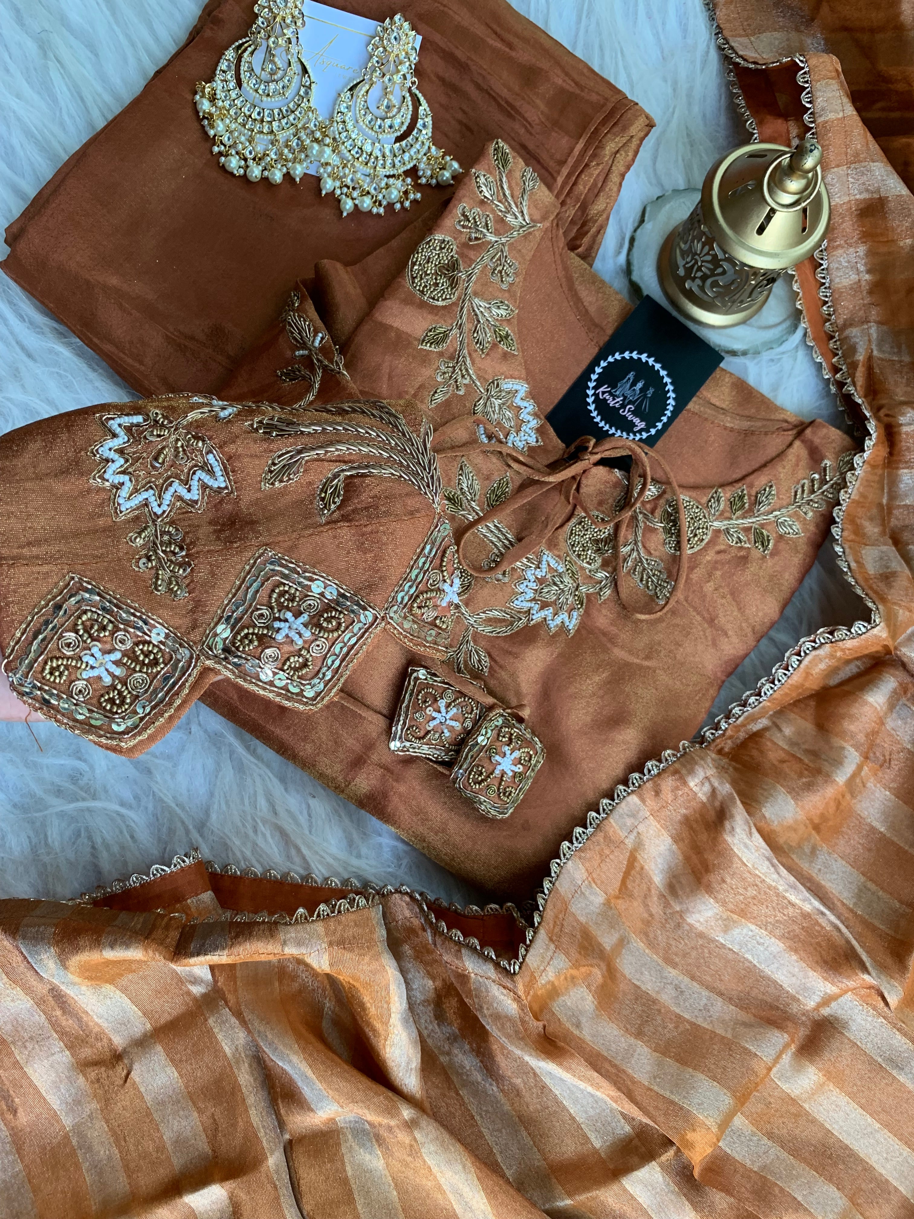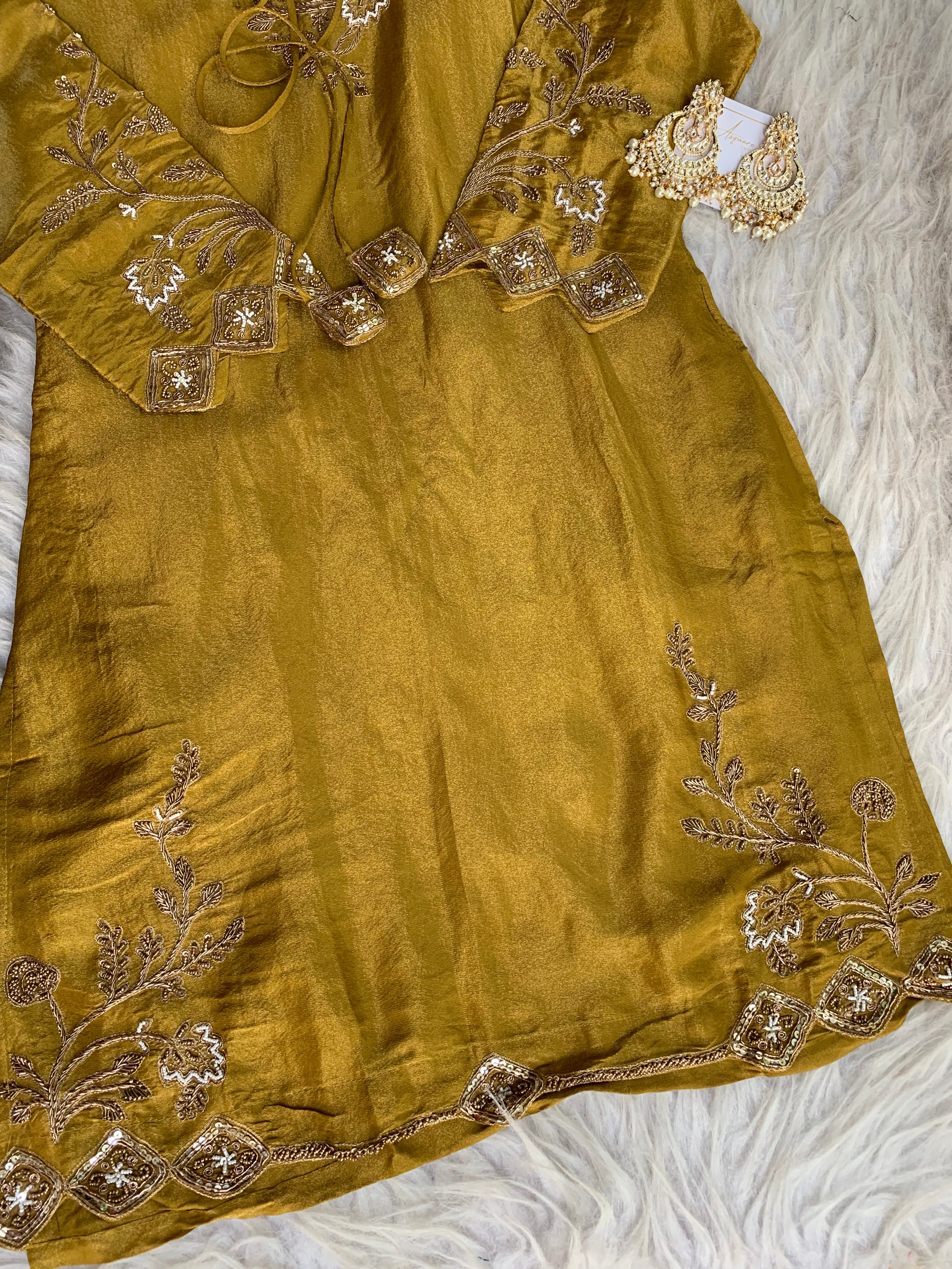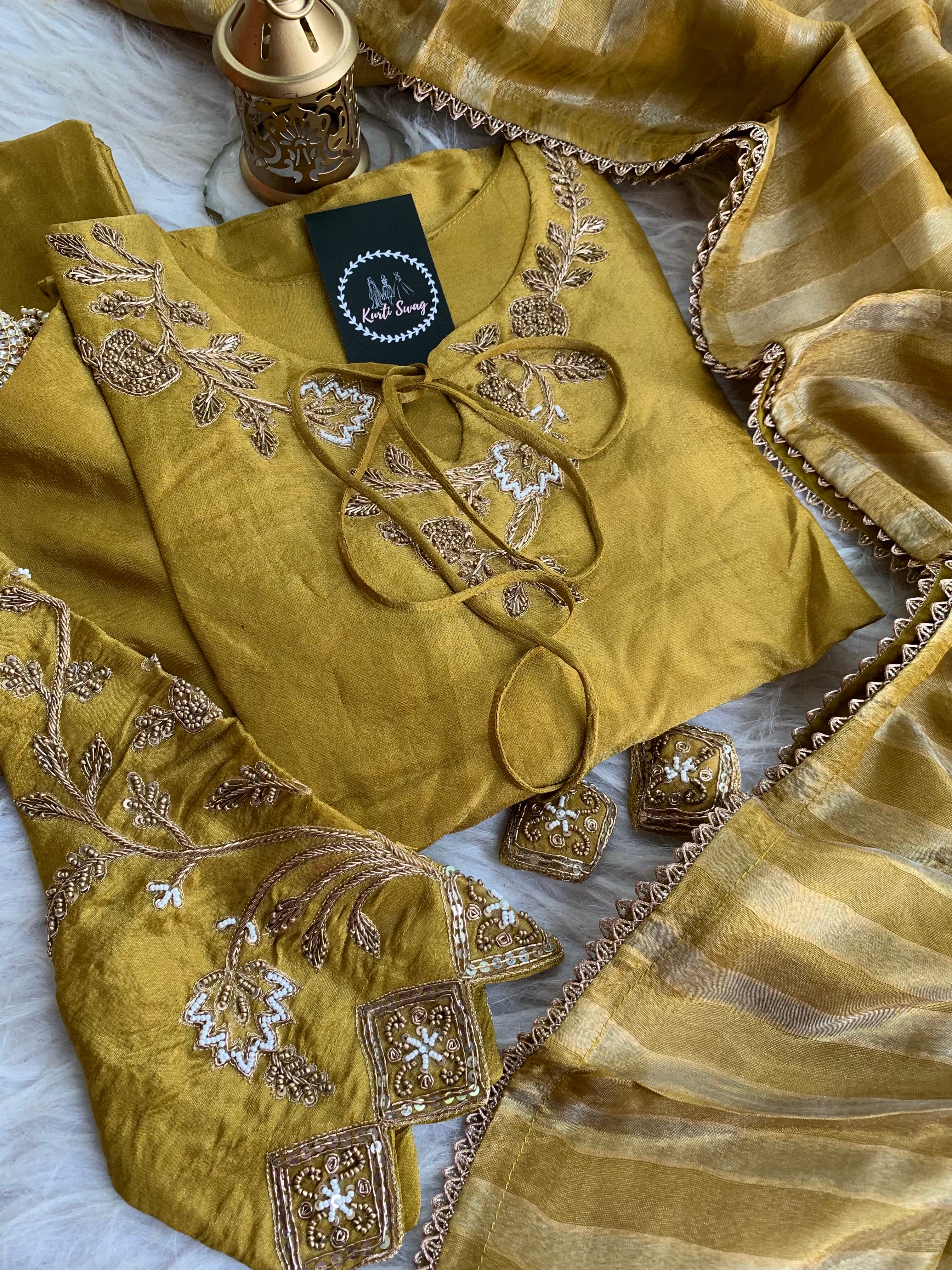 ✅Premium Tissue Silk Kurta with Zari , Zardosi And Beads Handwork On The Yoke, Daaman Of The Kurta