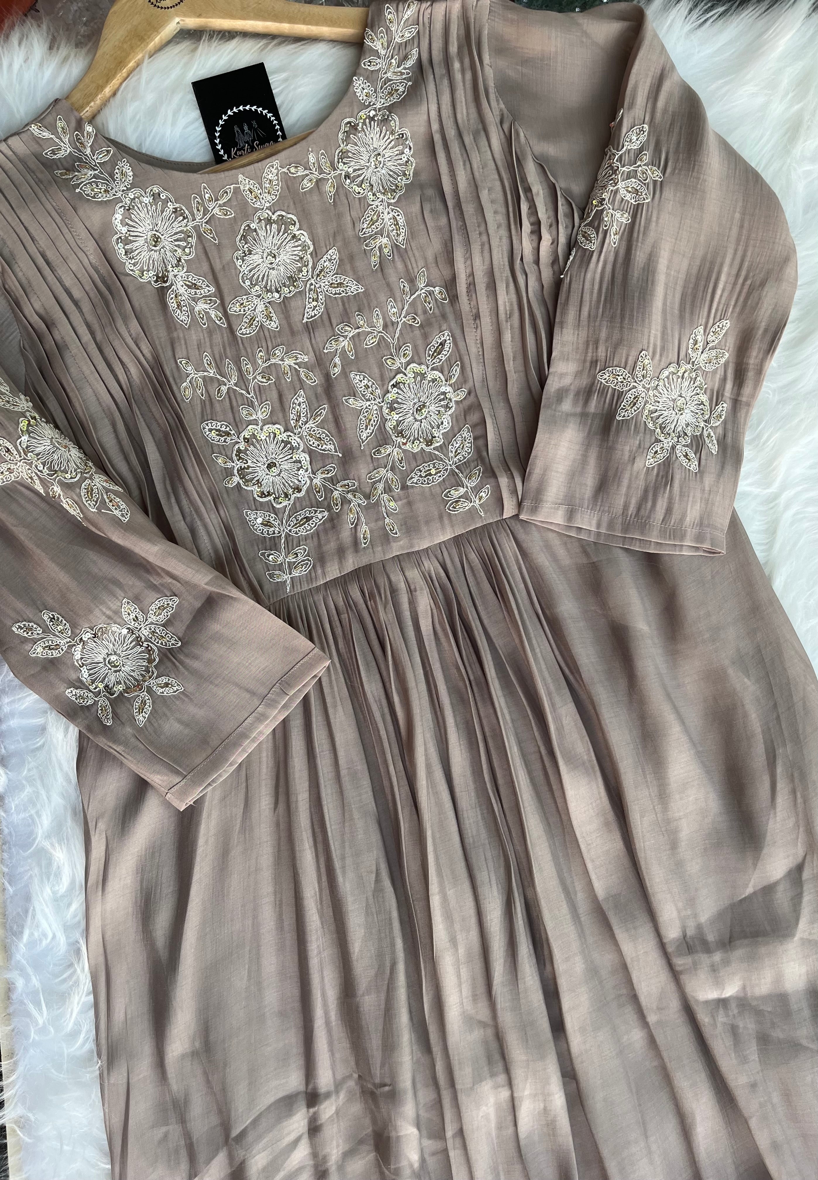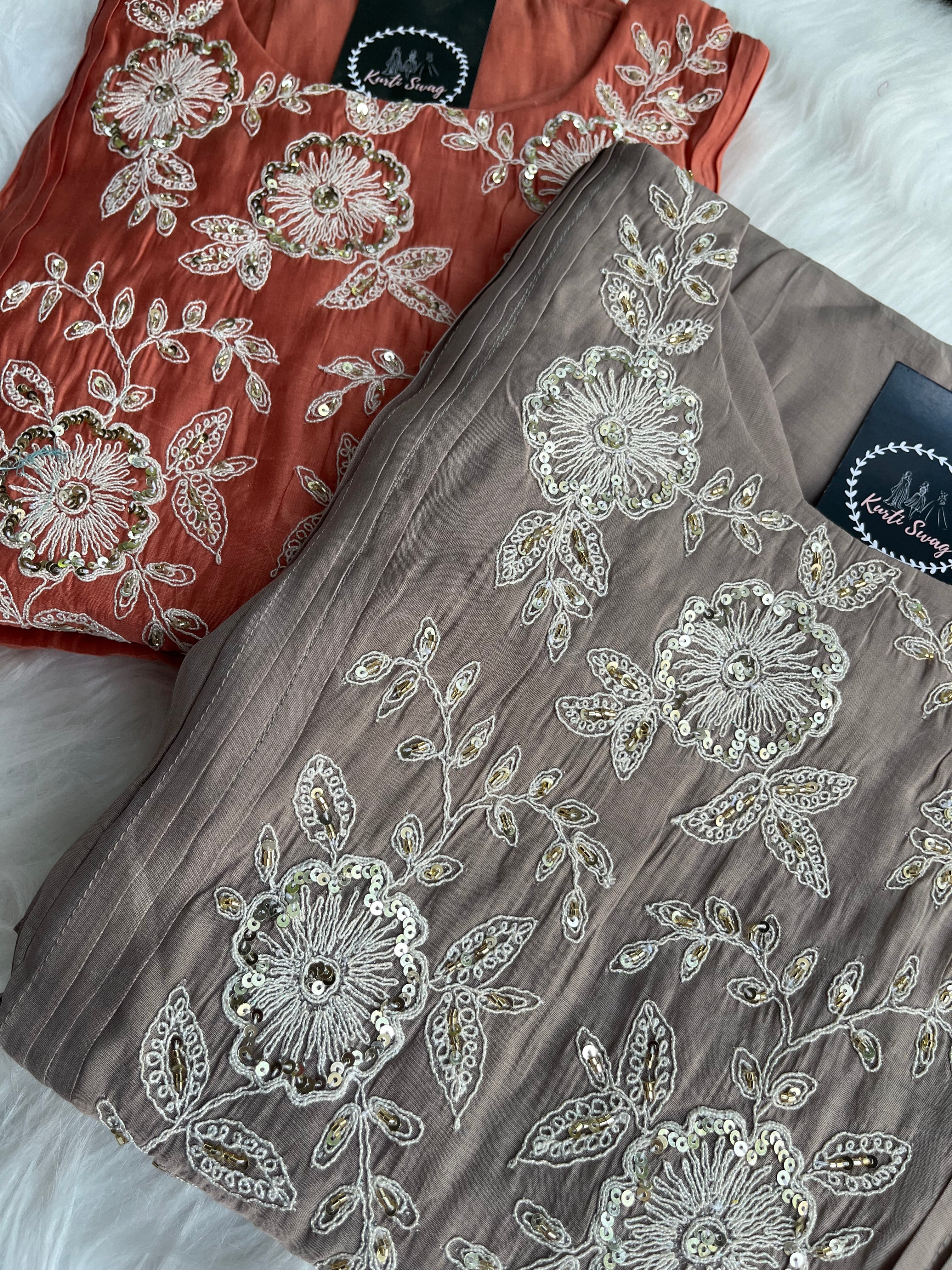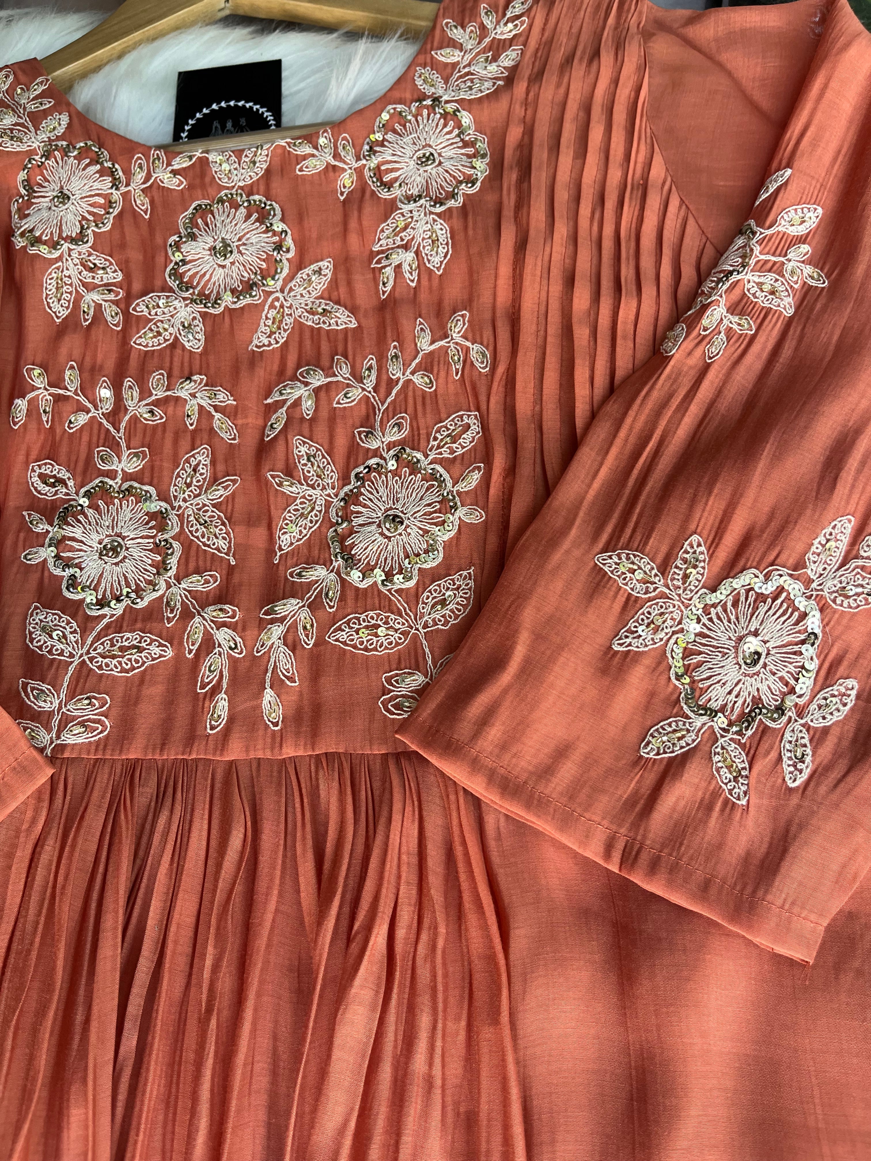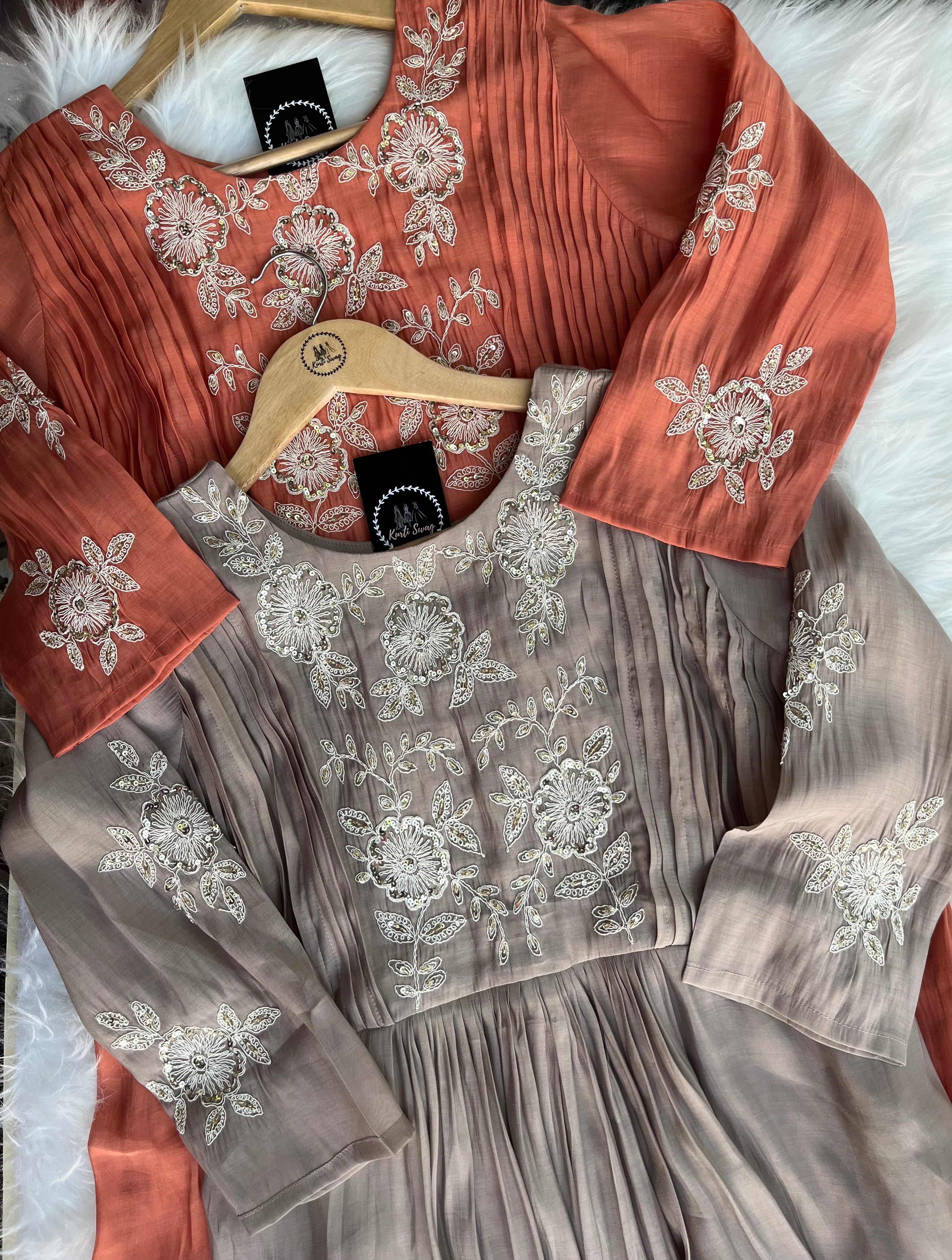 ✅ Premium Mul Chanderi Kurti With Handwork On The Yoke Of The Kurti