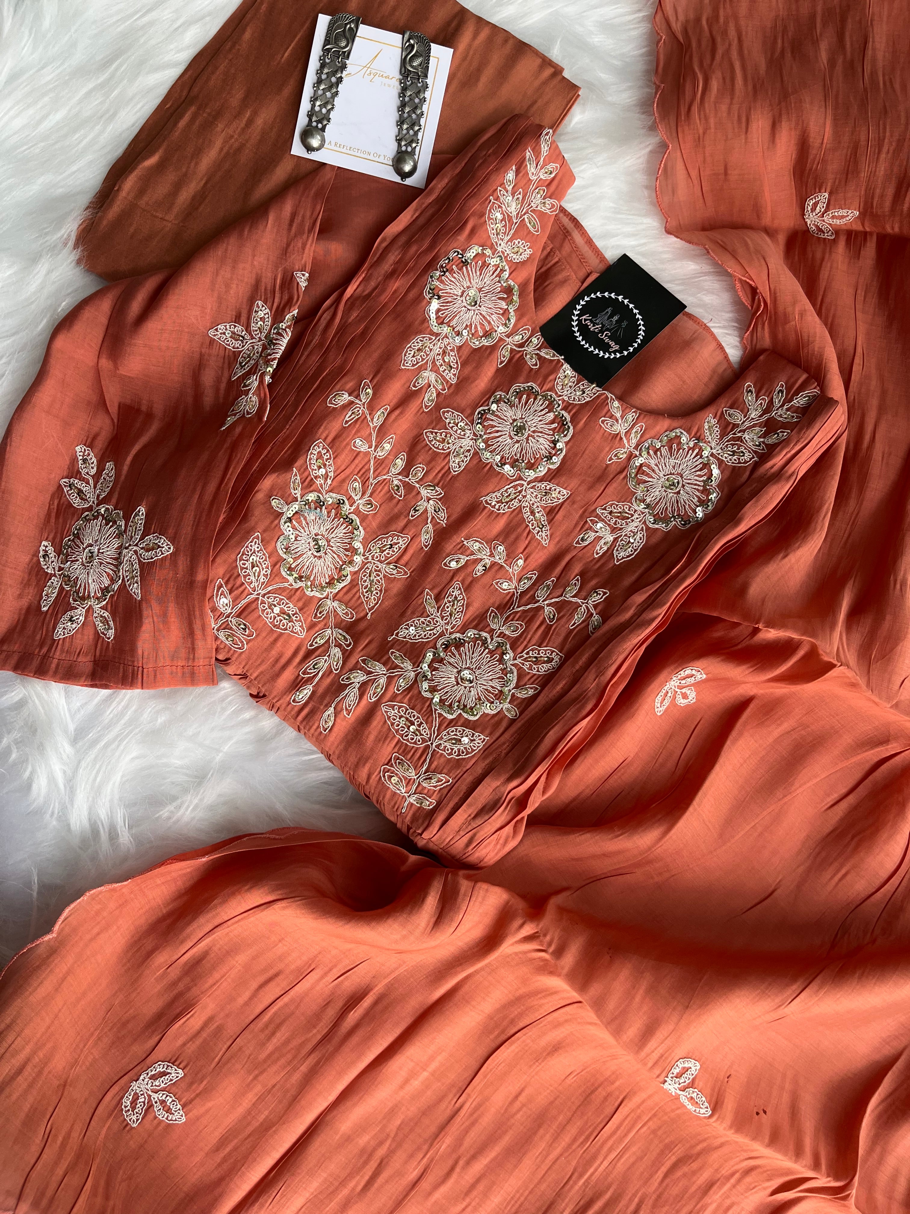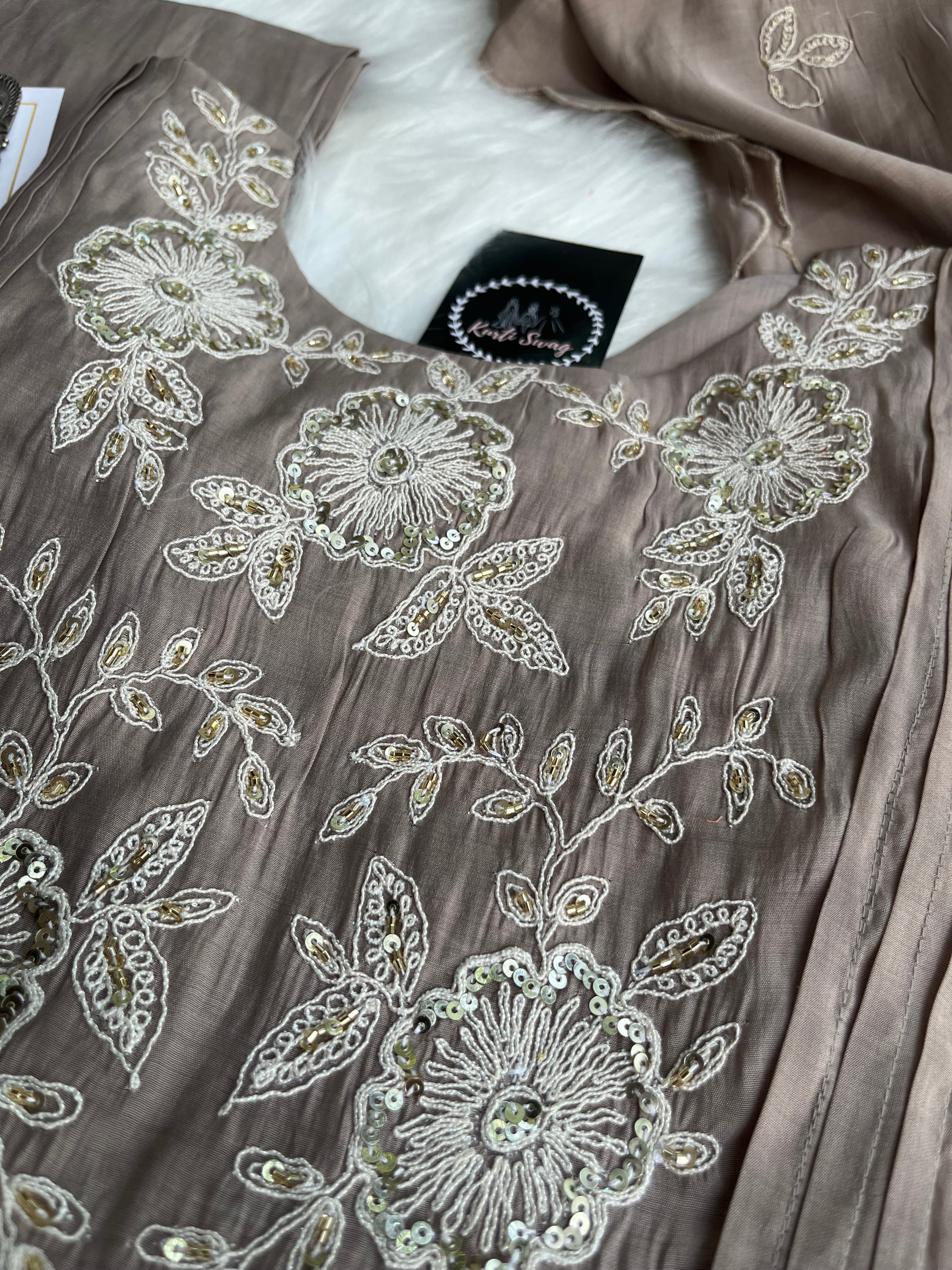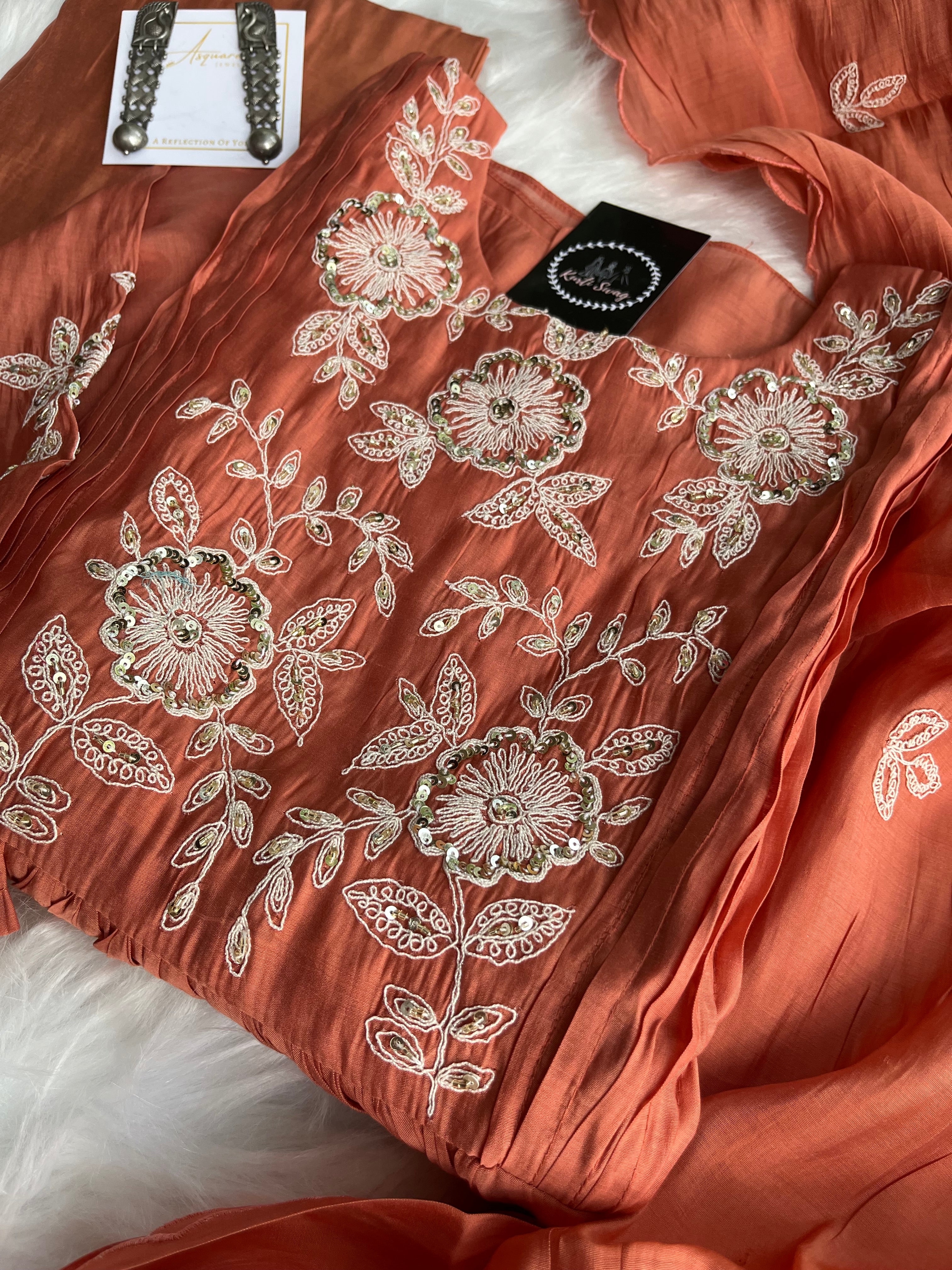 ✅ Premium Mul Chanderi Kurti With Handwork On The Yoke Of The Kurti