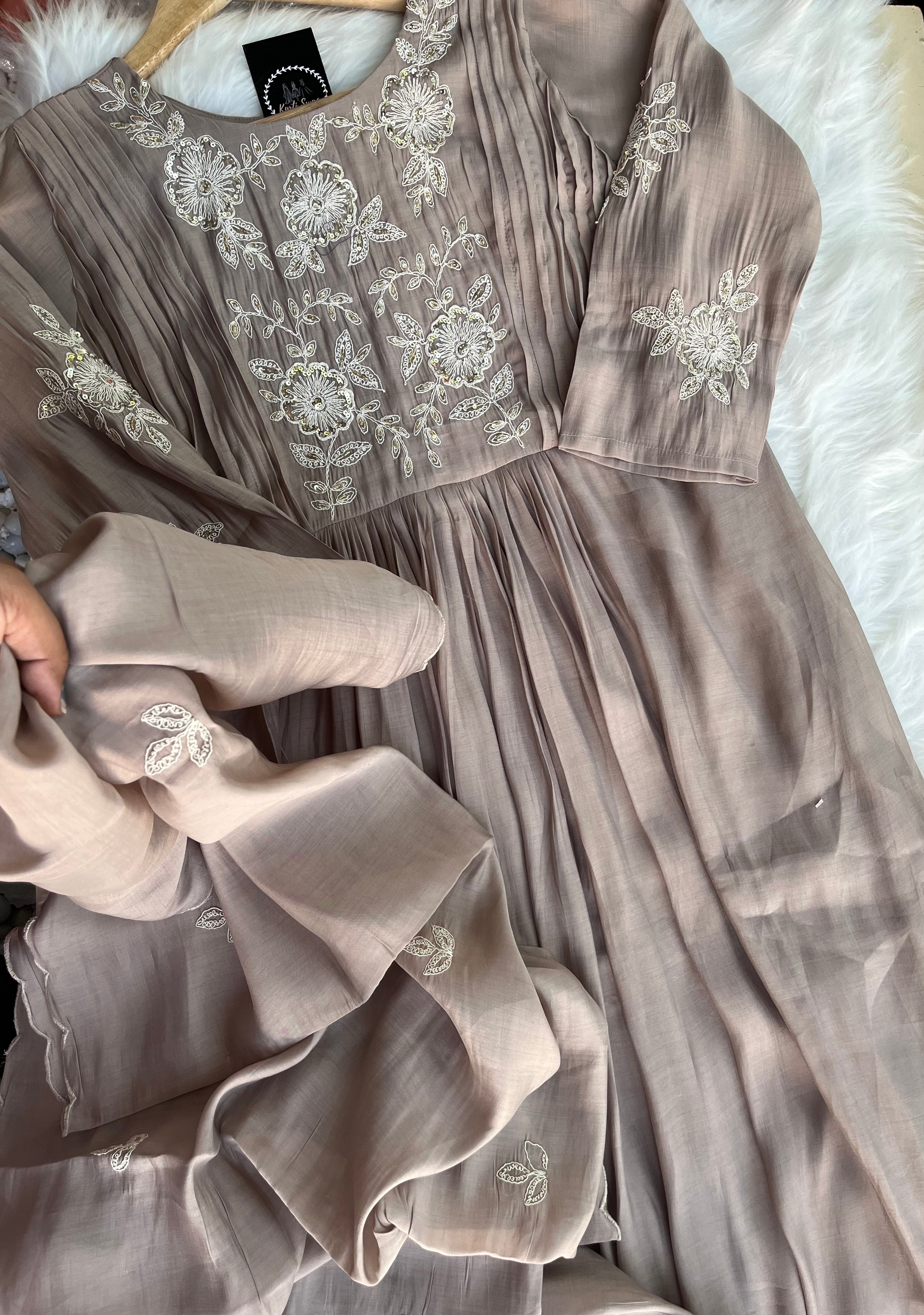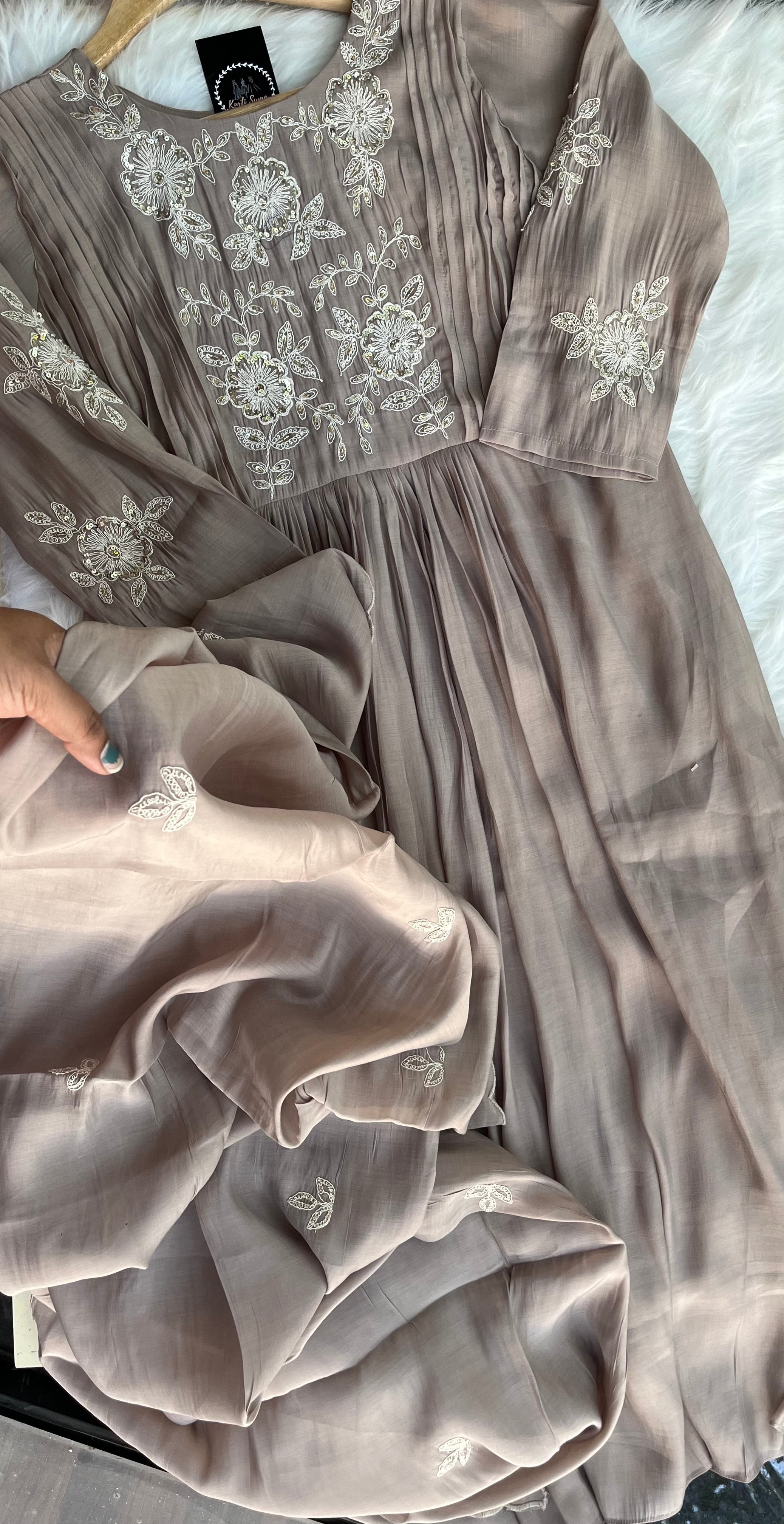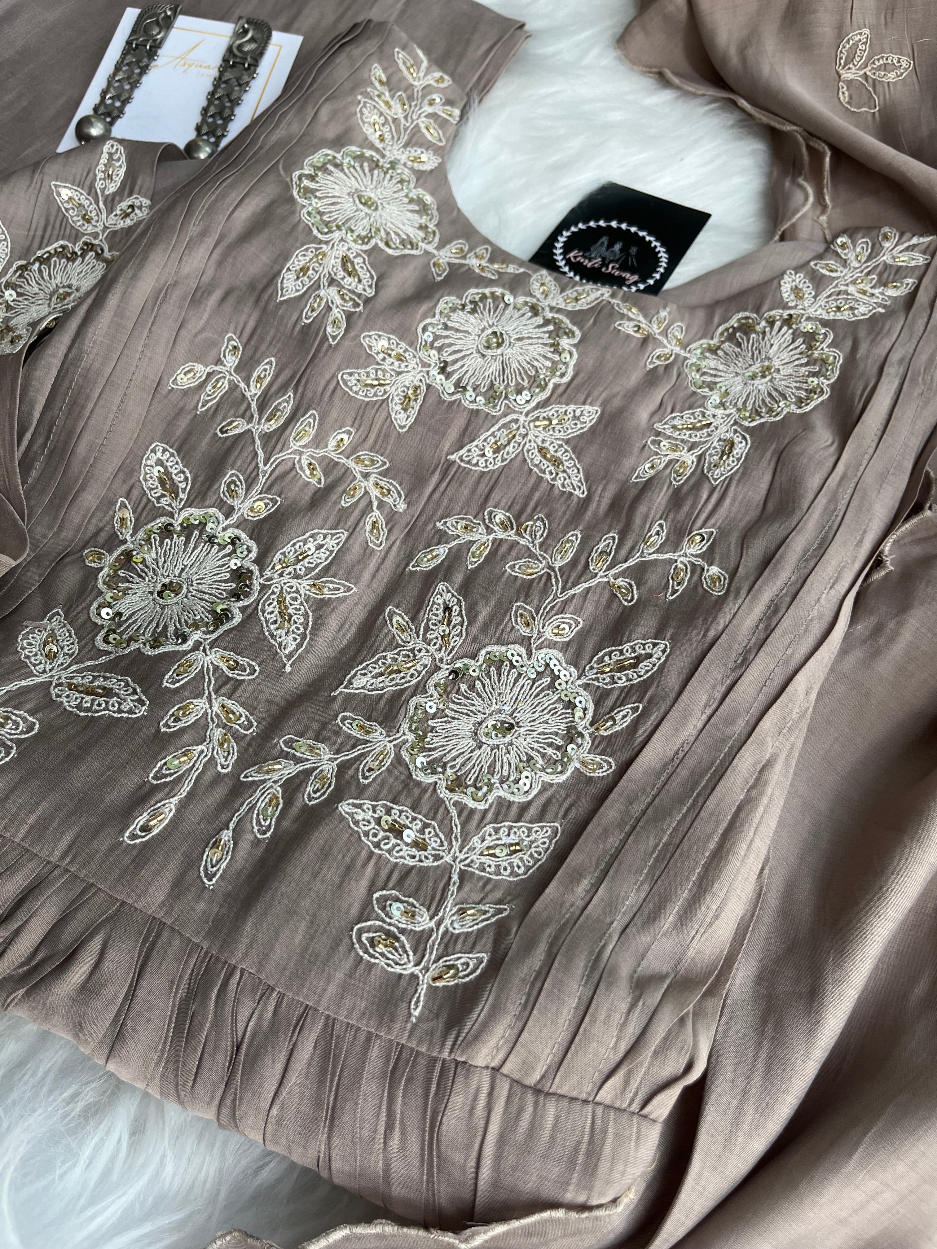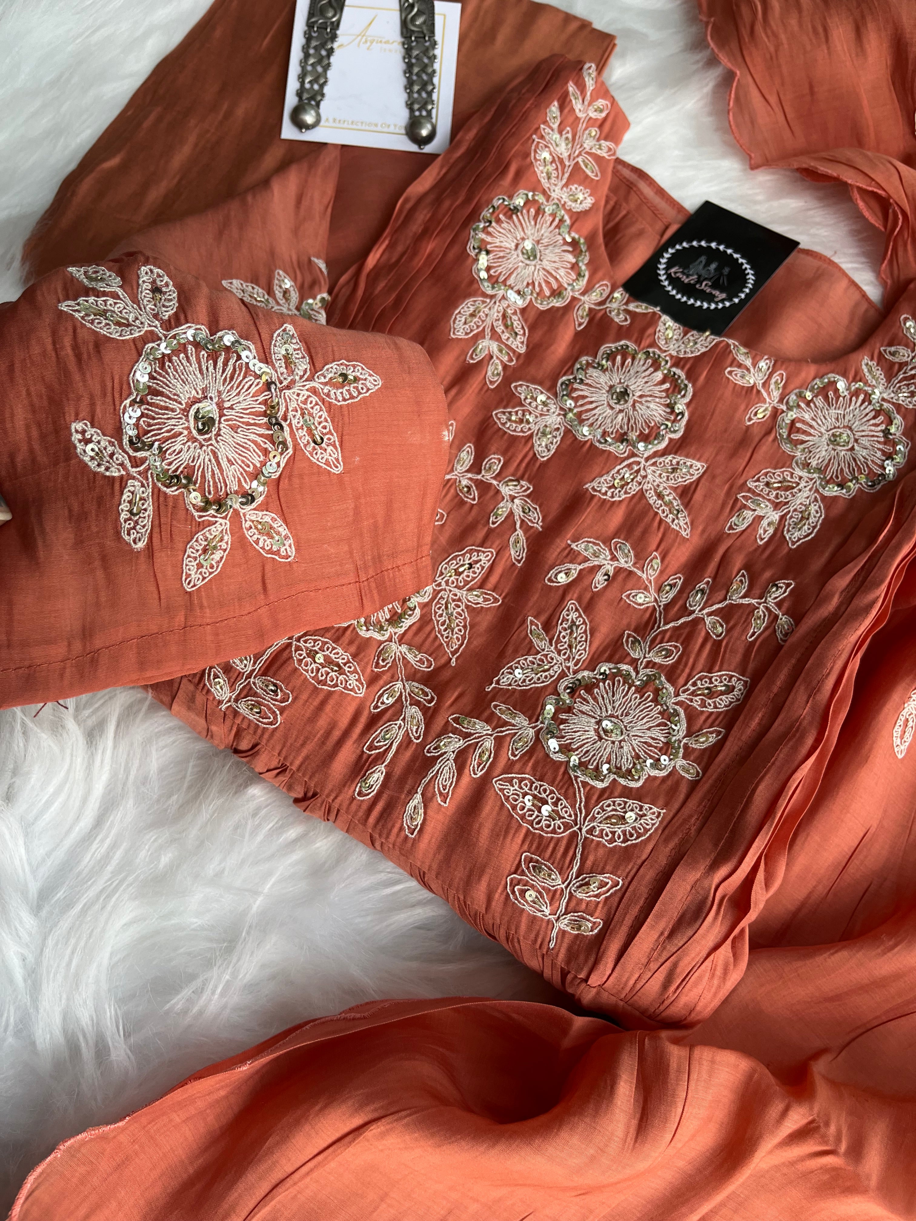 ✅ Premium Mul Chanderi Kurti With Handwork On The Yoke Of The Kurti