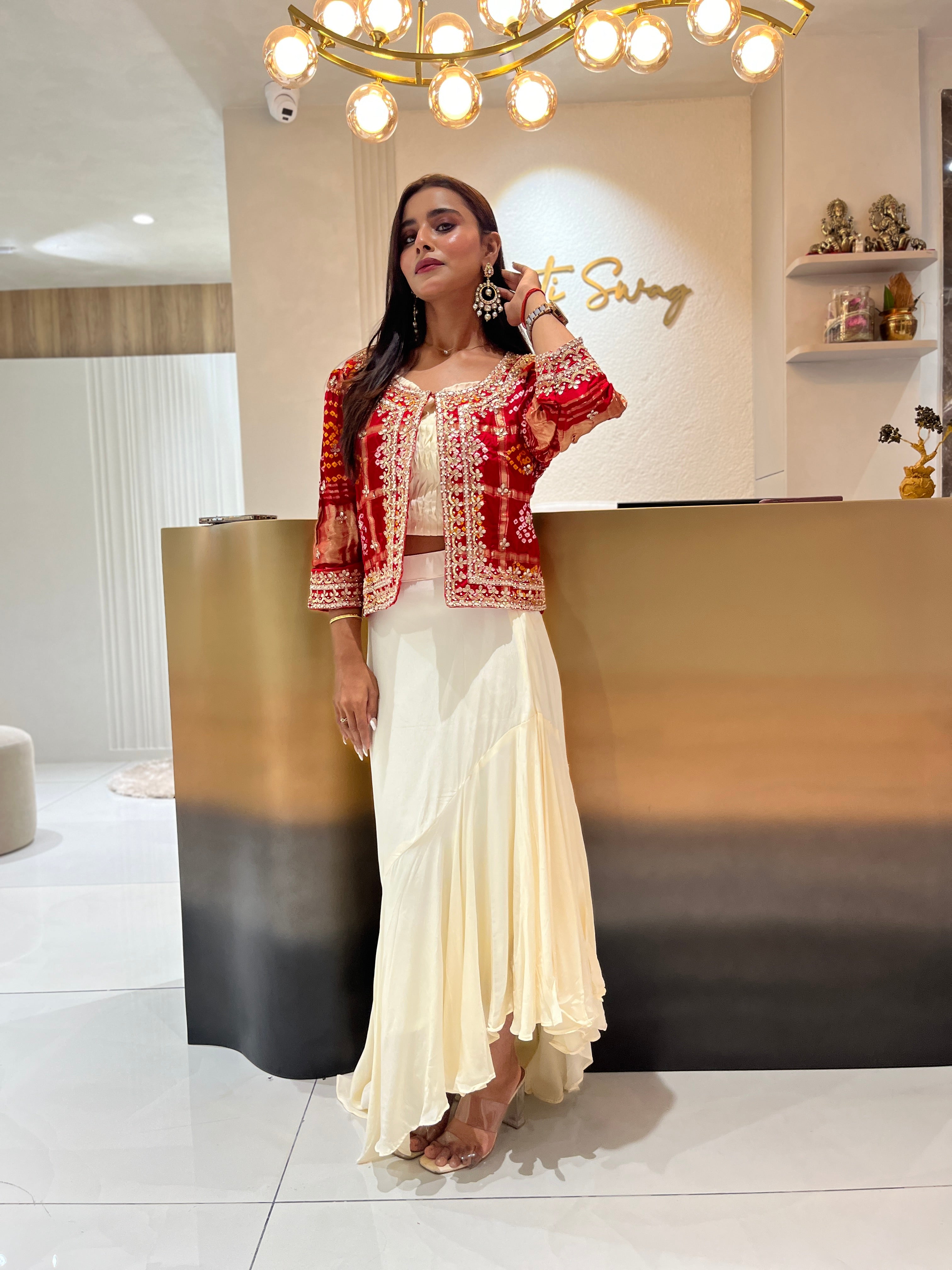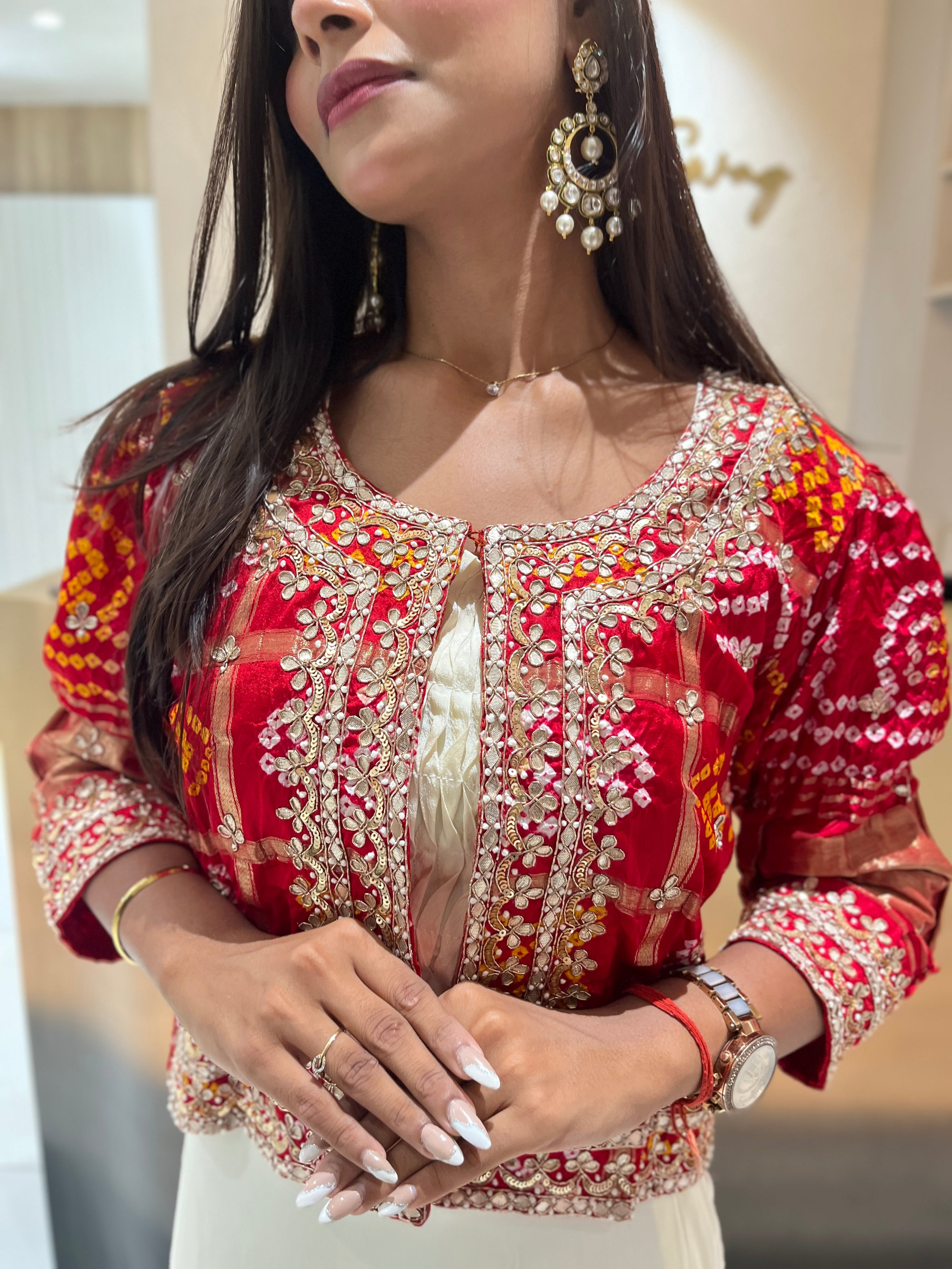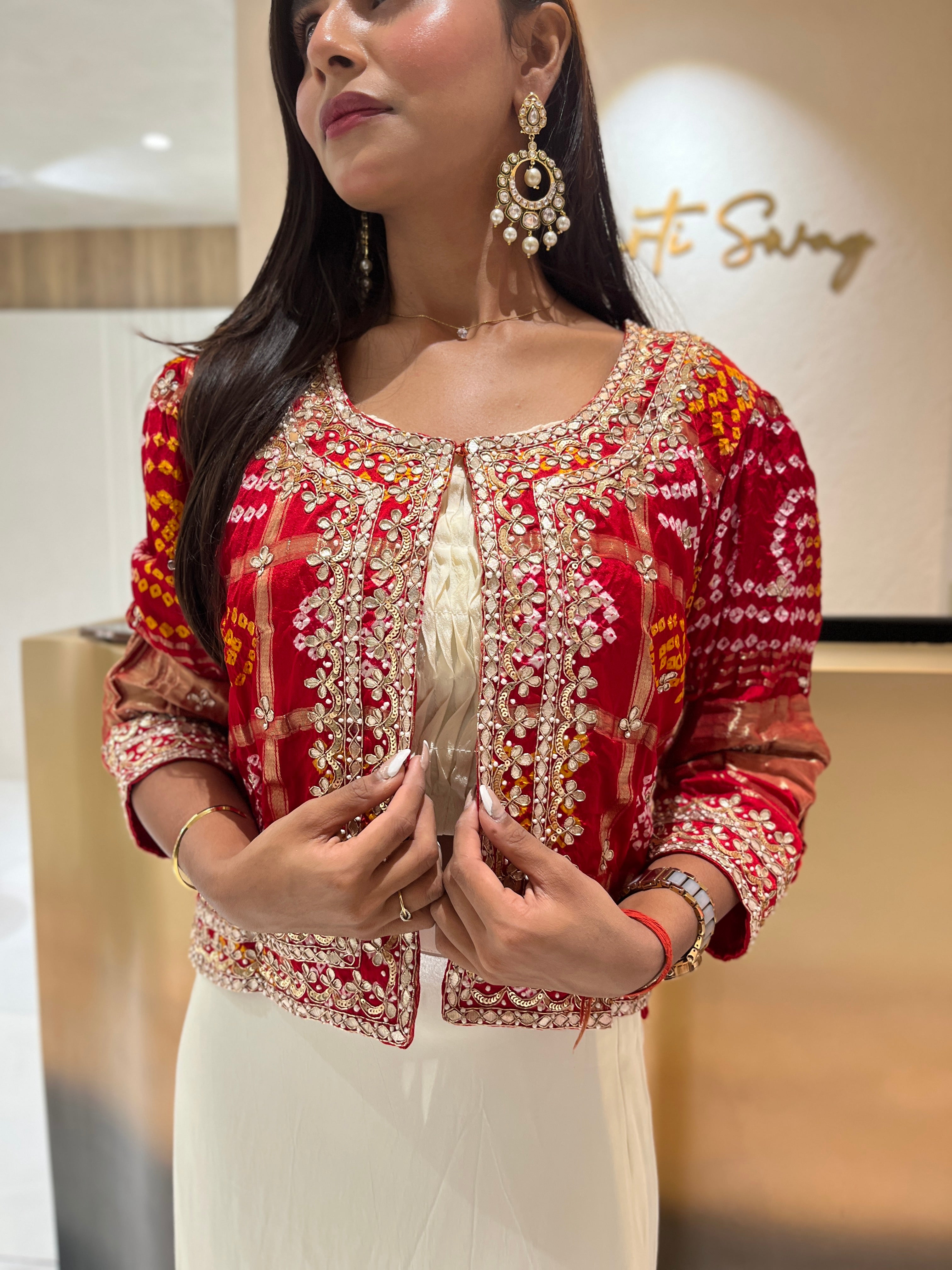 ✅ Has A Beautiful Bandhni Silk Jacket With Premium Gota Handwork