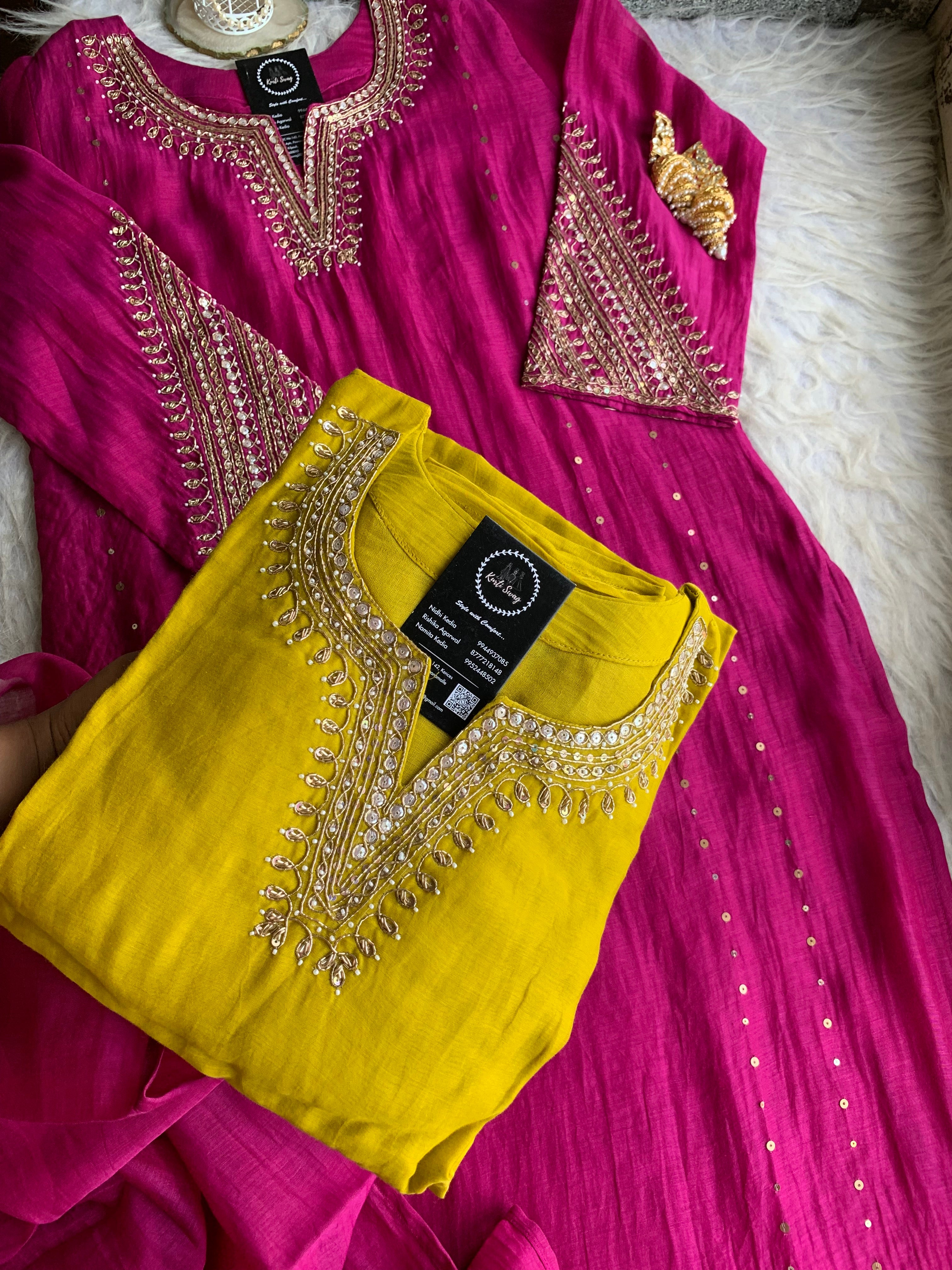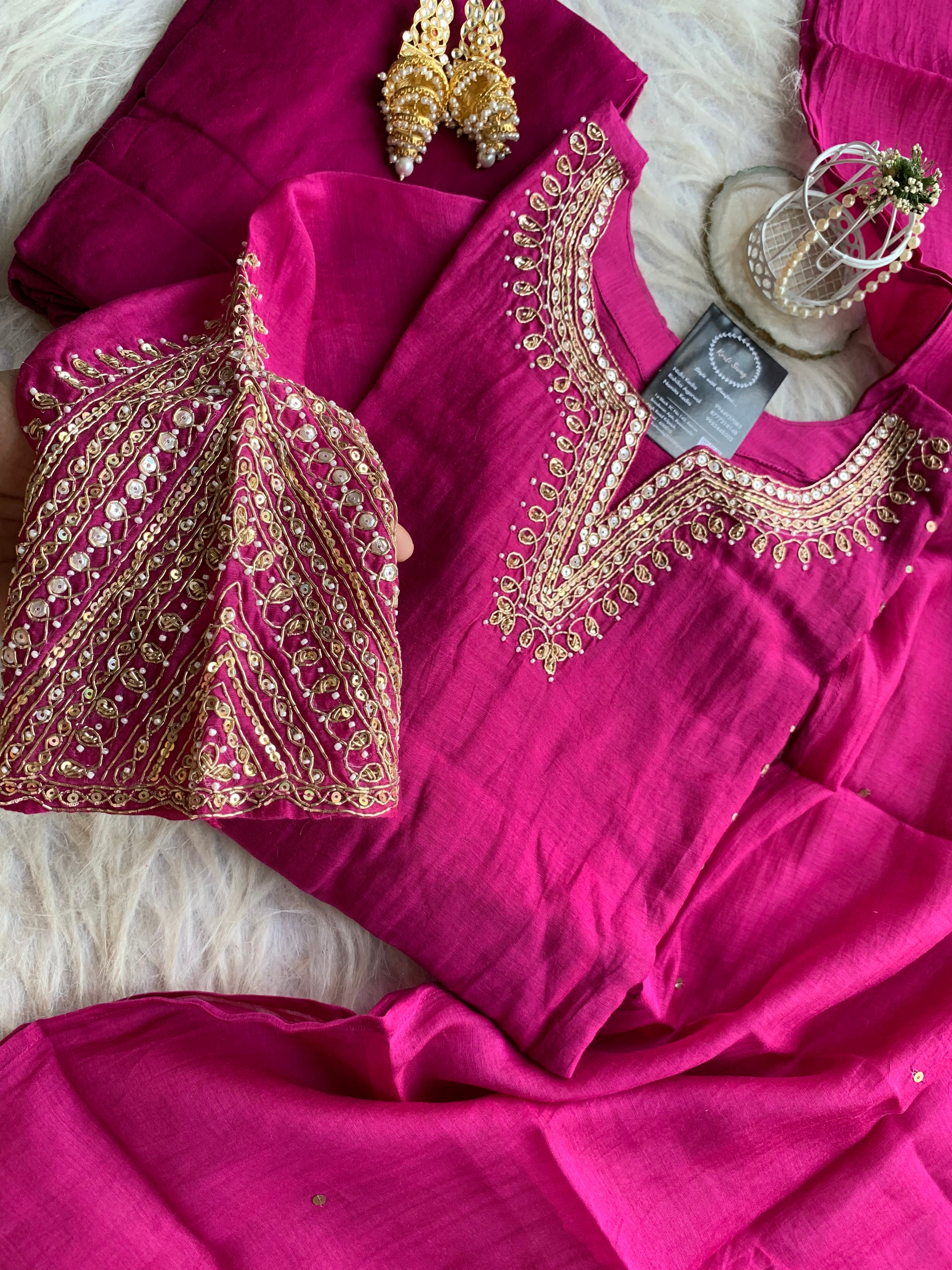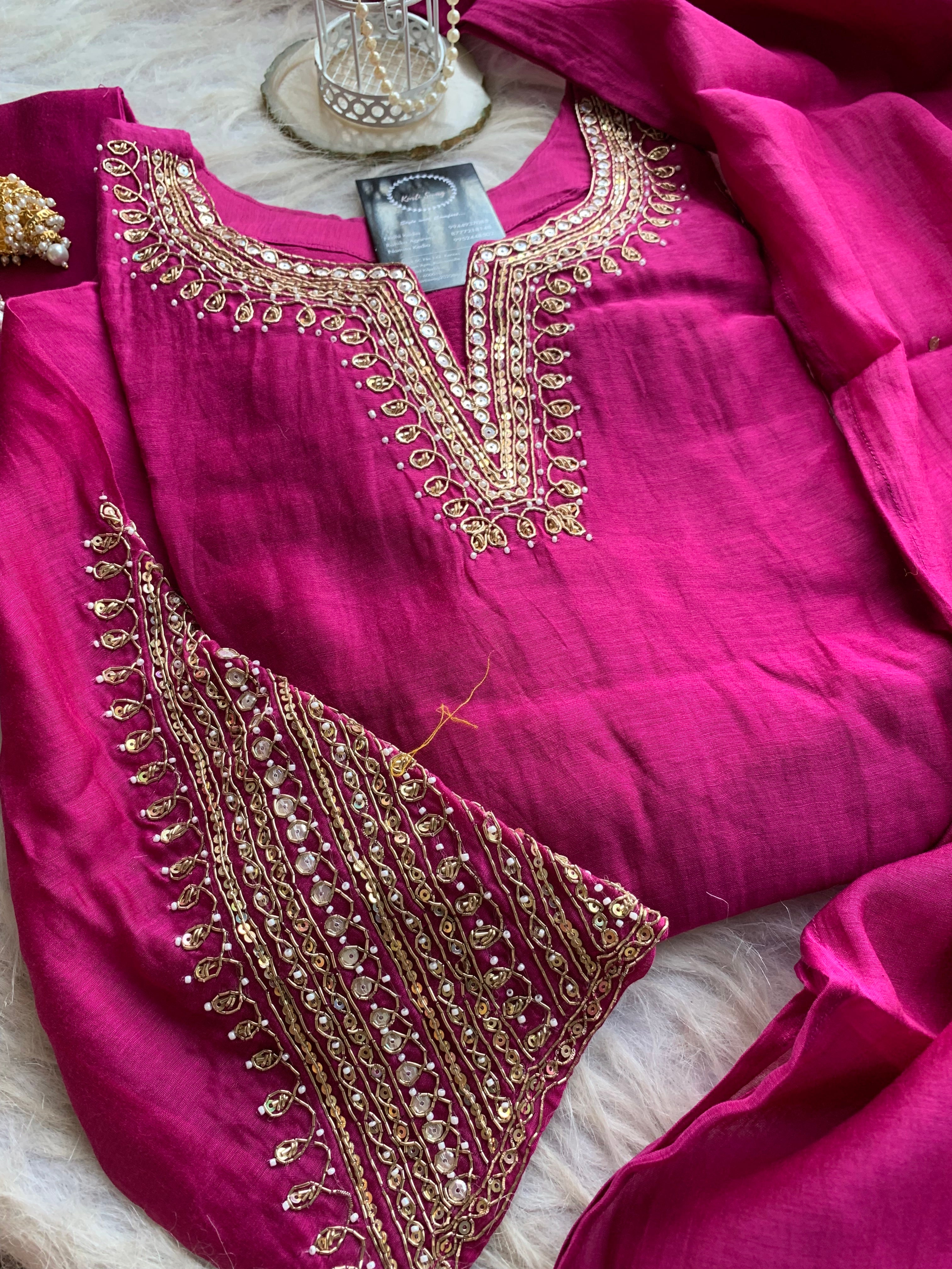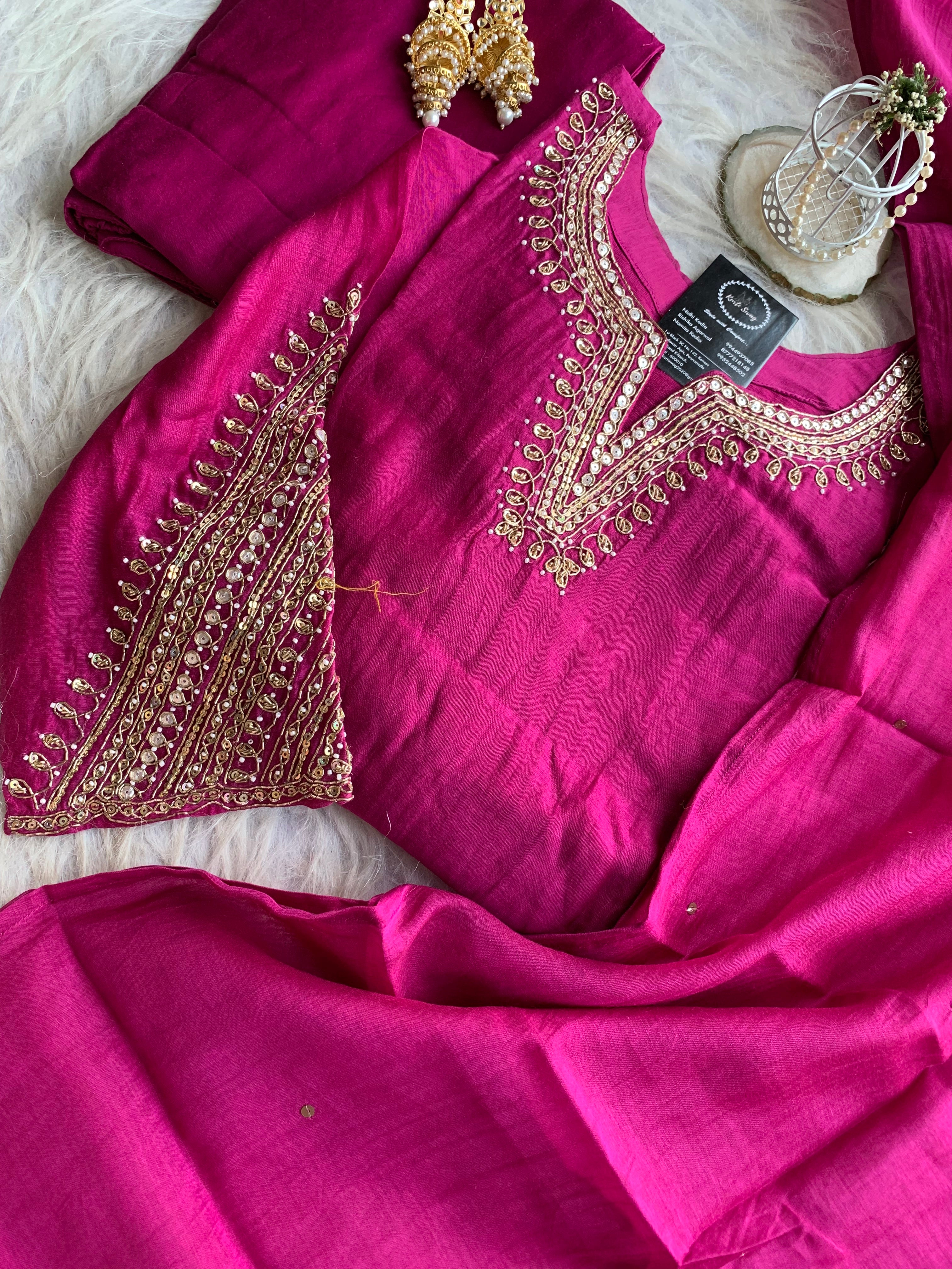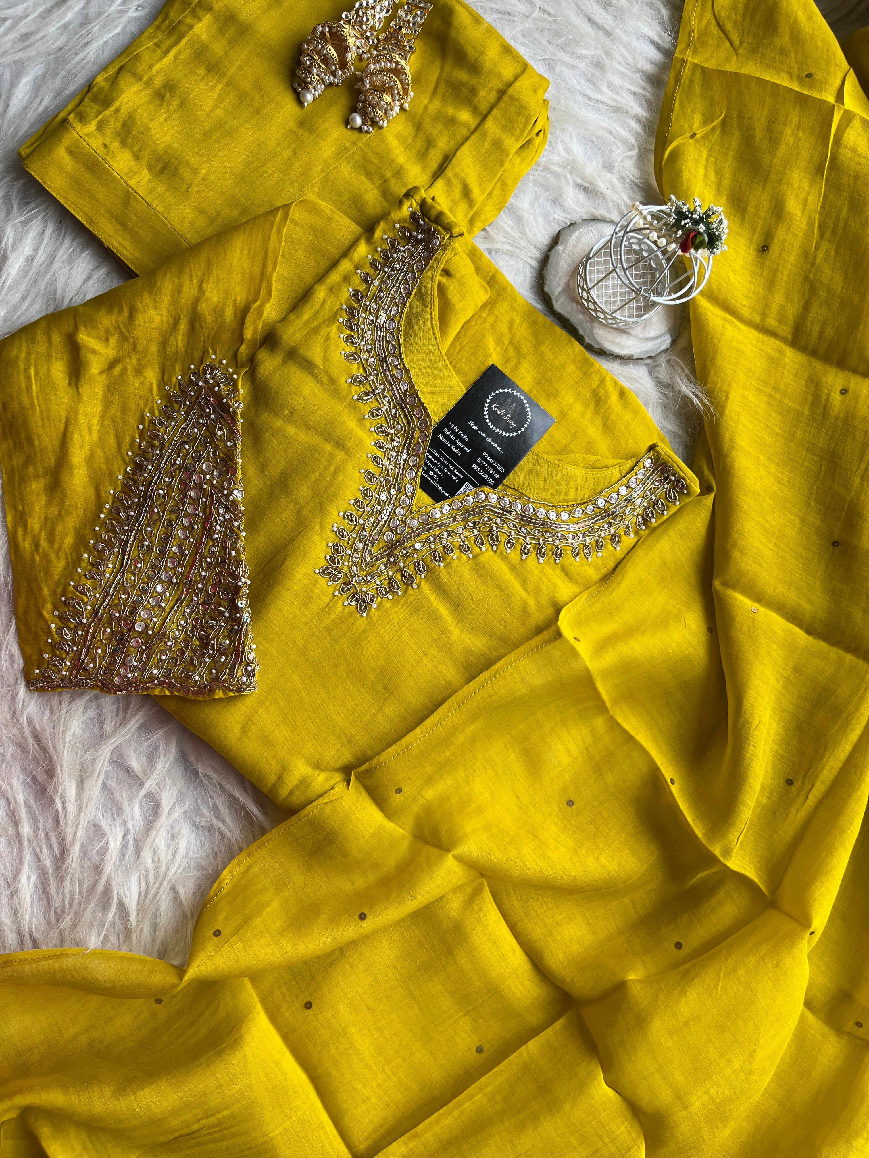 “MADHURI” Premium Mul Chanderi Sequins & Zari Handwork Suit Set 💕✨