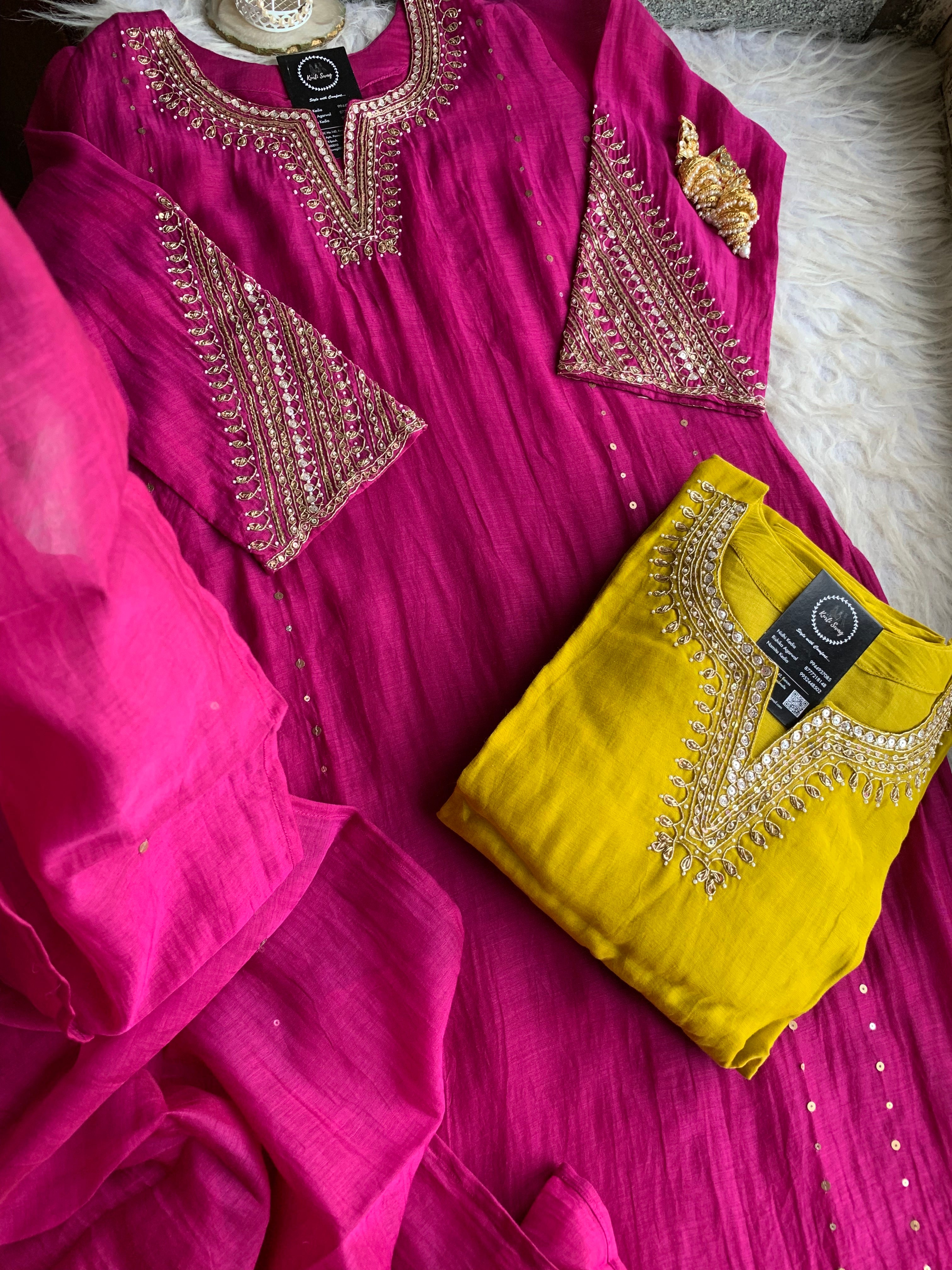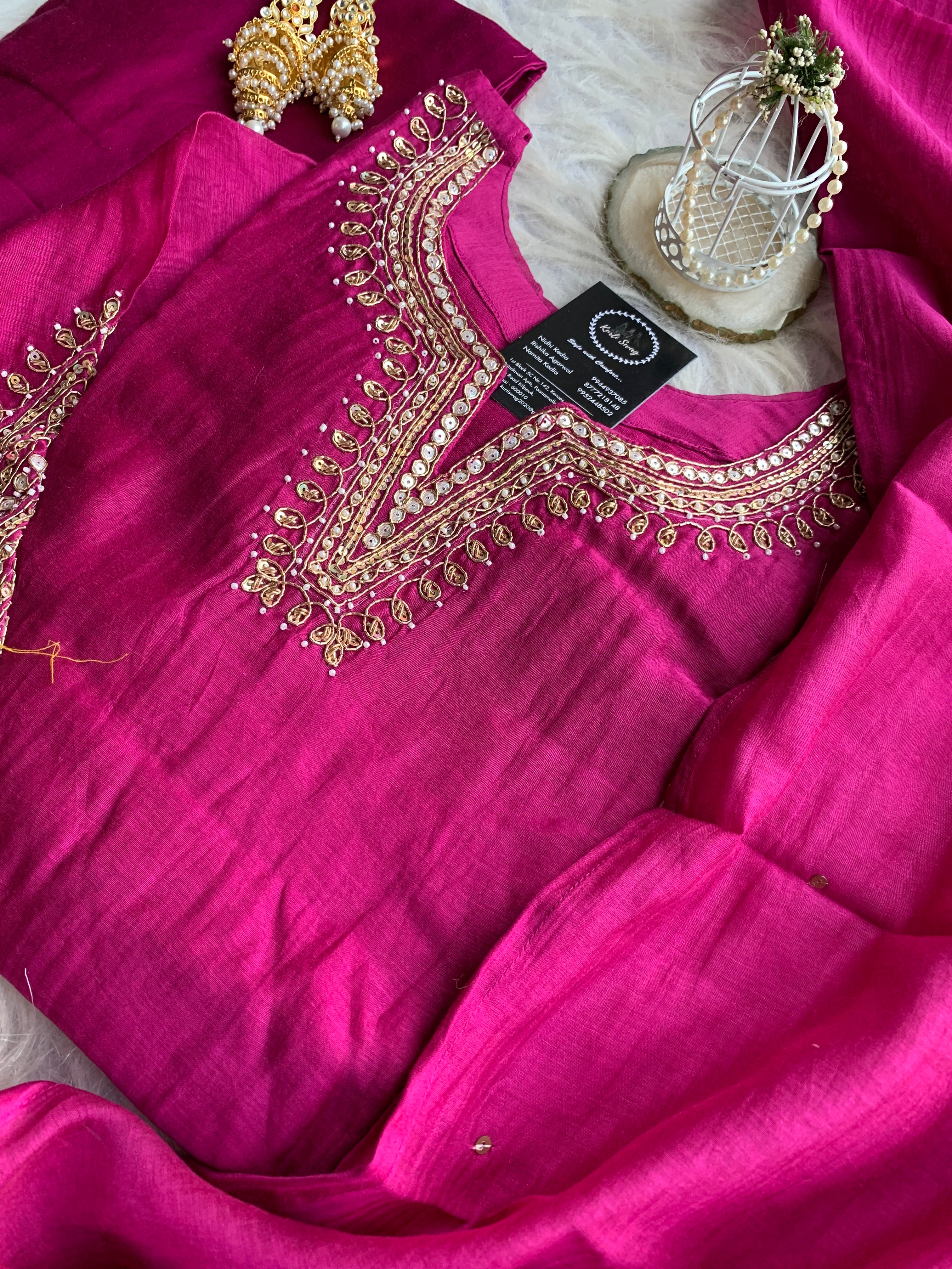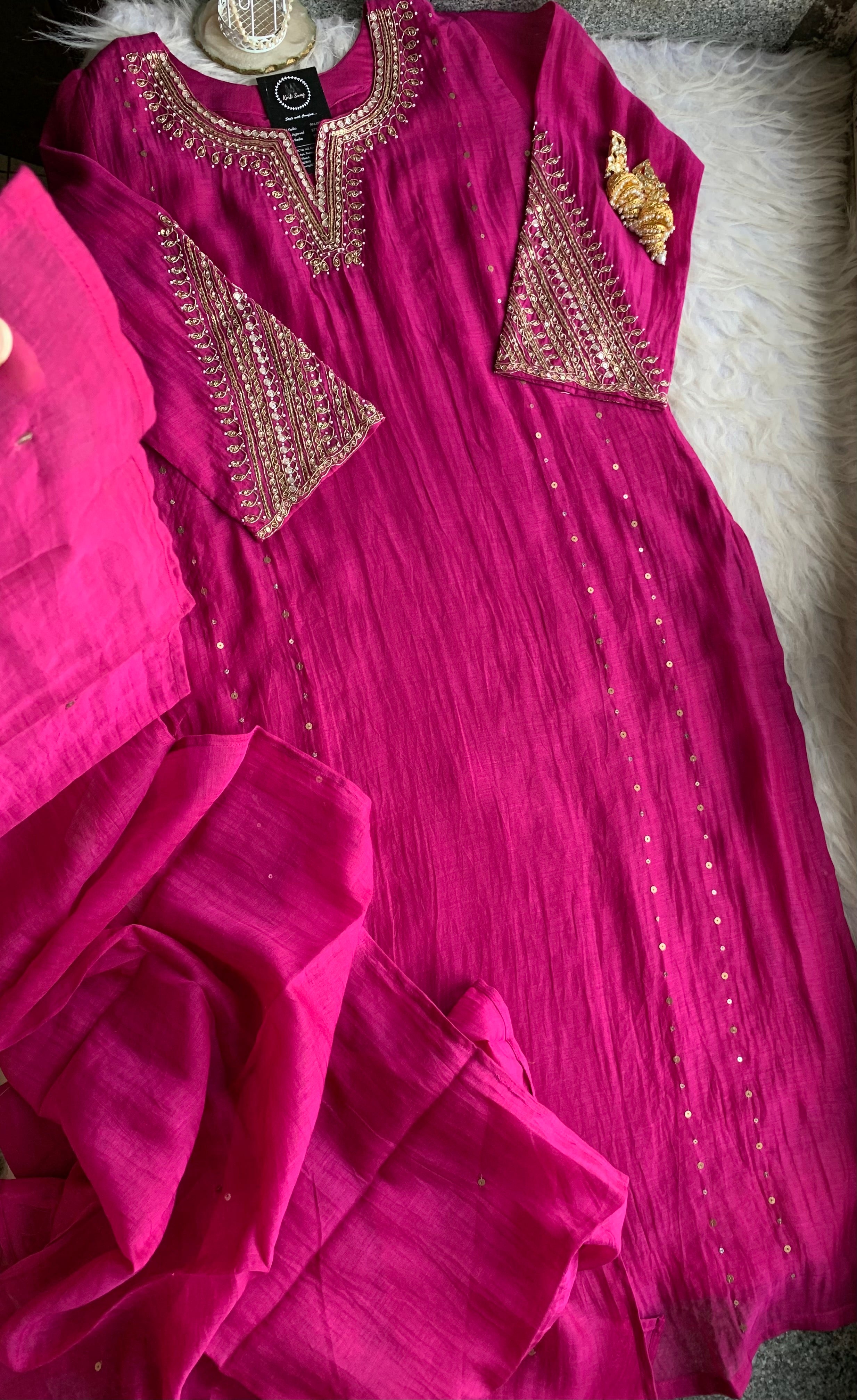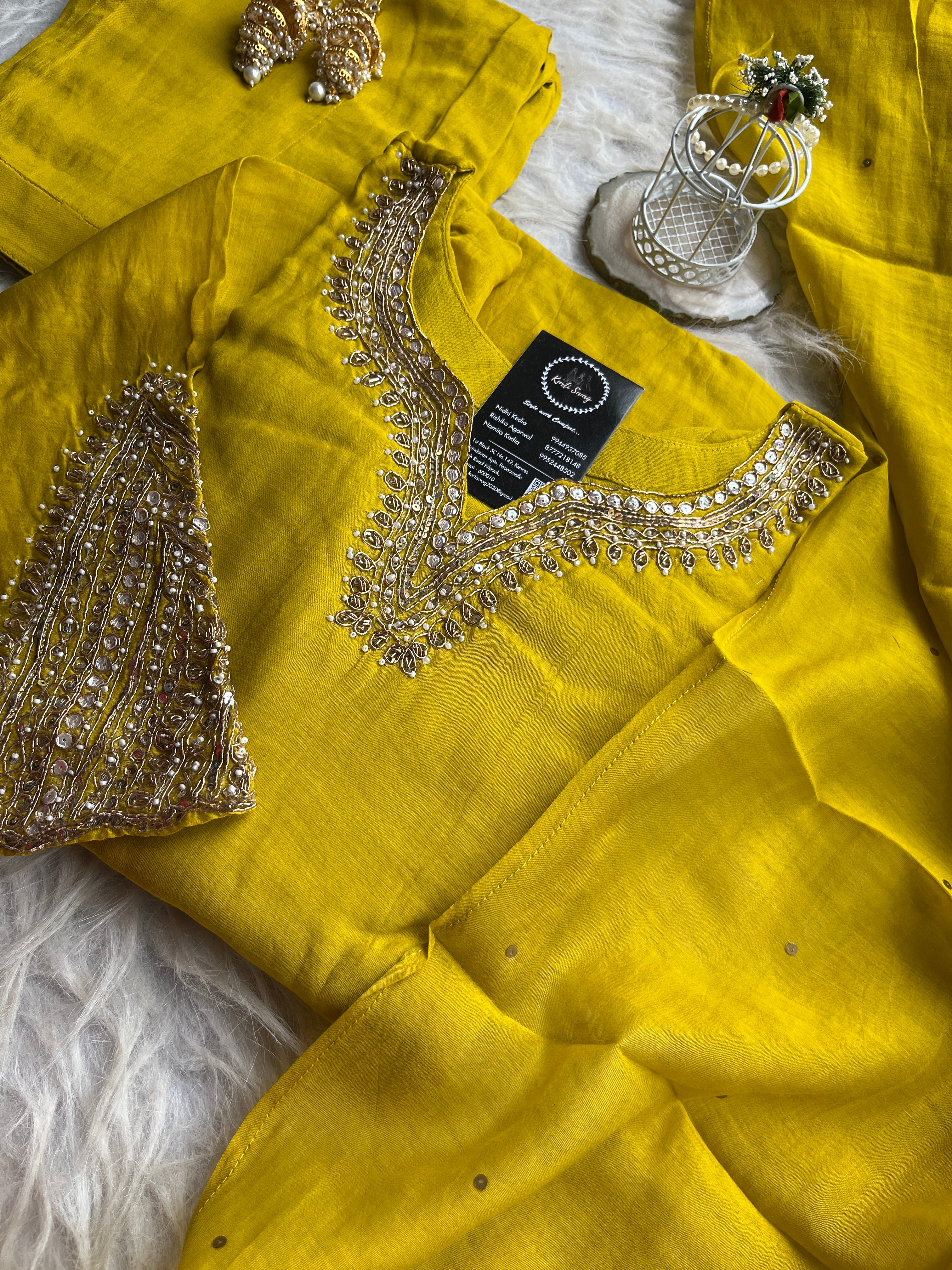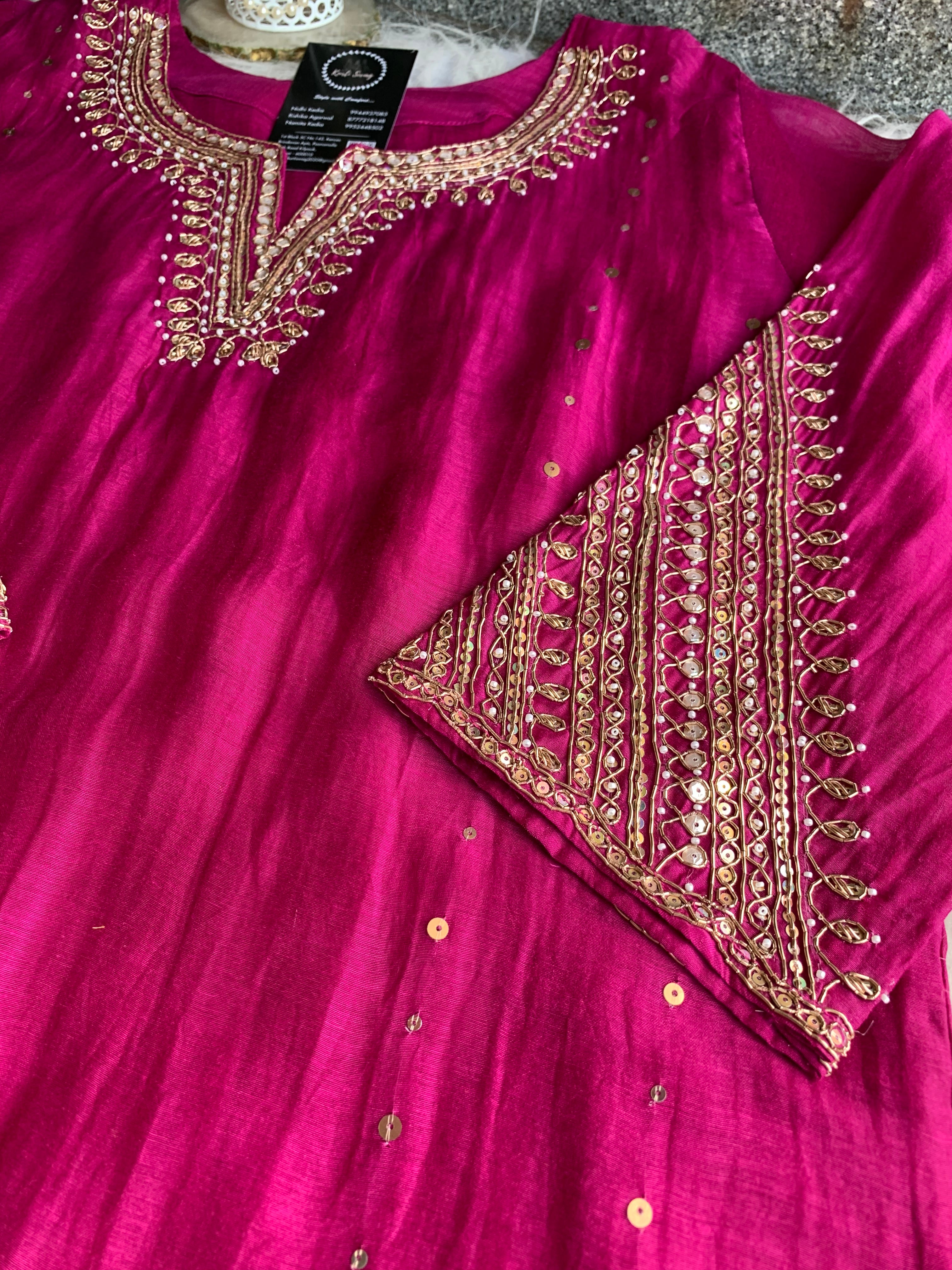 “MADHURI” Premium Mul Chanderi Sequins & Zari Handwork Suit Set 💕✨