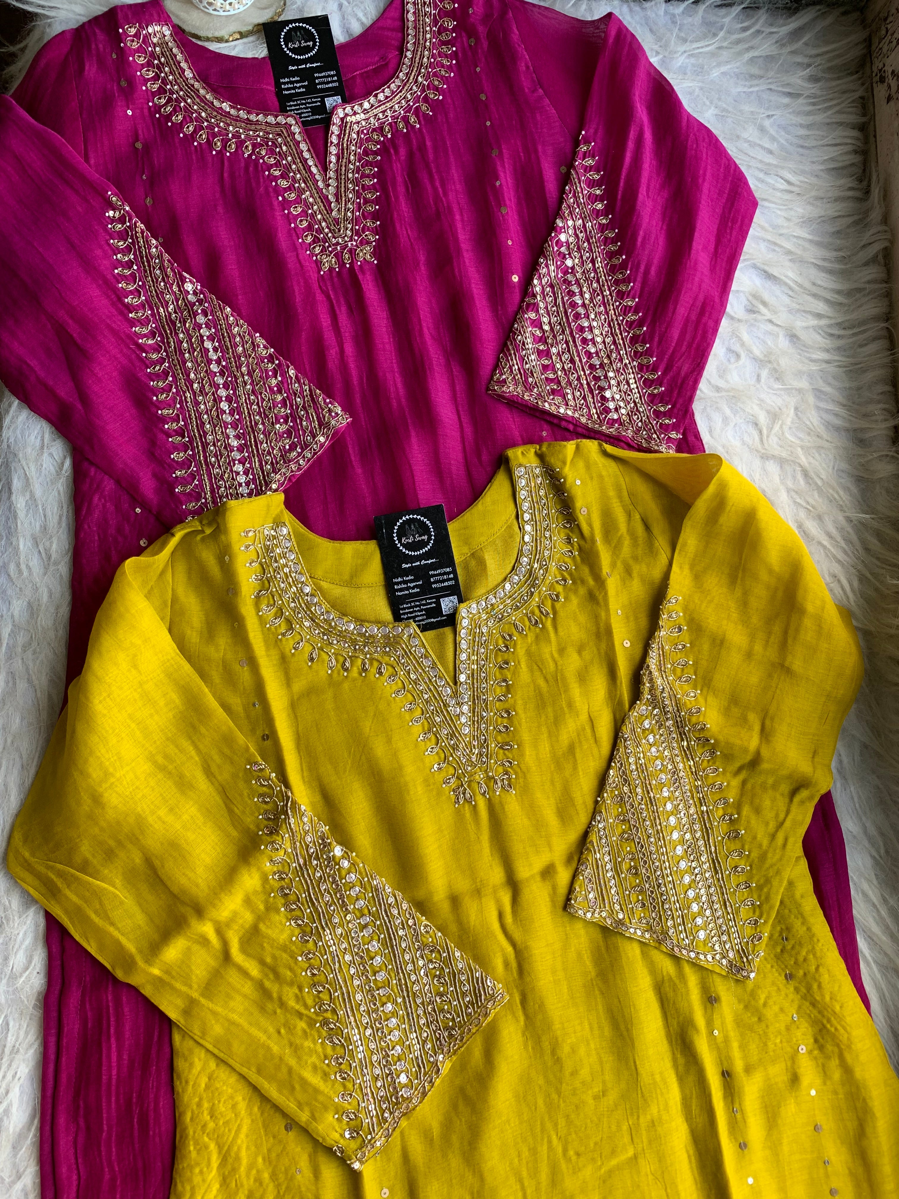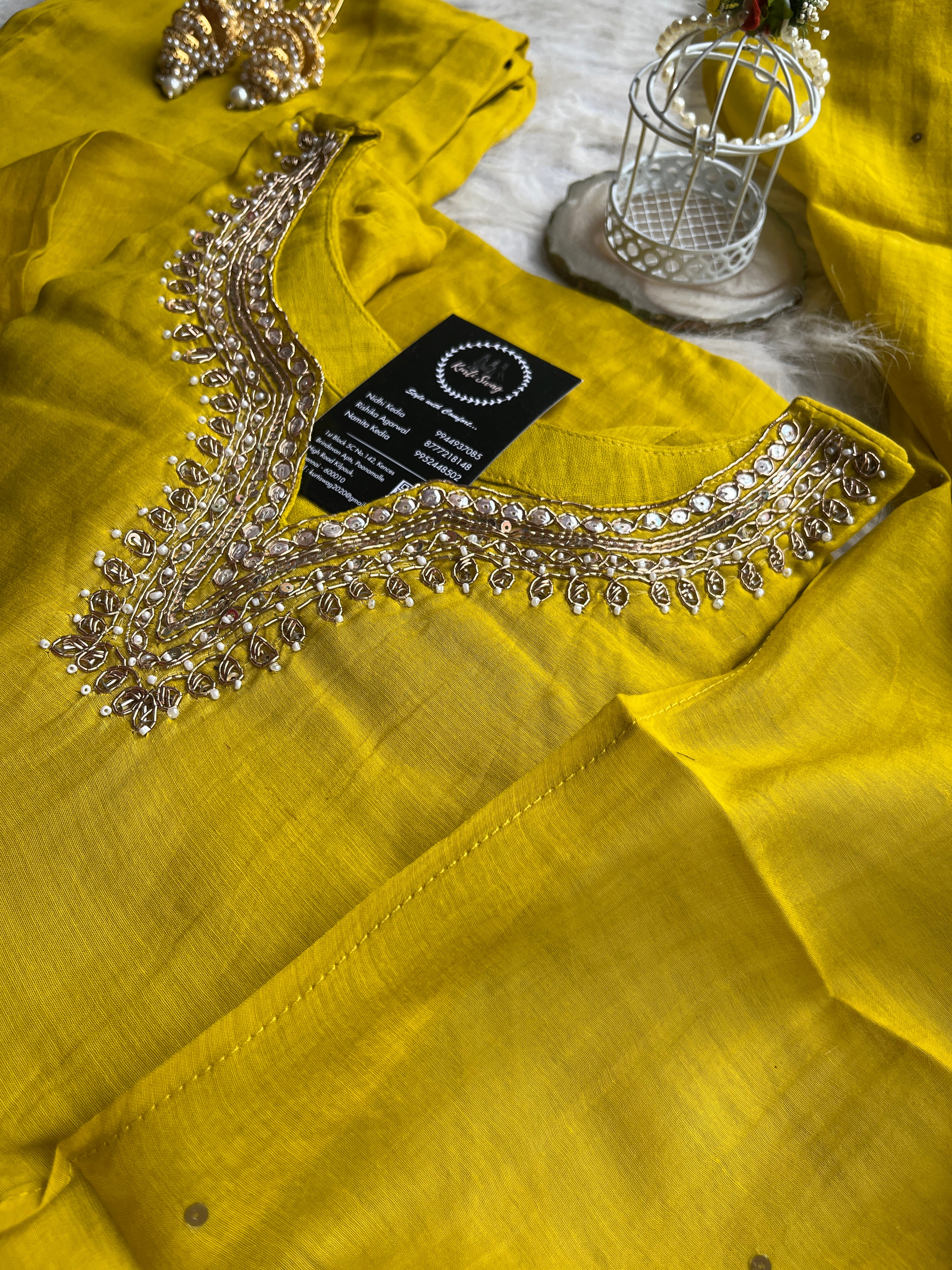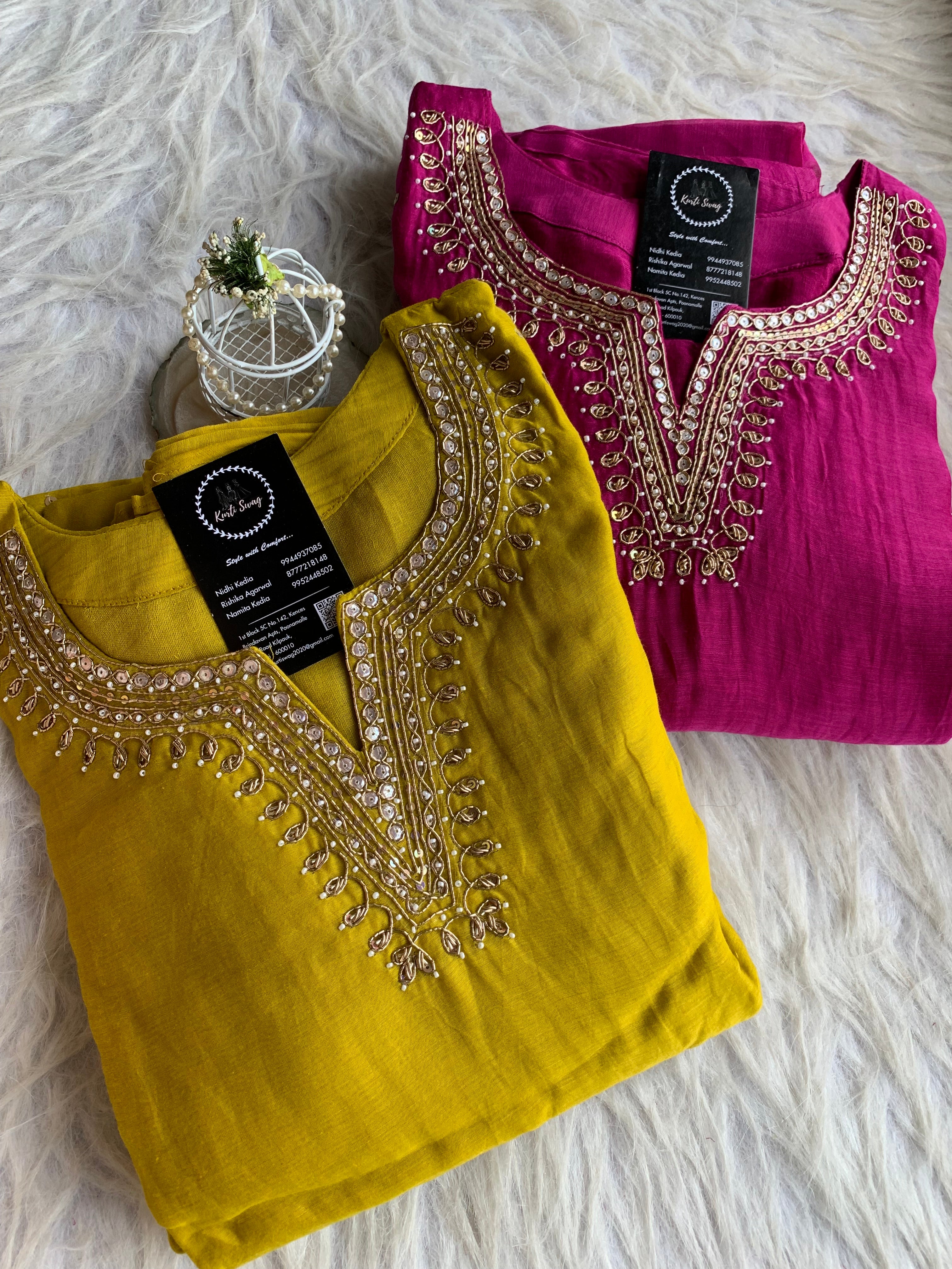 ✅ Premium Mul Chanderi Kurti With Sequin & Zari Work On The Yoke Of The Kurti