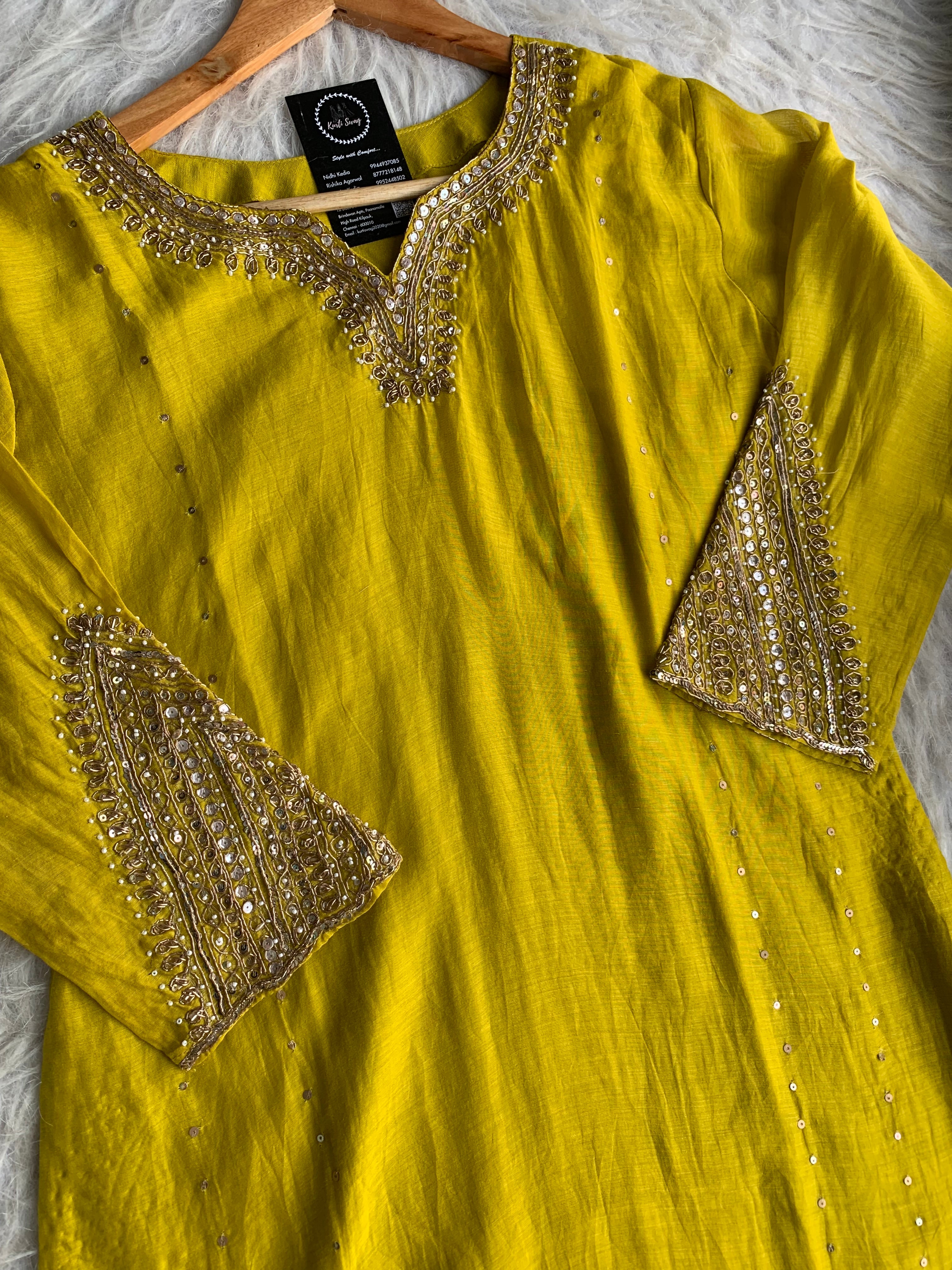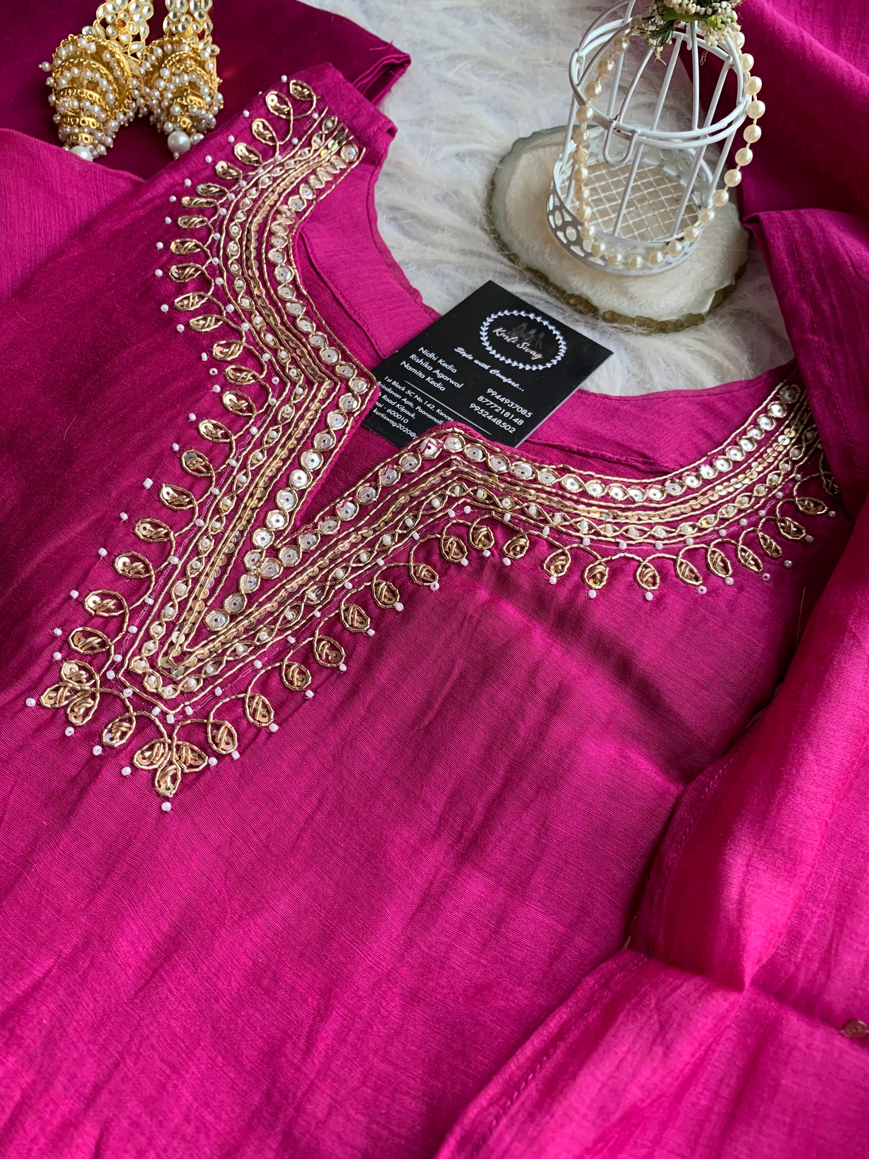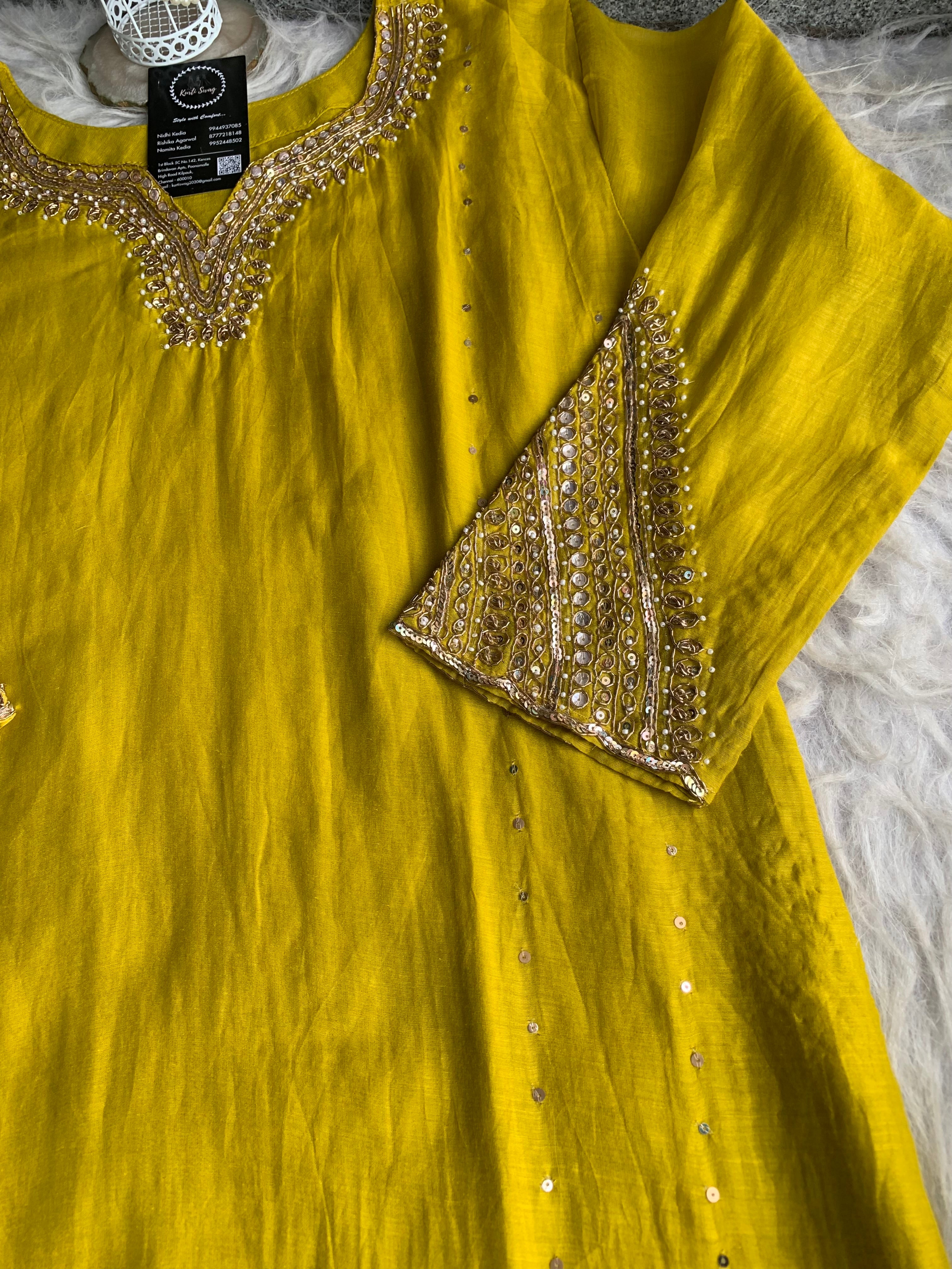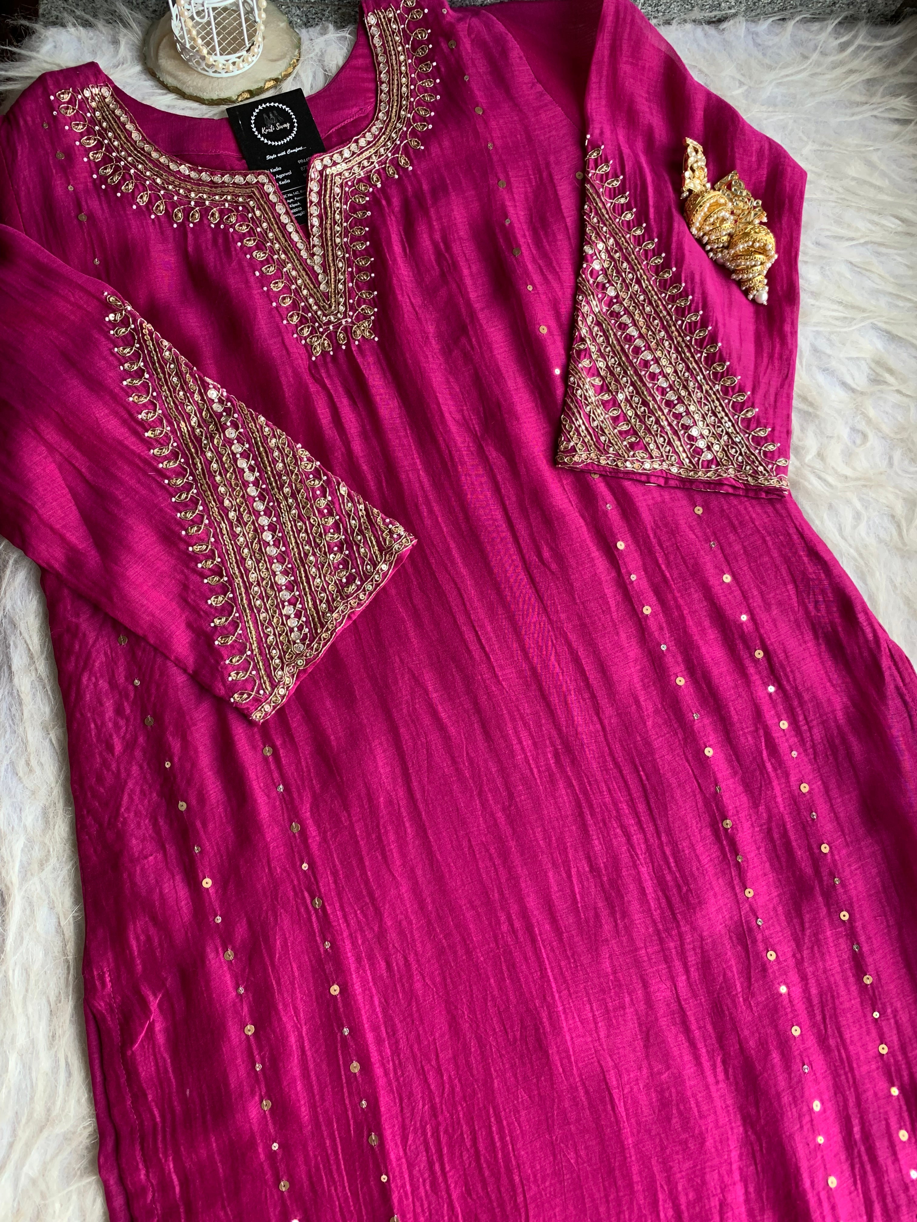 ✅ Premium Mul Chanderi Kurti With Sequin & Zari Work On The Yoke Of The Kurti