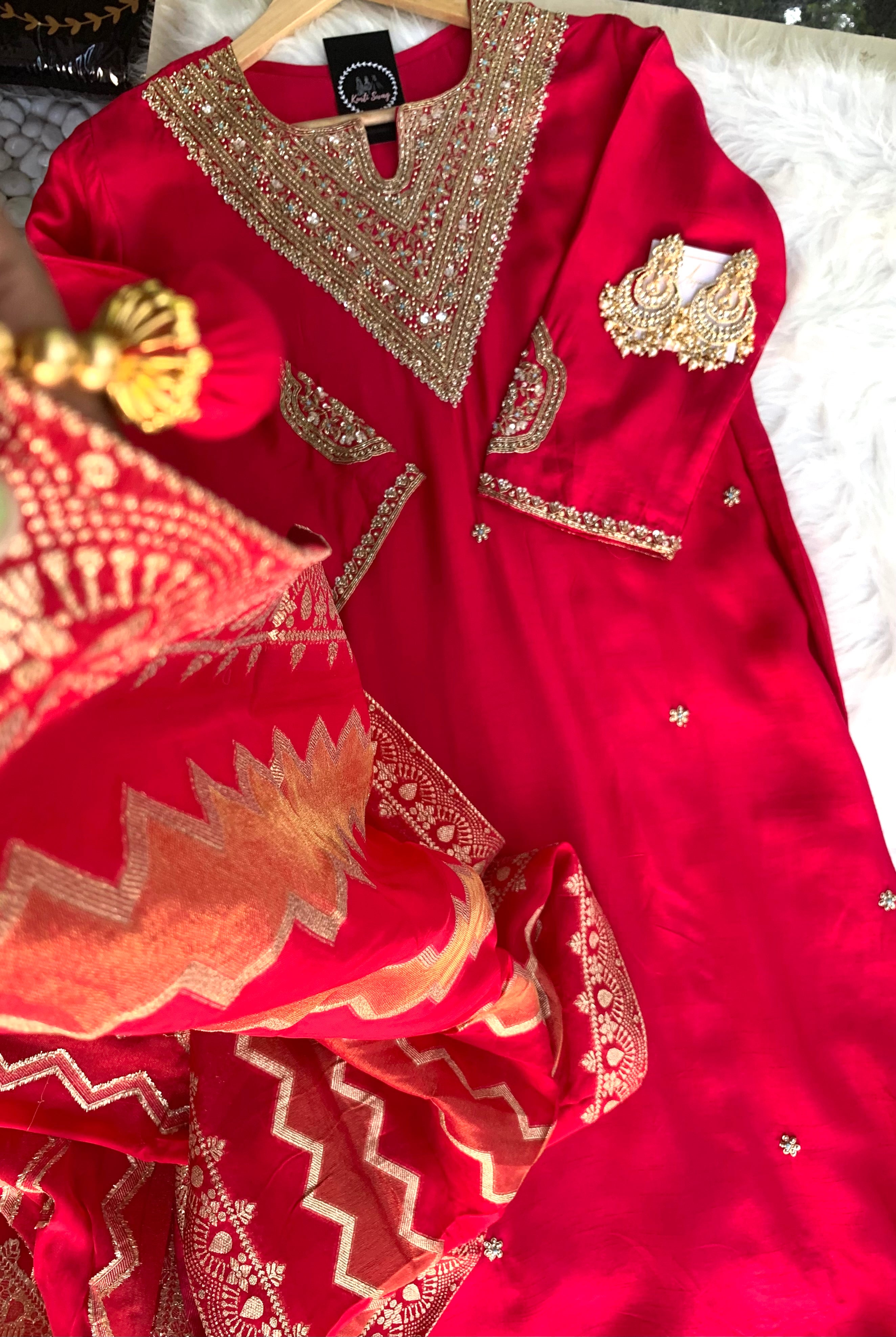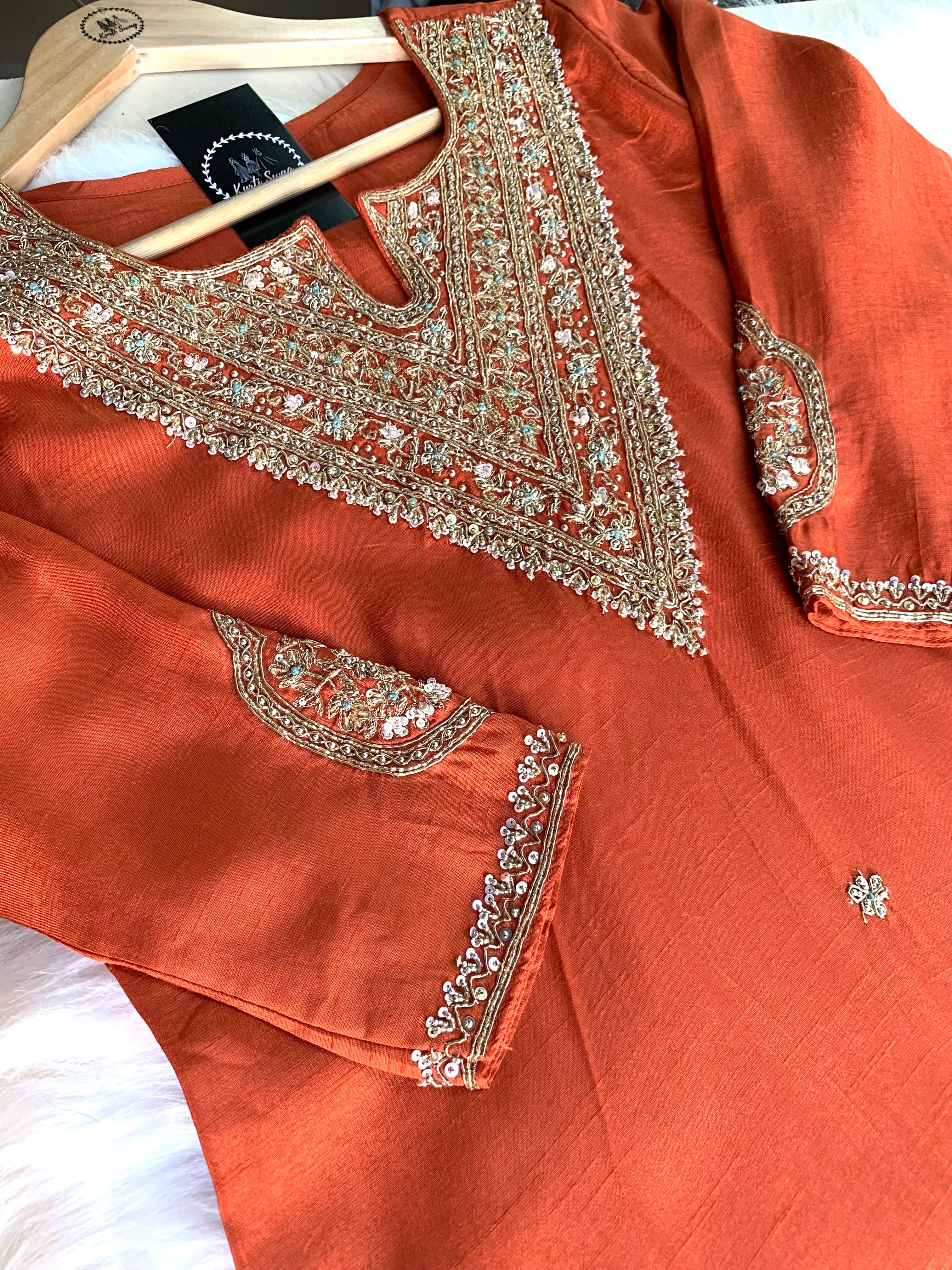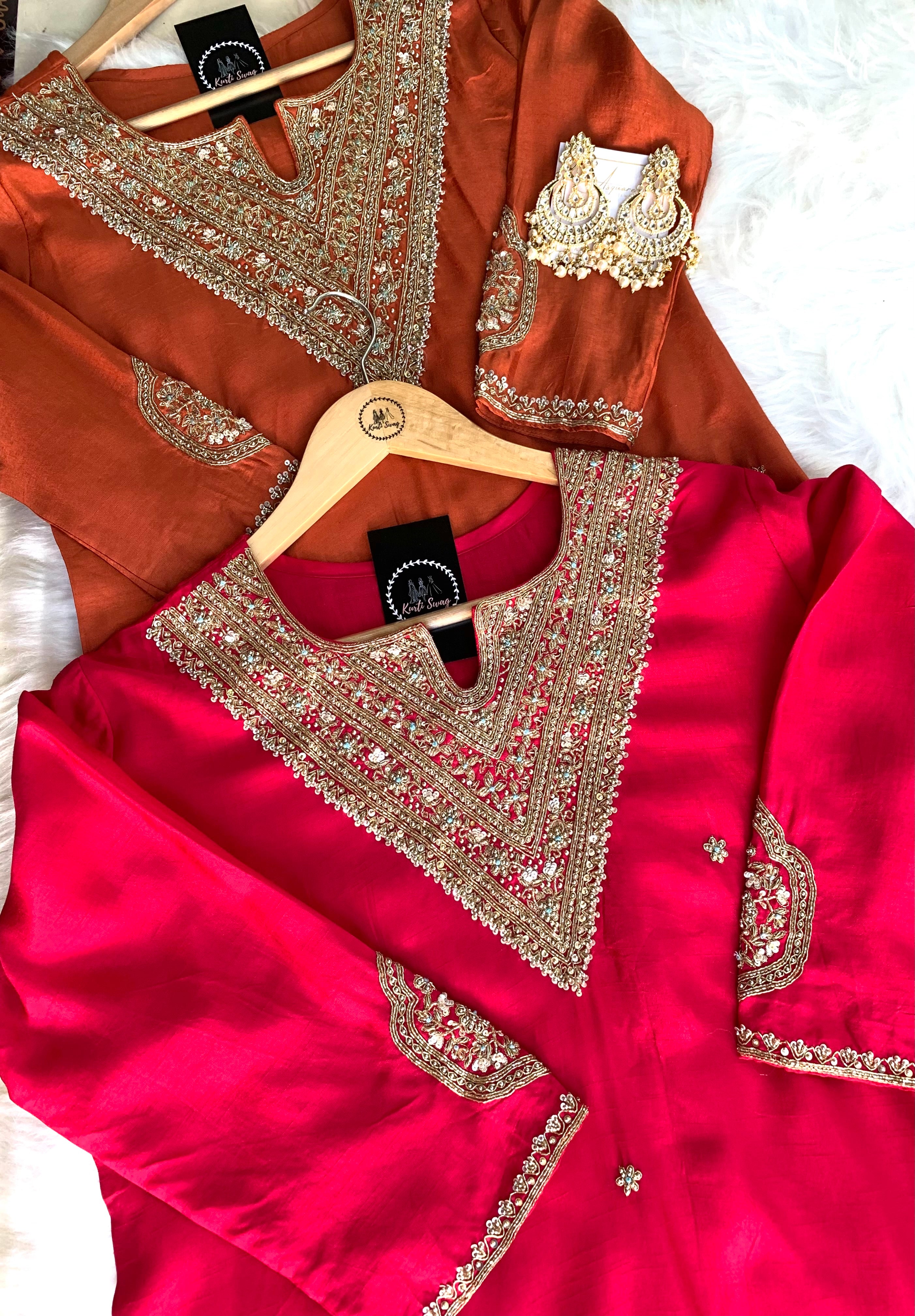 ✅ Premium Dola Silk Kurti With Zardosi & Dabka Handwork On The Yoke Of The Kurti .