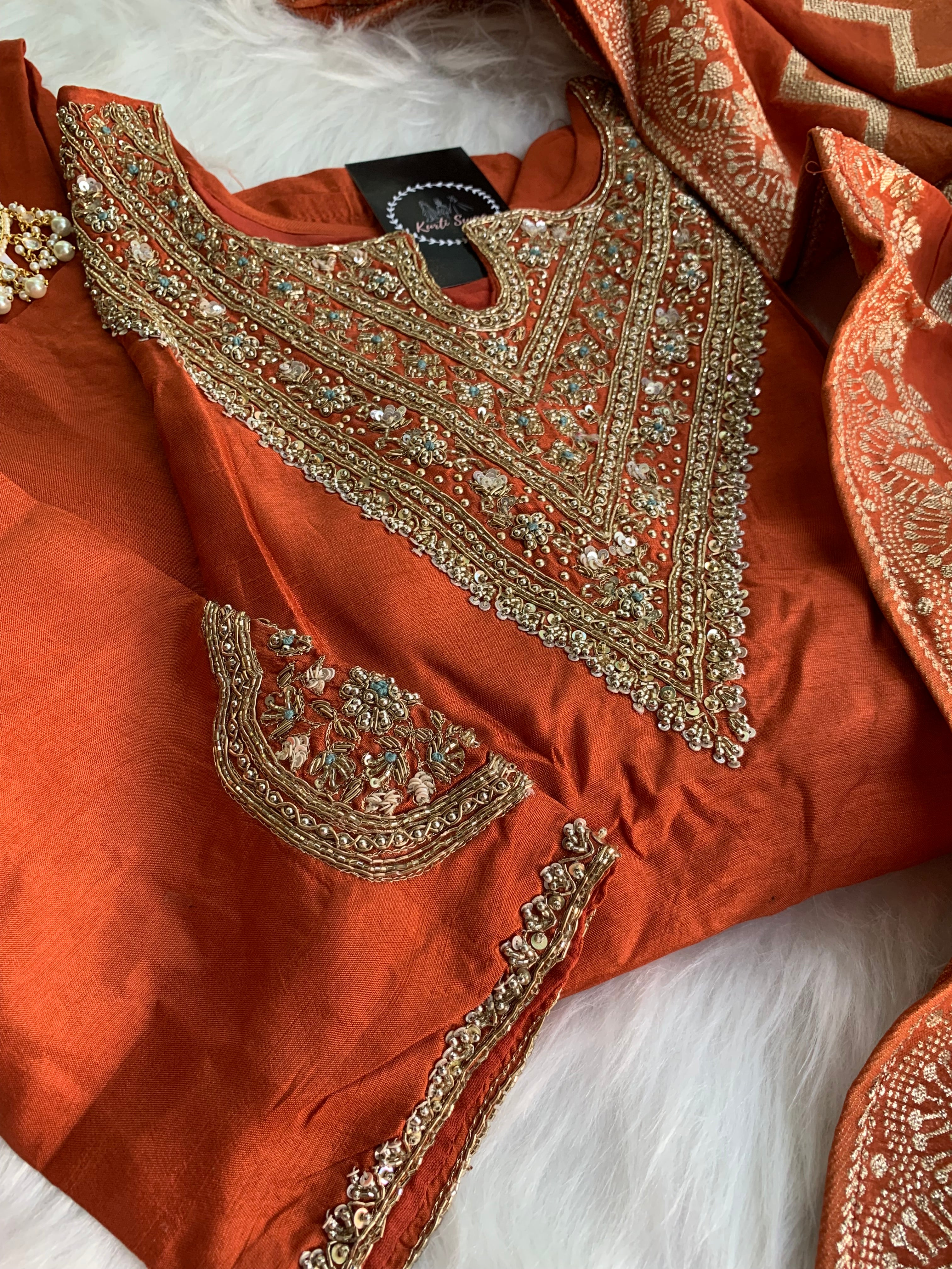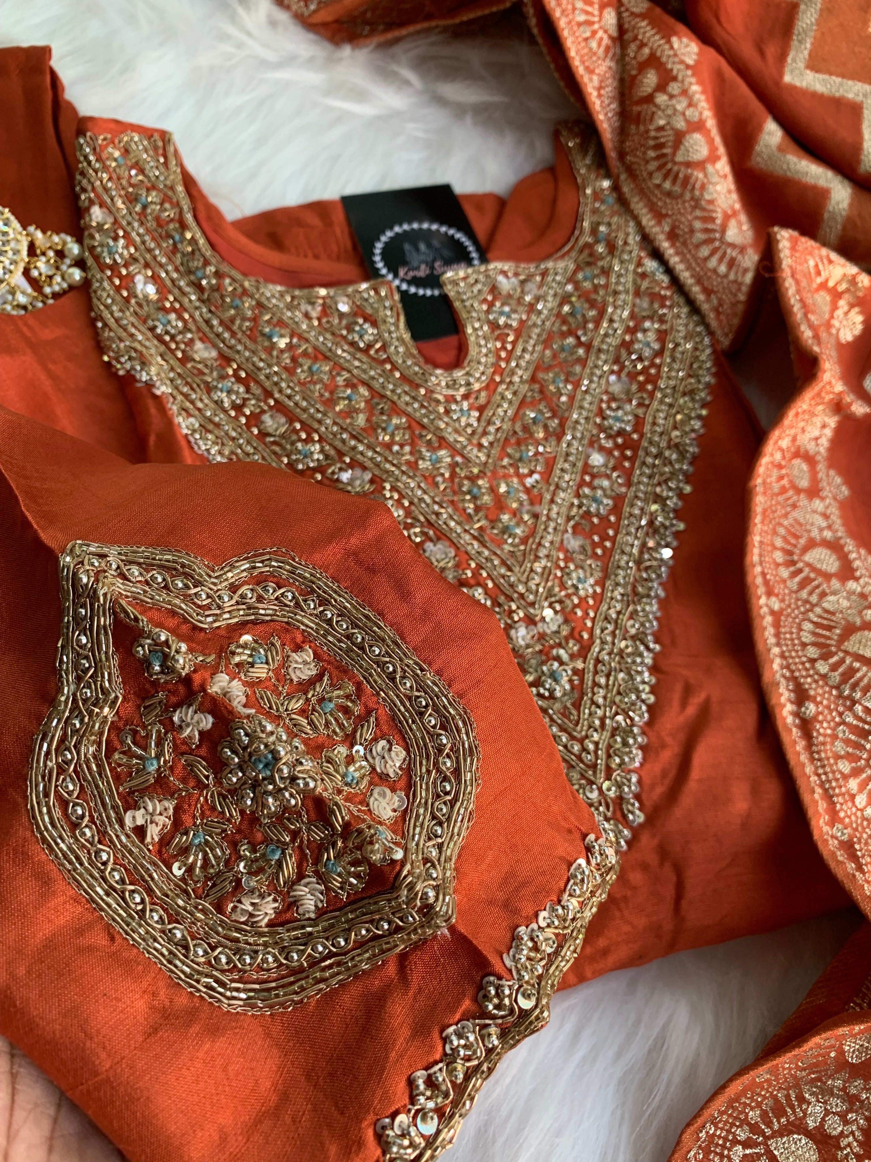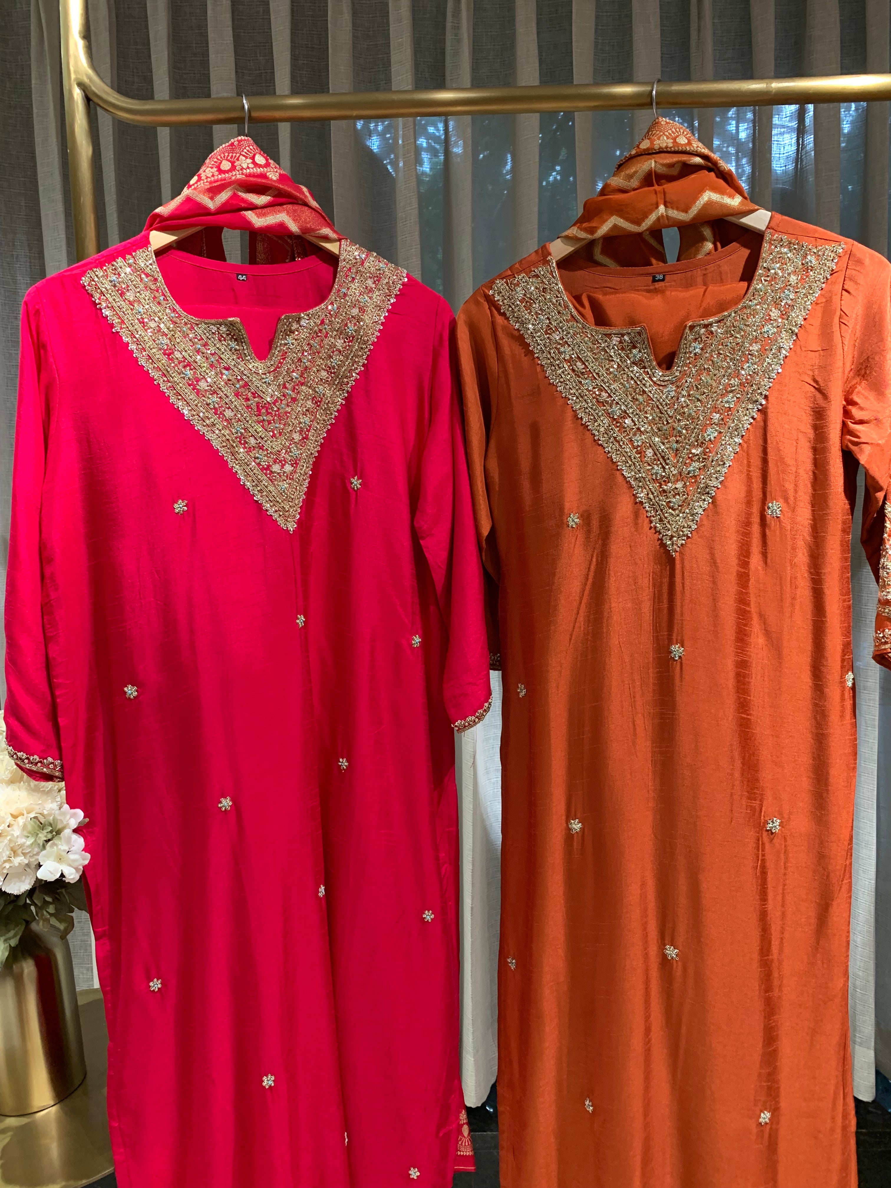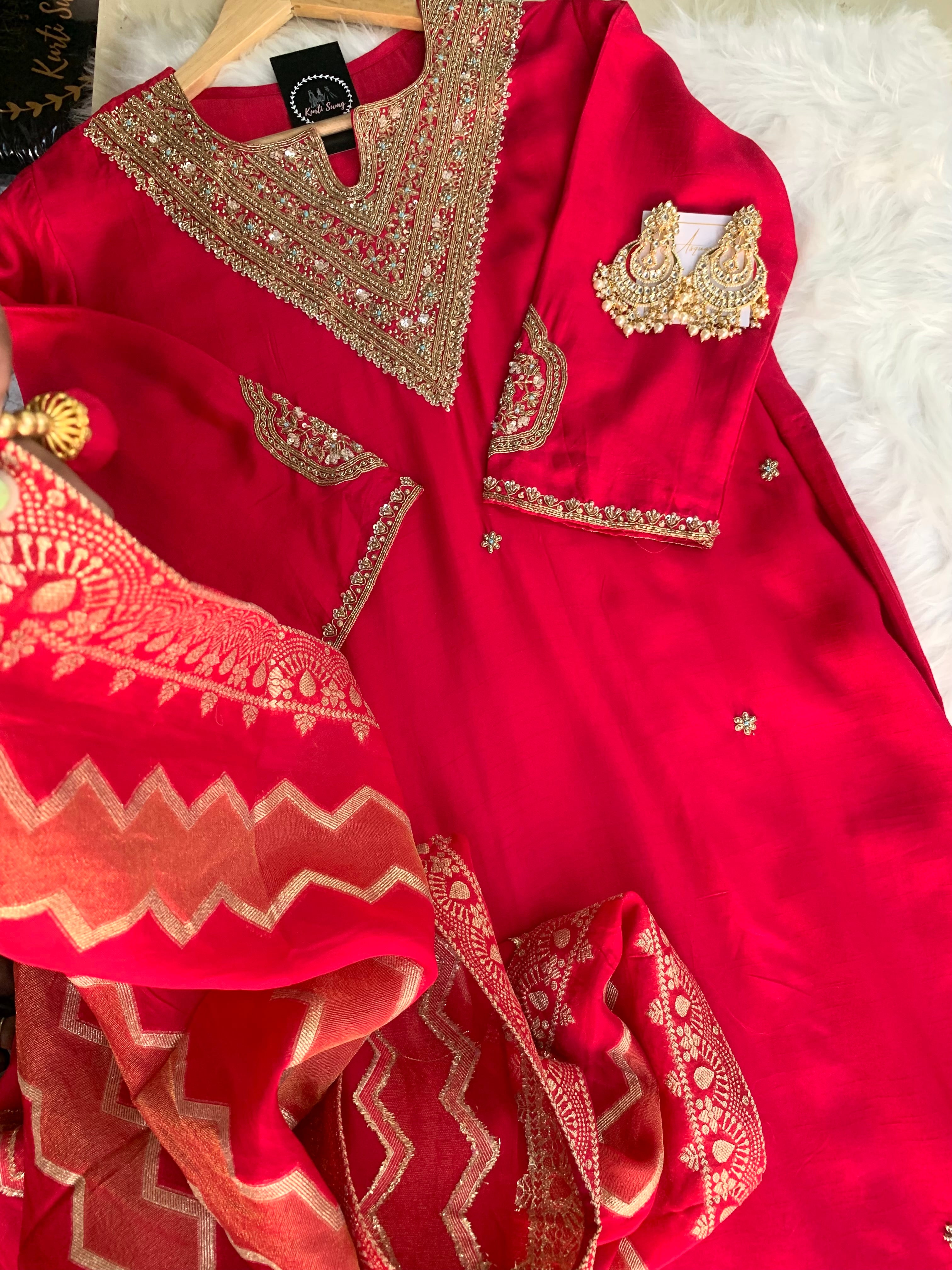 ✅ Premium Dola Silk Kurti With Zardosi & Dabka Handwork On The Yoke Of The Kurti .