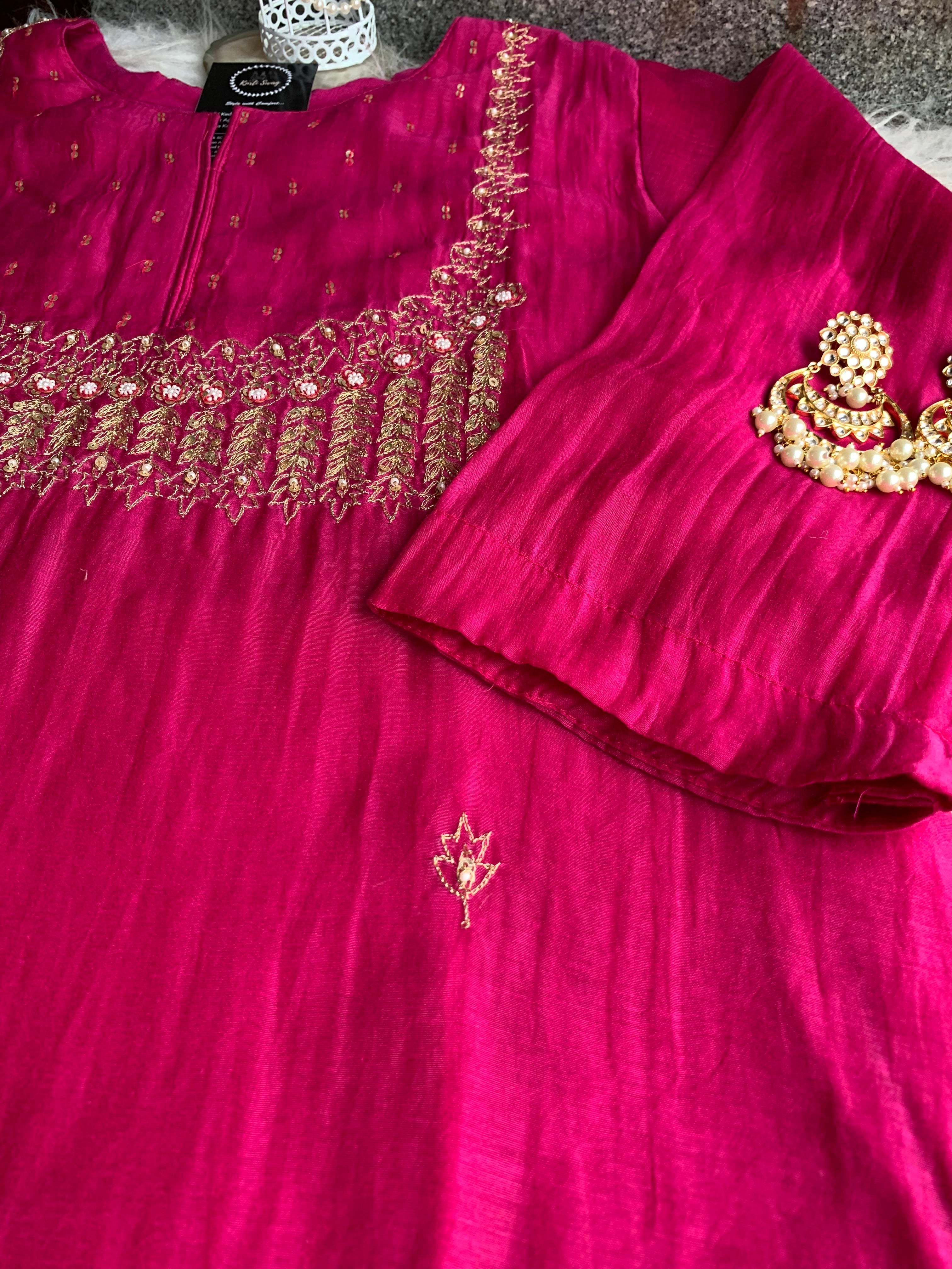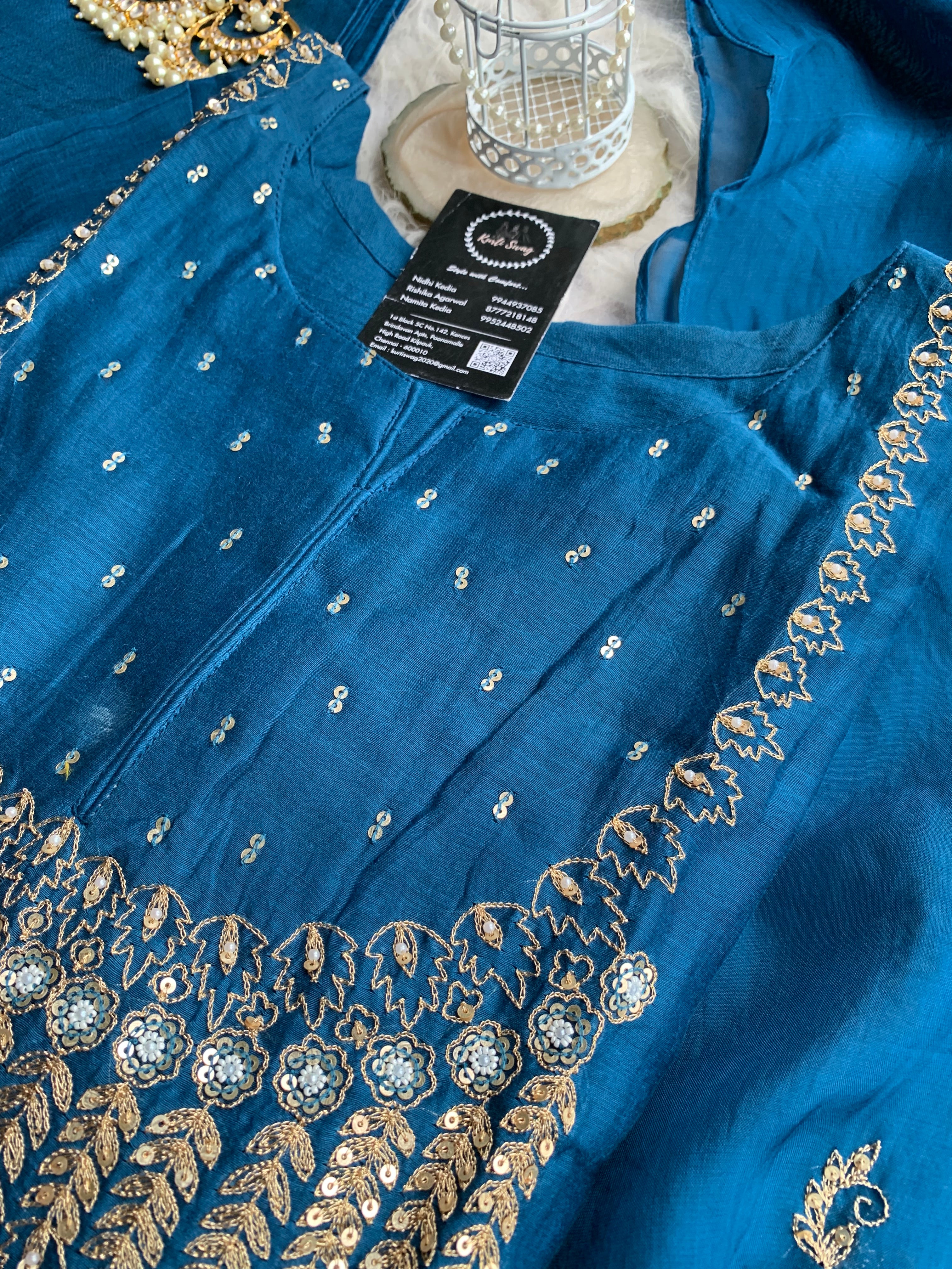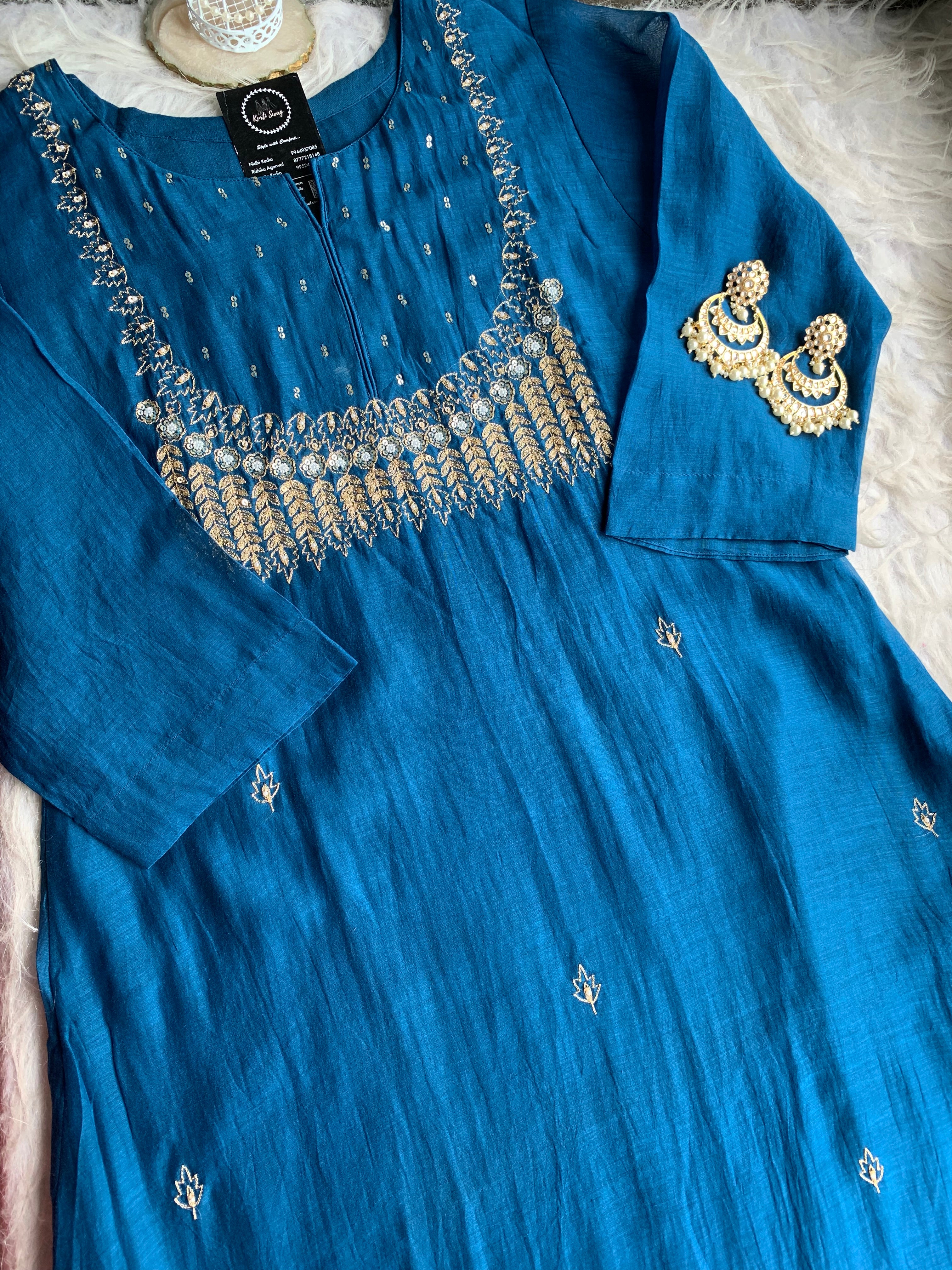 ✅ Premium Mul Chanderi Kurti With Sequin Work On The Kurti