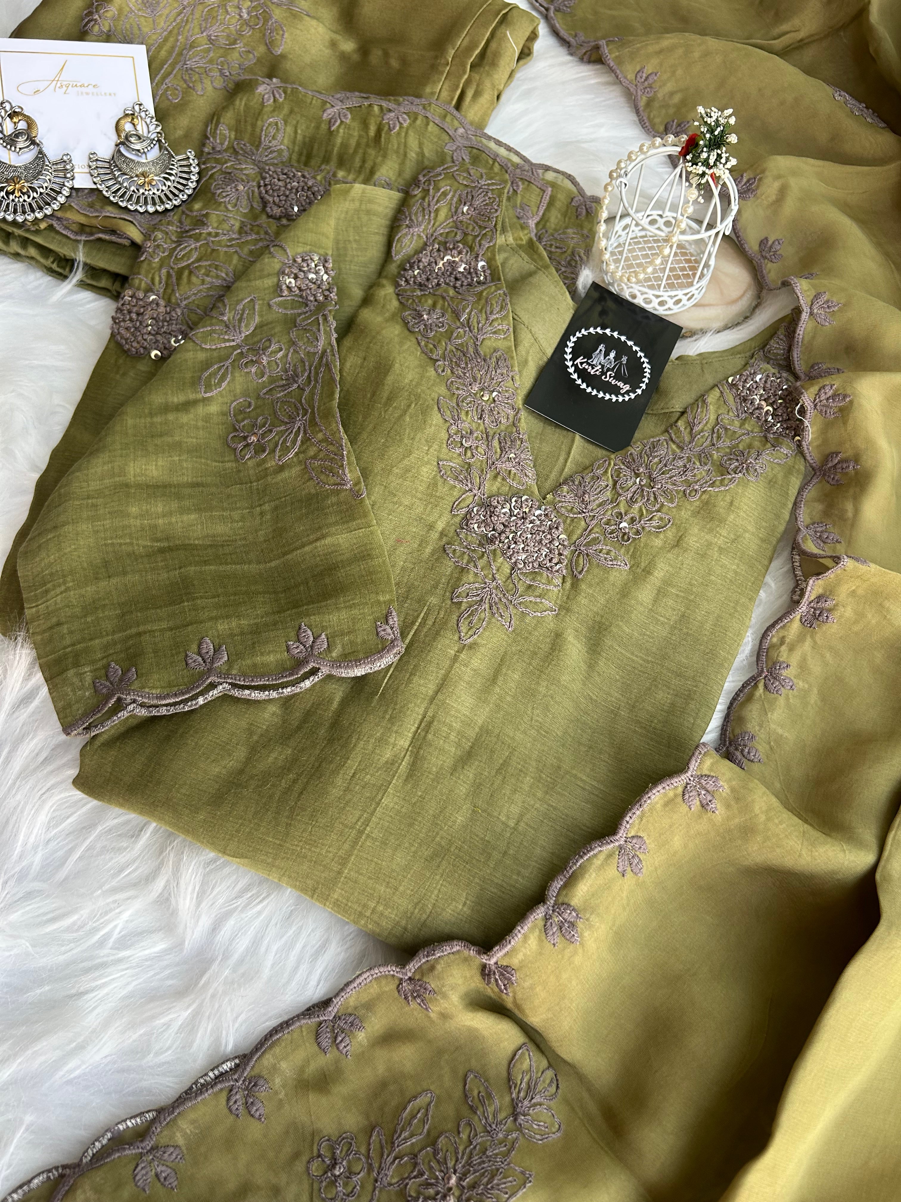 “NIRAYA” Premium Mul Chanderi Antique Handwork Suit Set ✨💕