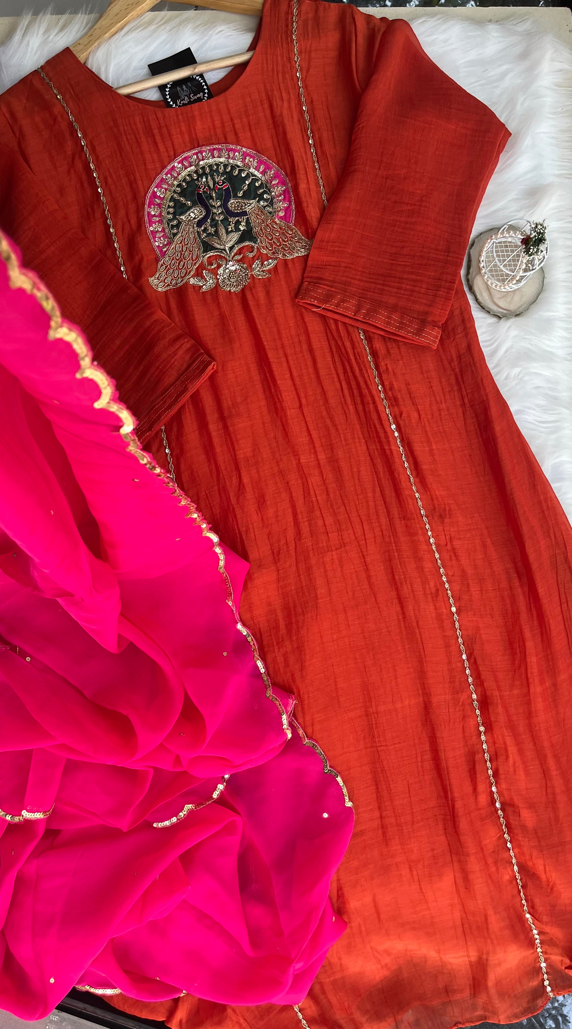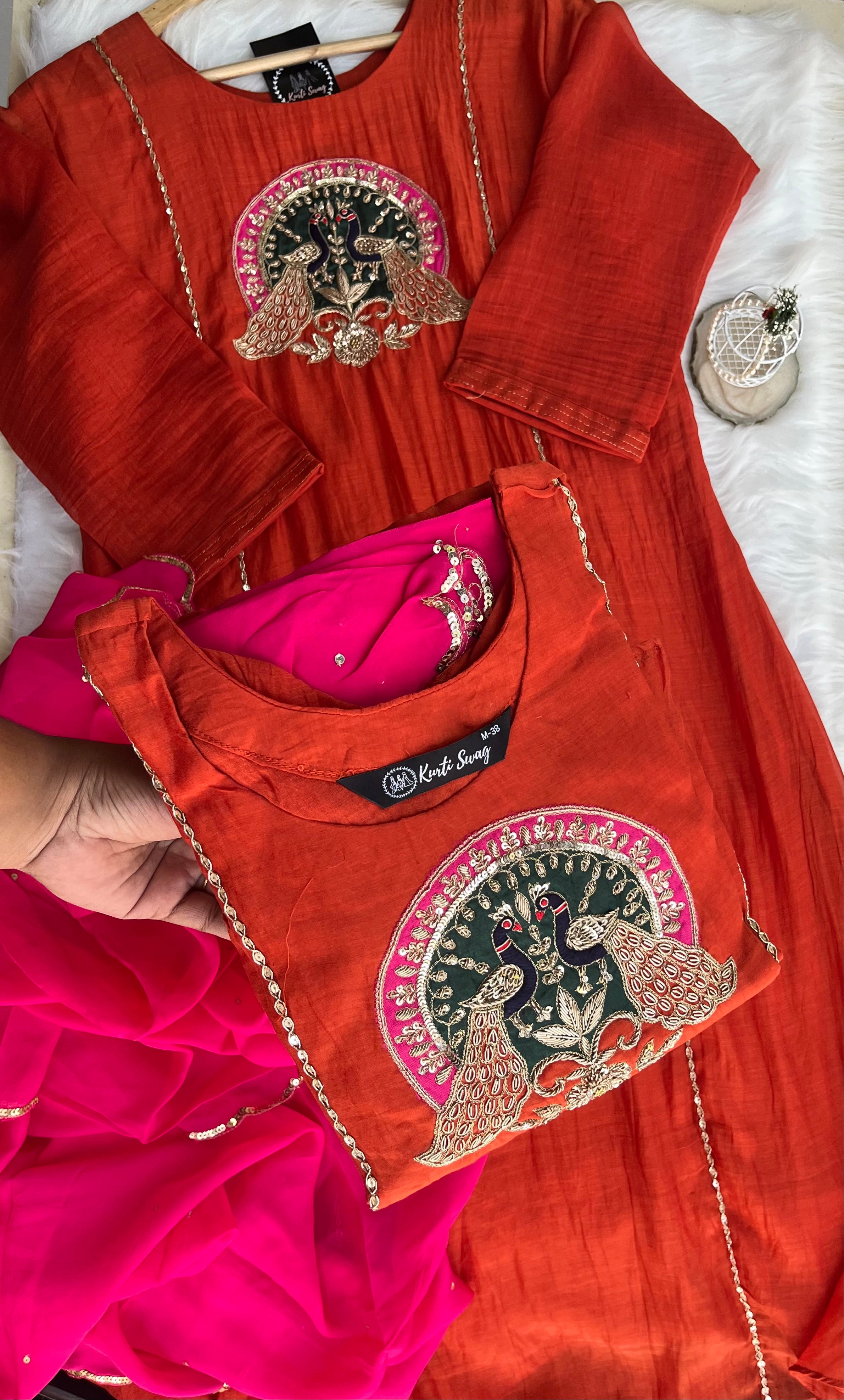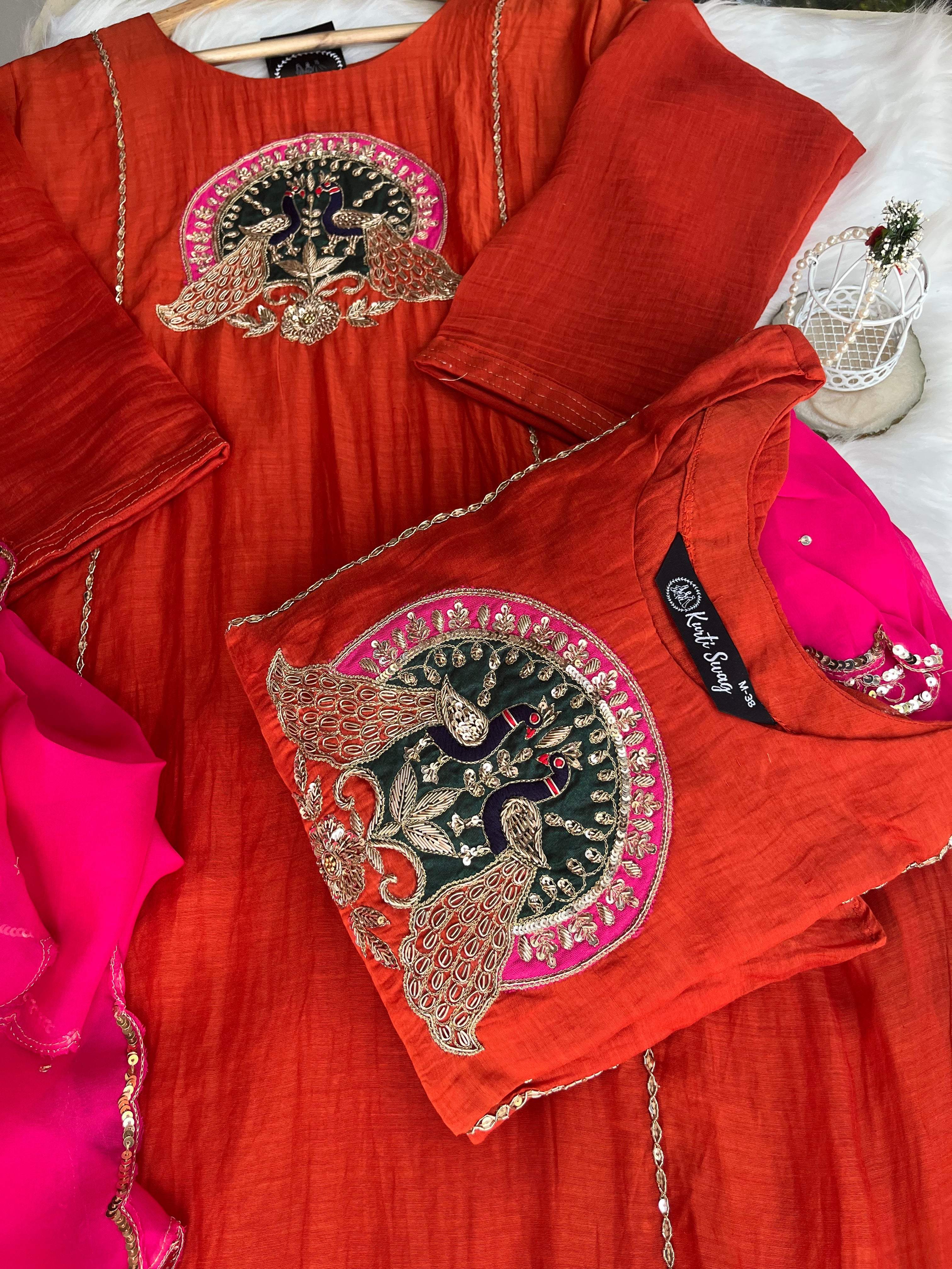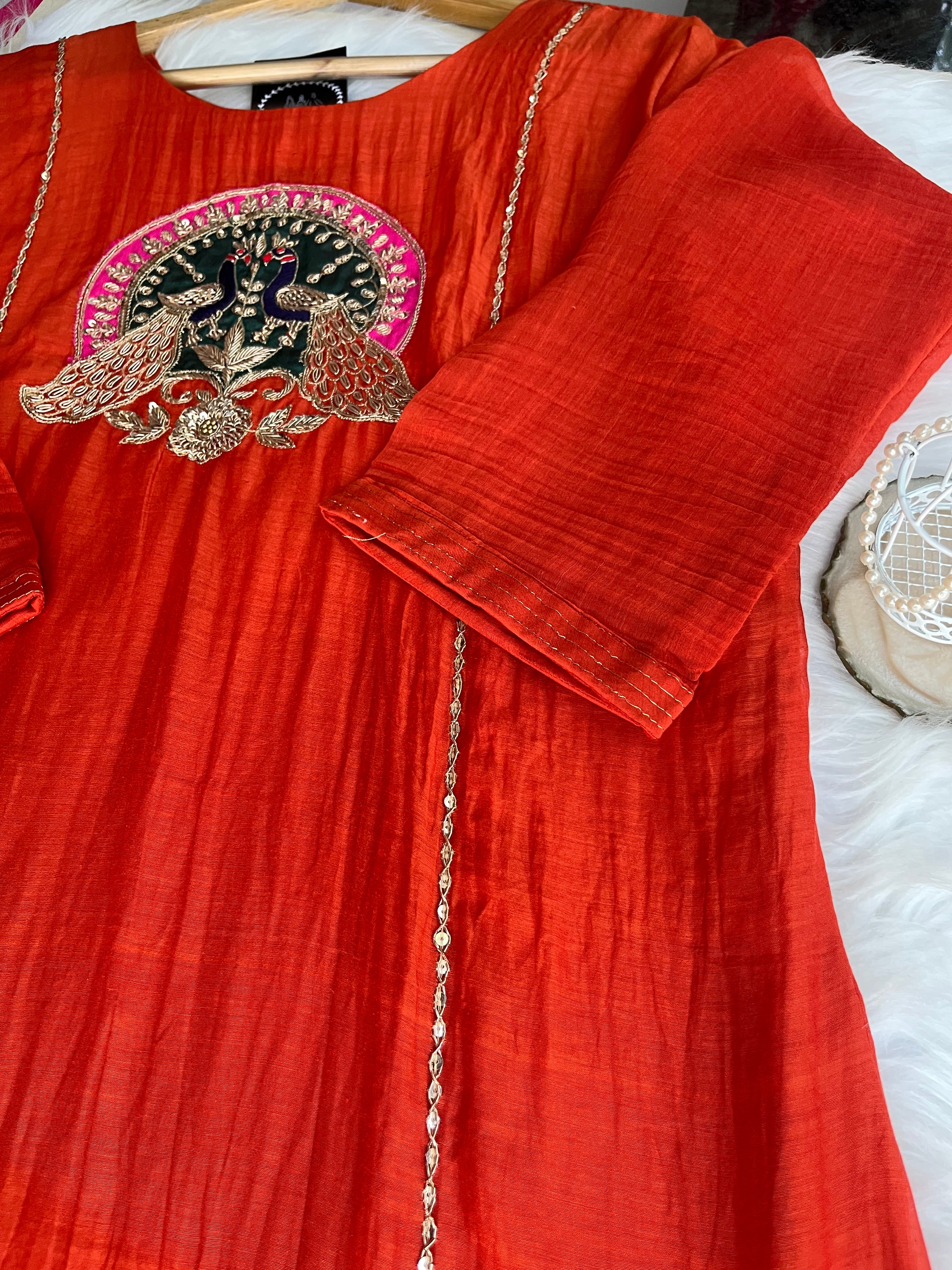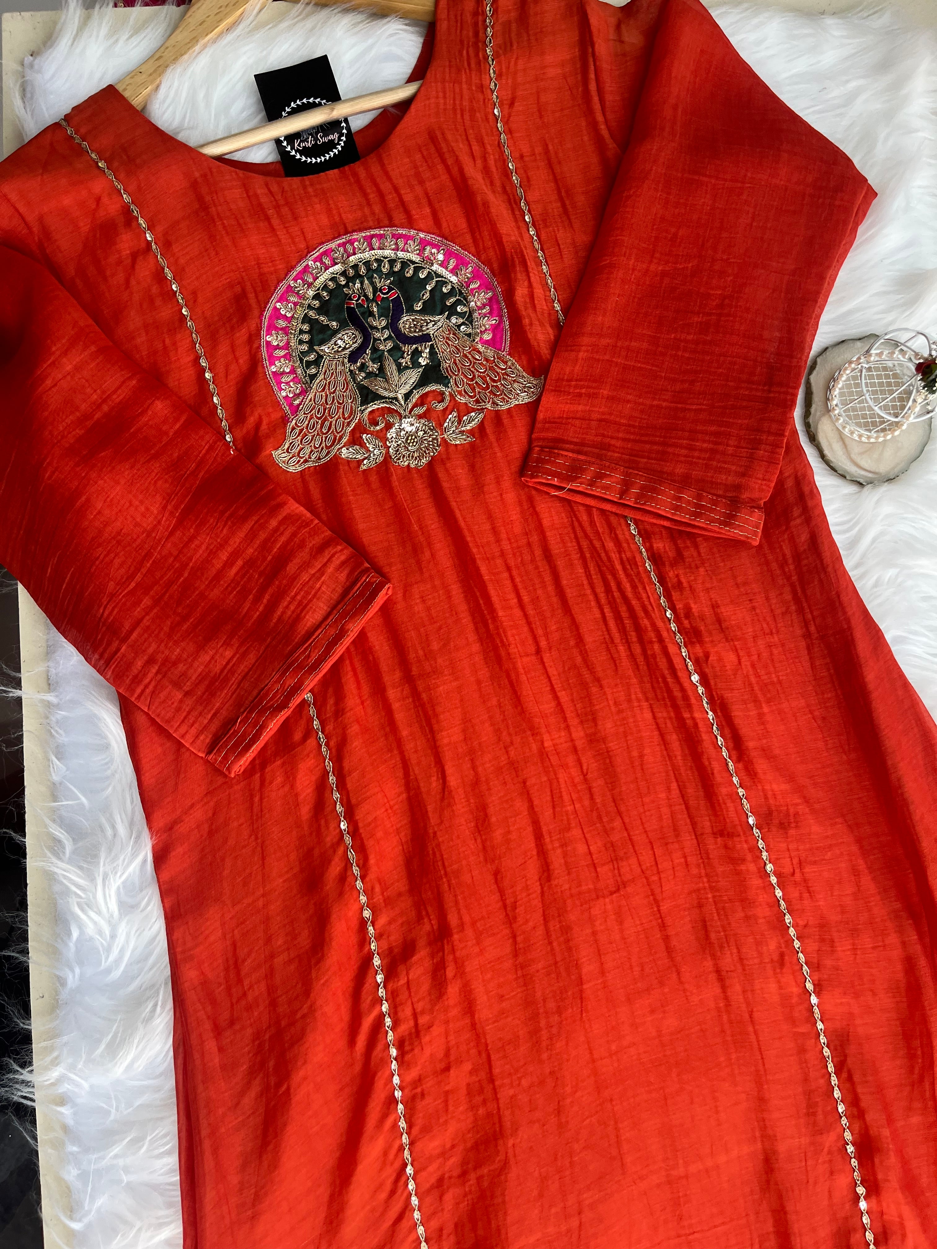 ✅ Premium Mul Chanderi Kurti With Handwork On The Yoke Of The Kurti