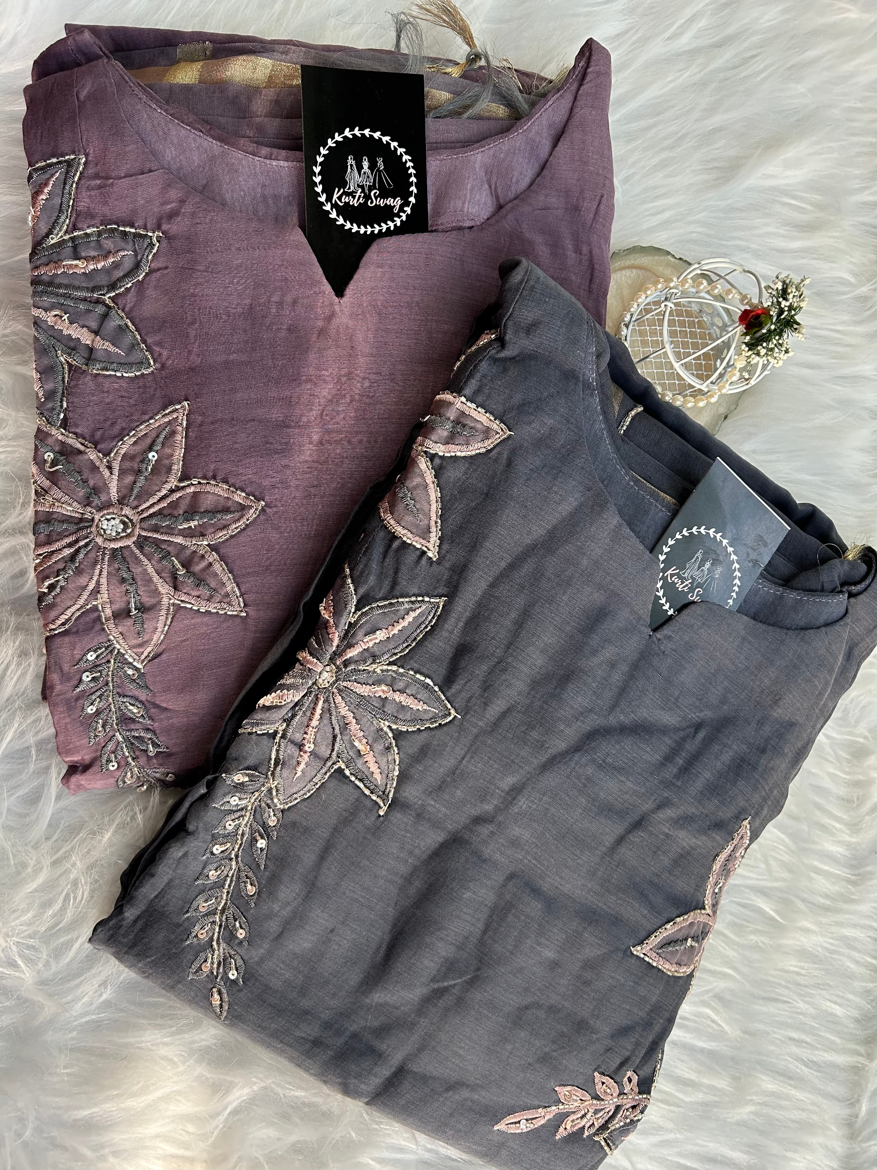 ✅ Premium Mul Chanderi Kurti With Handwork On The Yoke Of The Kurti