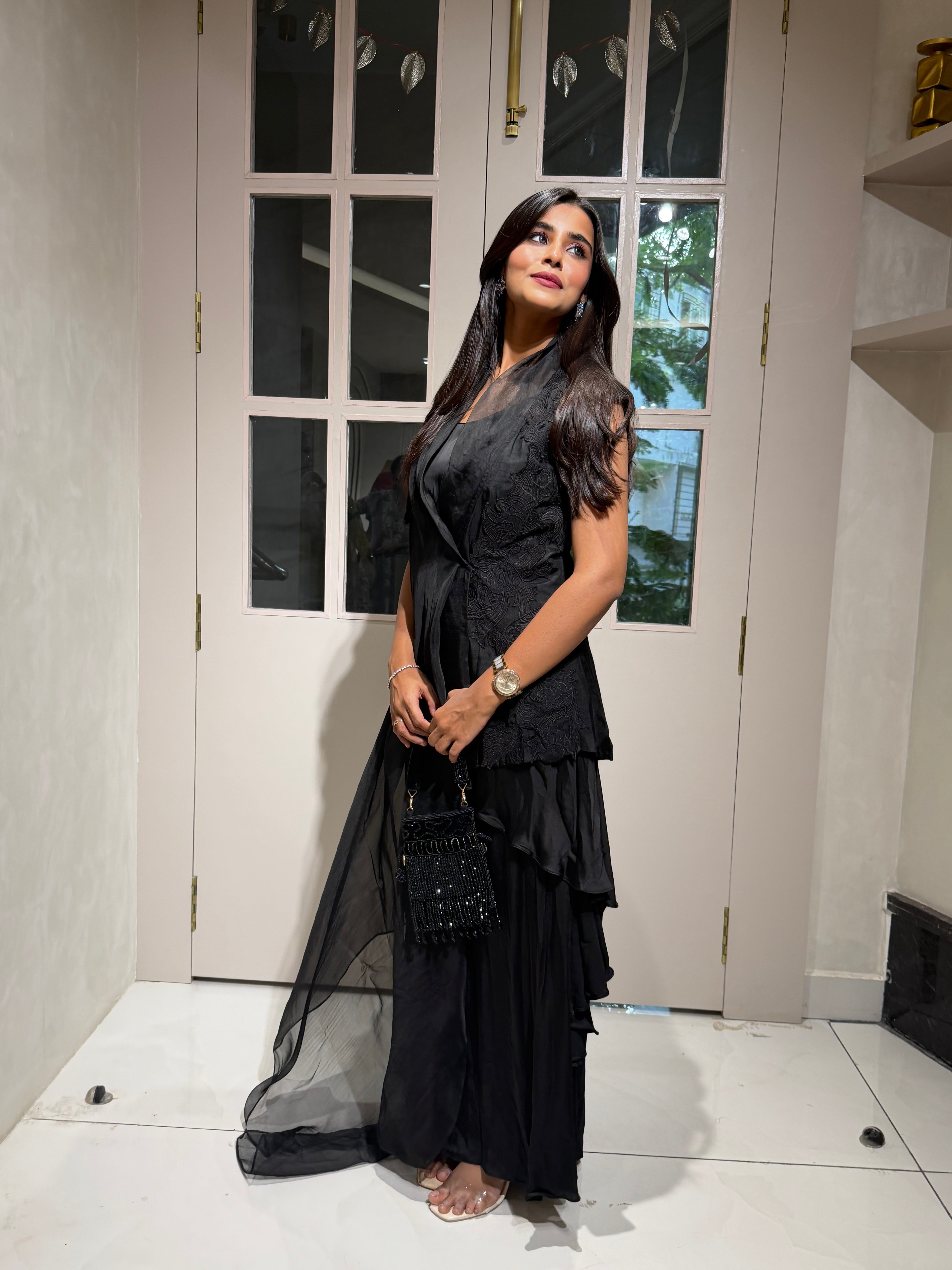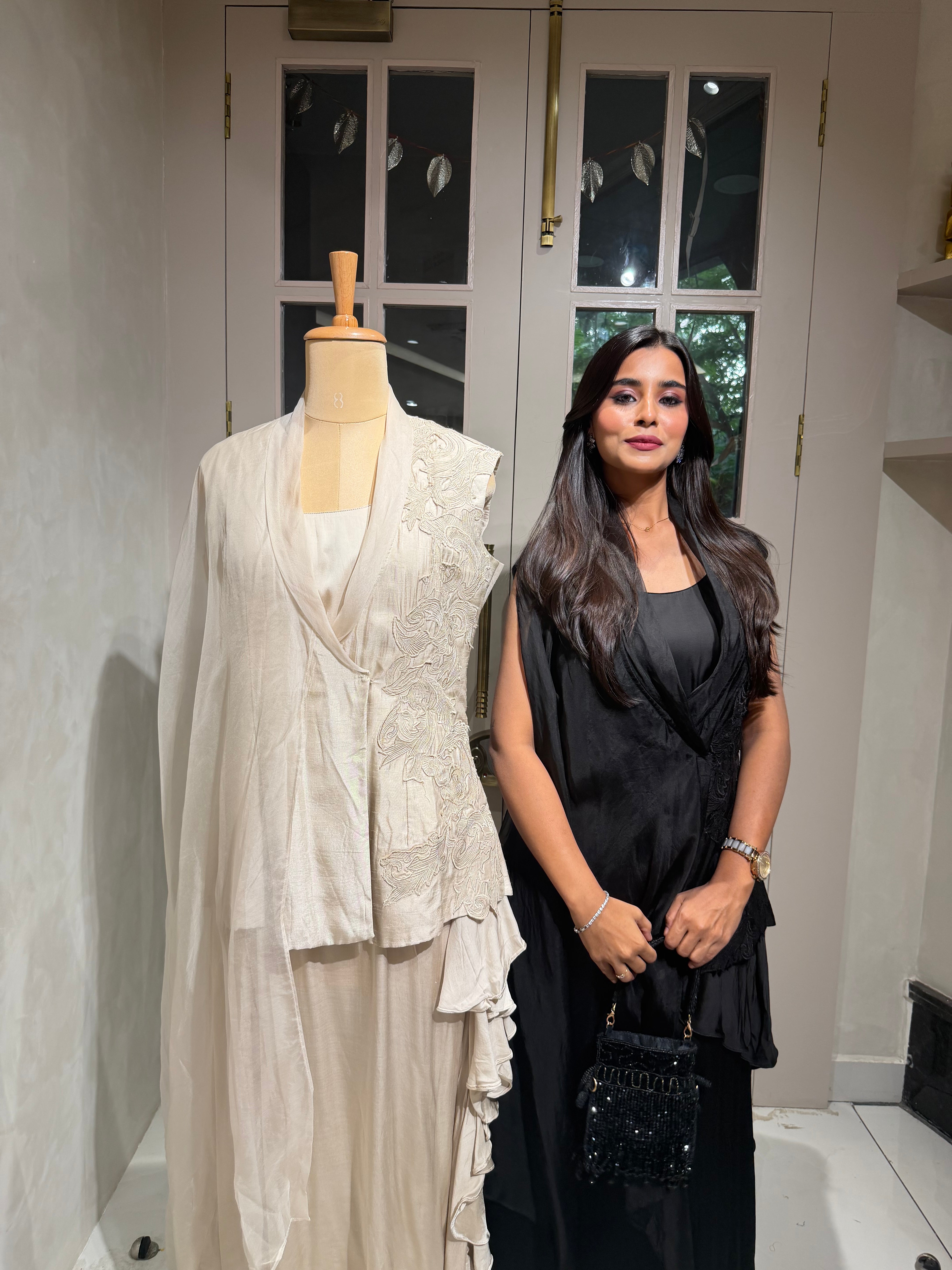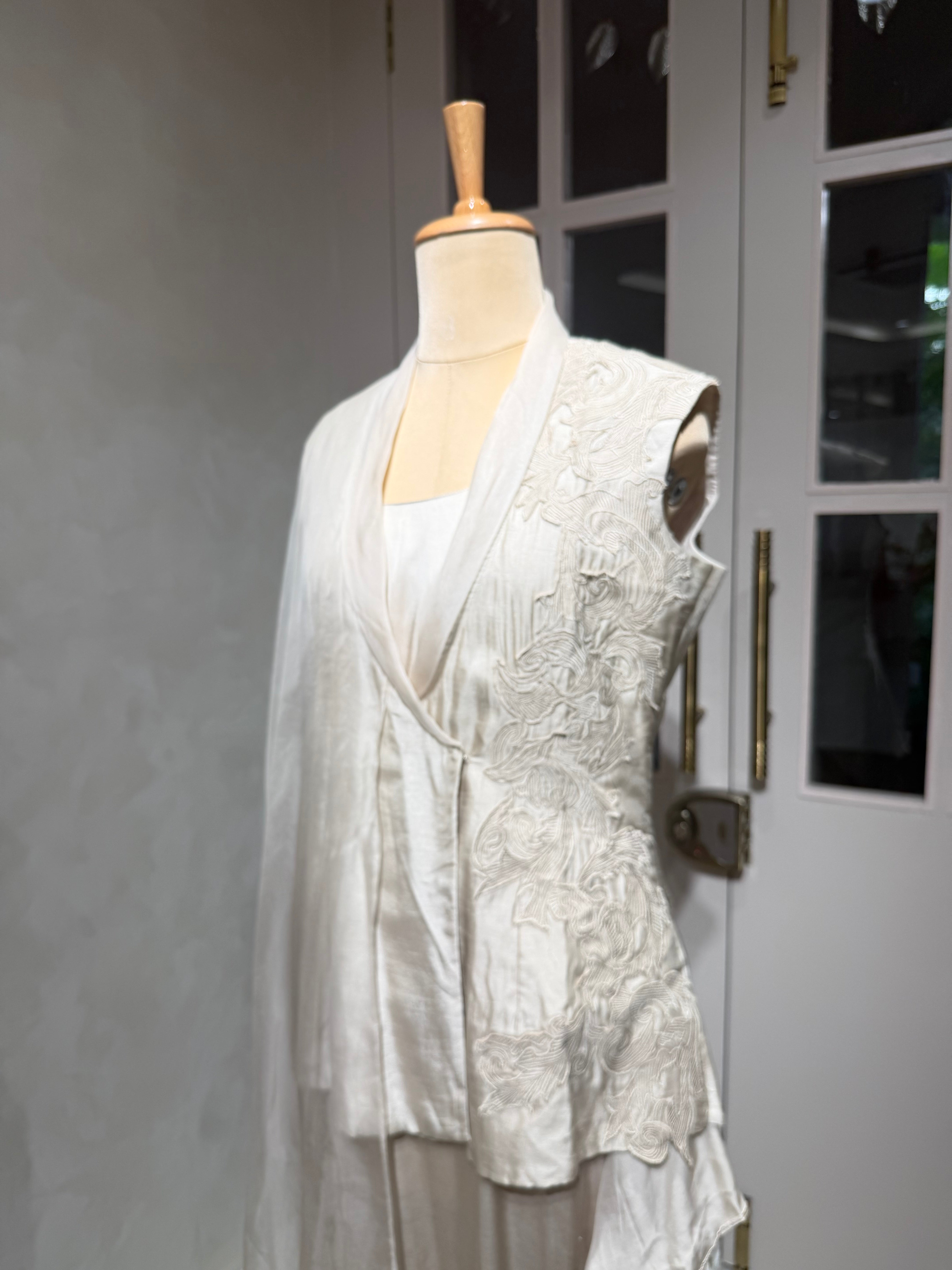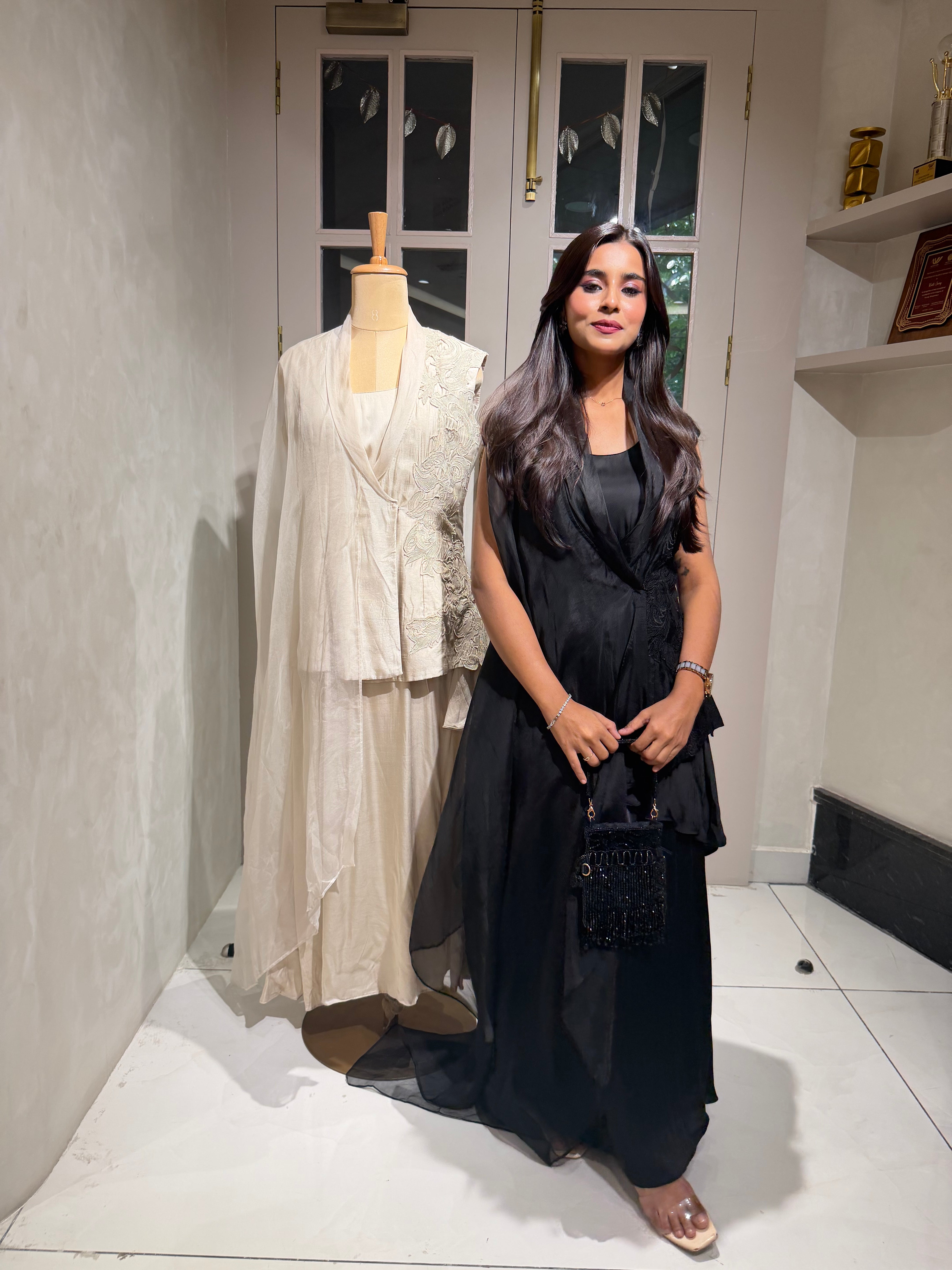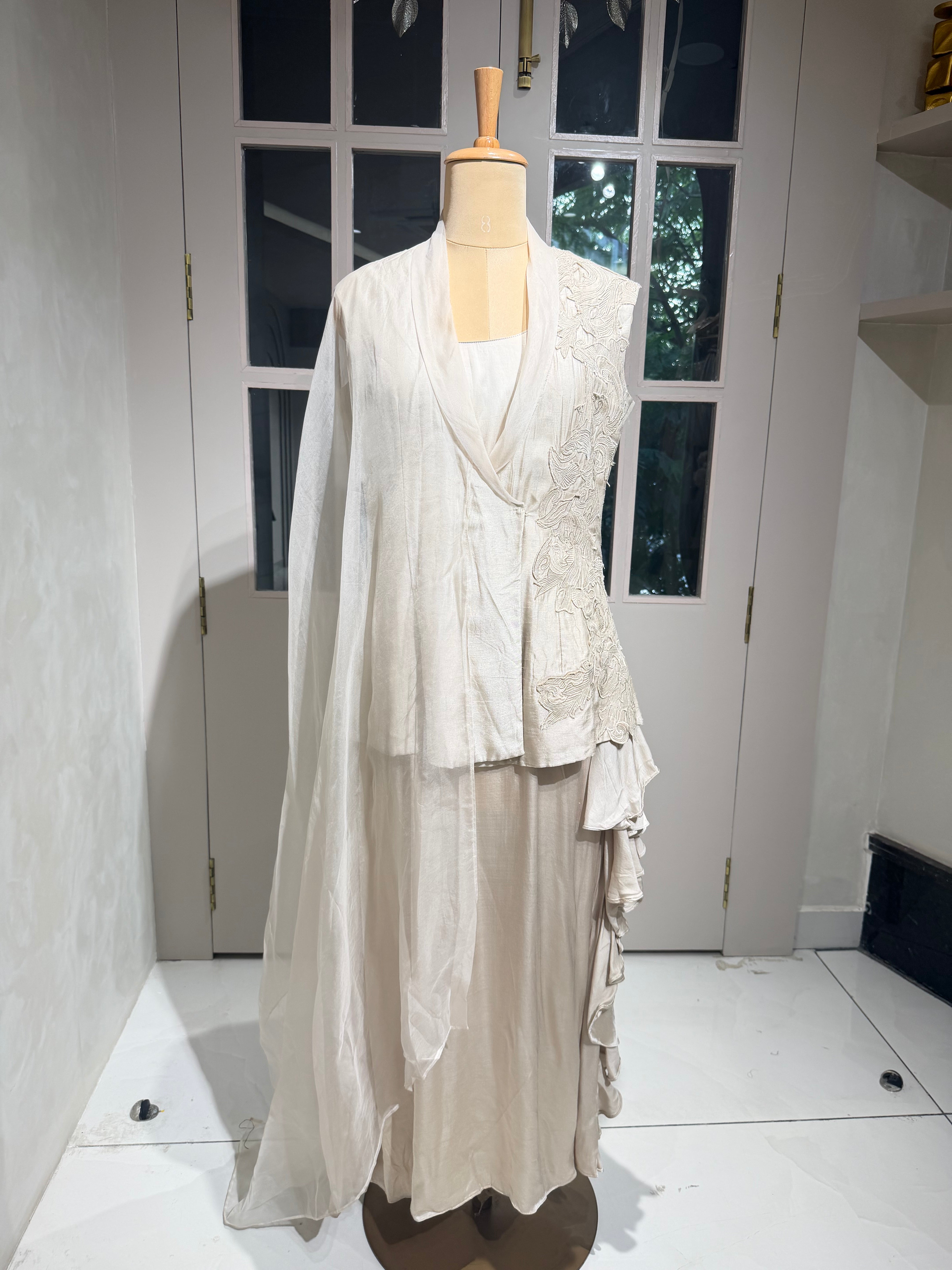 ✅ Has A Smart Jacket With Intricate Cutwork Appliqué Embroidery And Orangza Extended Detailing On The Other Side