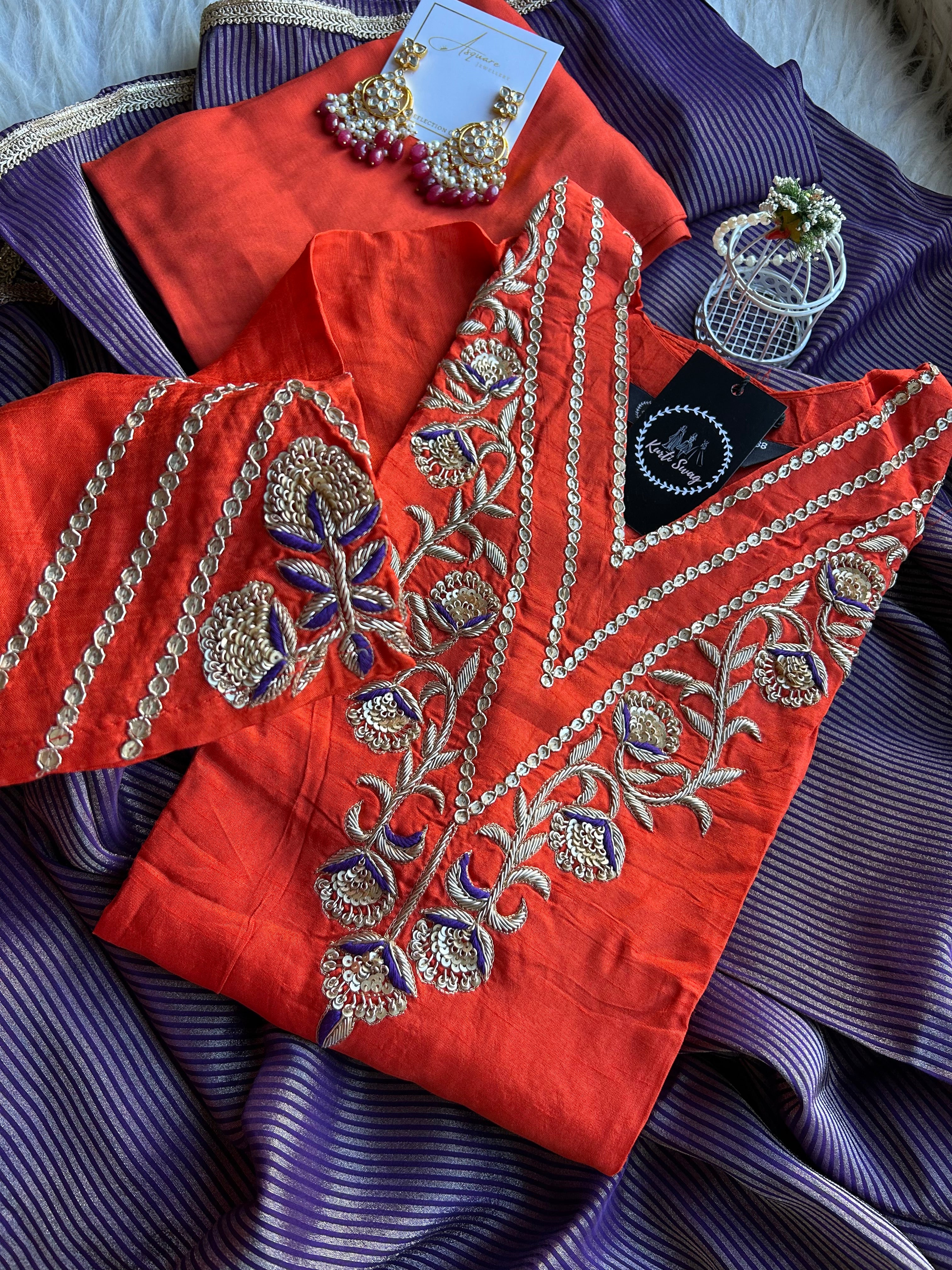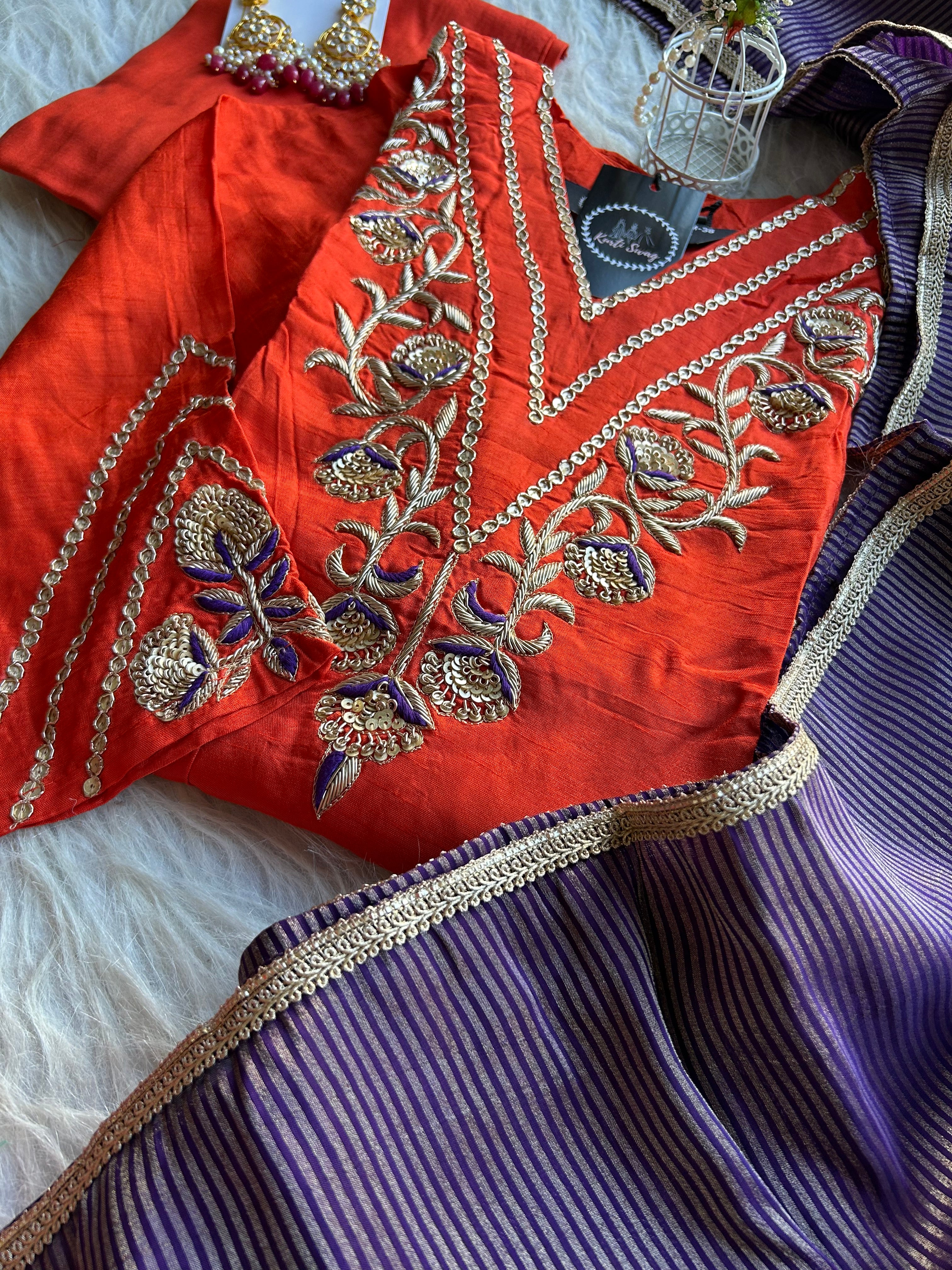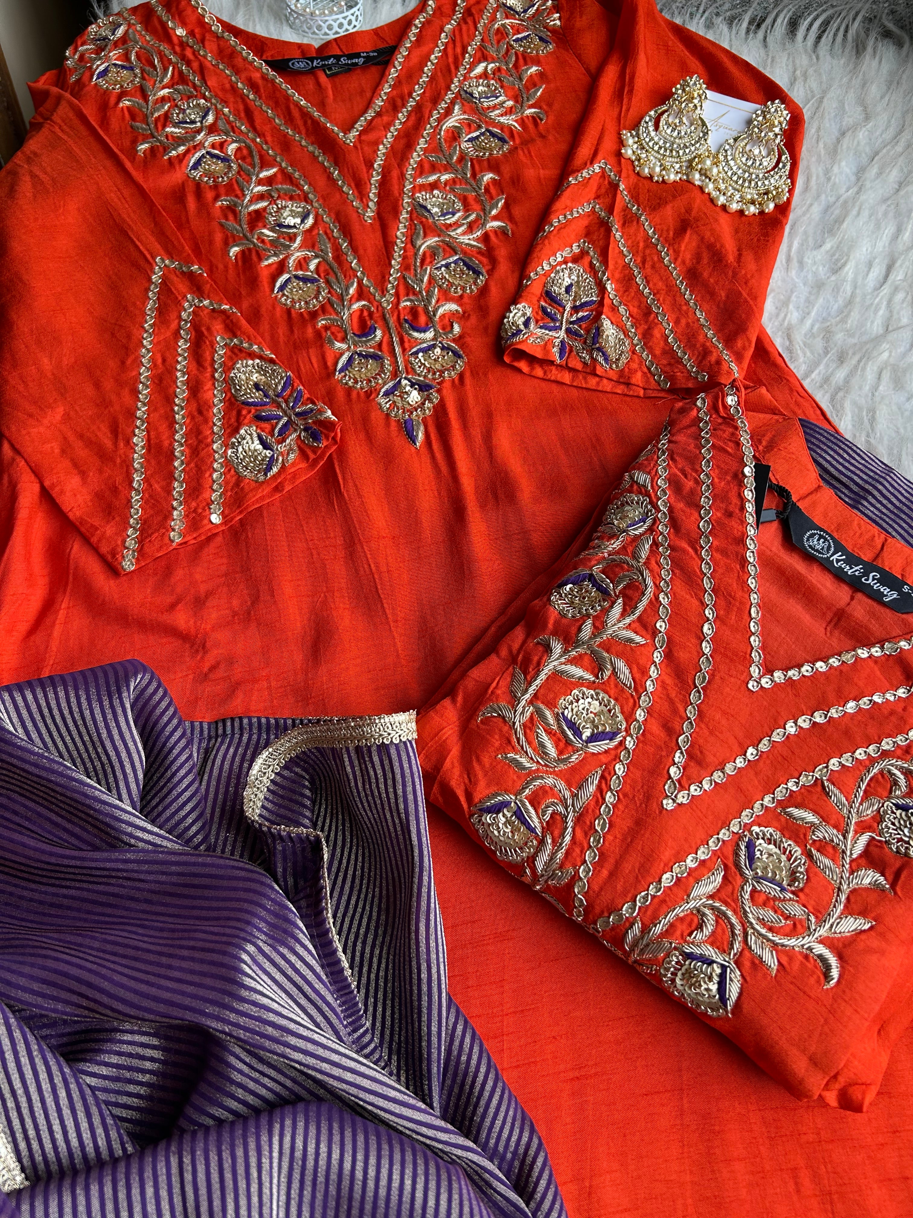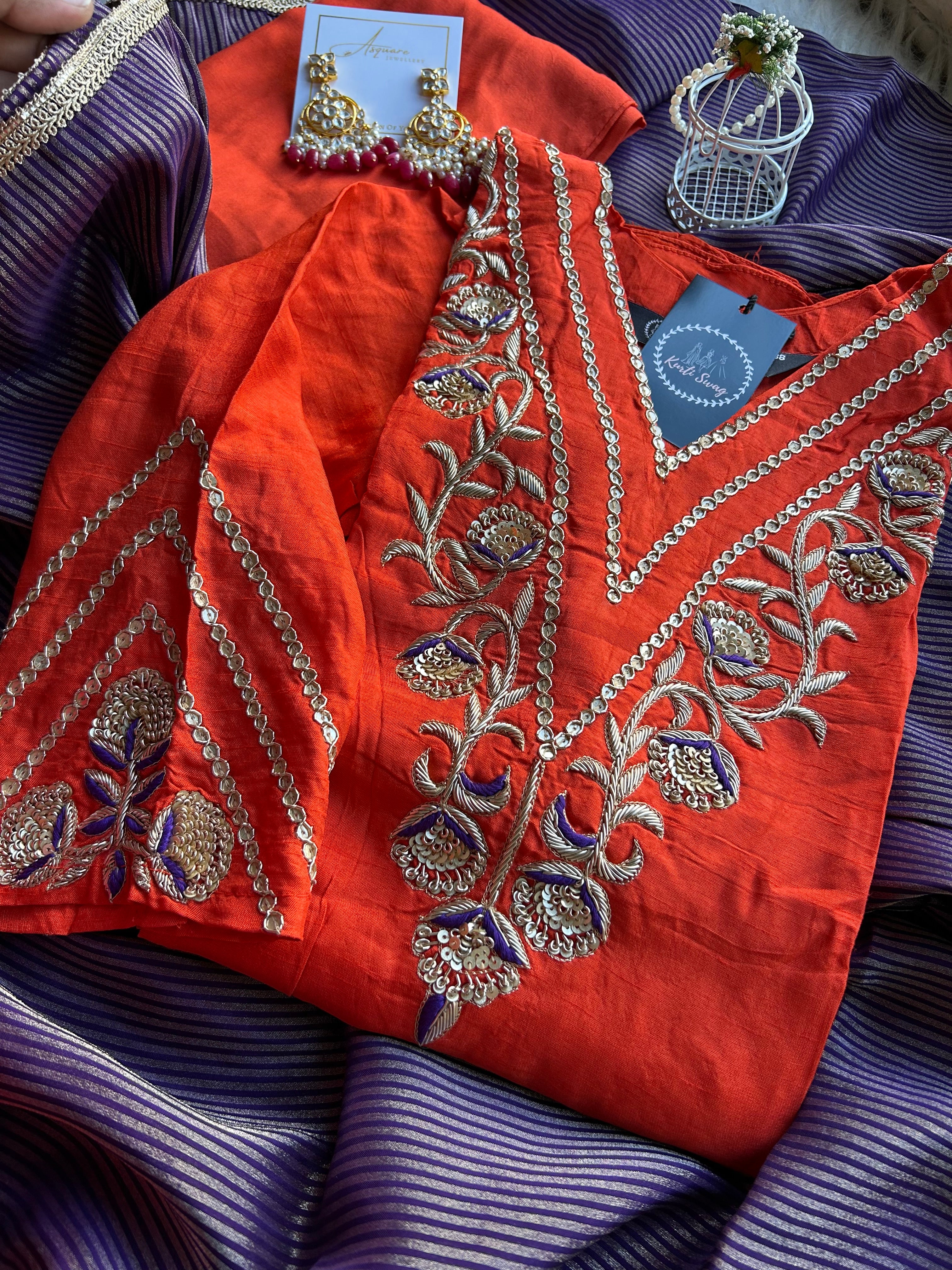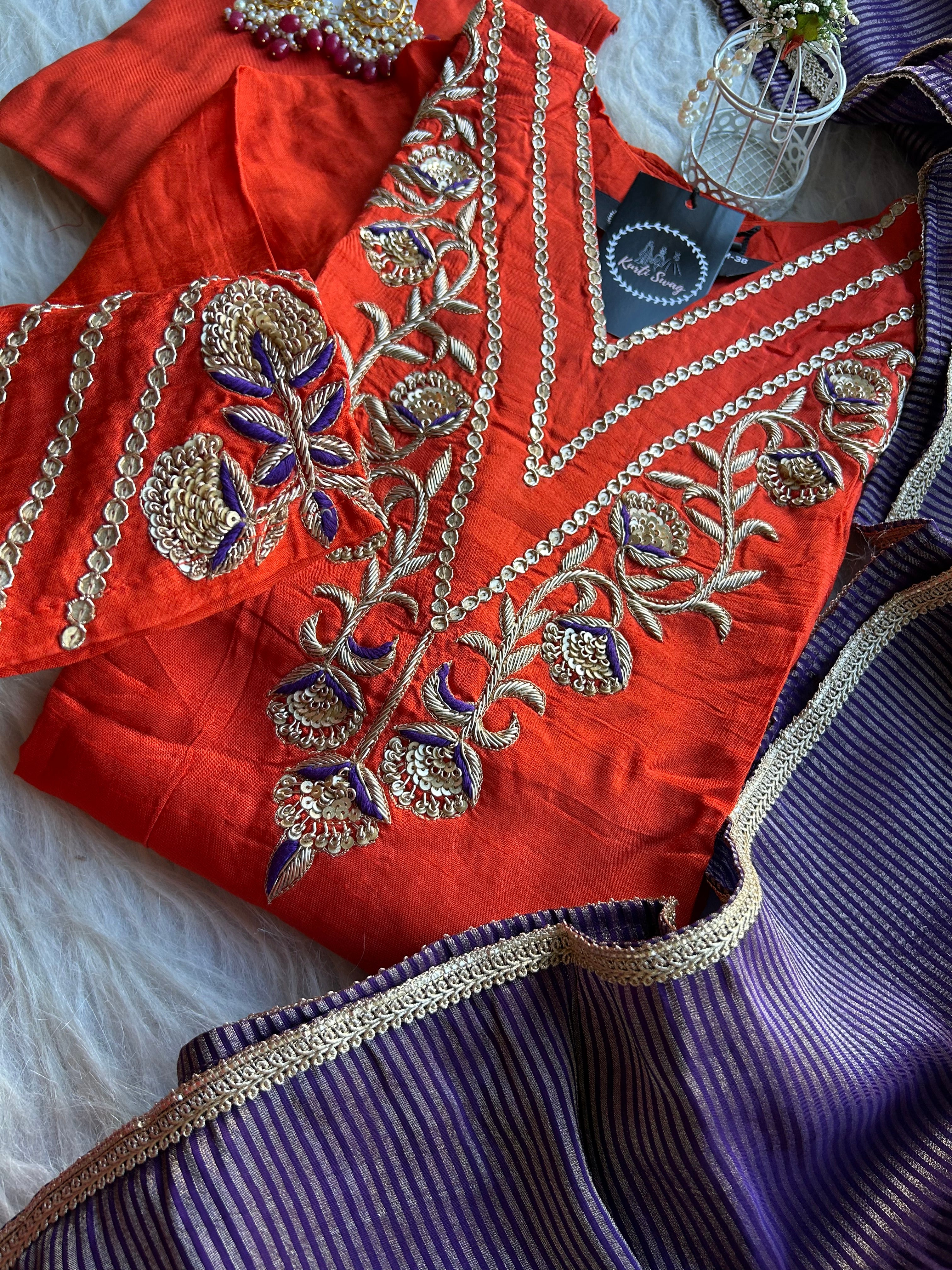 “SULEKHA” Dola Silk Festive Suit Set In Orange ✨