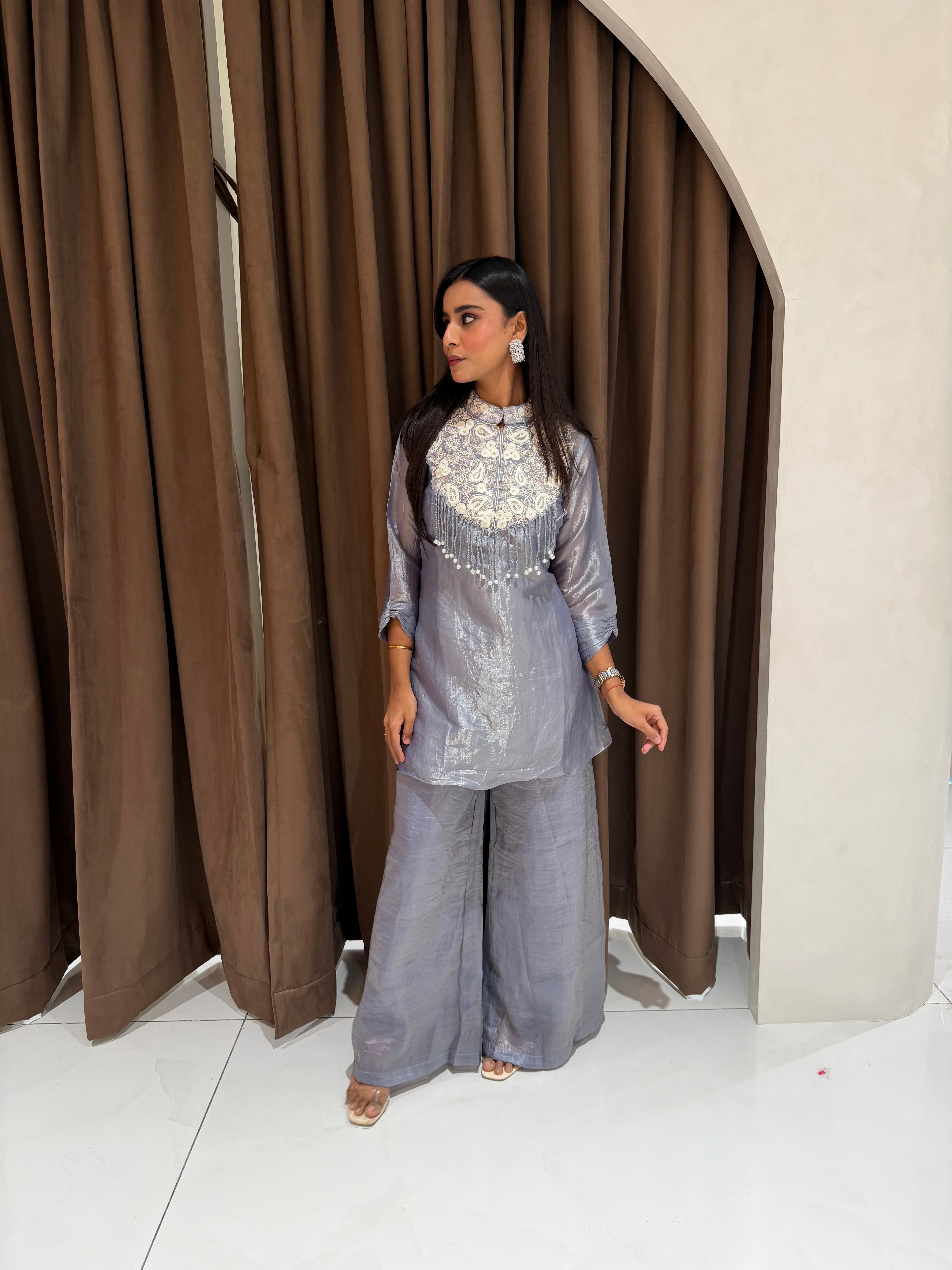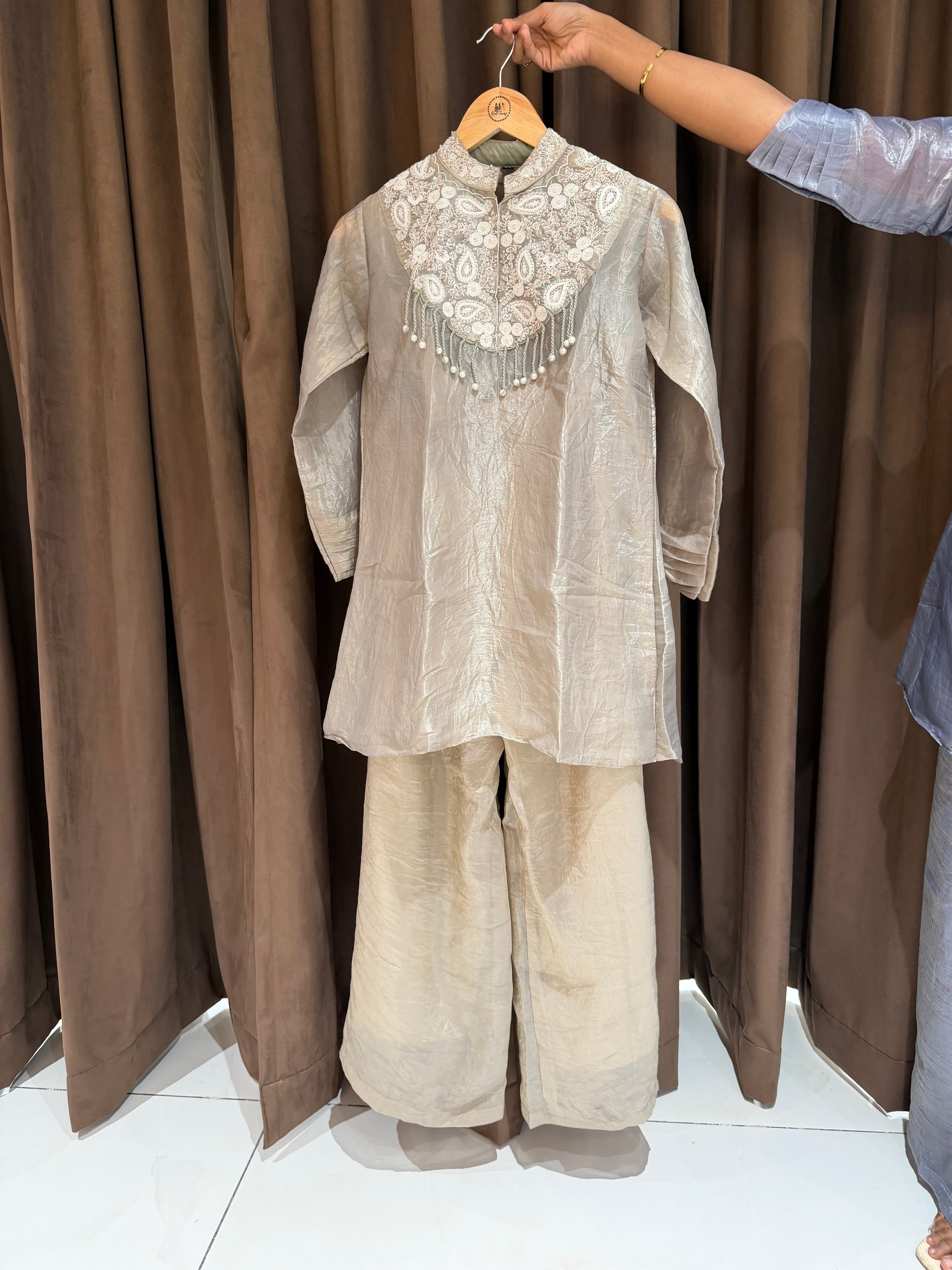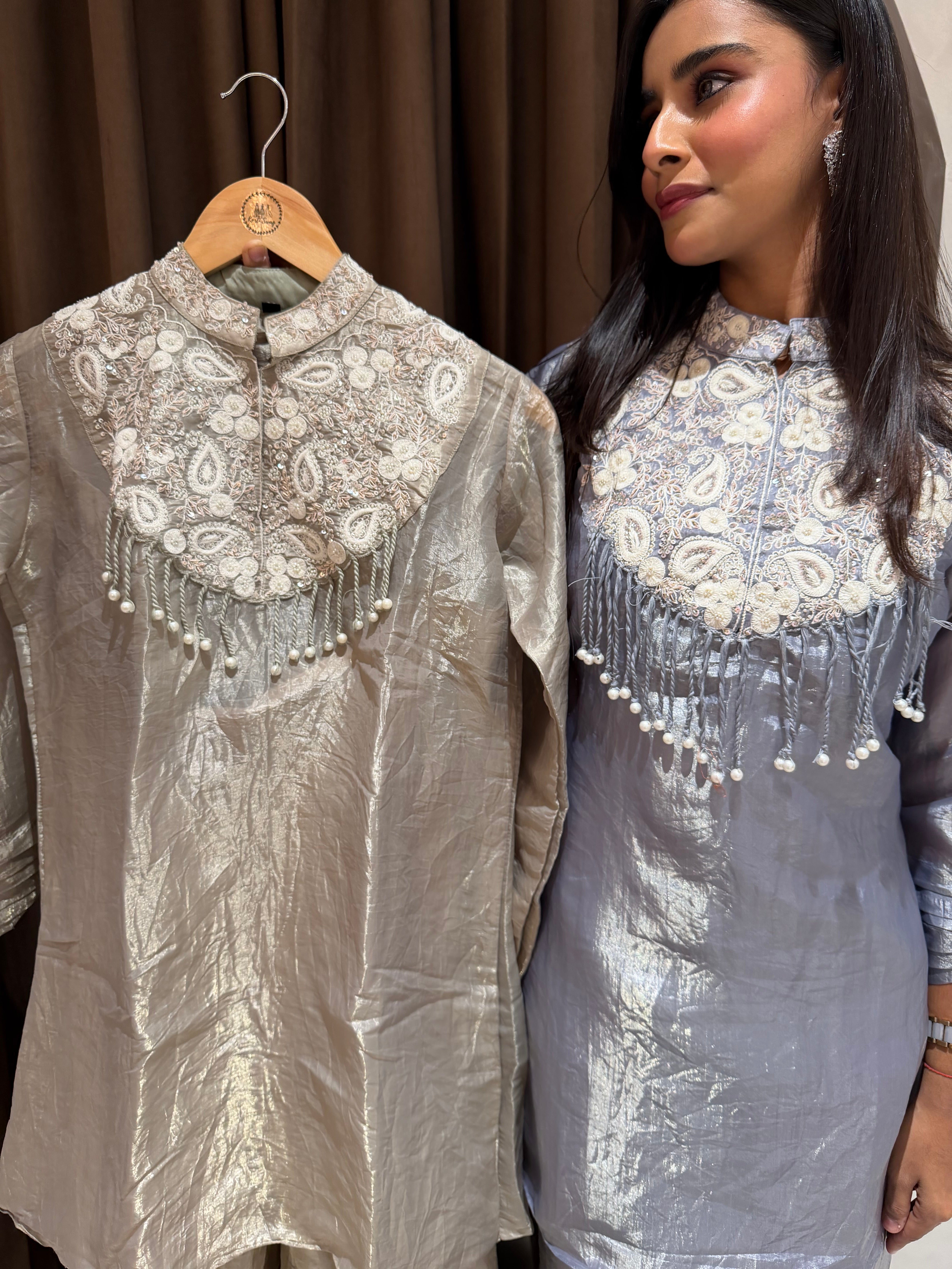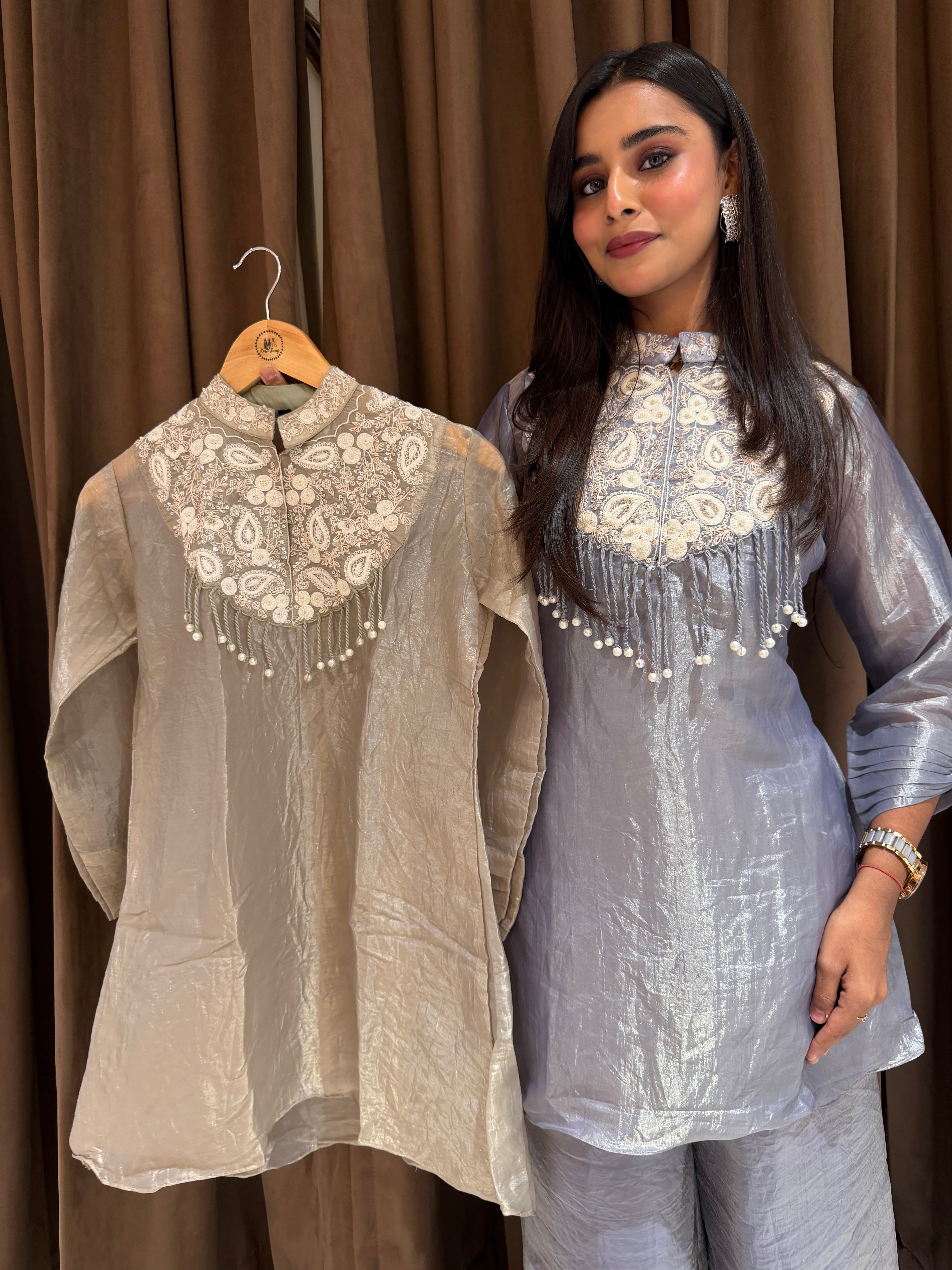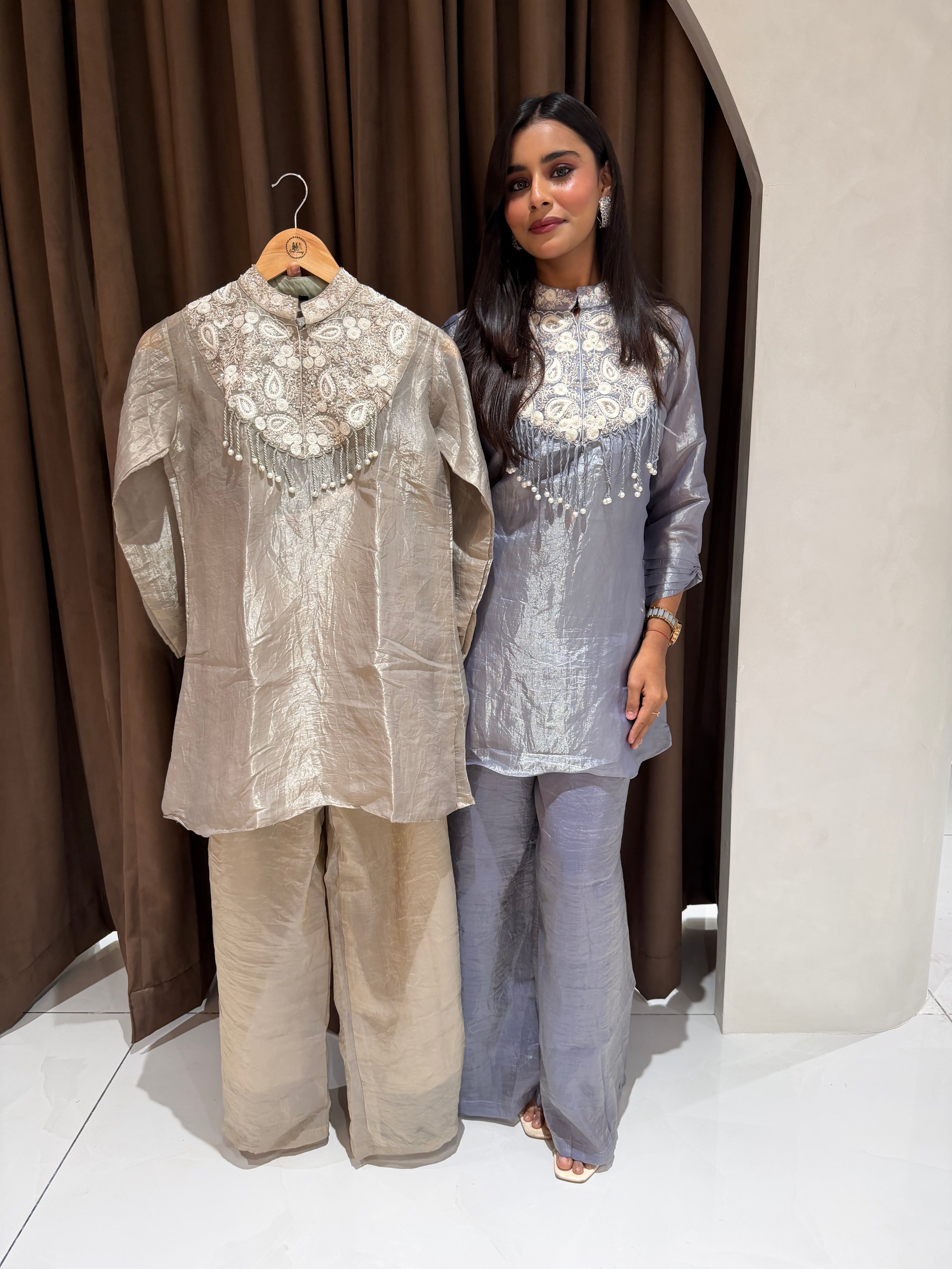 ✅ Premium Crush Tisse Coord Set with Handwork On The Yoke