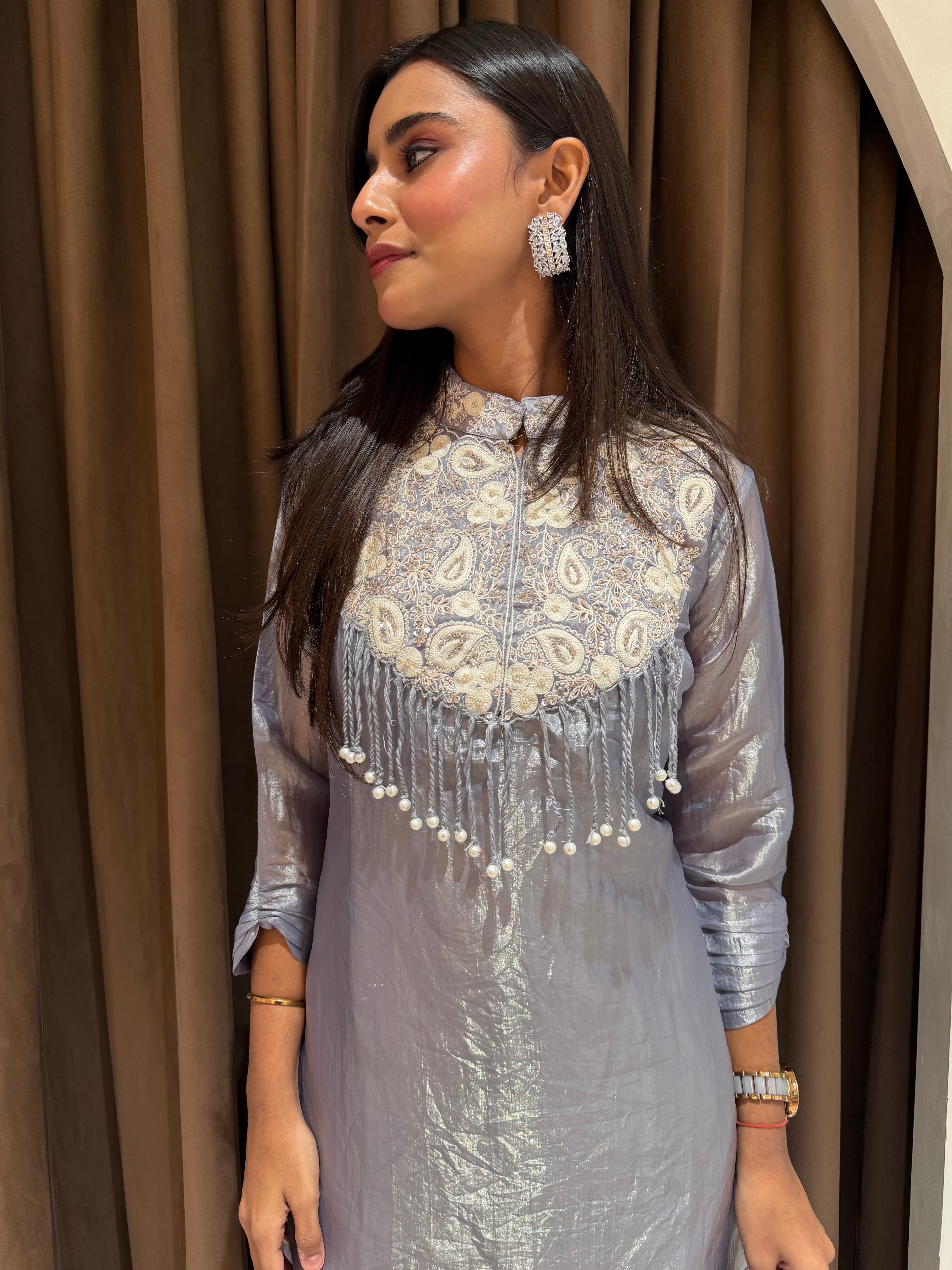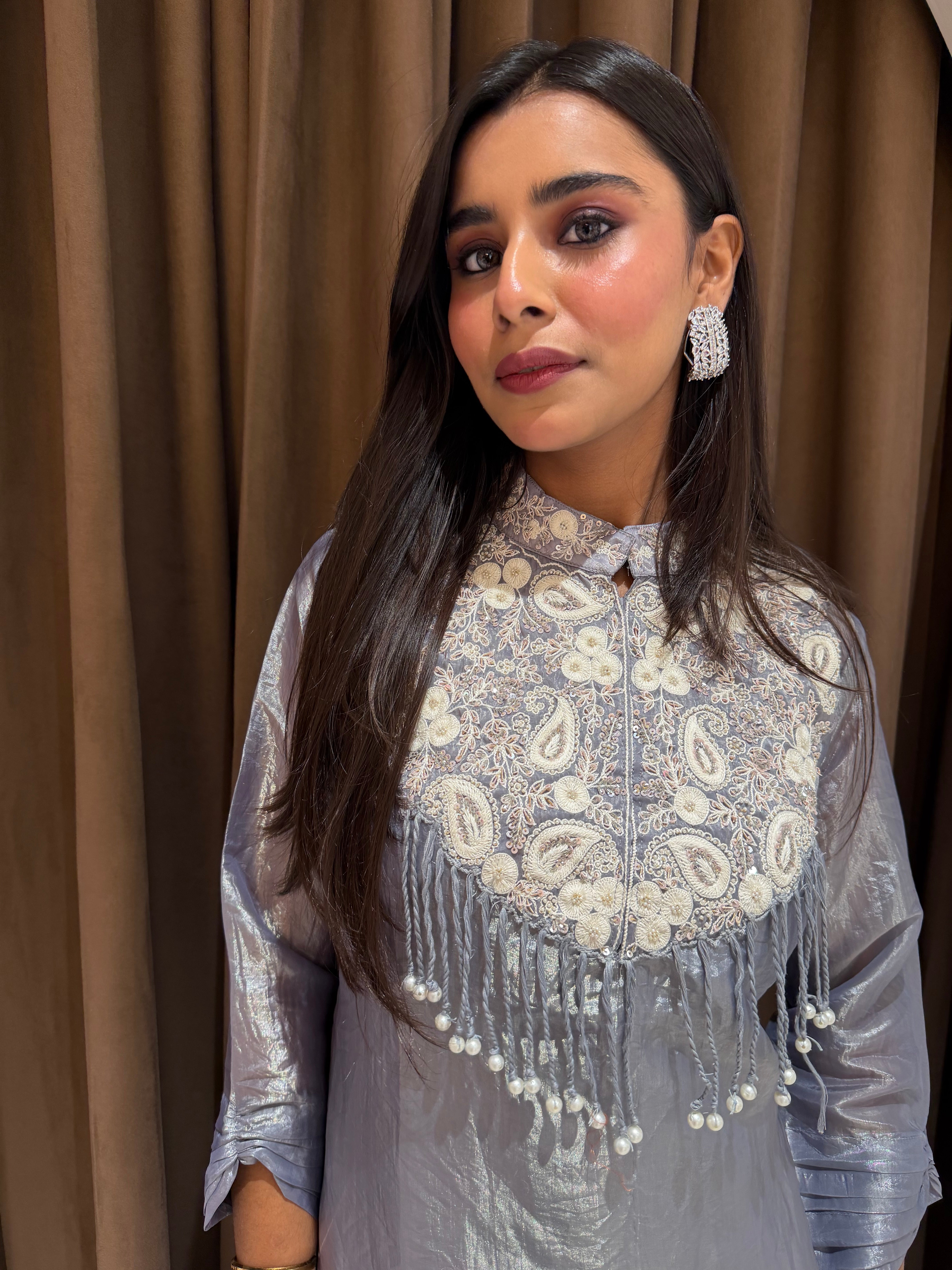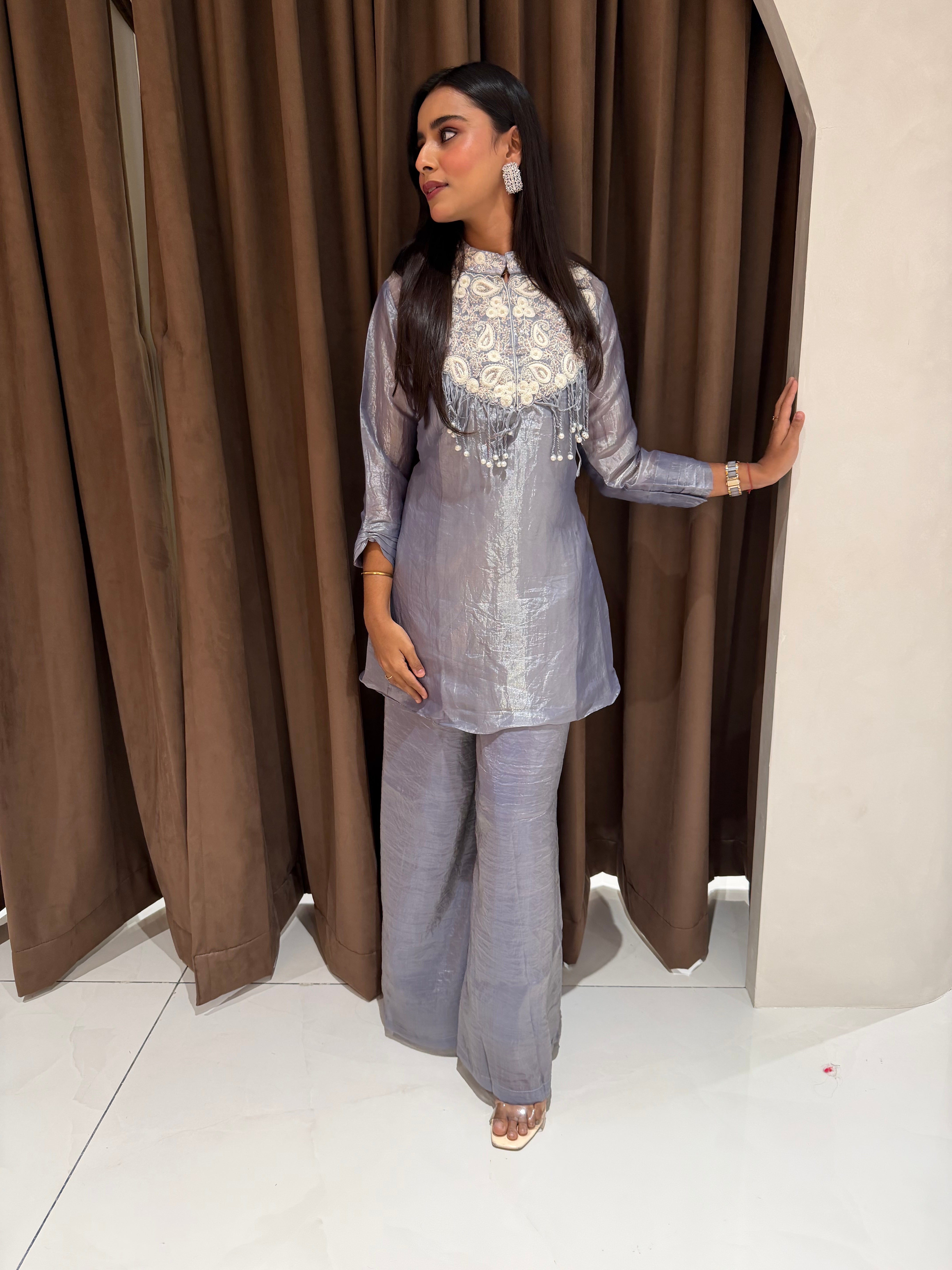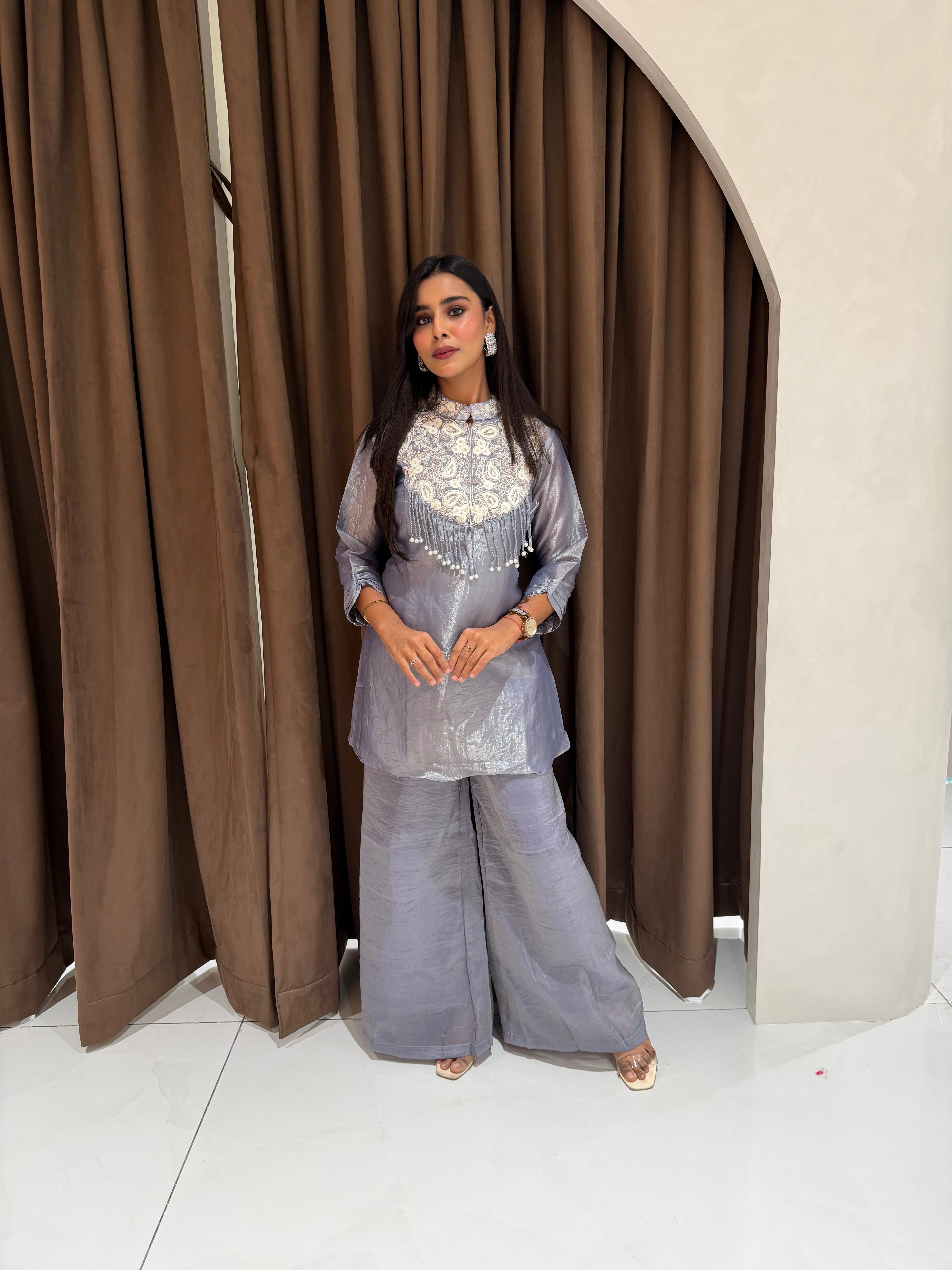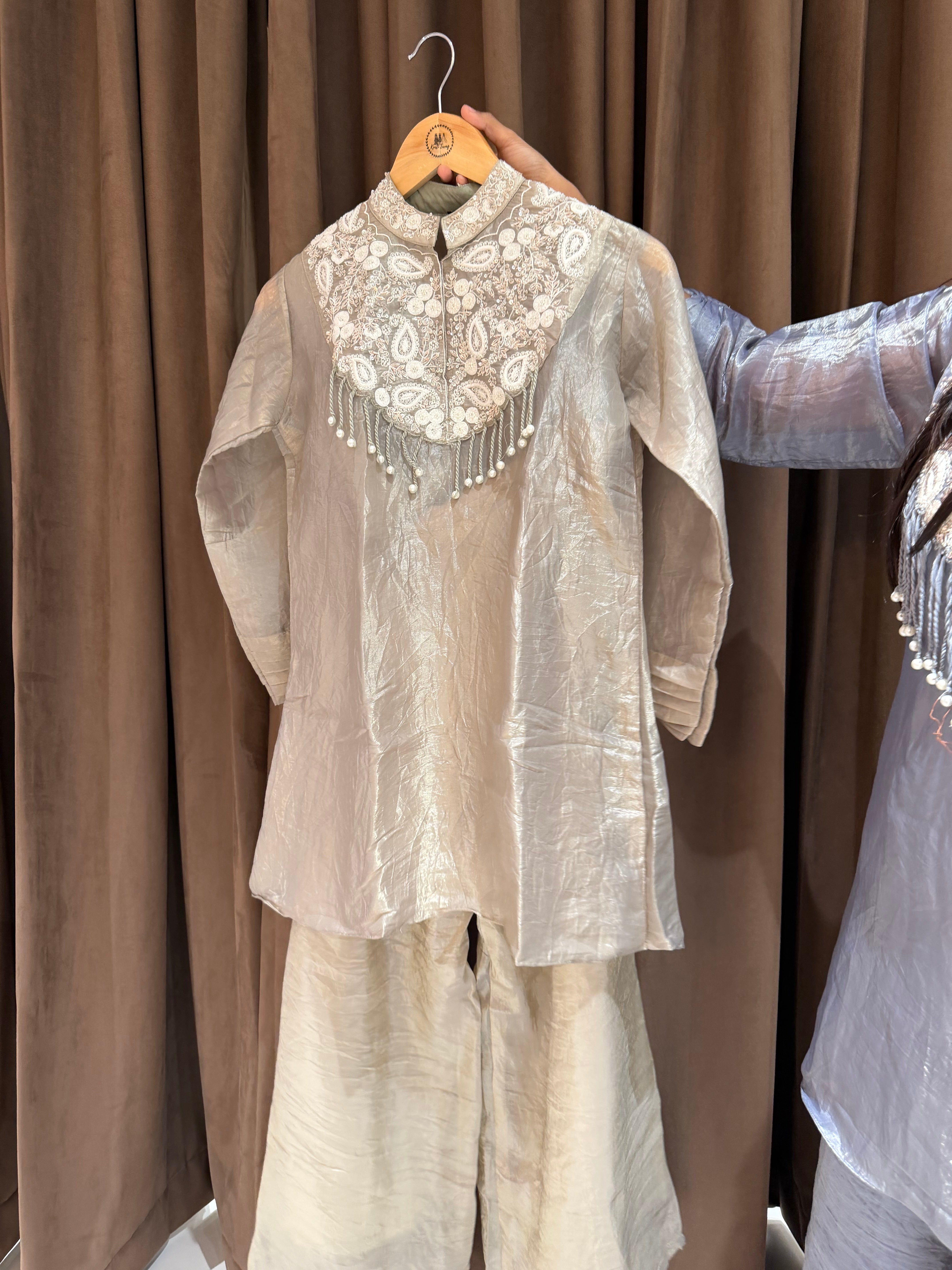 ✅ Premium Crush Tisse Coord Set with Handwork On The Yoke