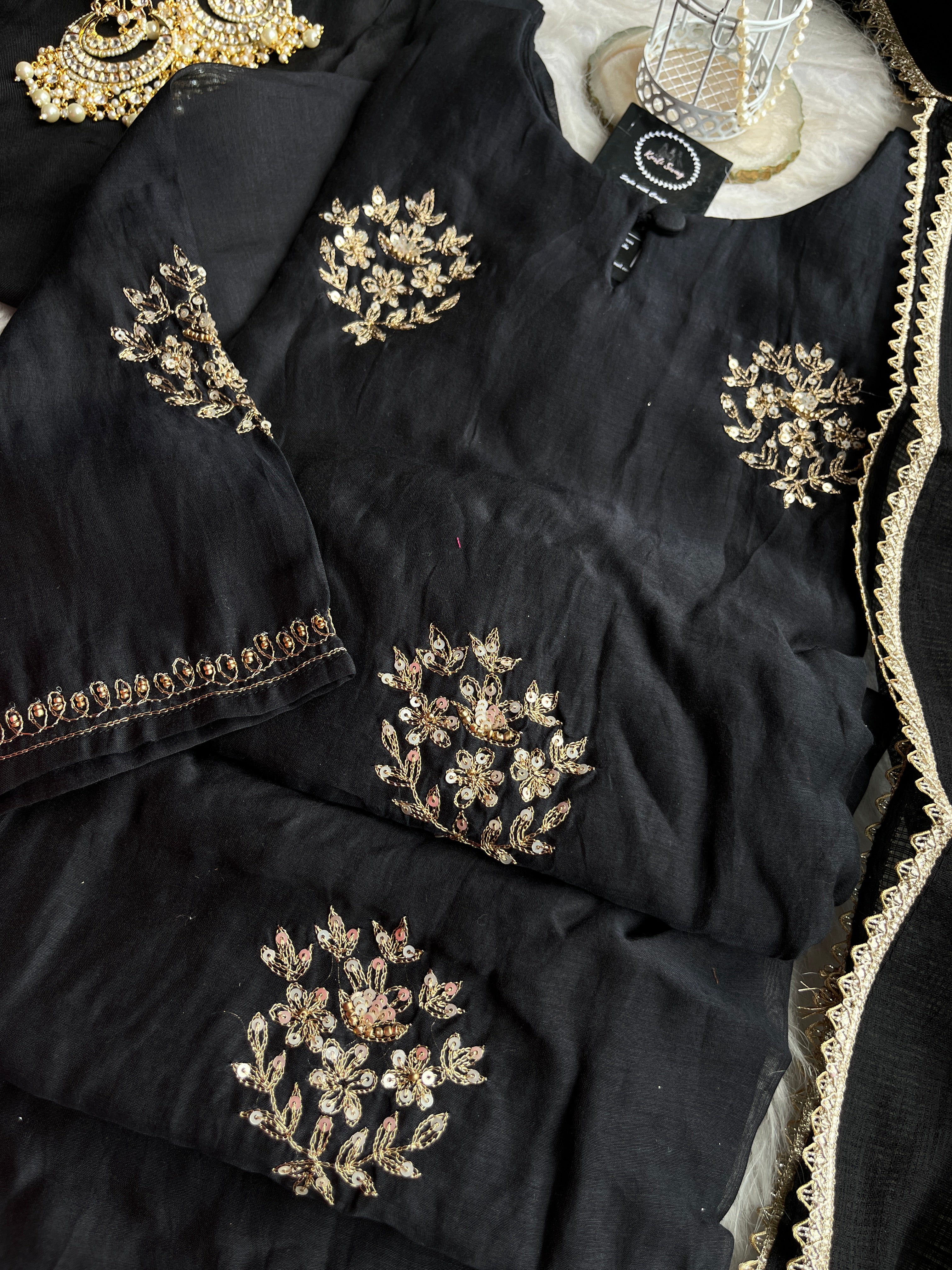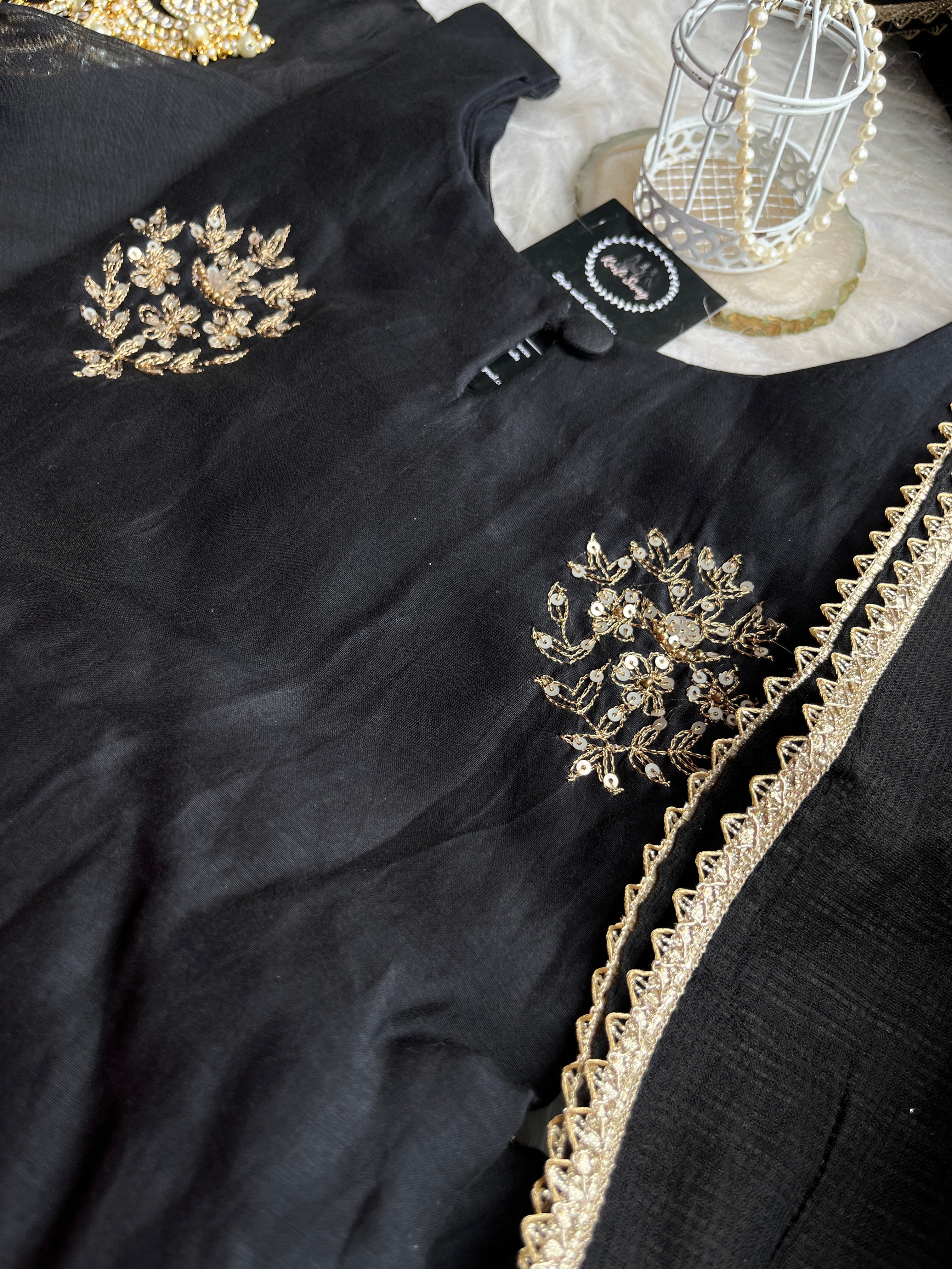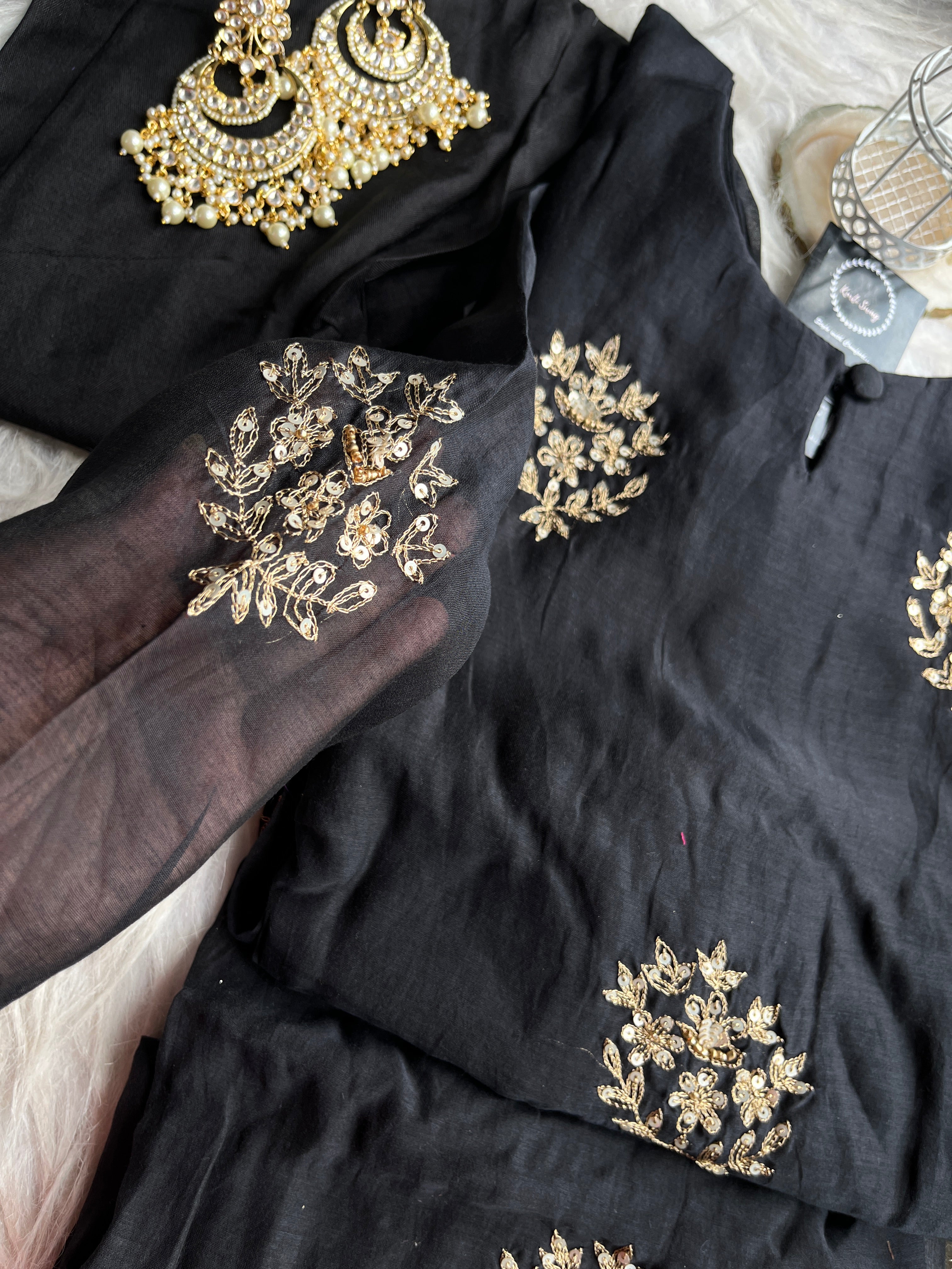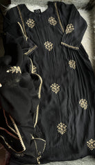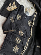 “SURAKSHA” Mul Chanderi Suit Set In Black ✨