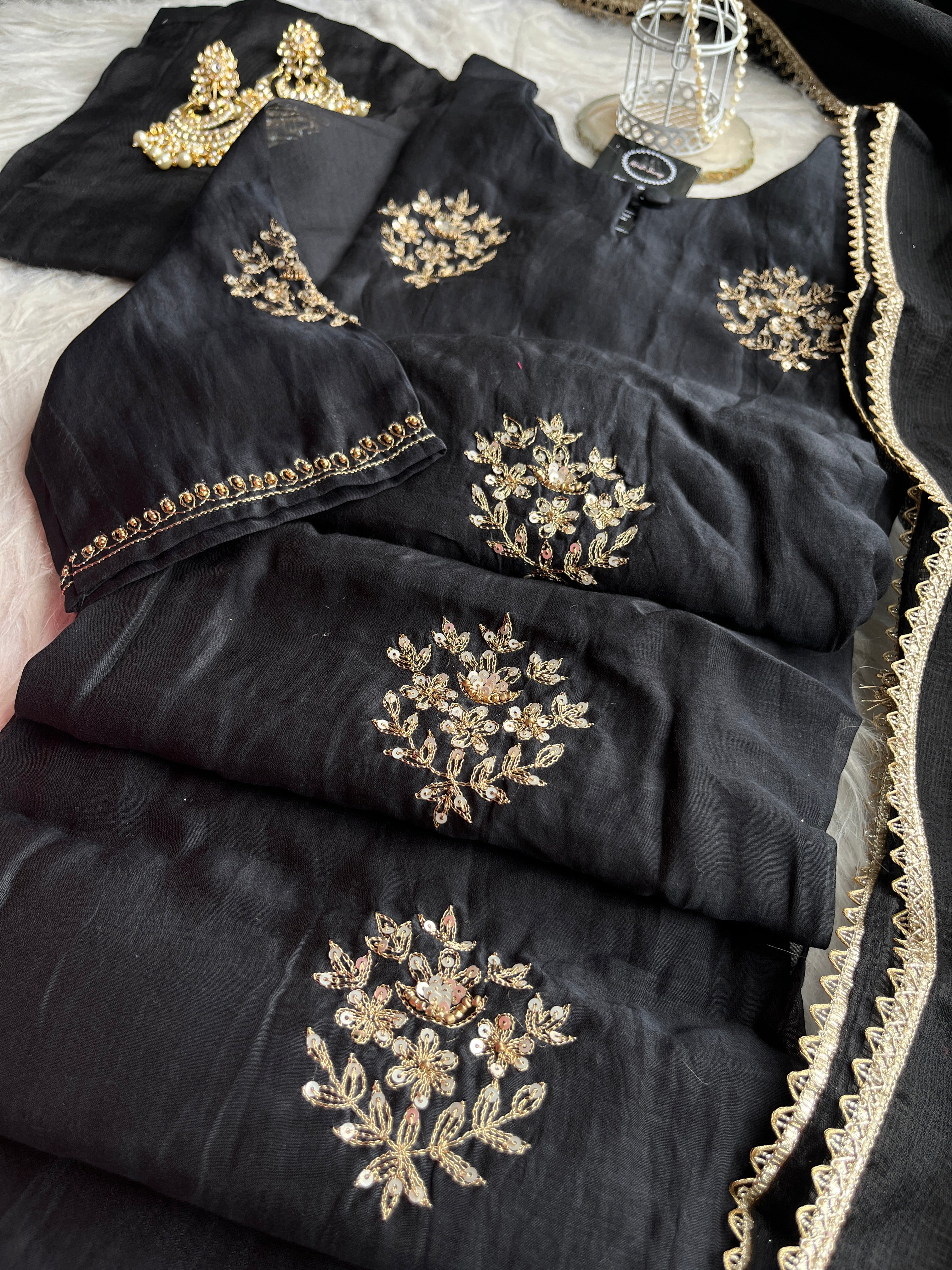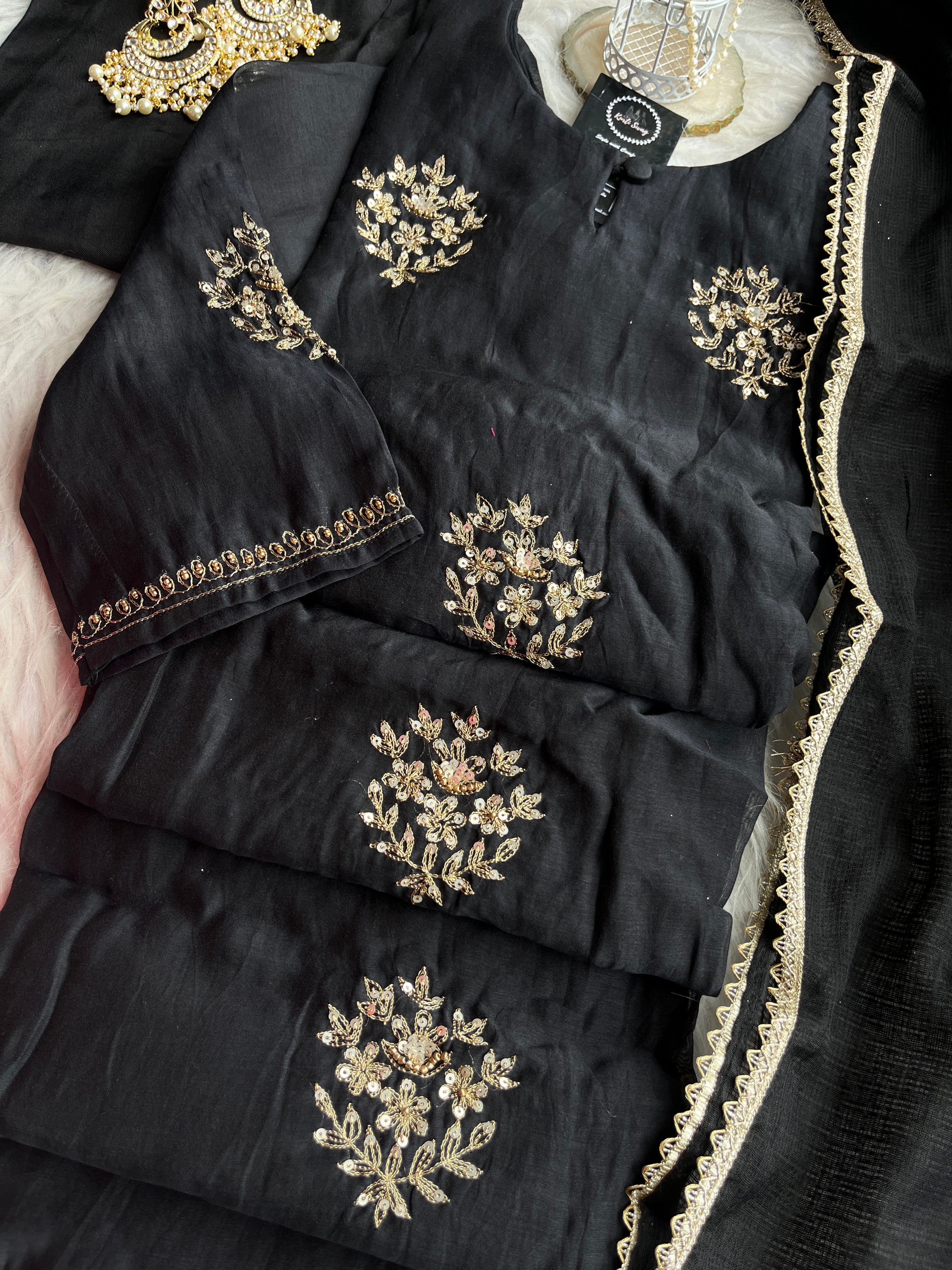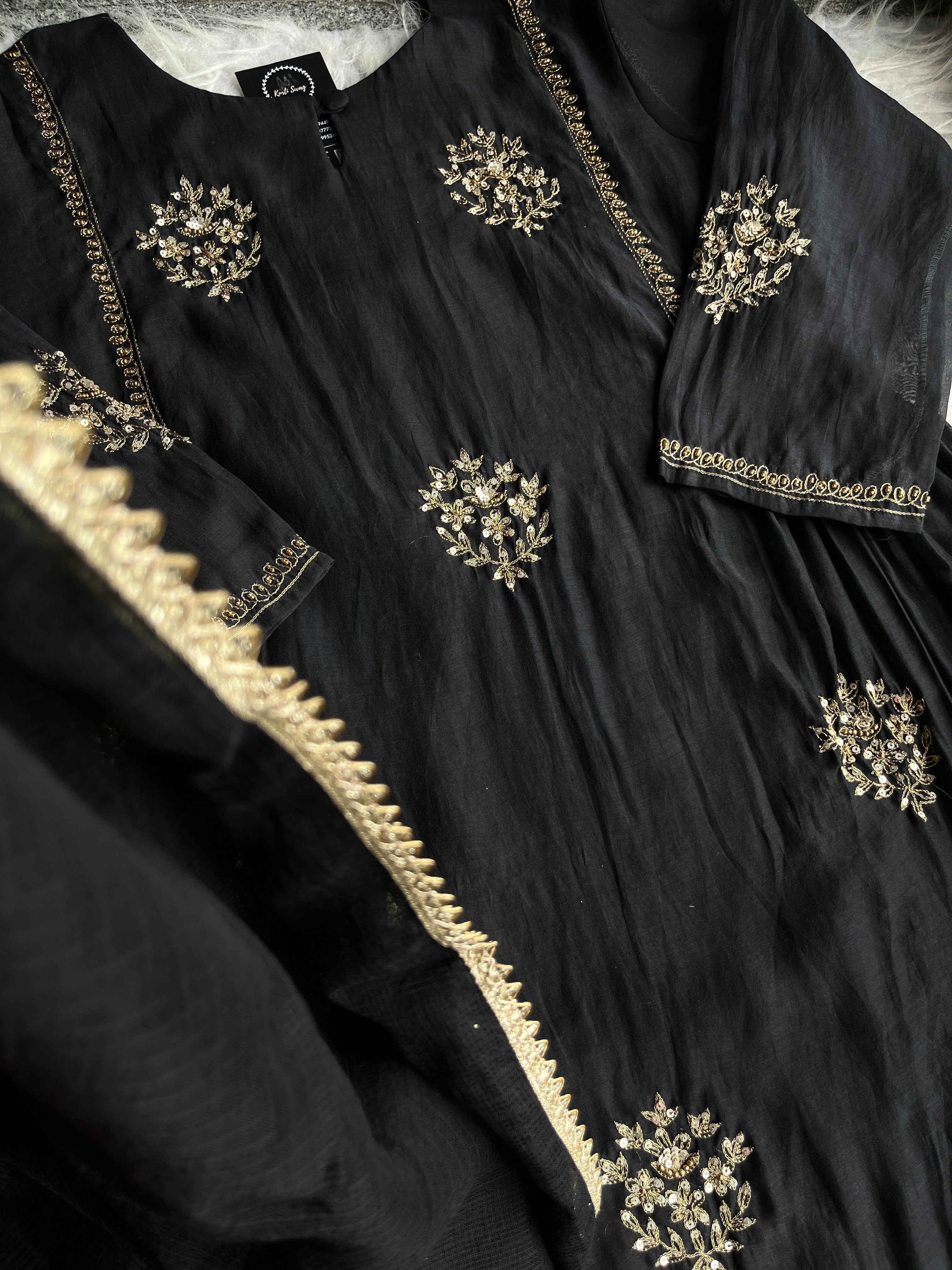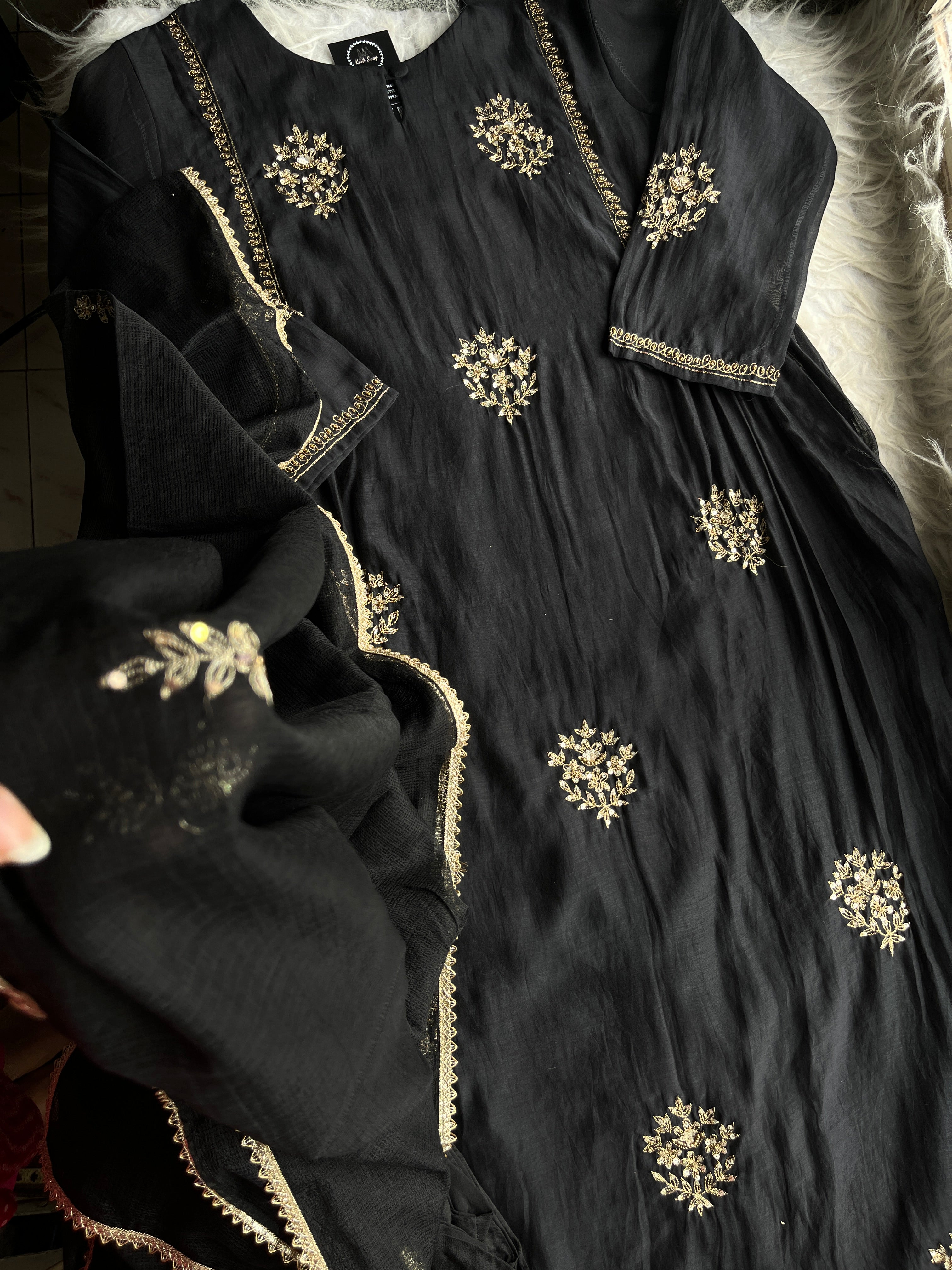 “SURAKSHA” Mul Chanderi Suit Set In Black ✨