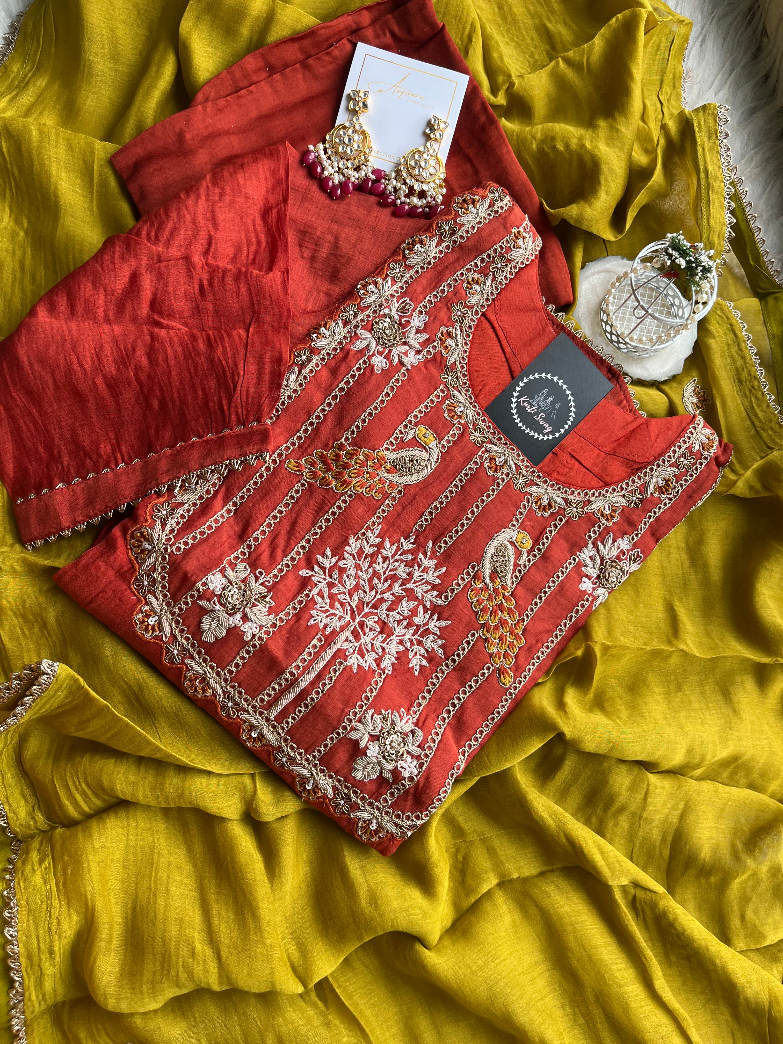 “TAAHIKA” Premiym Mul Chanderi Kurti Set