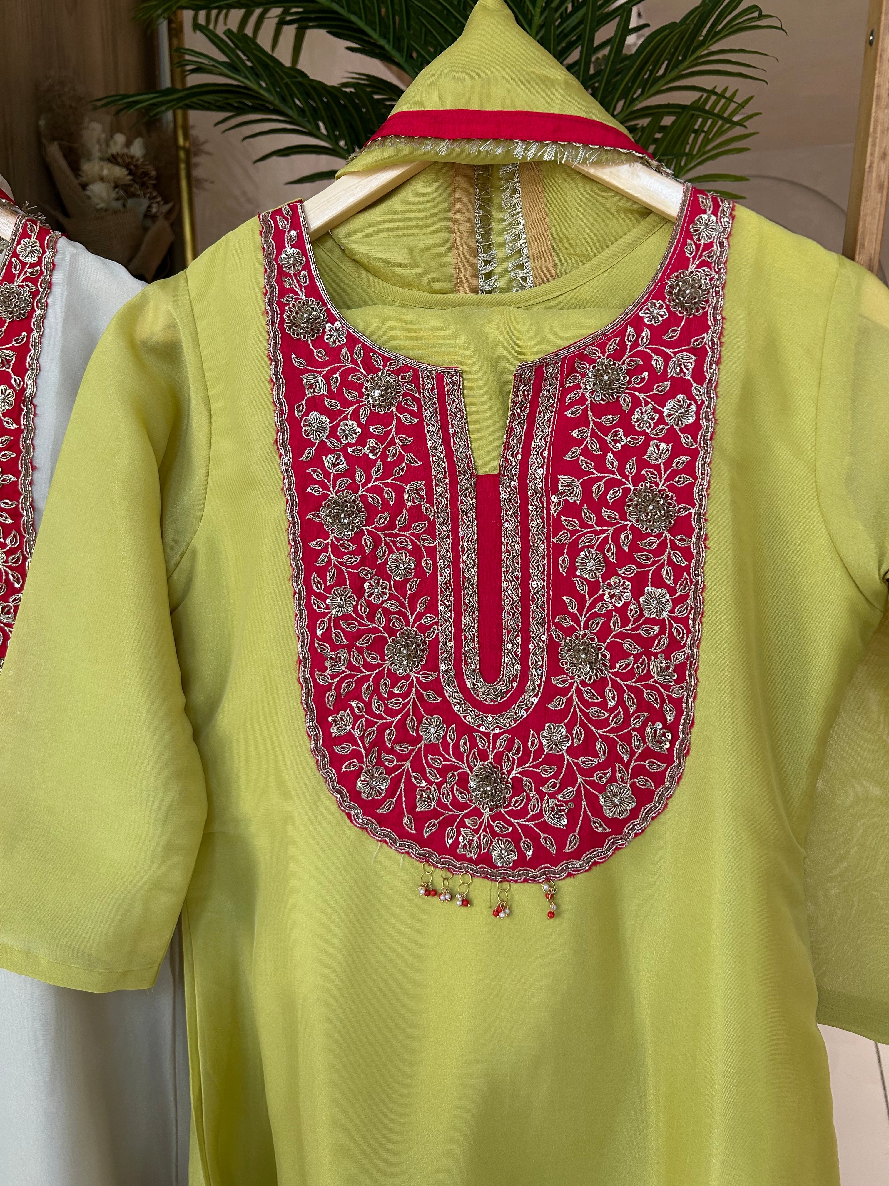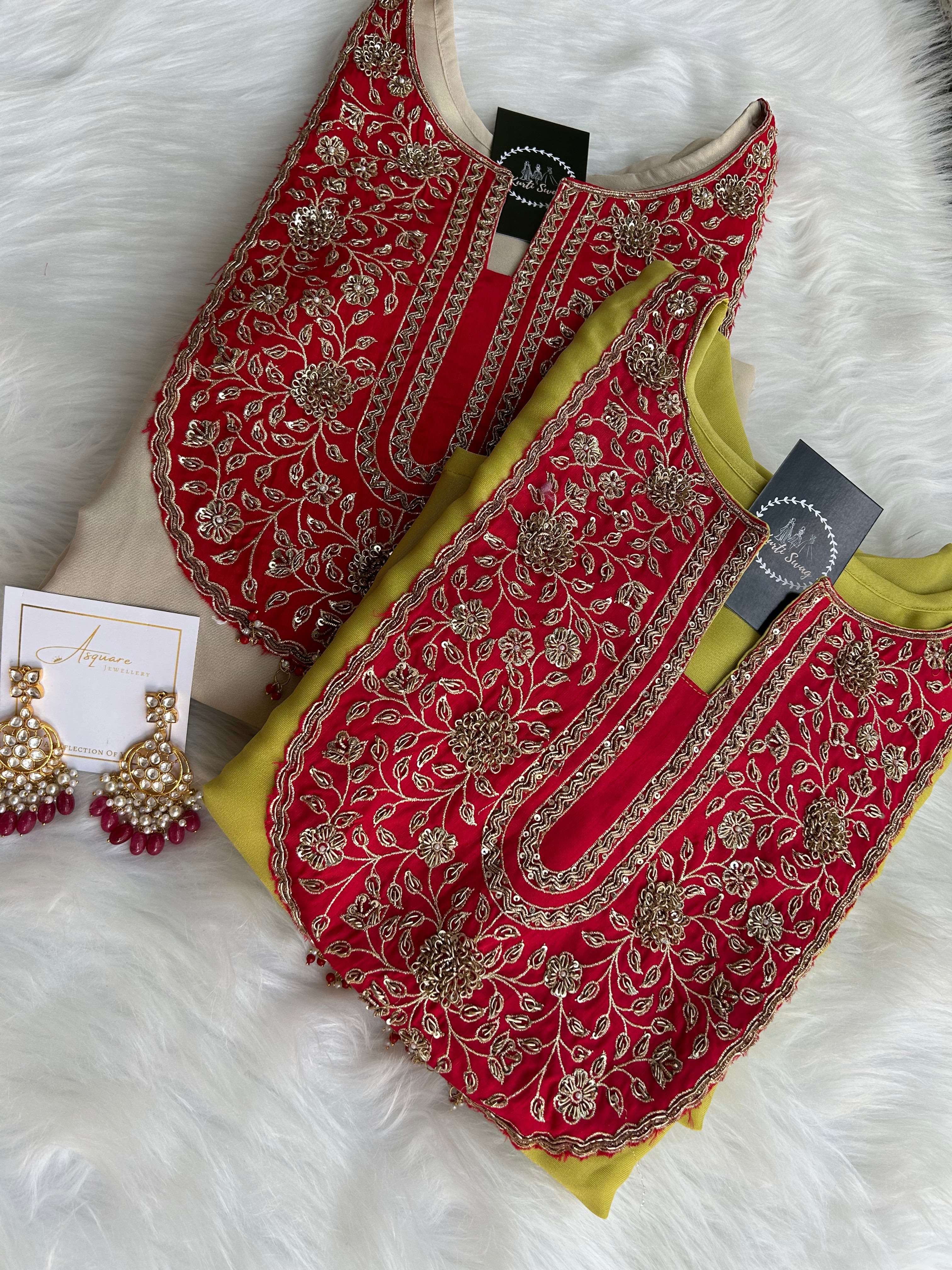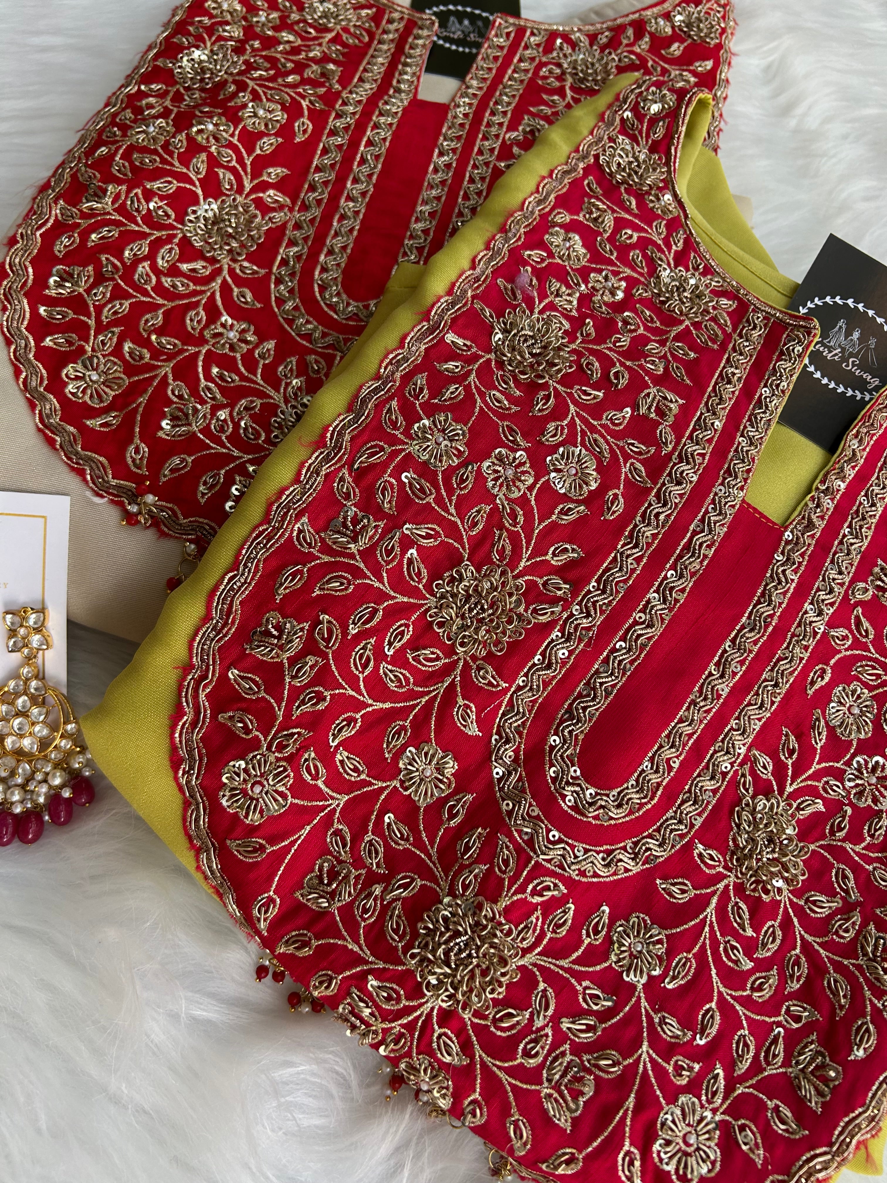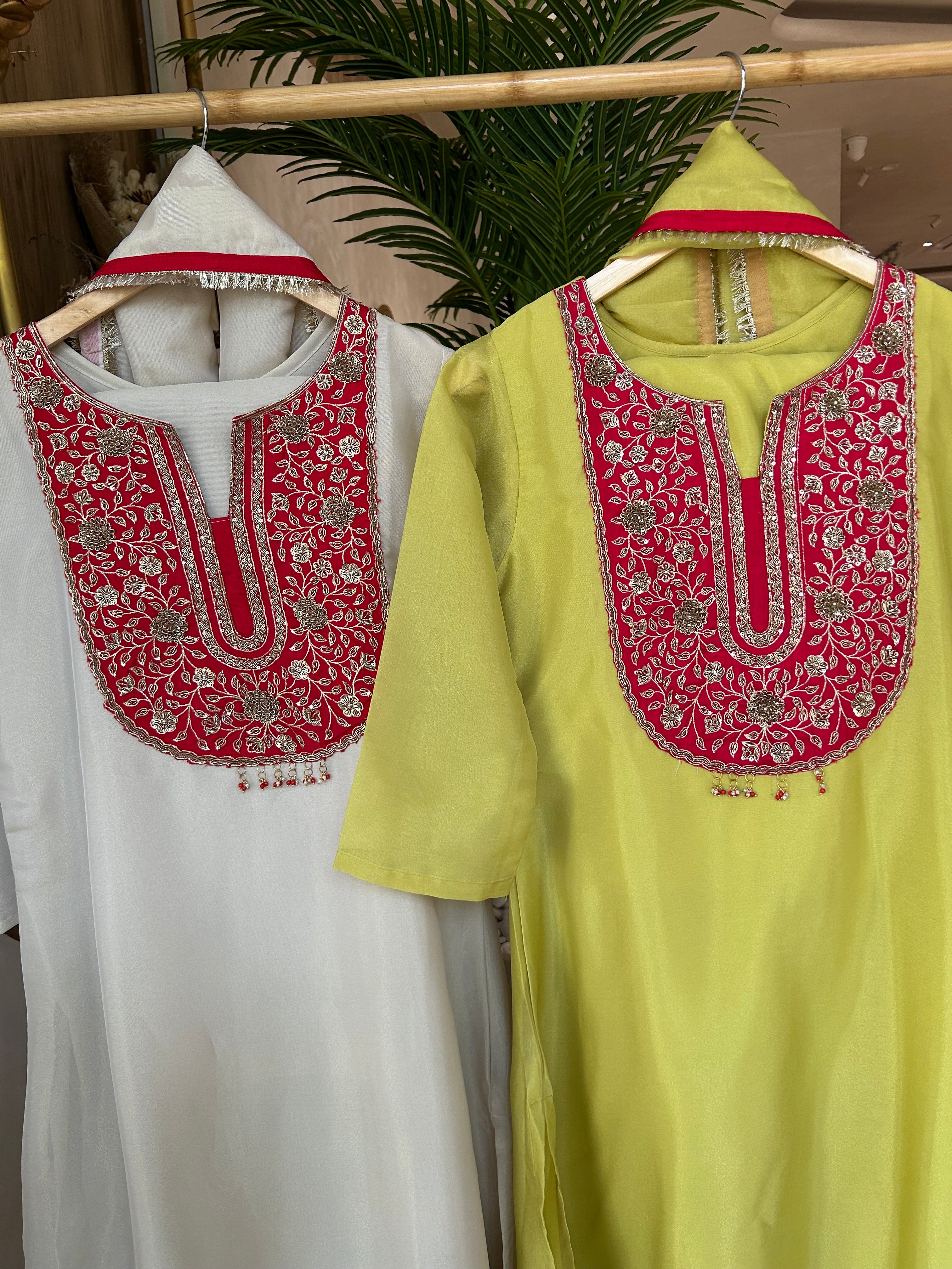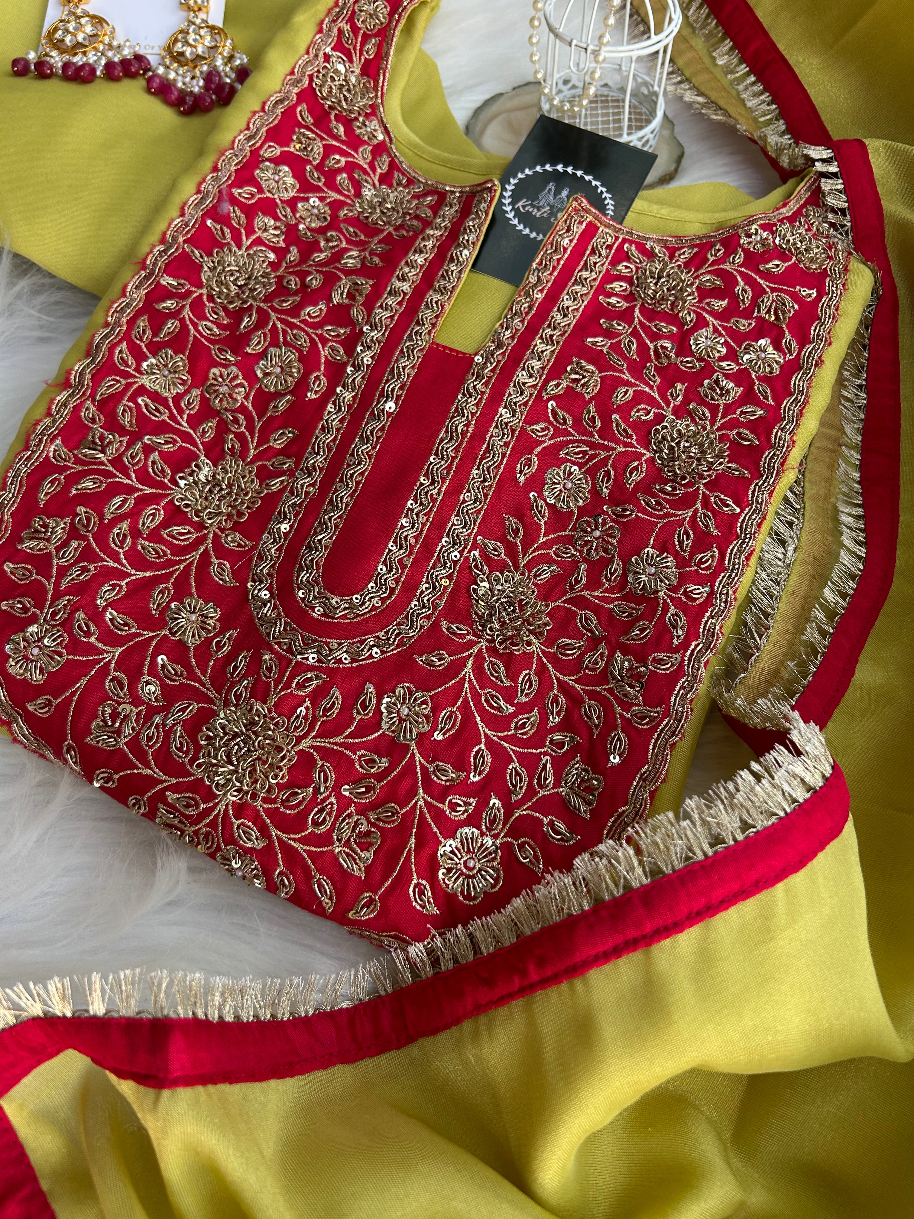 ✅ Premium Tissue Silk Kurti With Zardosi Handwork On The Yoke Of The Kurti