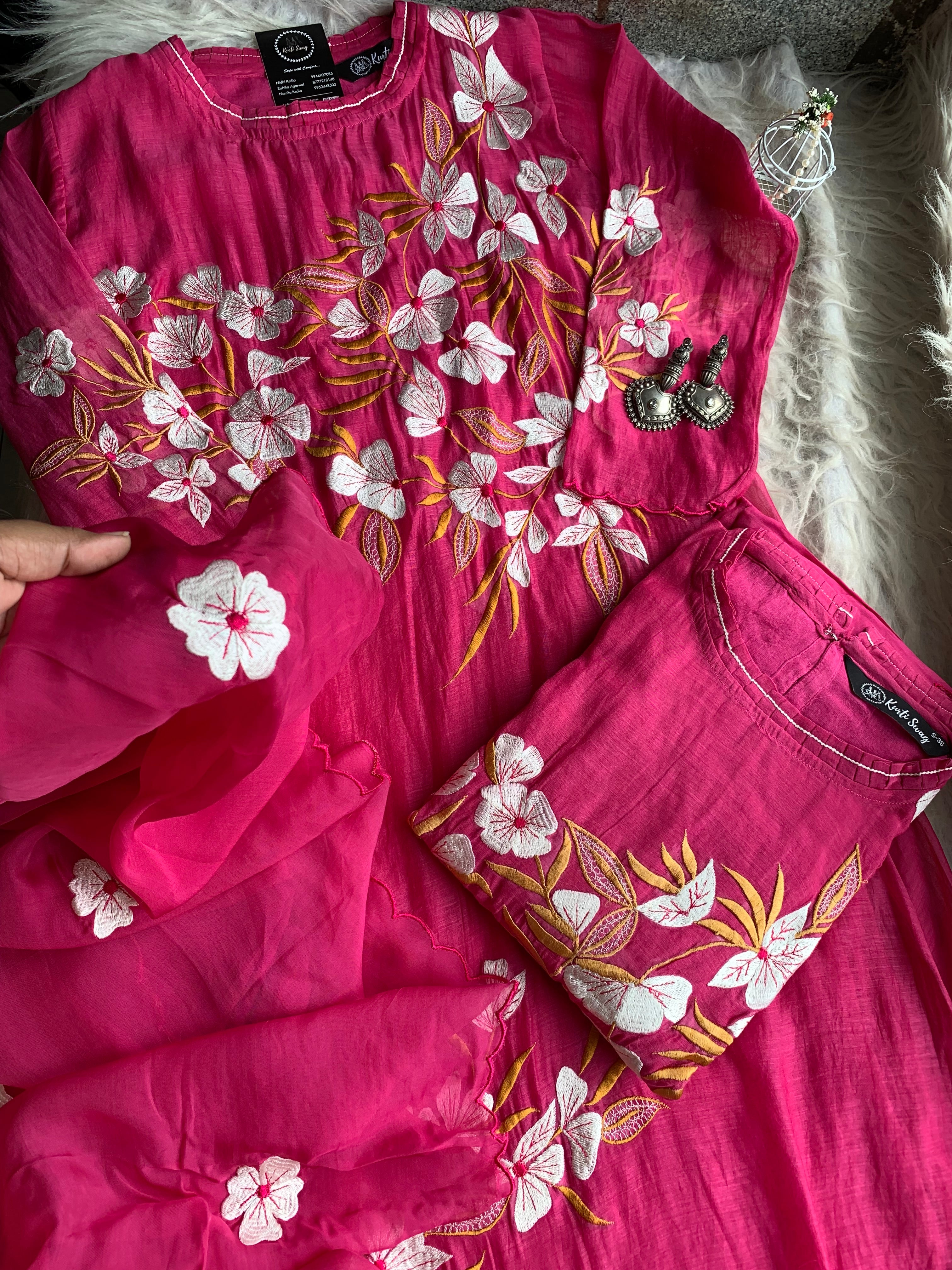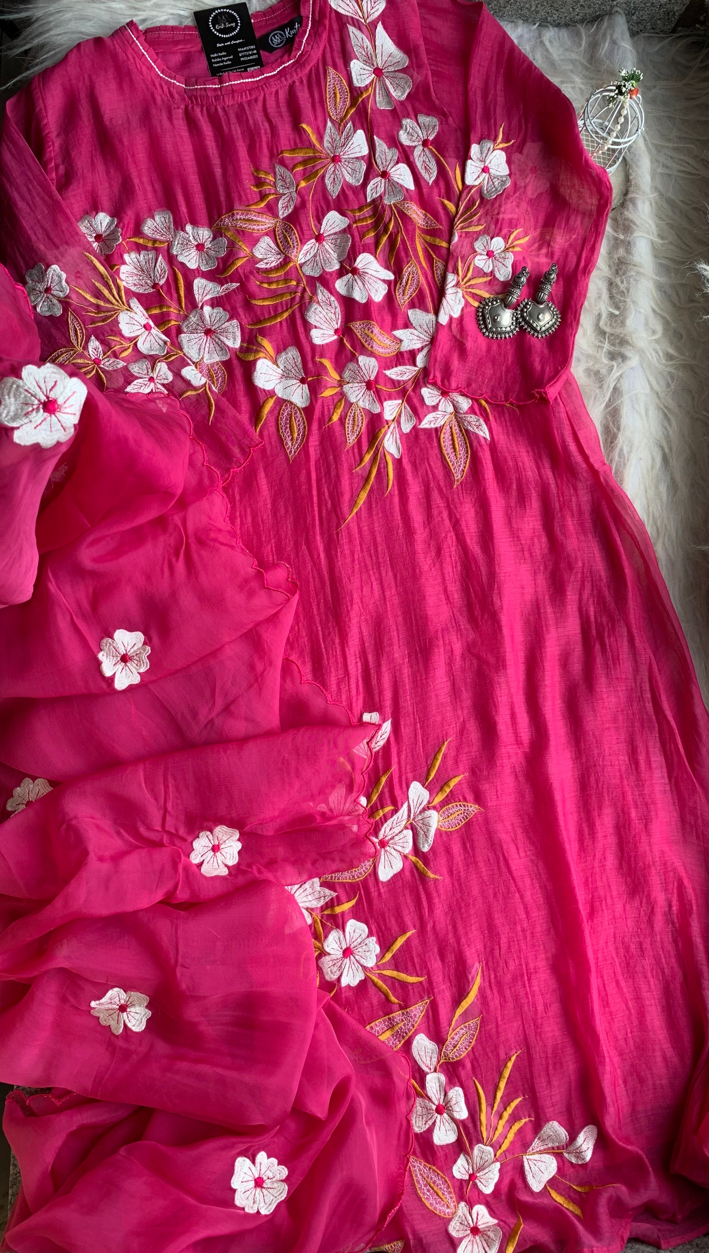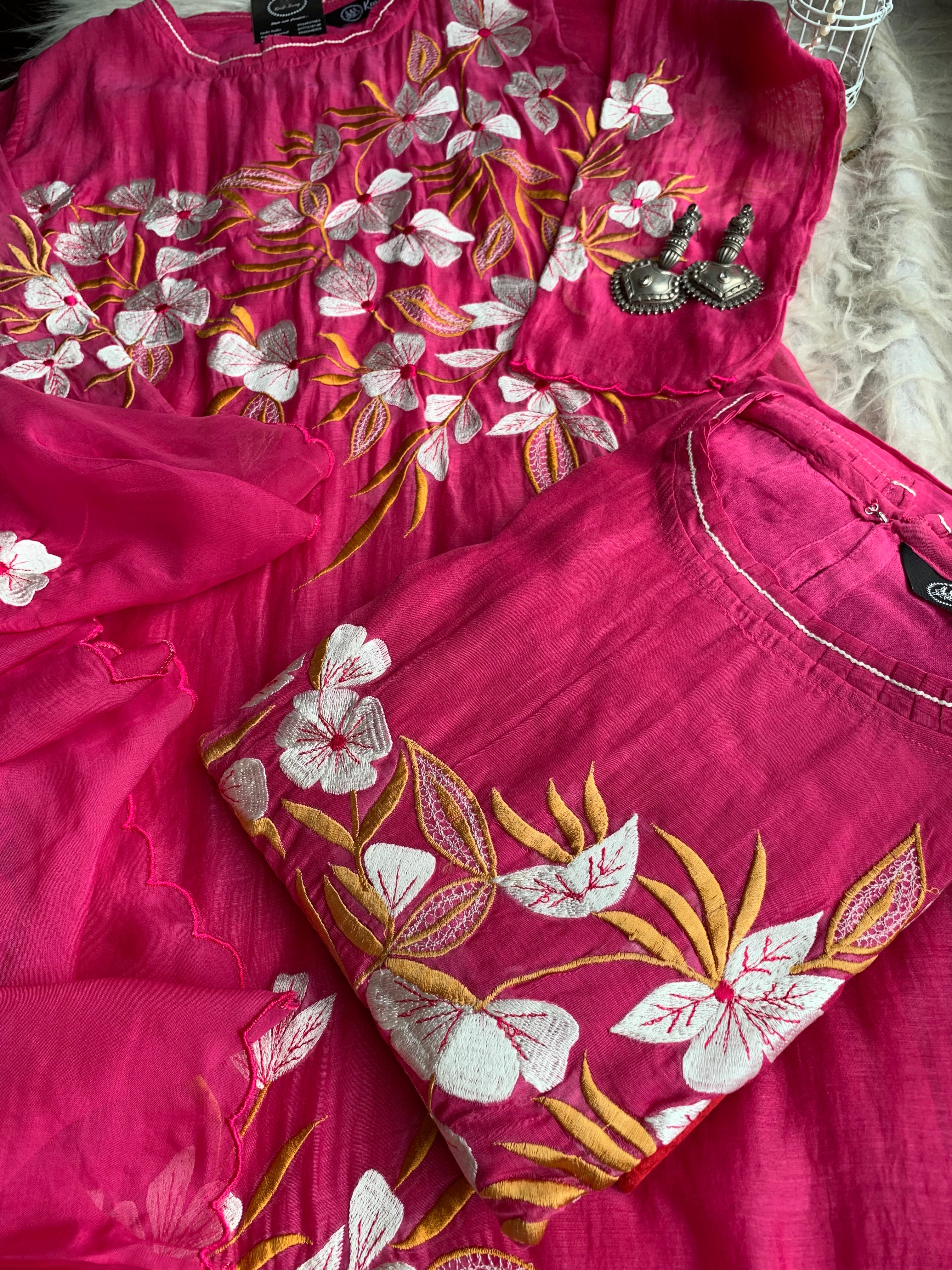 “TRISHA” Mul Chanderi Thread Embroidered A Line Suit Set ✨💕
