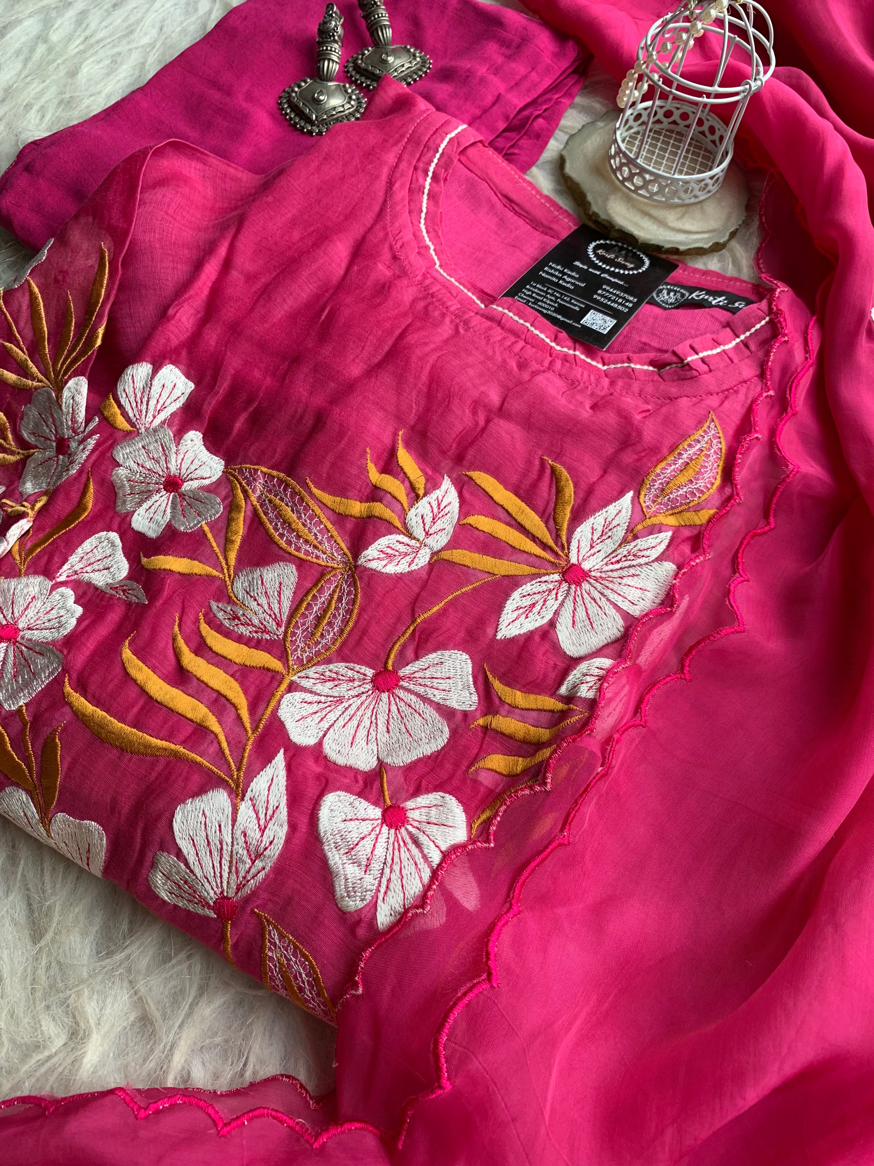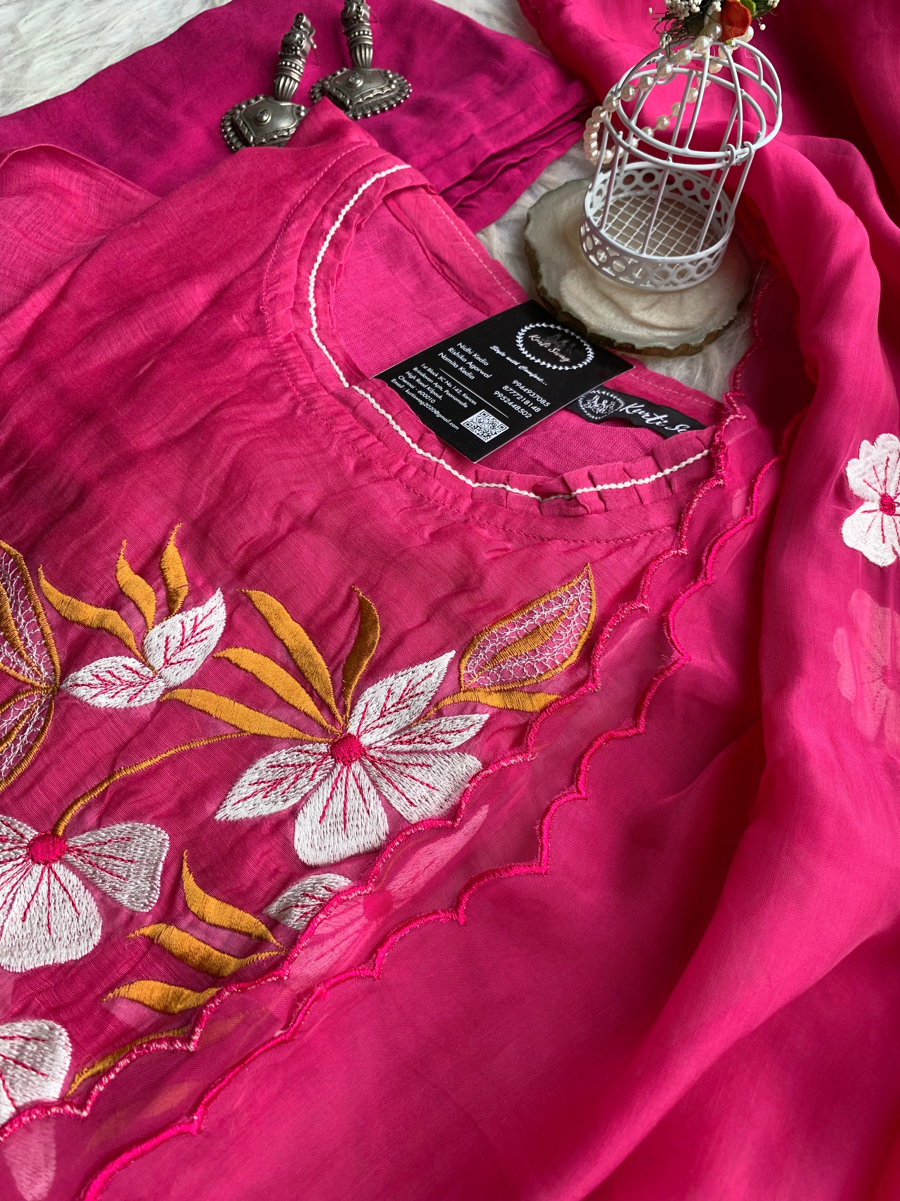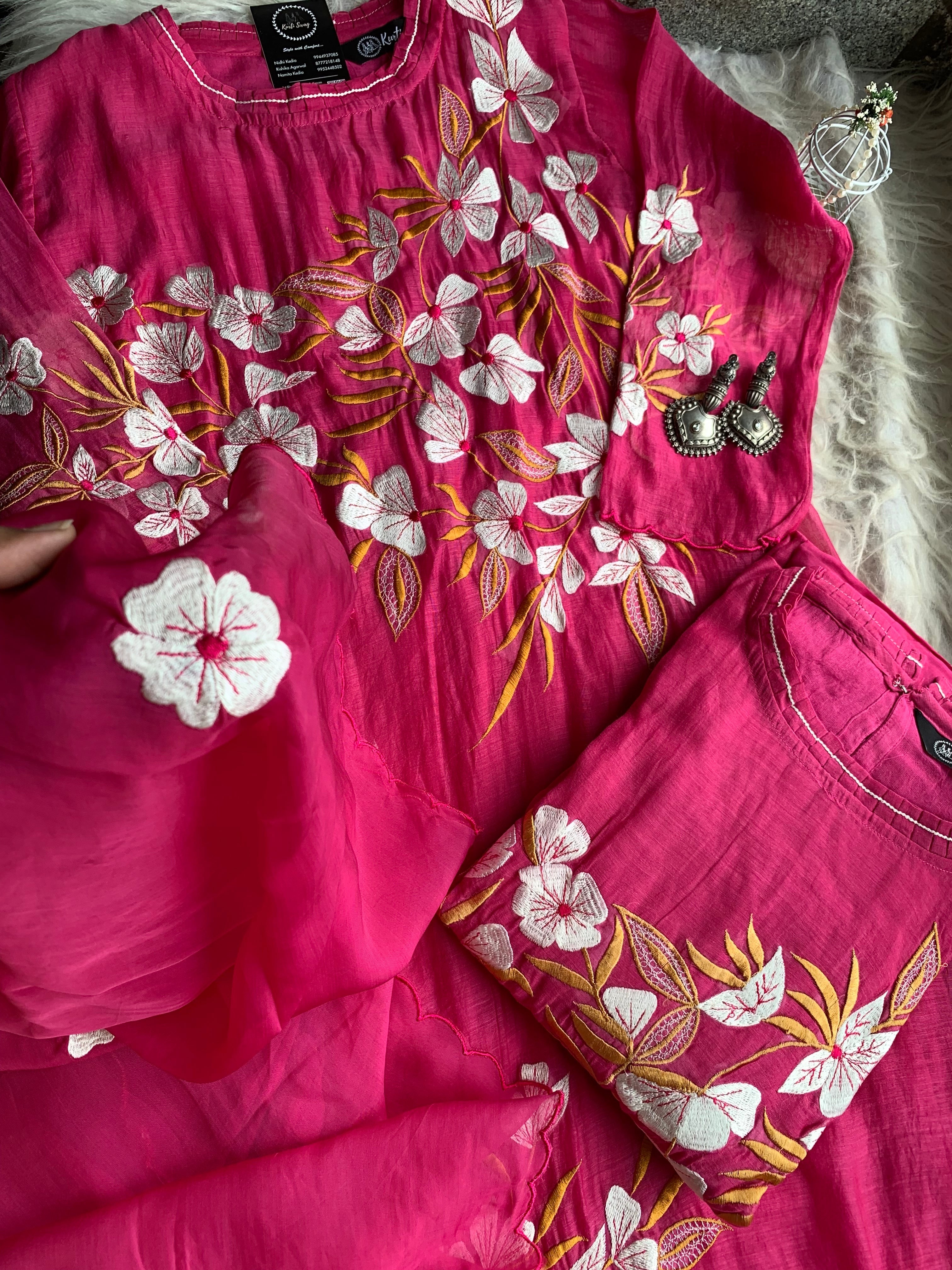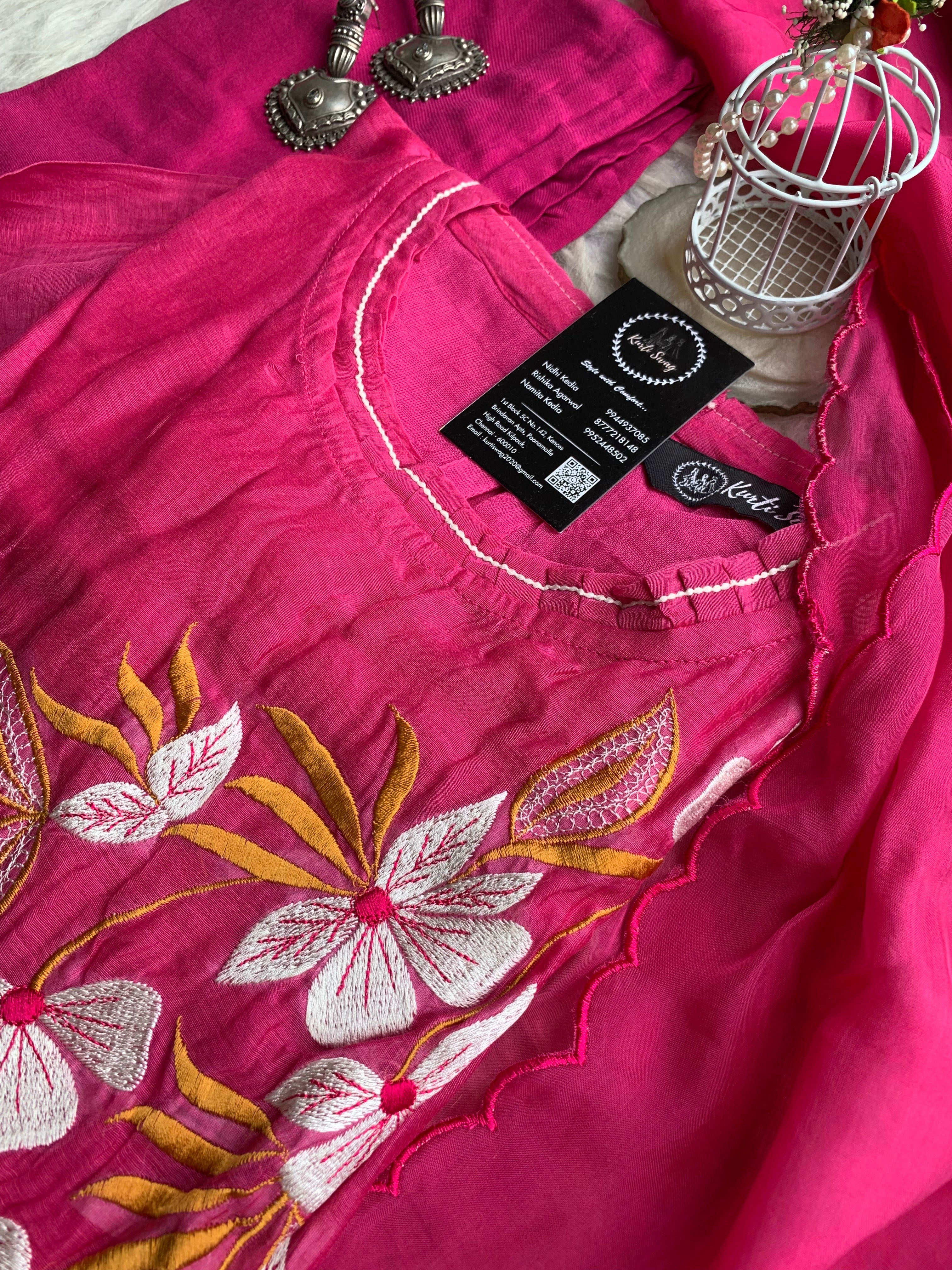 “TRISHA” Mul Chanderi Thread Embroidered A Line Suit Set ✨💕